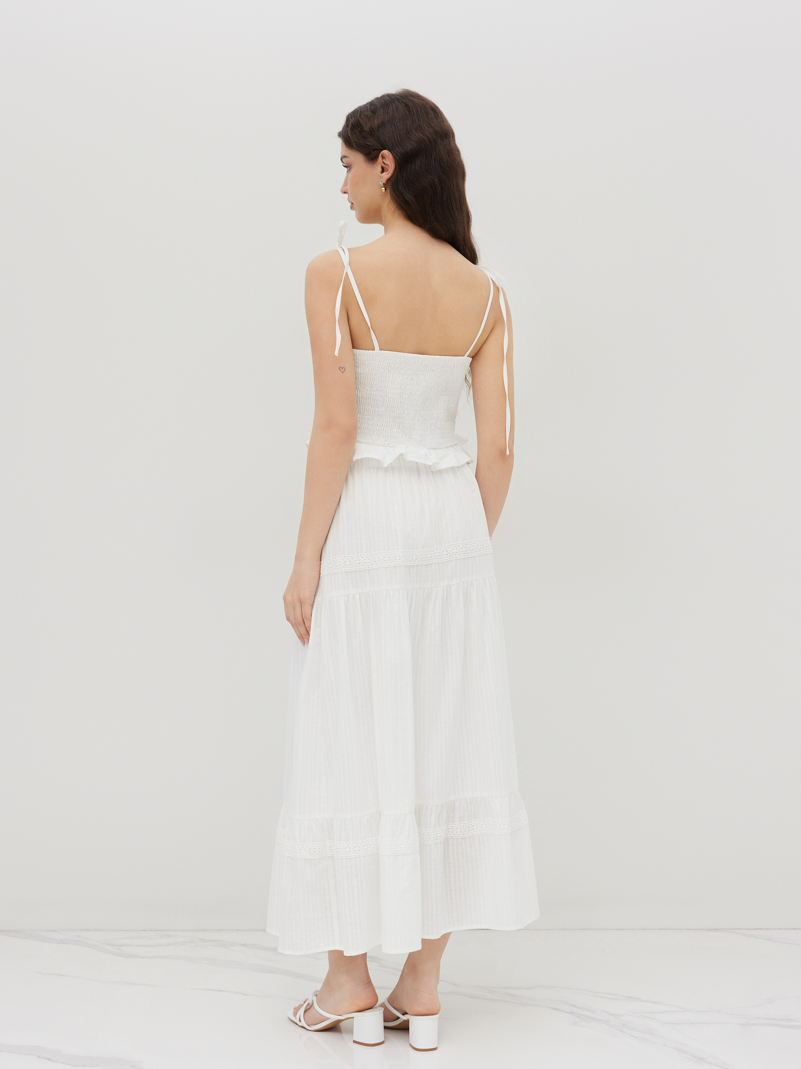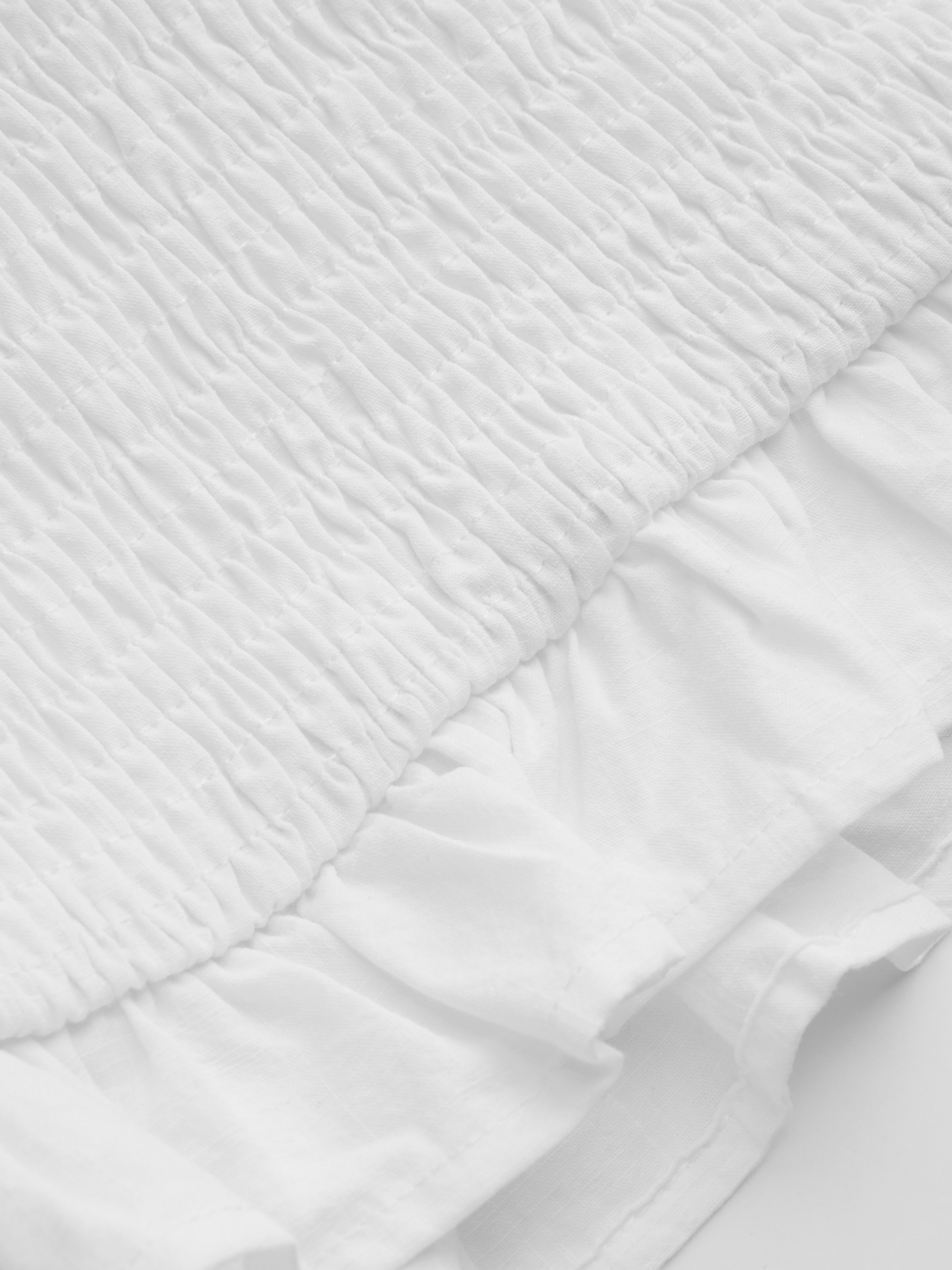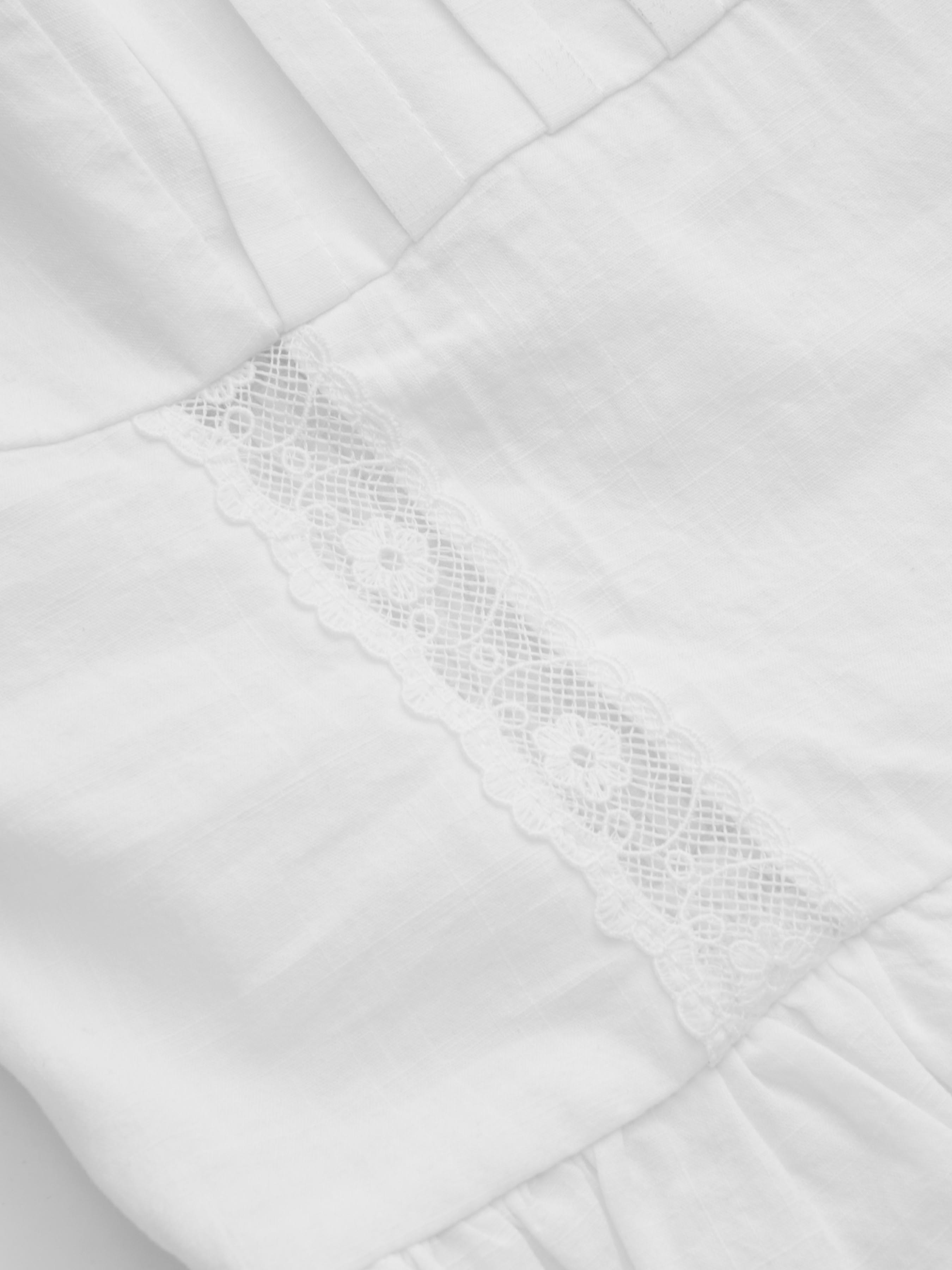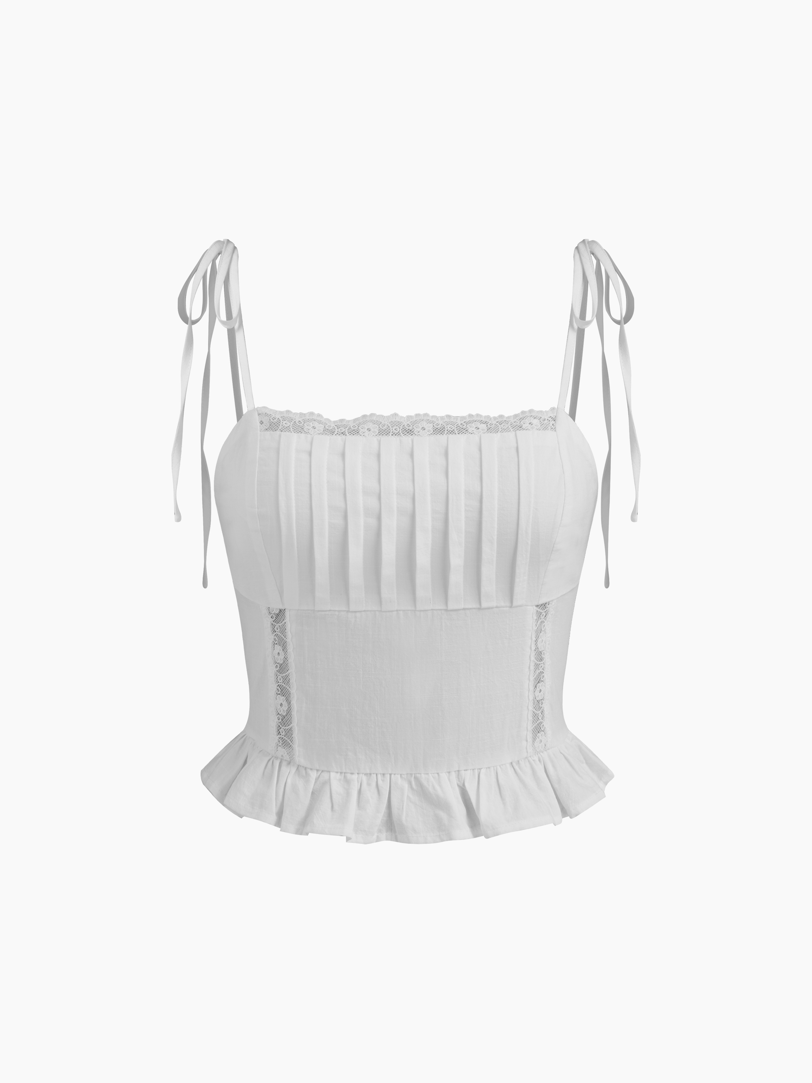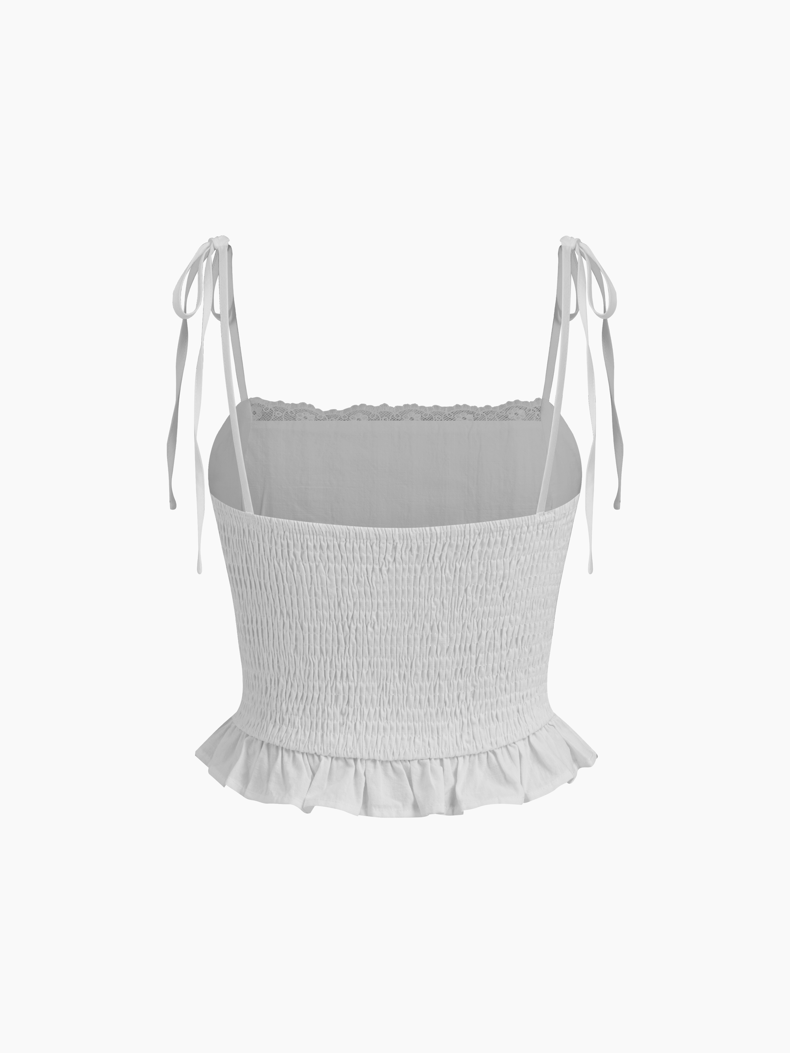 Top Cami arricciato con orlo a balze annodato in 100% cotone con finiture in pizzo