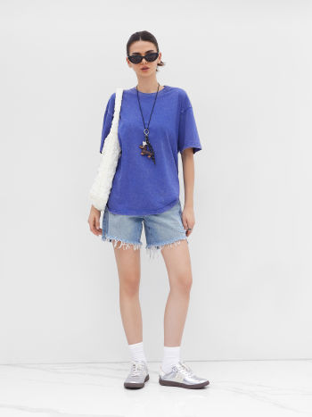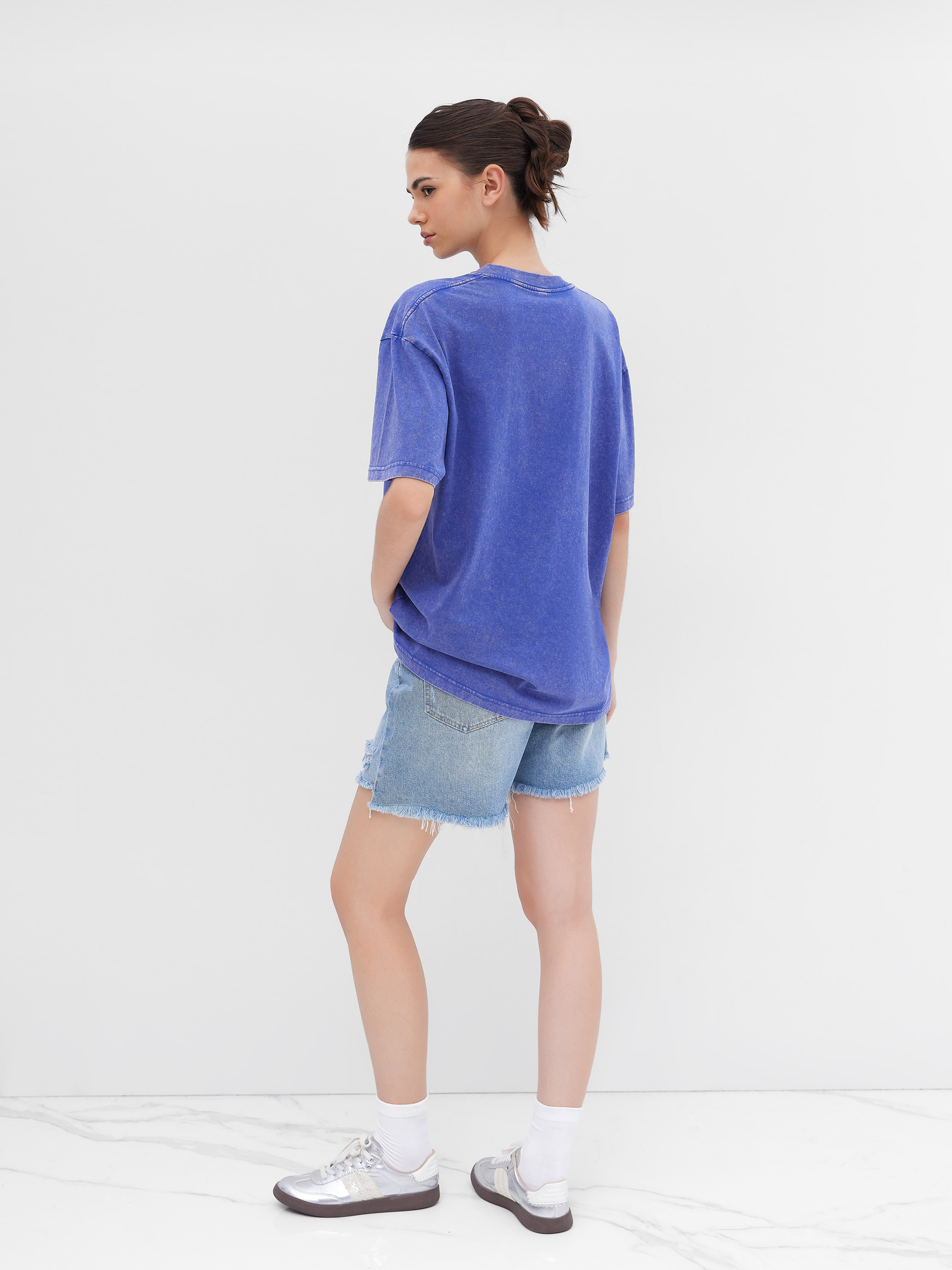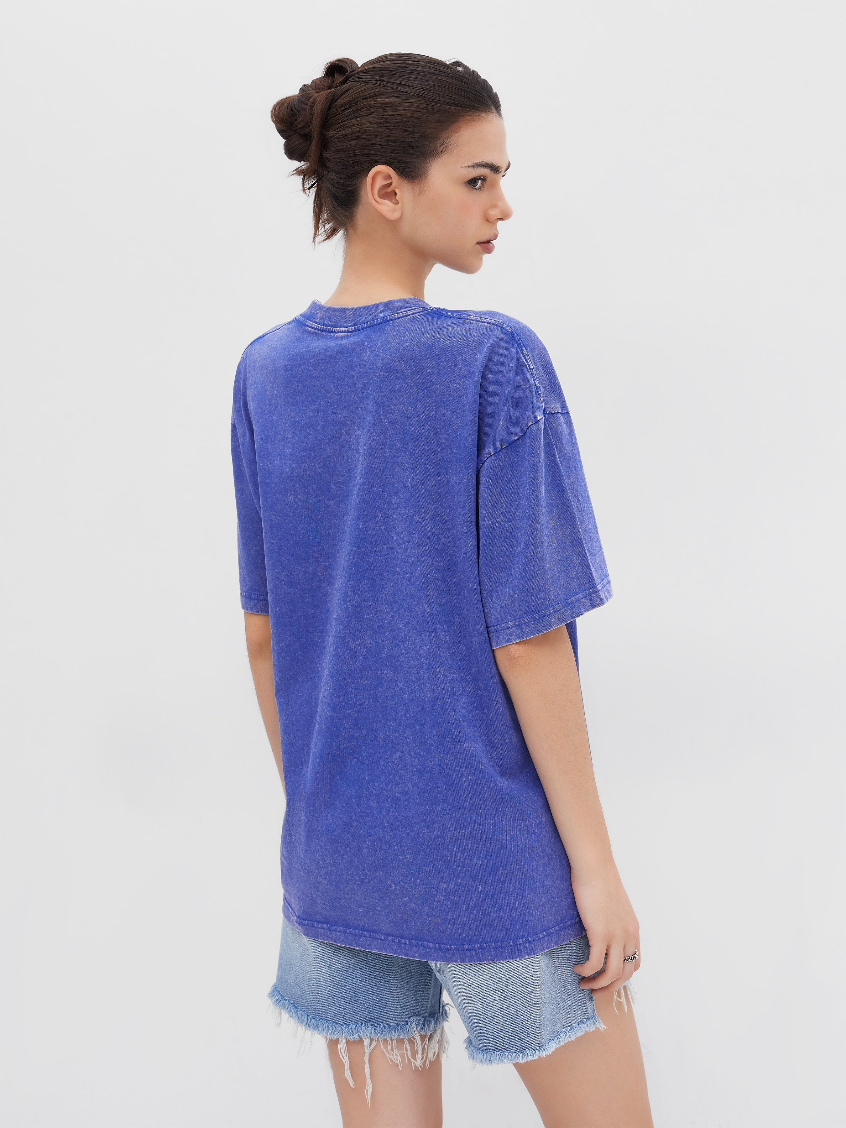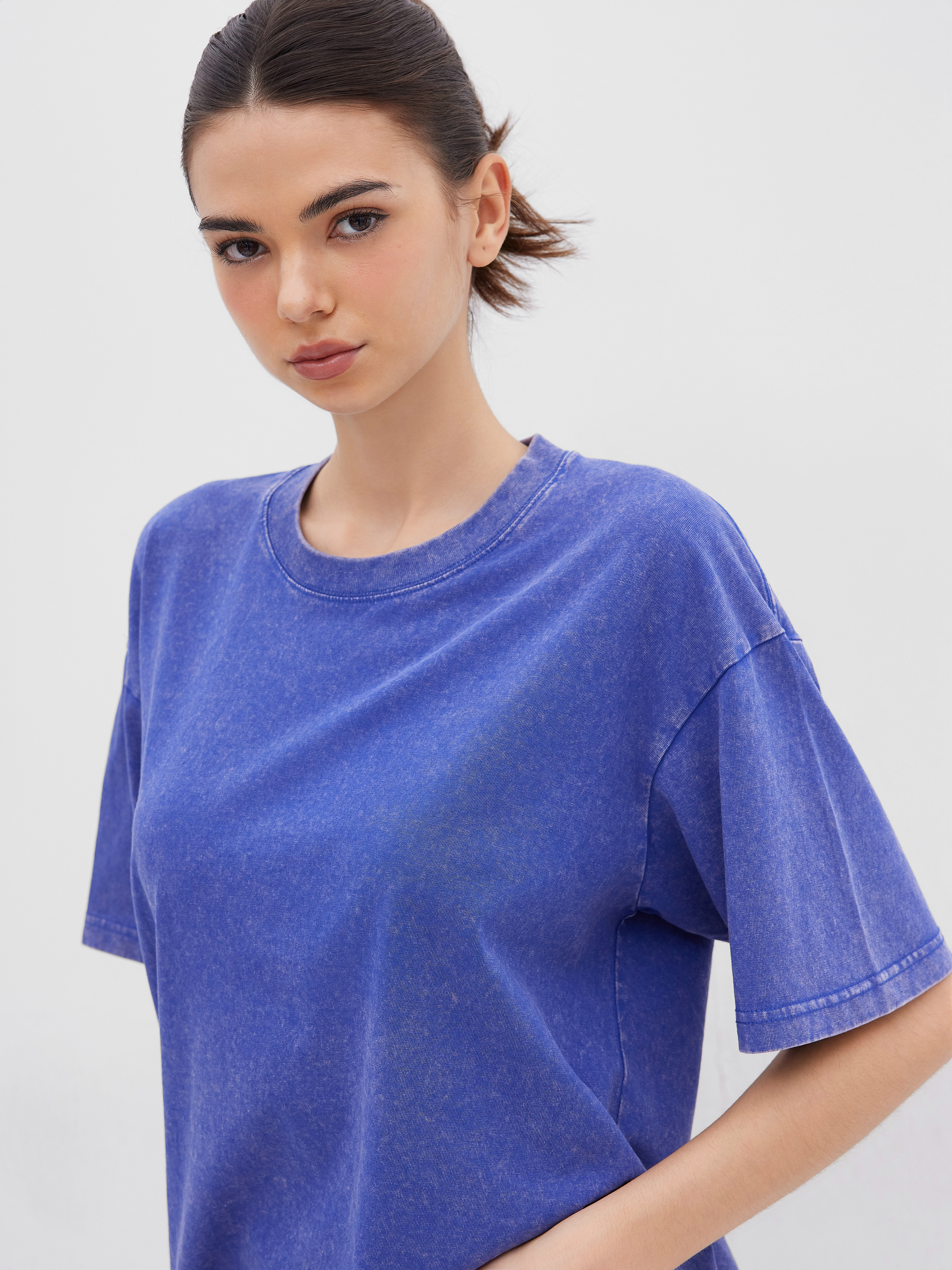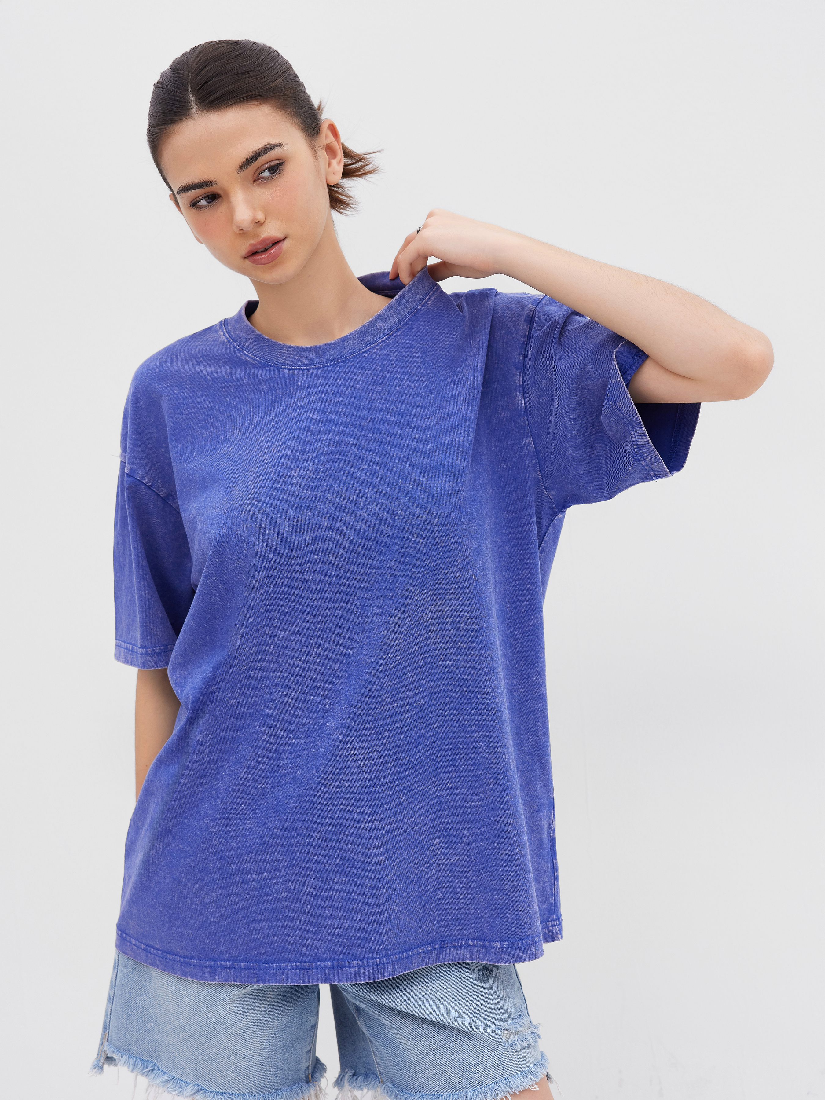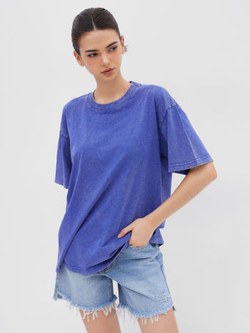 T-shirt oversize lavata 100% cotone con scollo rotondo