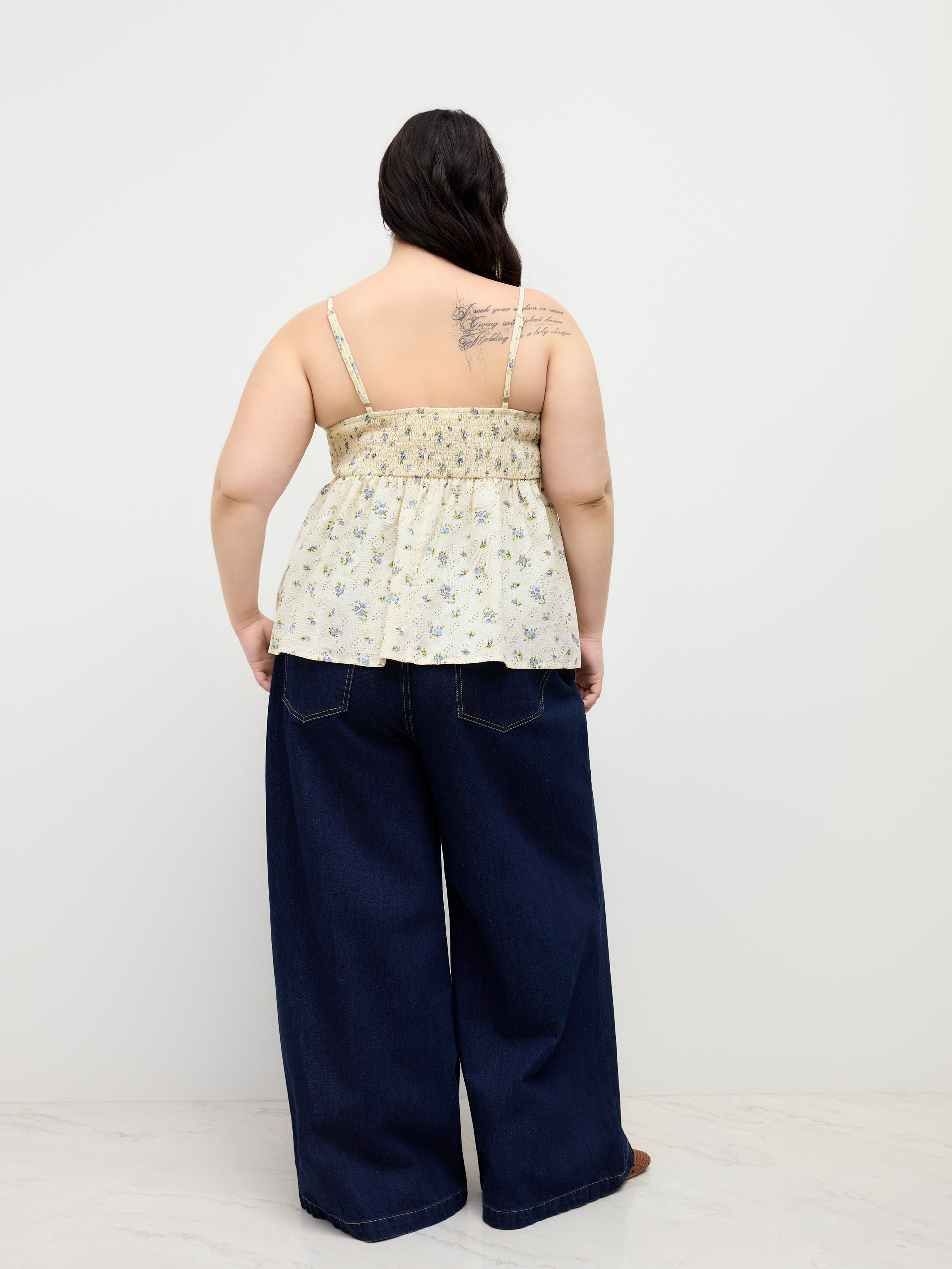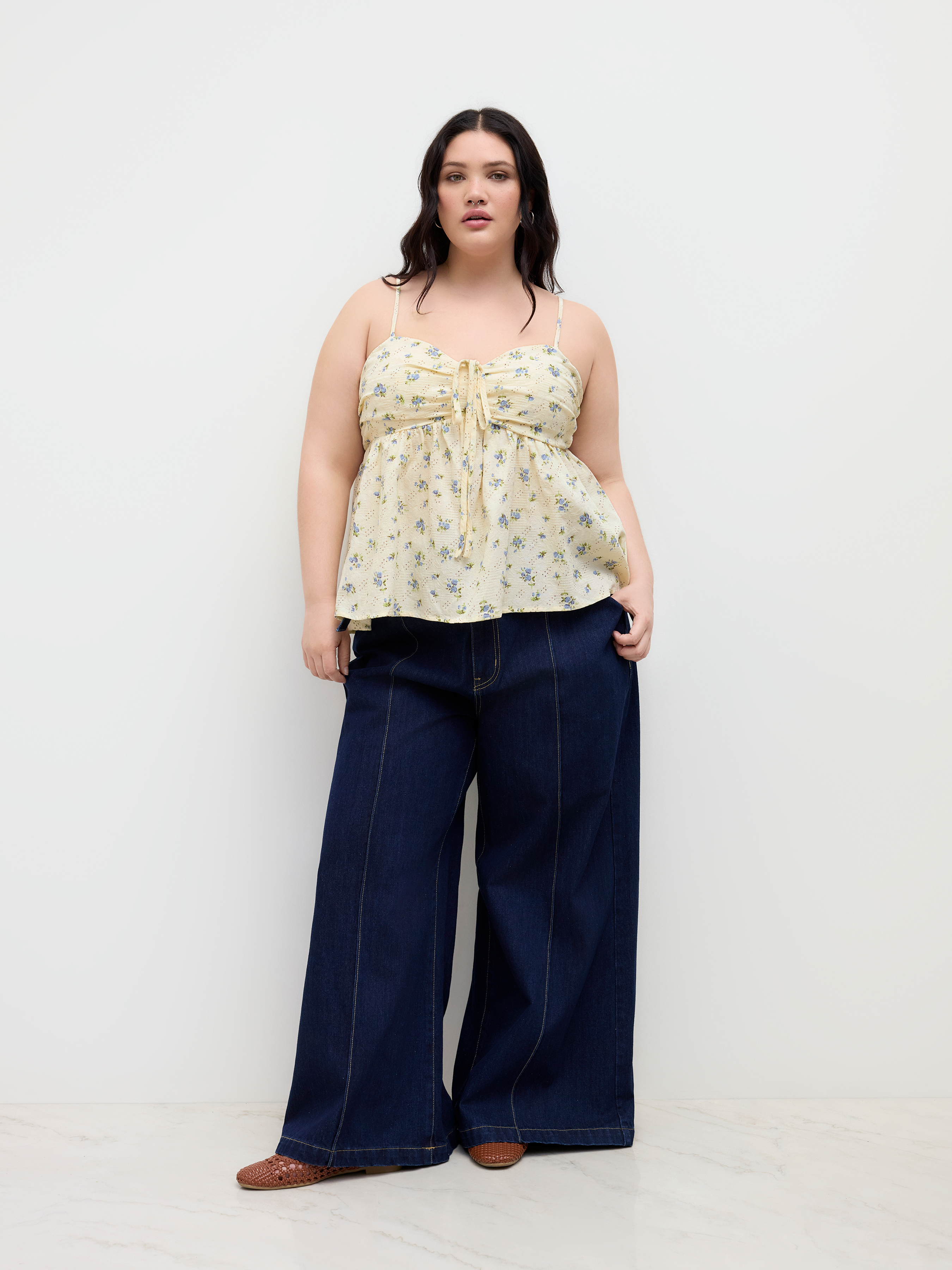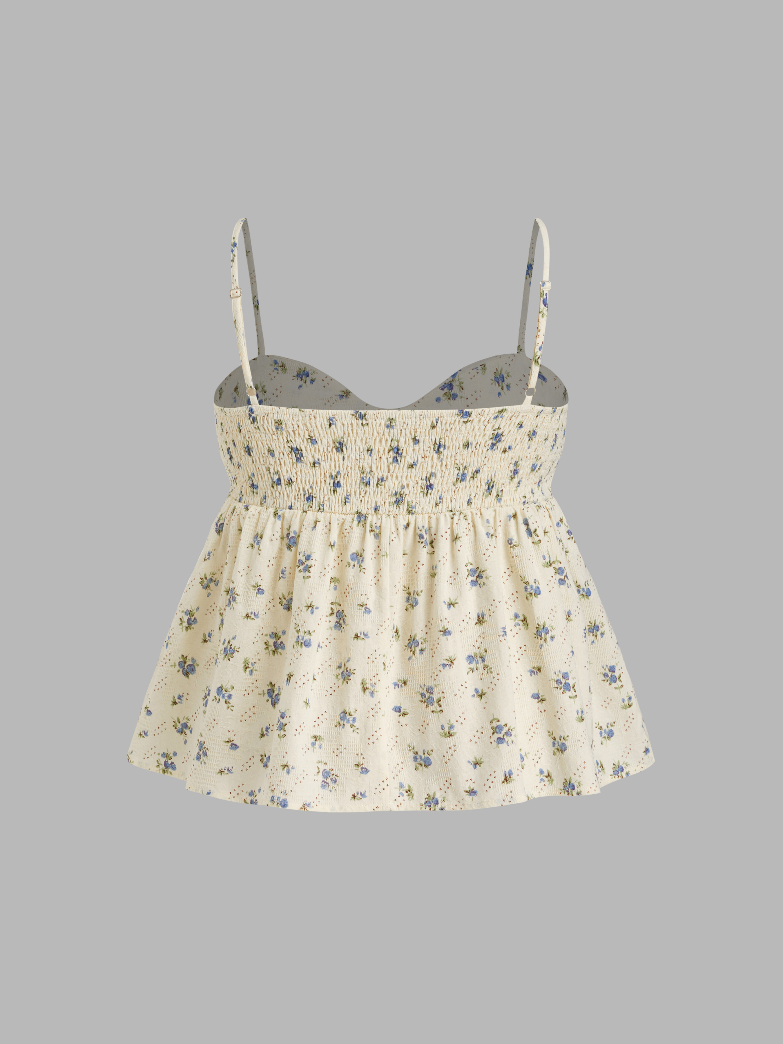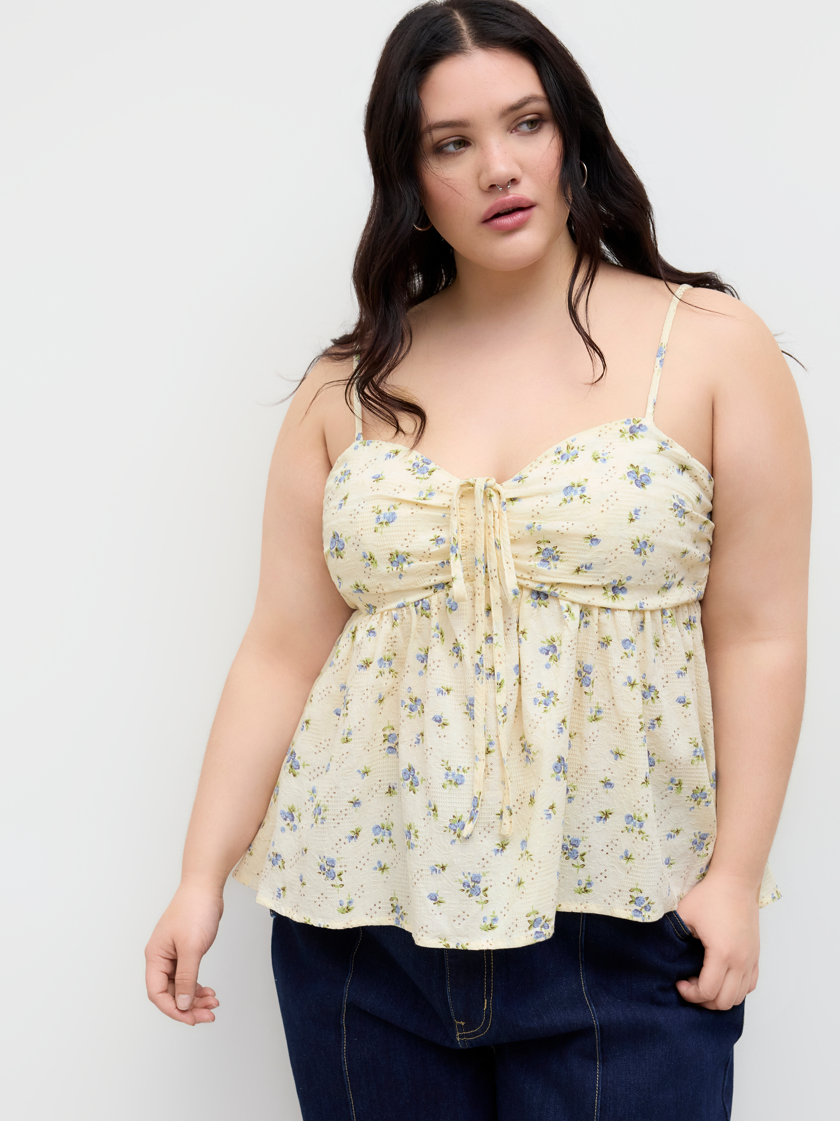 Top Cami Curvy & Plus con Scollo a V Floreale Annodato e Arricciato in 100% Cotone