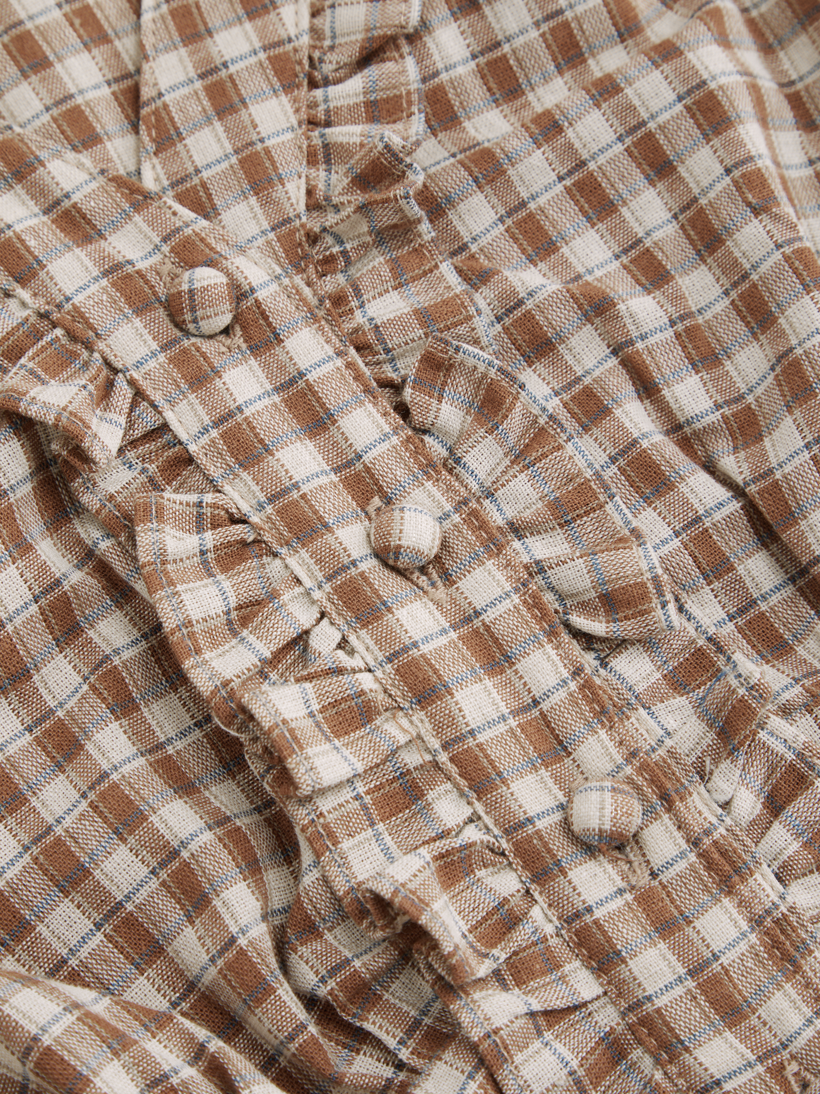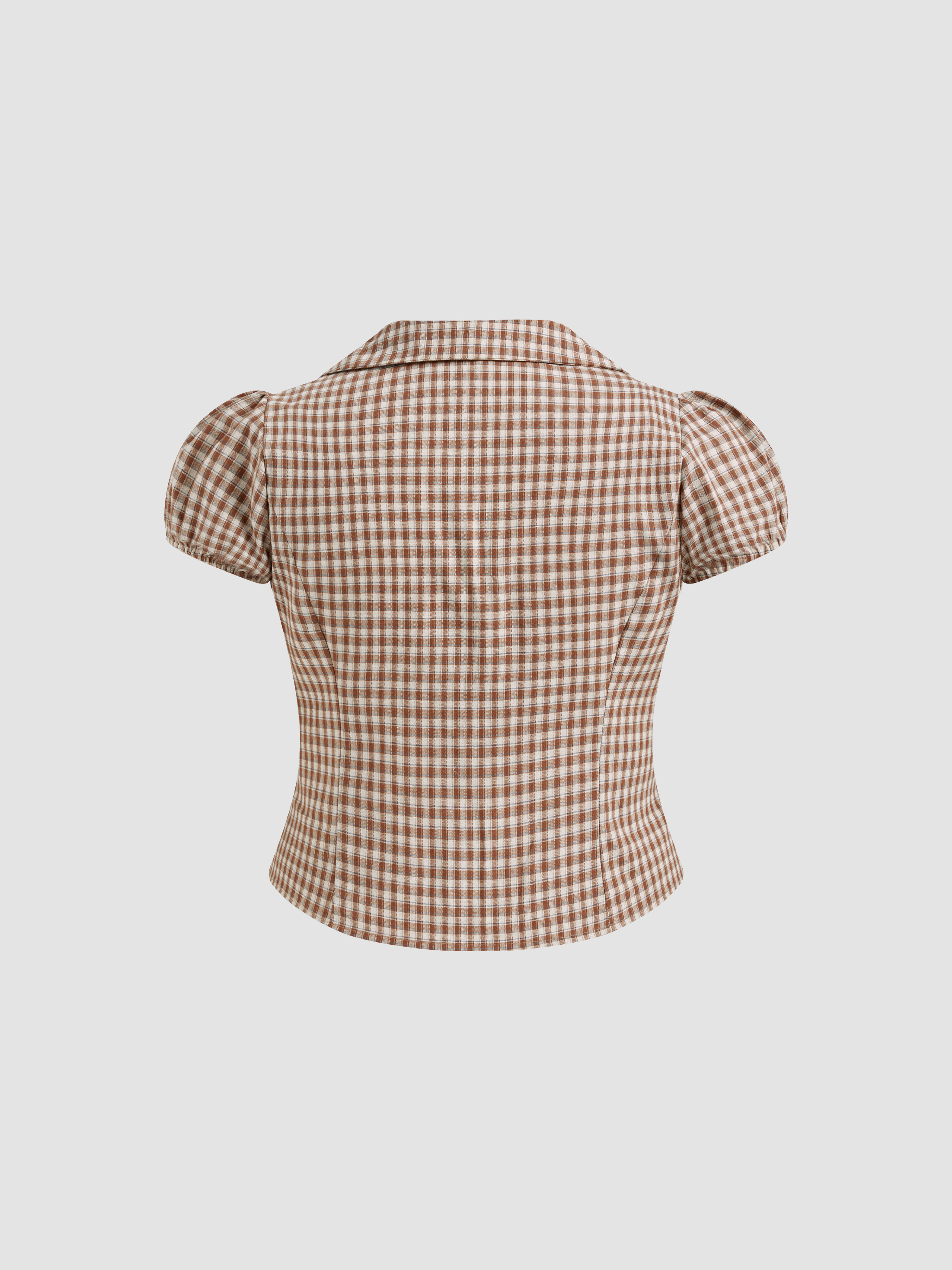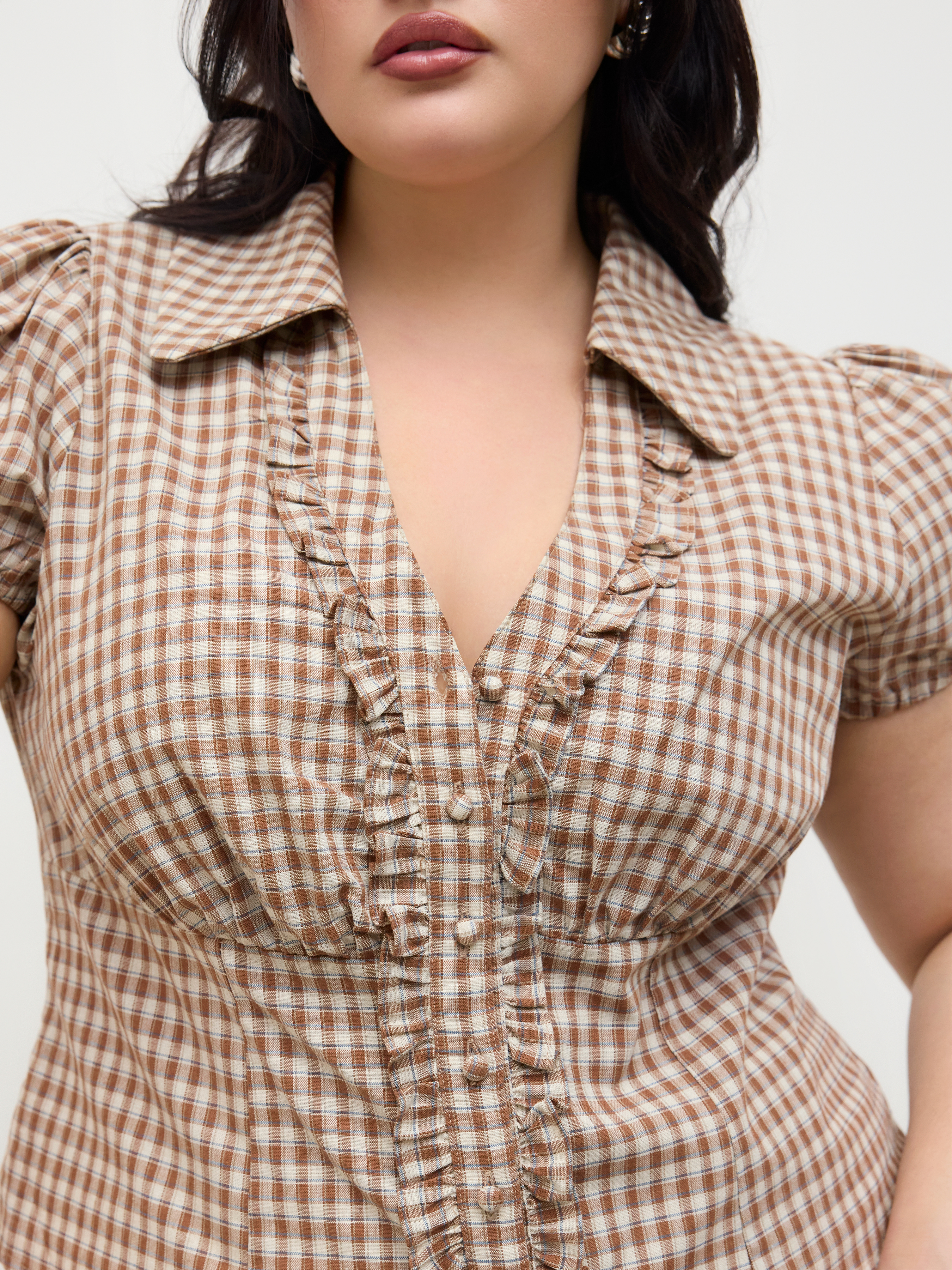 Camicetta a maniche corte a quadri con scollo a V in 100% cotone Curve & Plus