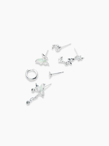 SET DI 3 PAIA DI ORECCHINI A FARFALLA E FIORE