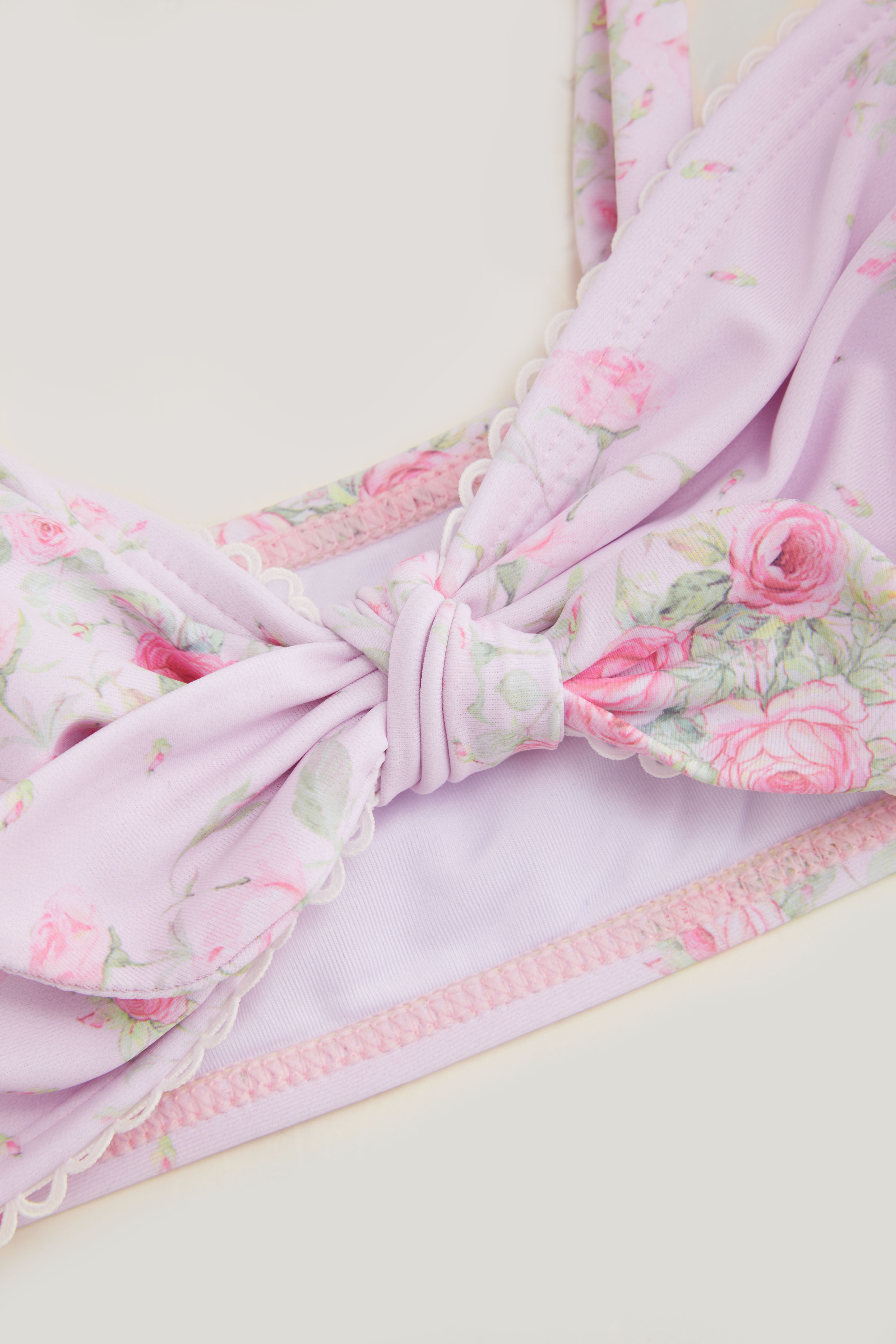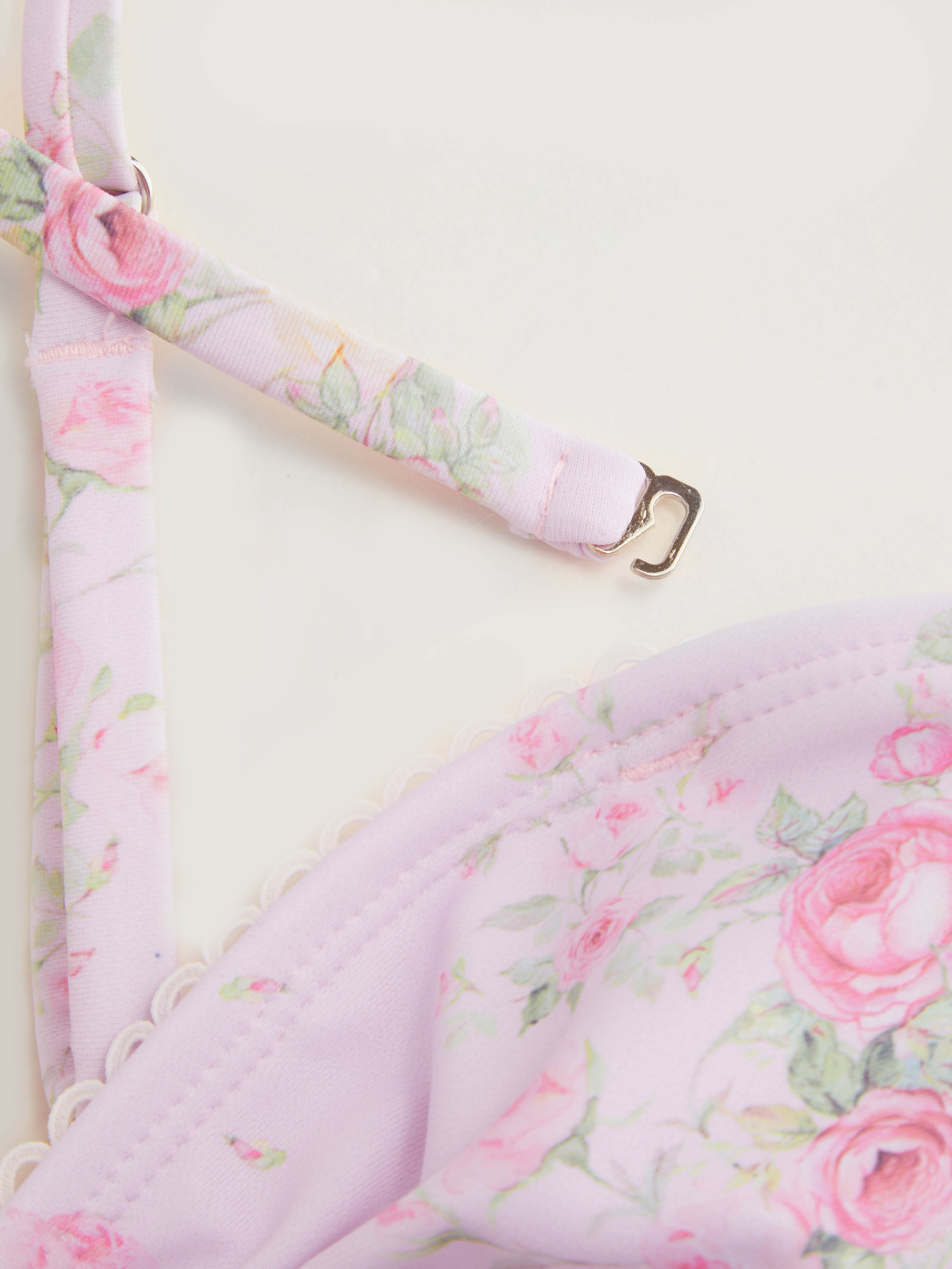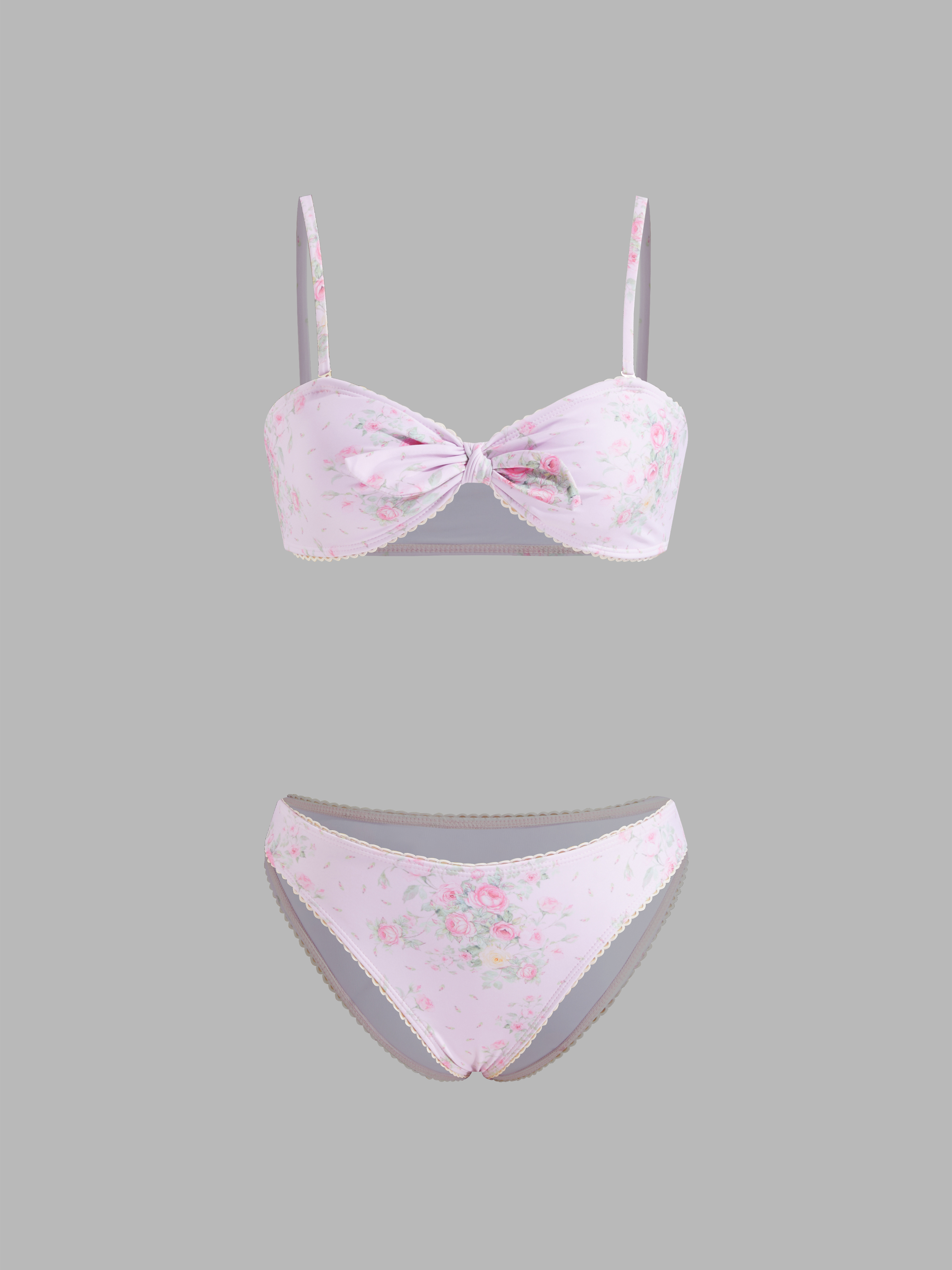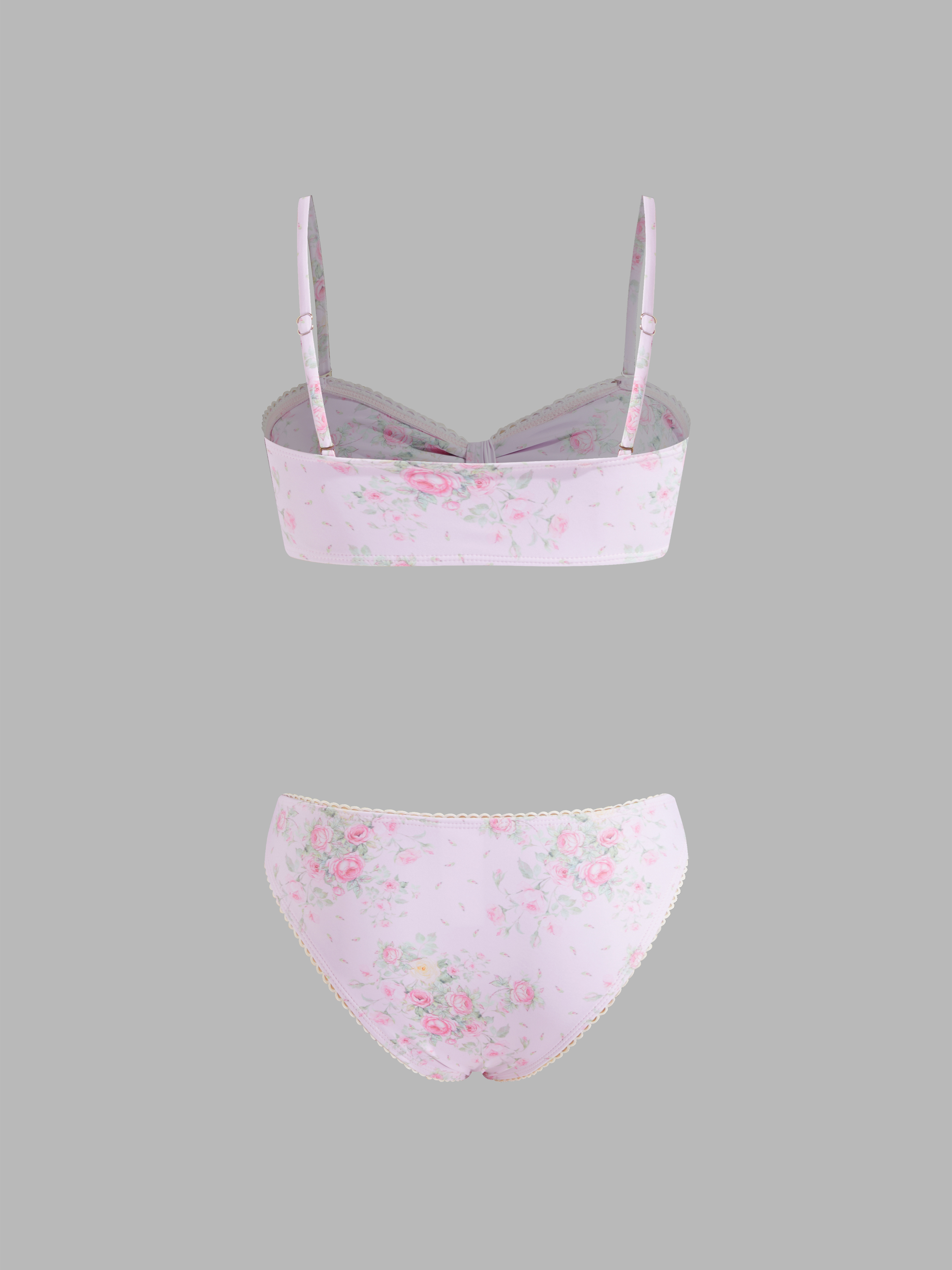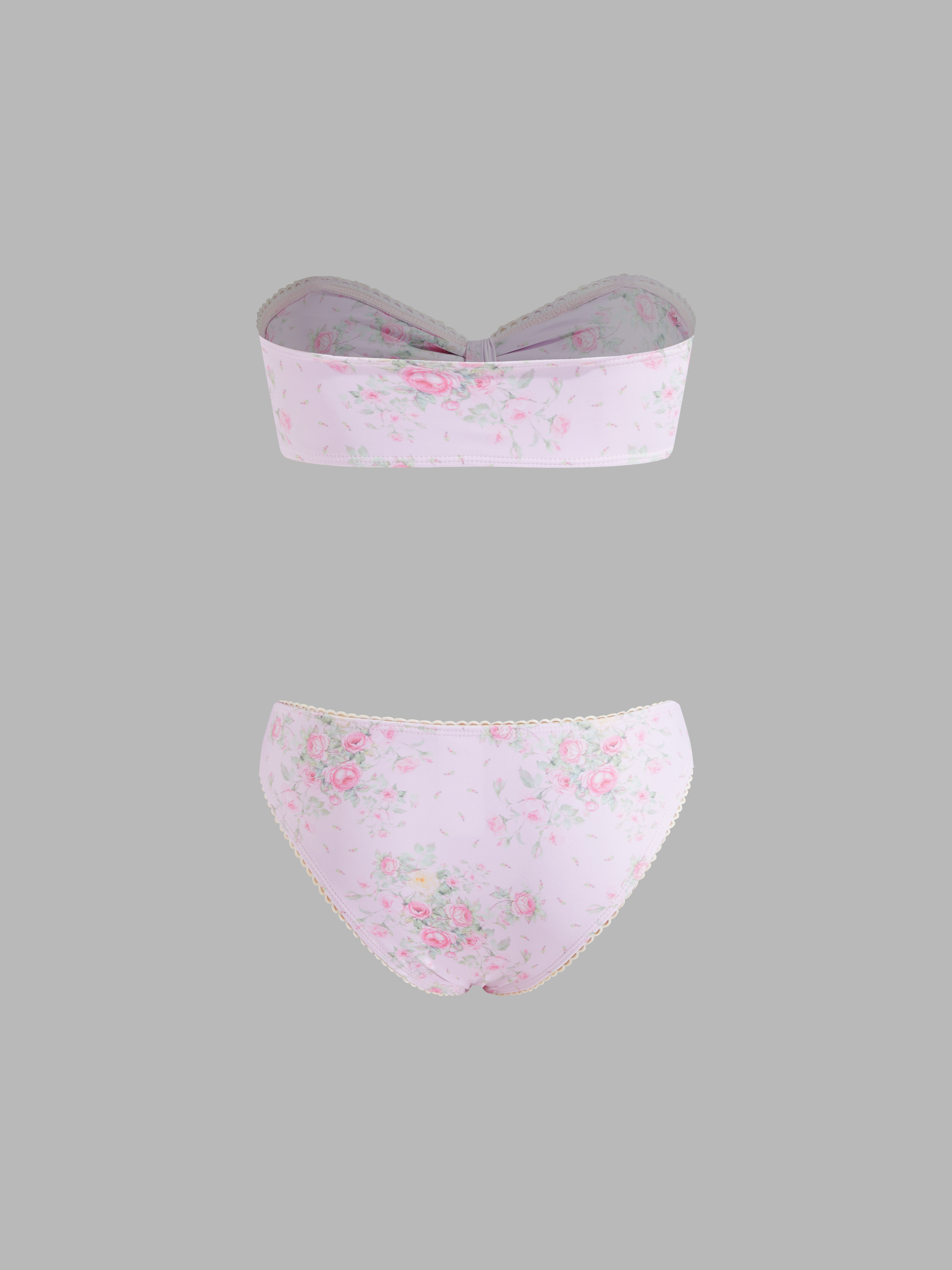 Set bikini malizioso senza spalline con pizzo floreale e taglio a cuore con spalline regolabili