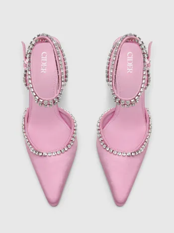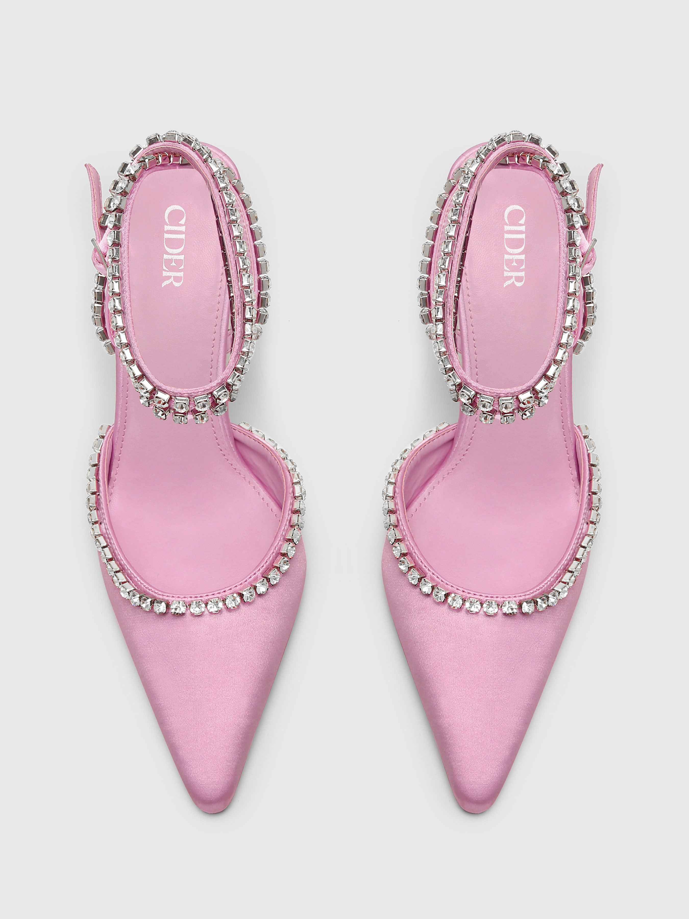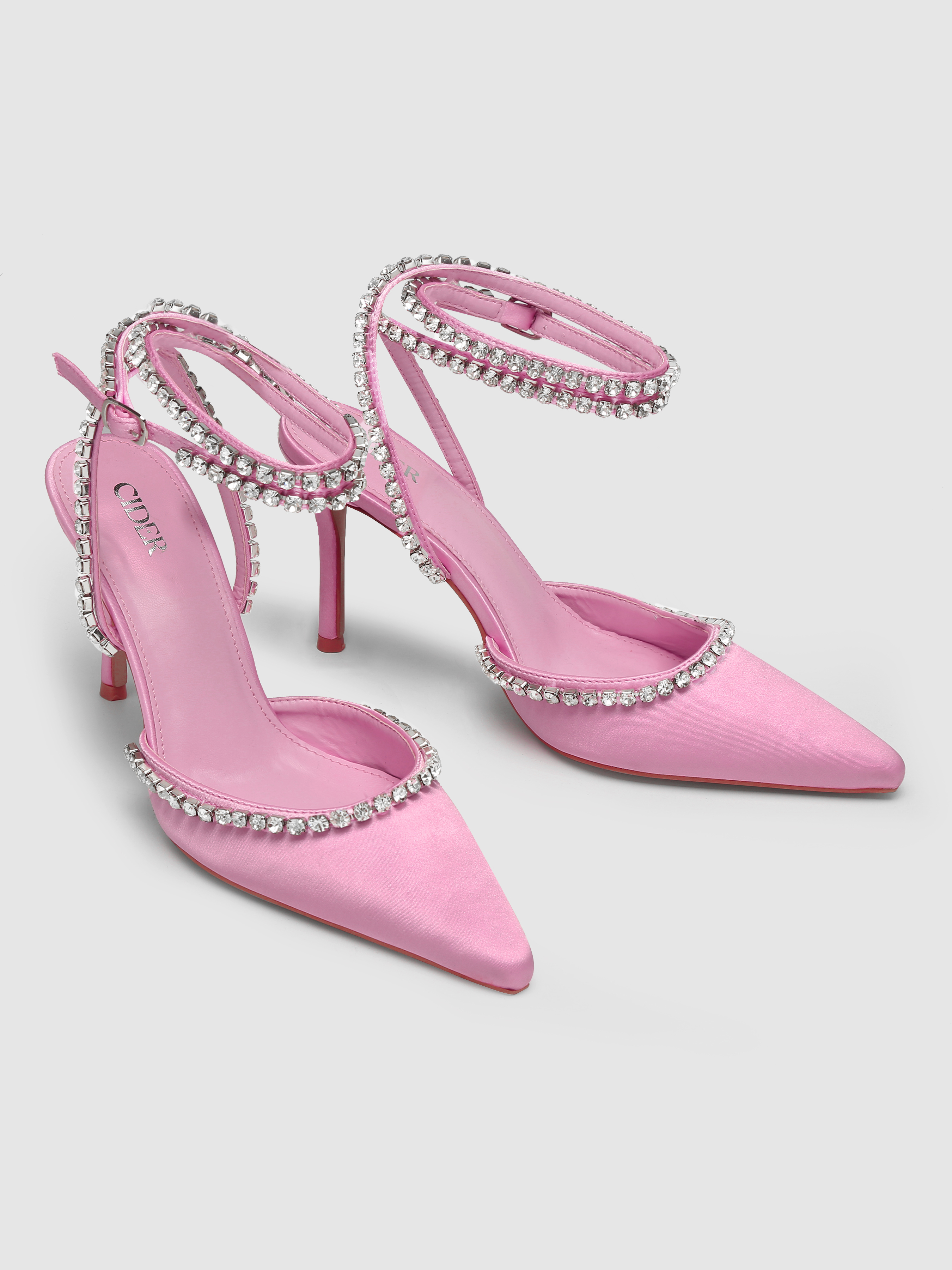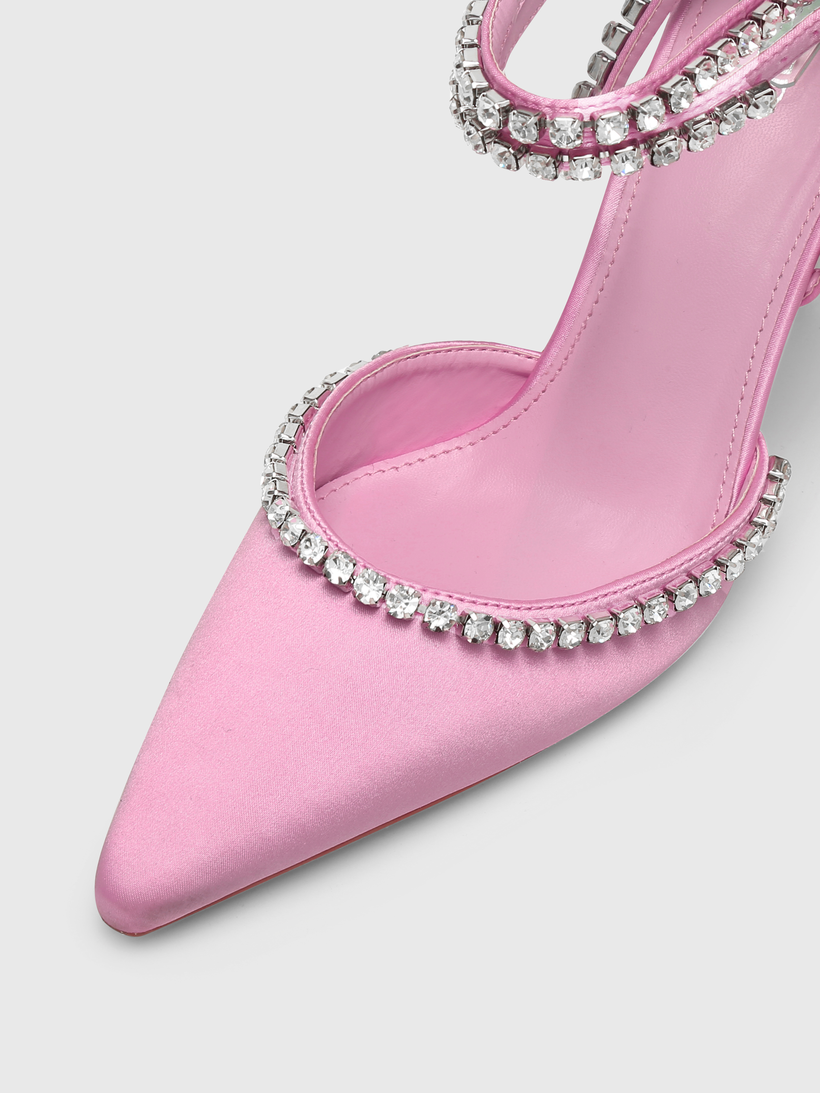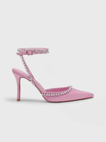 Tacchi a spillo decorati con strass a punta con cinturino alla caviglia