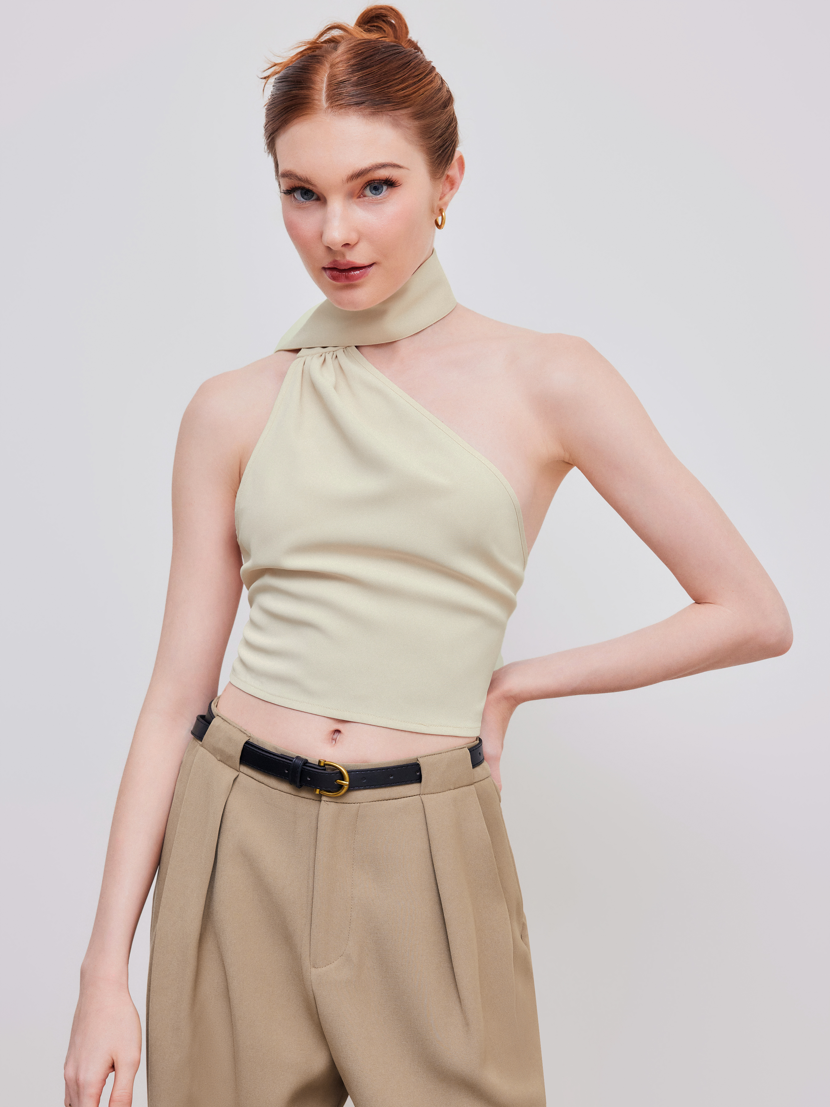 Top corto con scollo asimmetrico