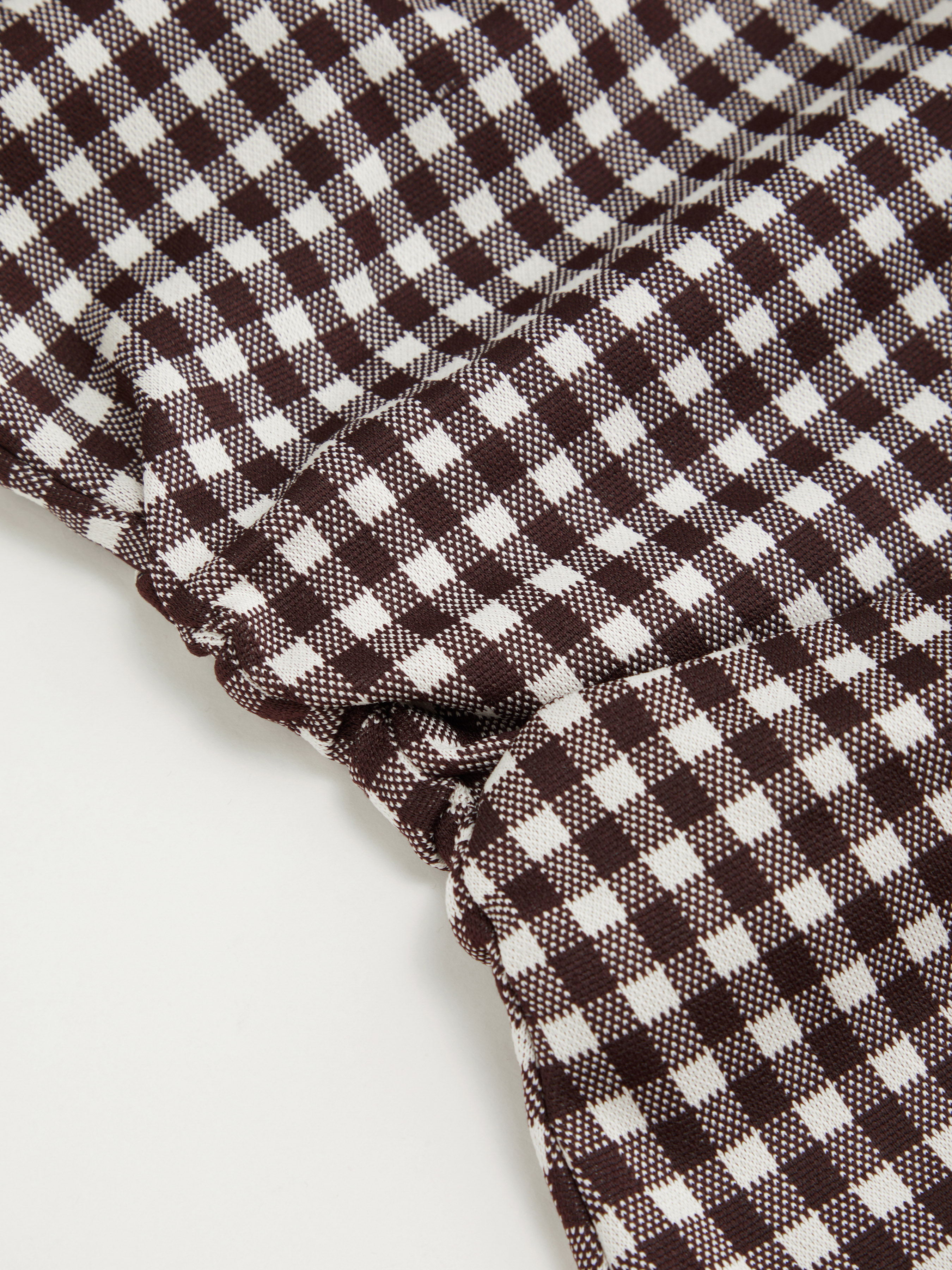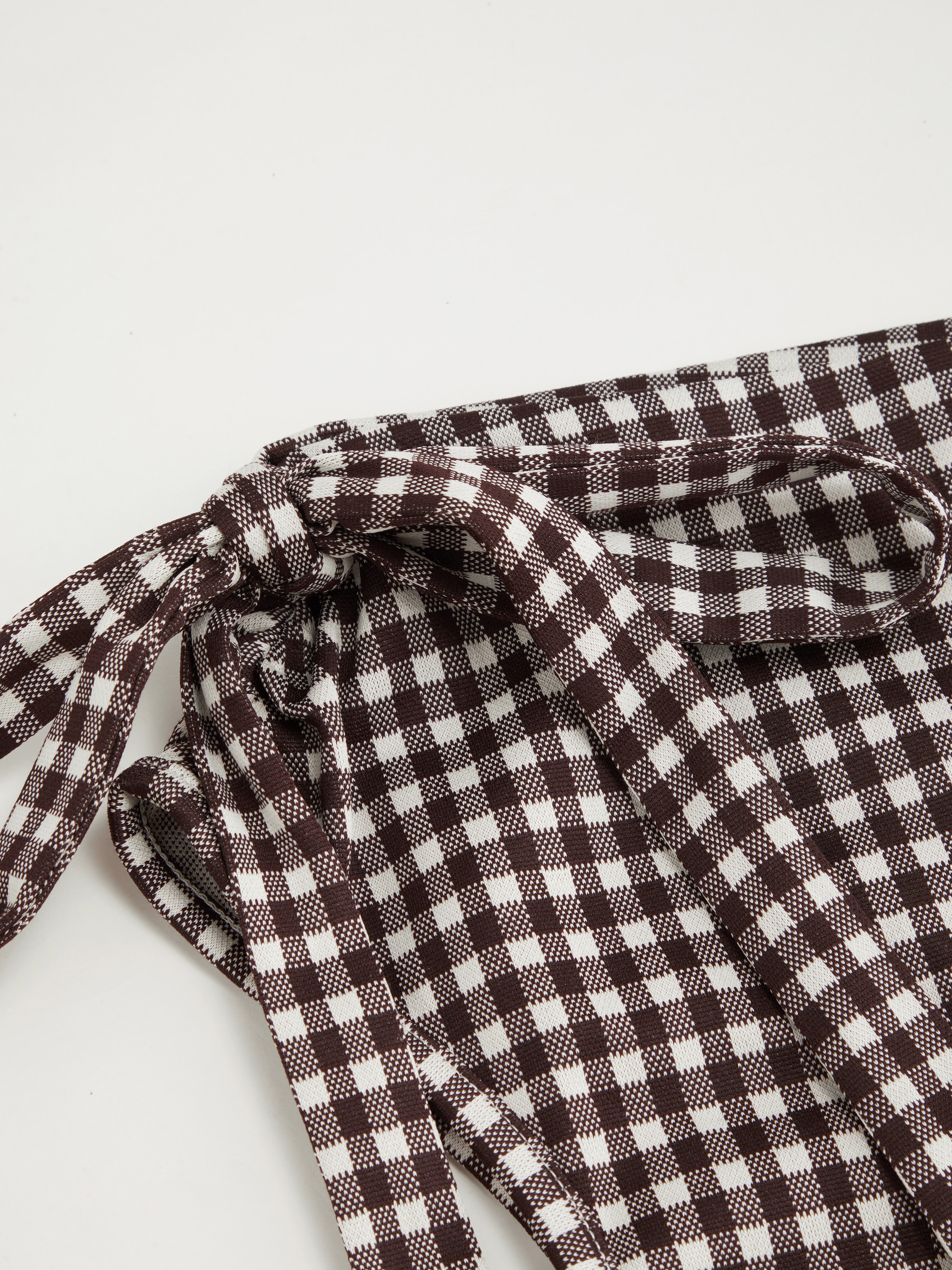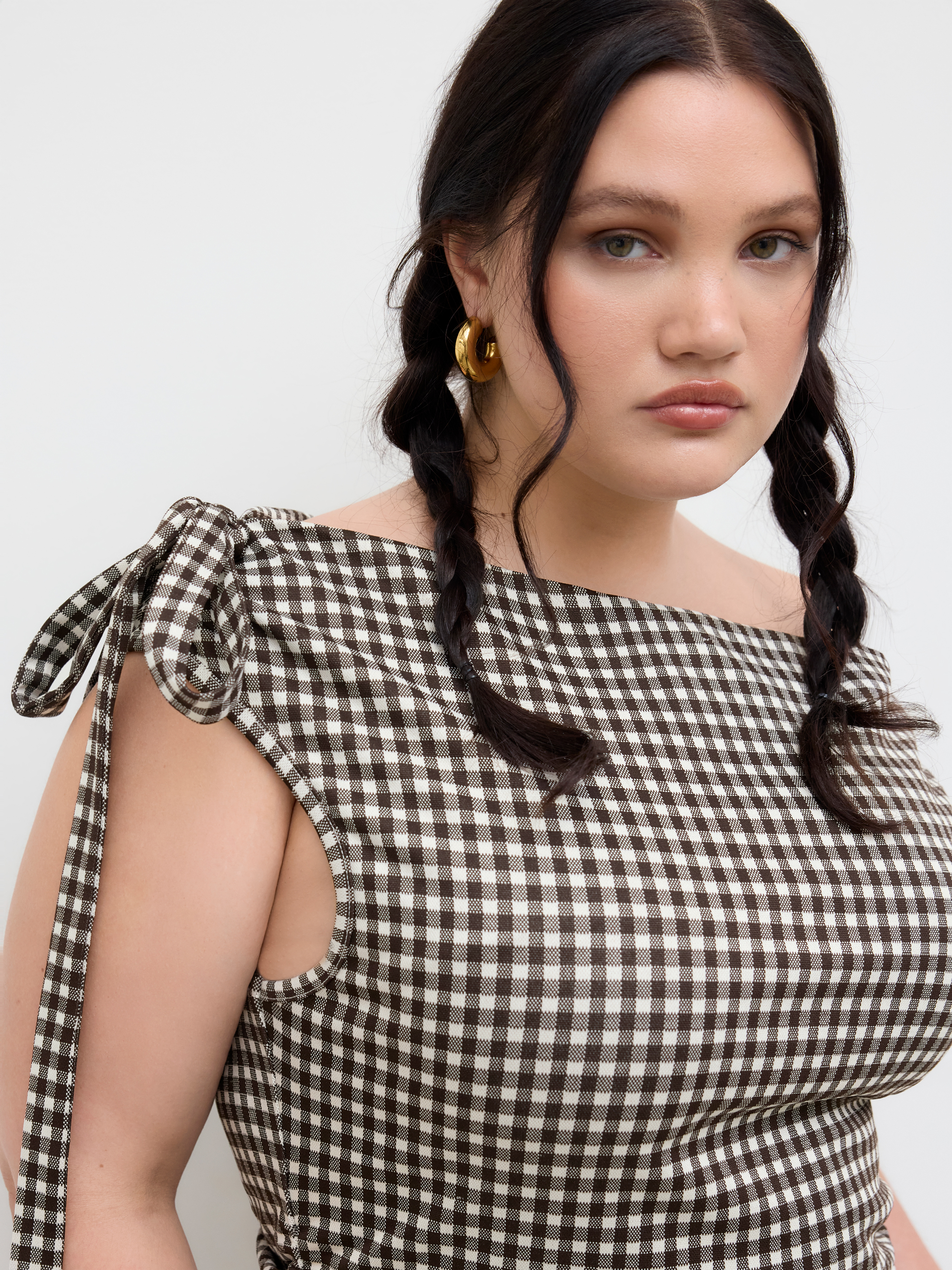 Abito Mini Curvy & Plus a Quadri Gingham con Scollo Asimmetrico Annodato e Arricciato