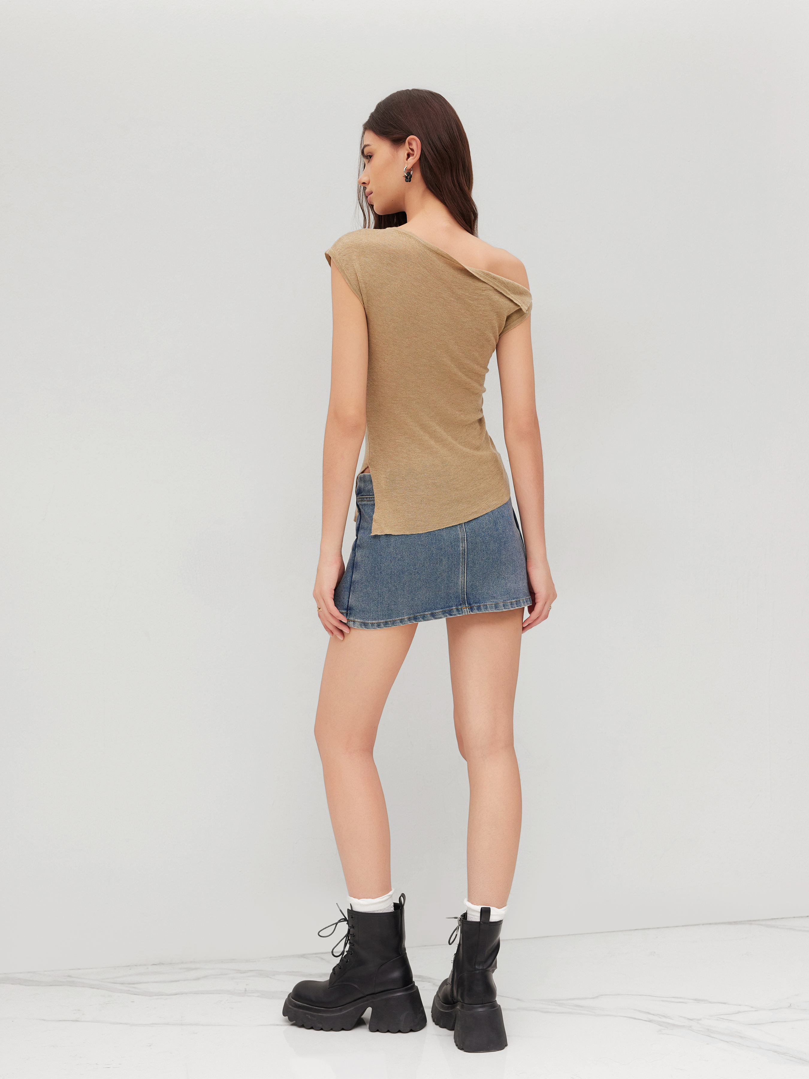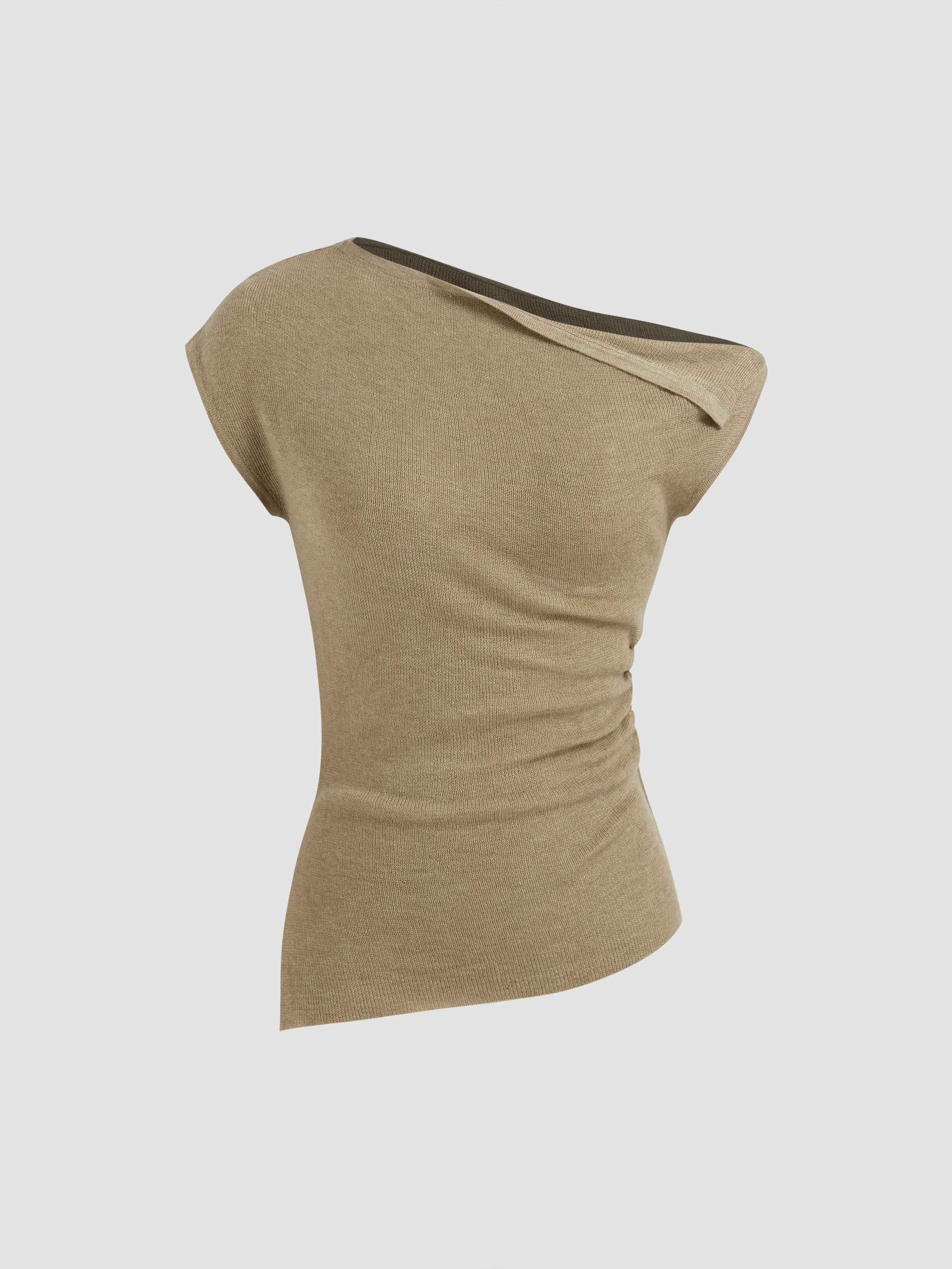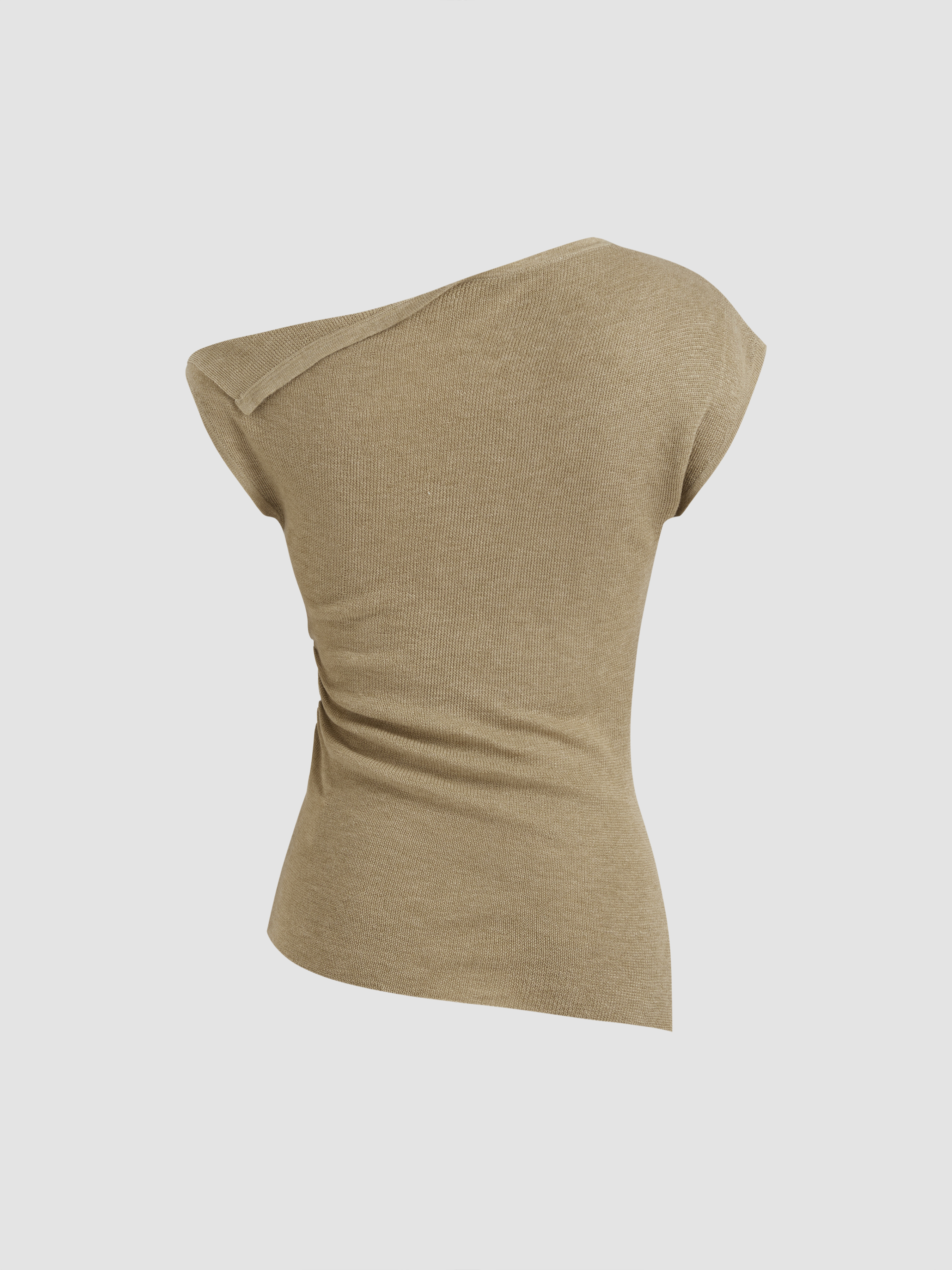 Top in maglia arricciato asimmetrico con scollo in misto lana