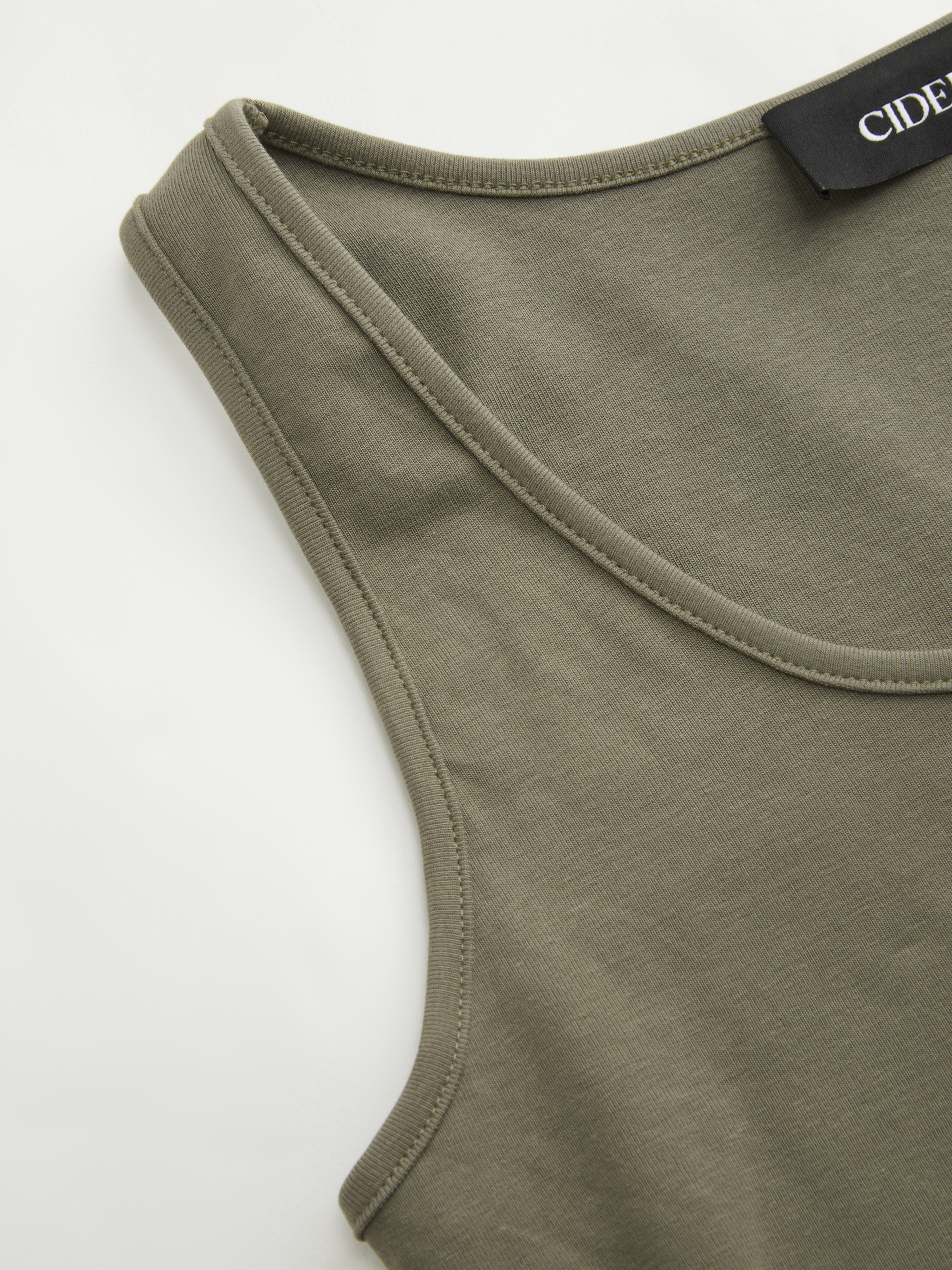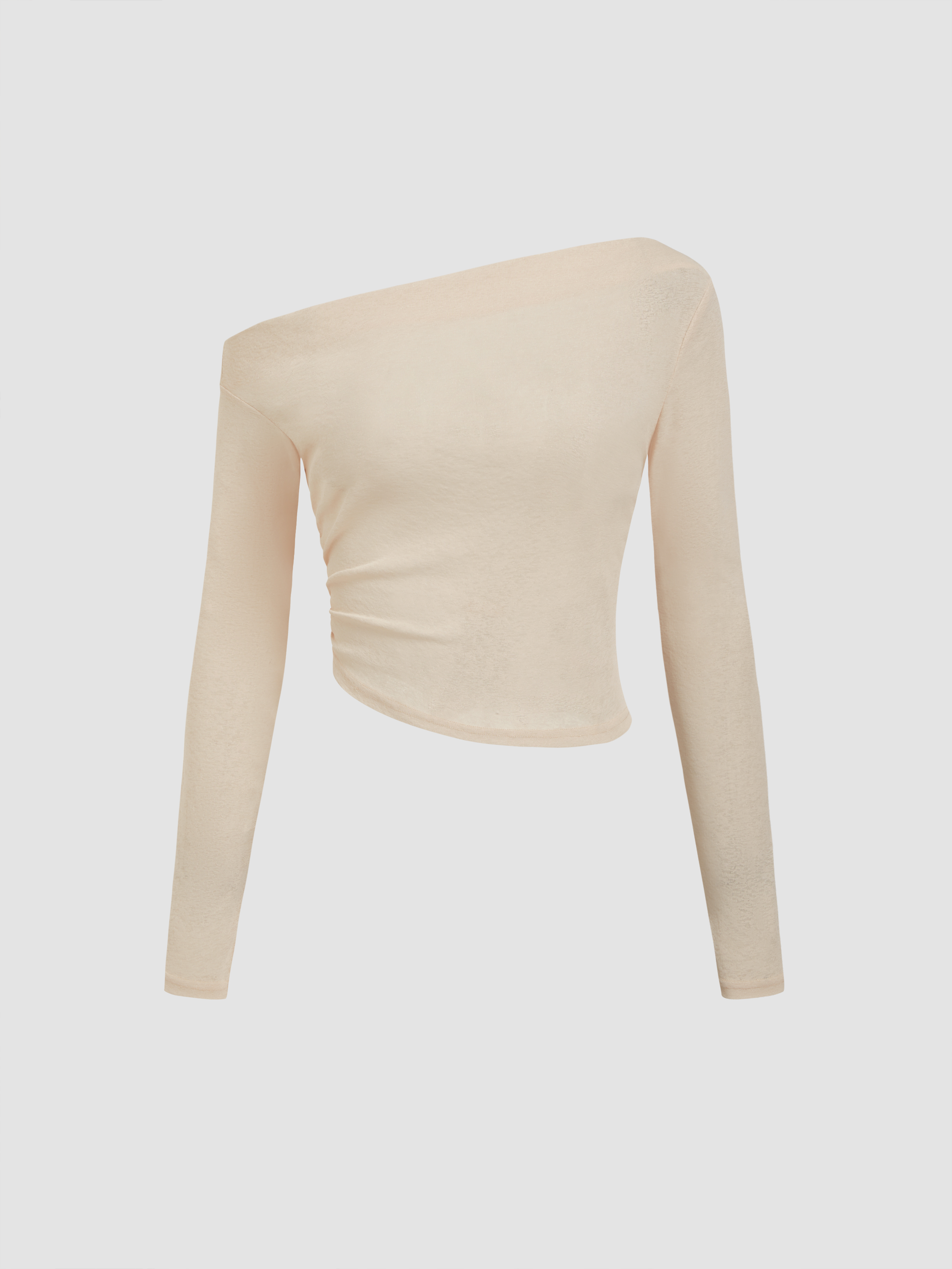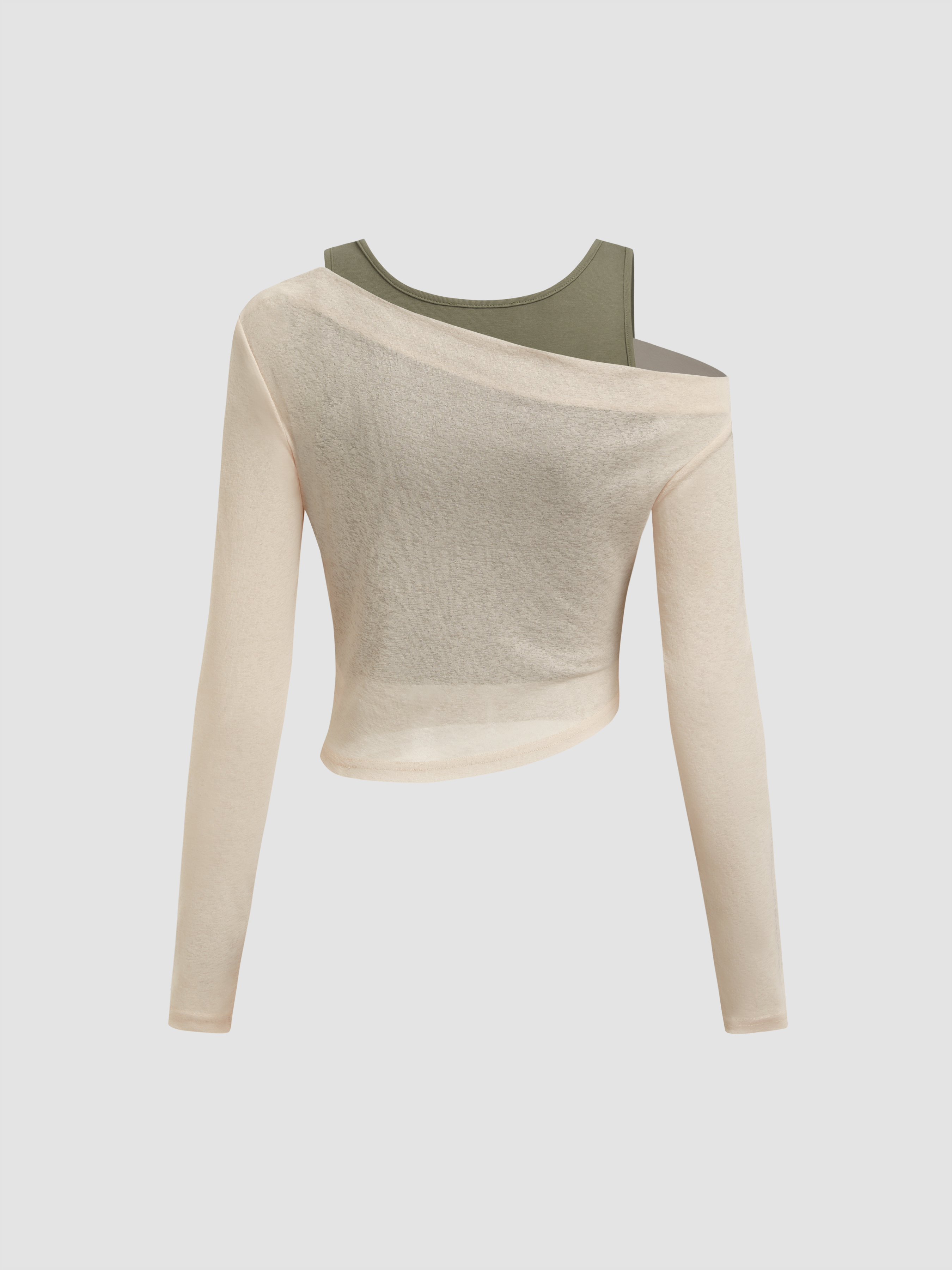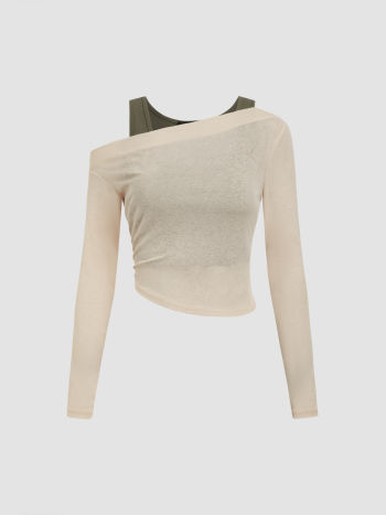 Top asimmetrico con dettaglio arricciato sul collo e canotta basic tinta unita