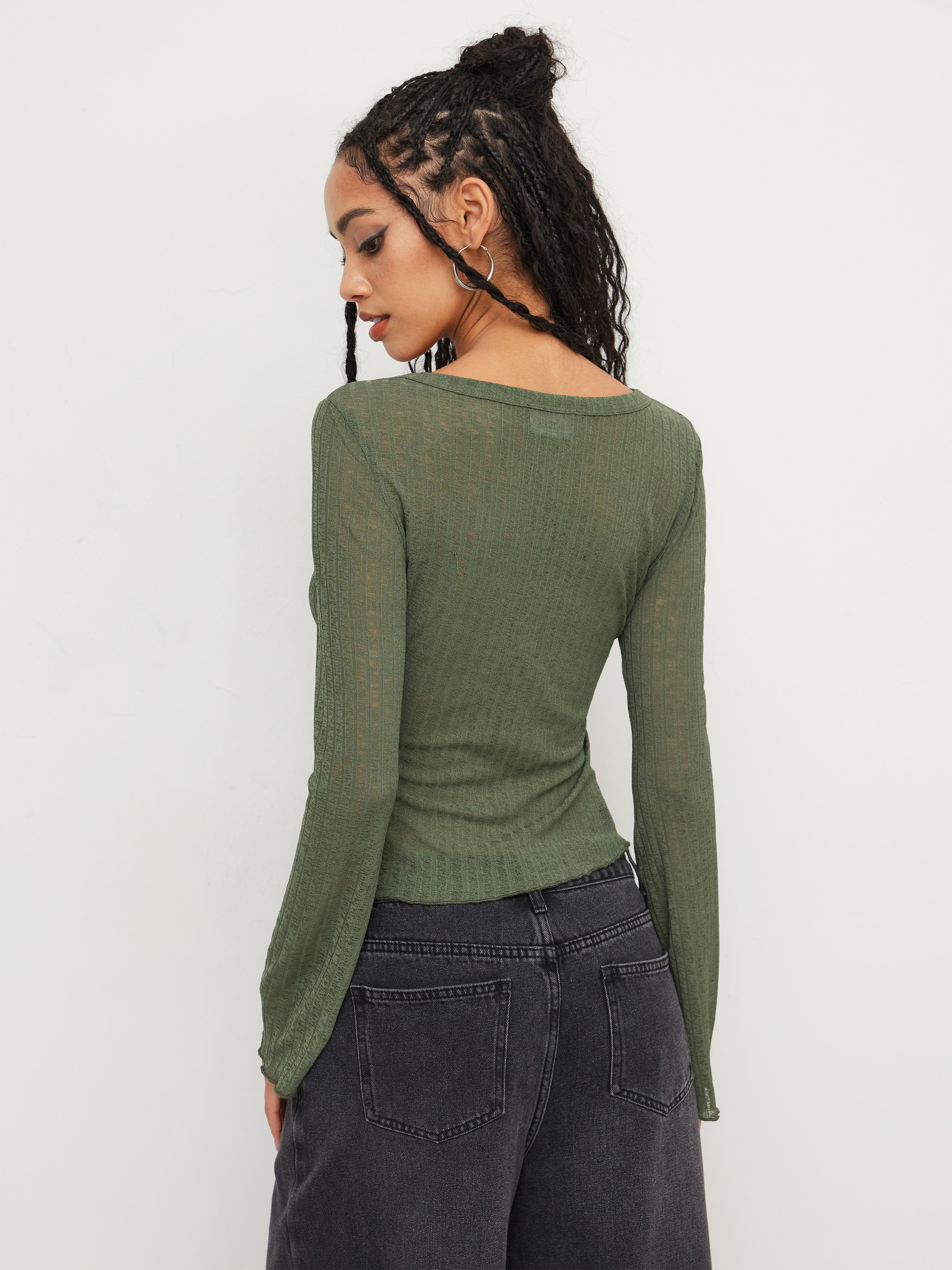 Top asimmetrico con scollo a lattuga