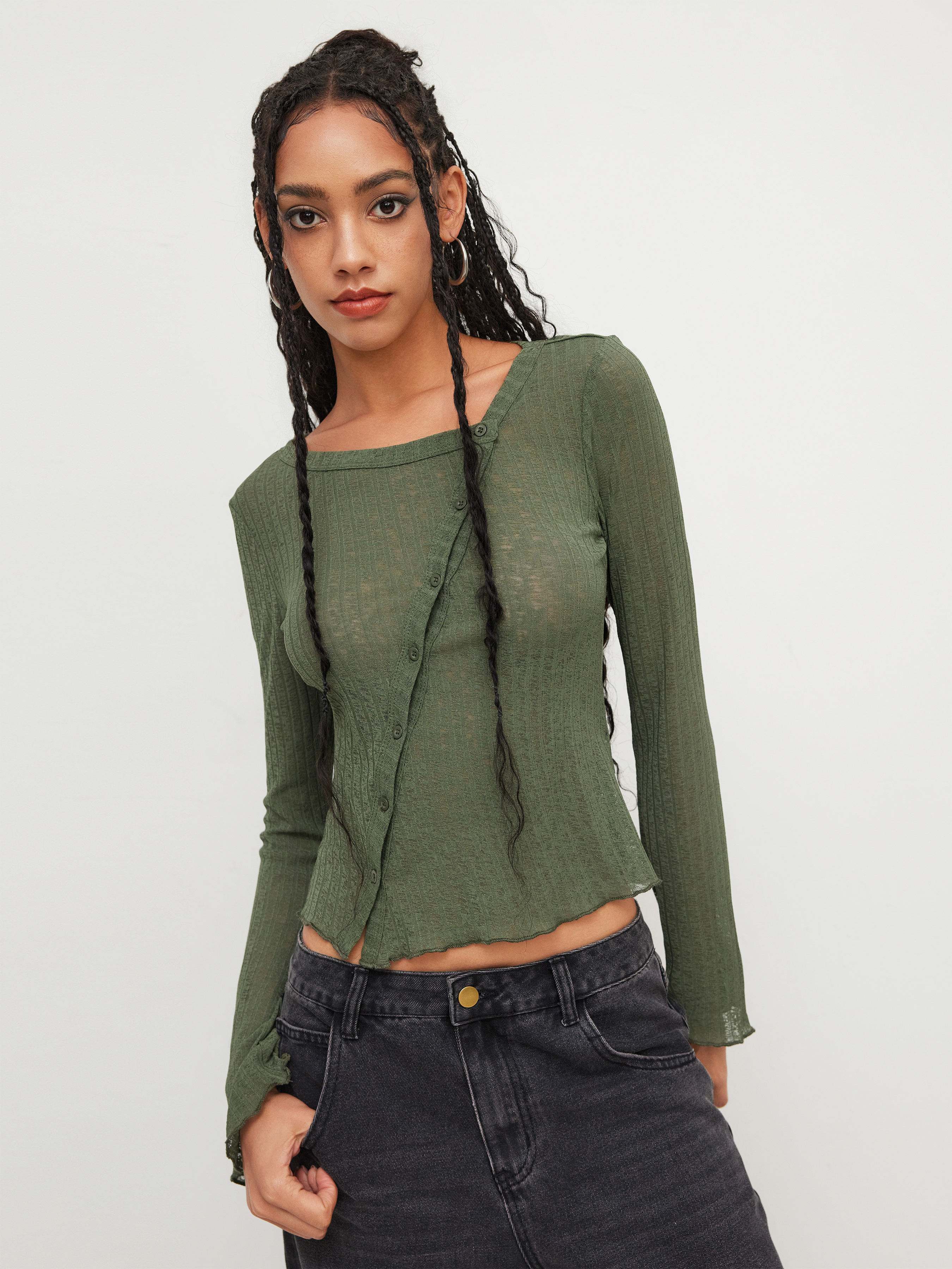 • Caratteristica del capo: Bottone, Orlo a lattuga, Asimmetrico