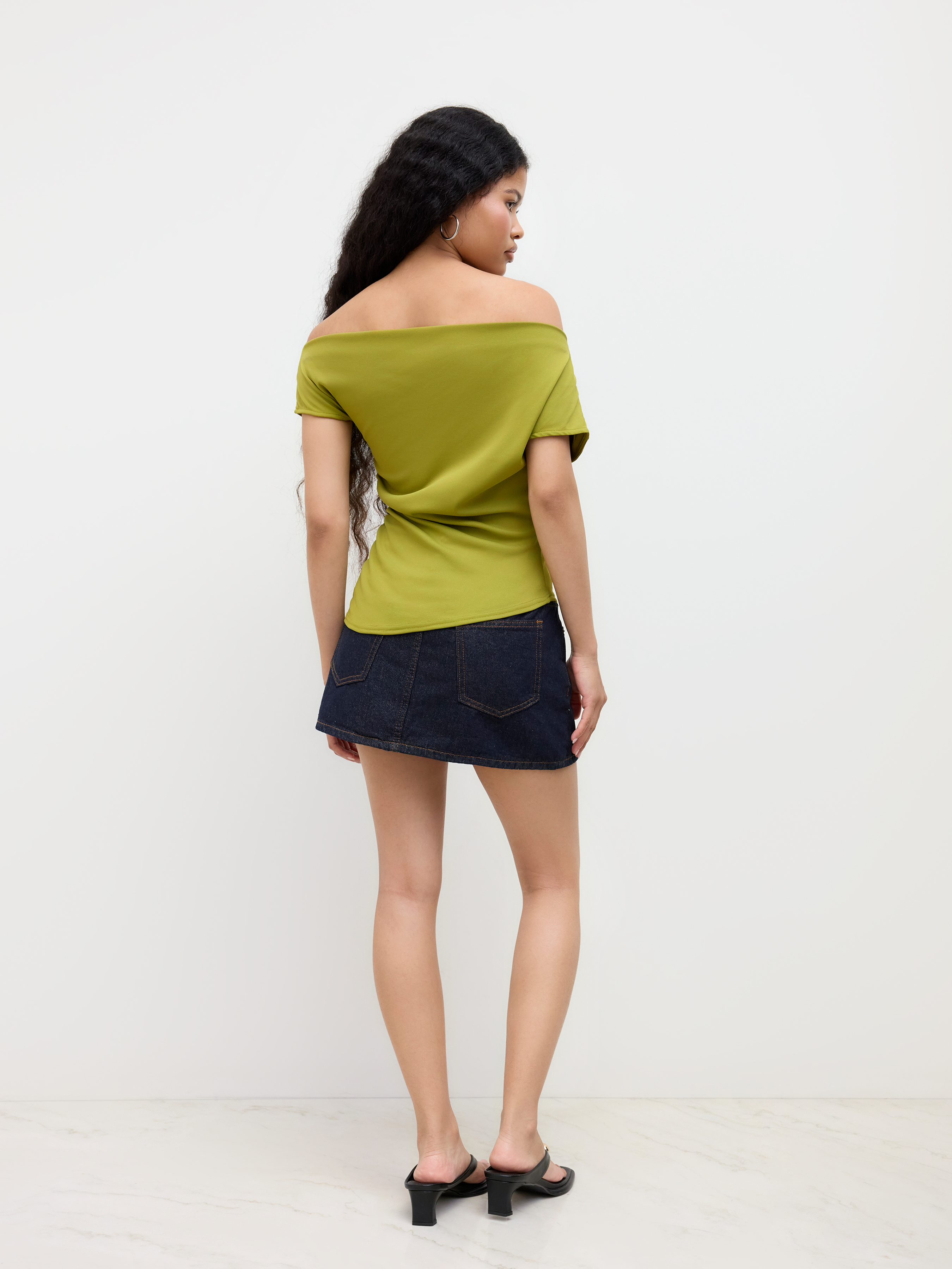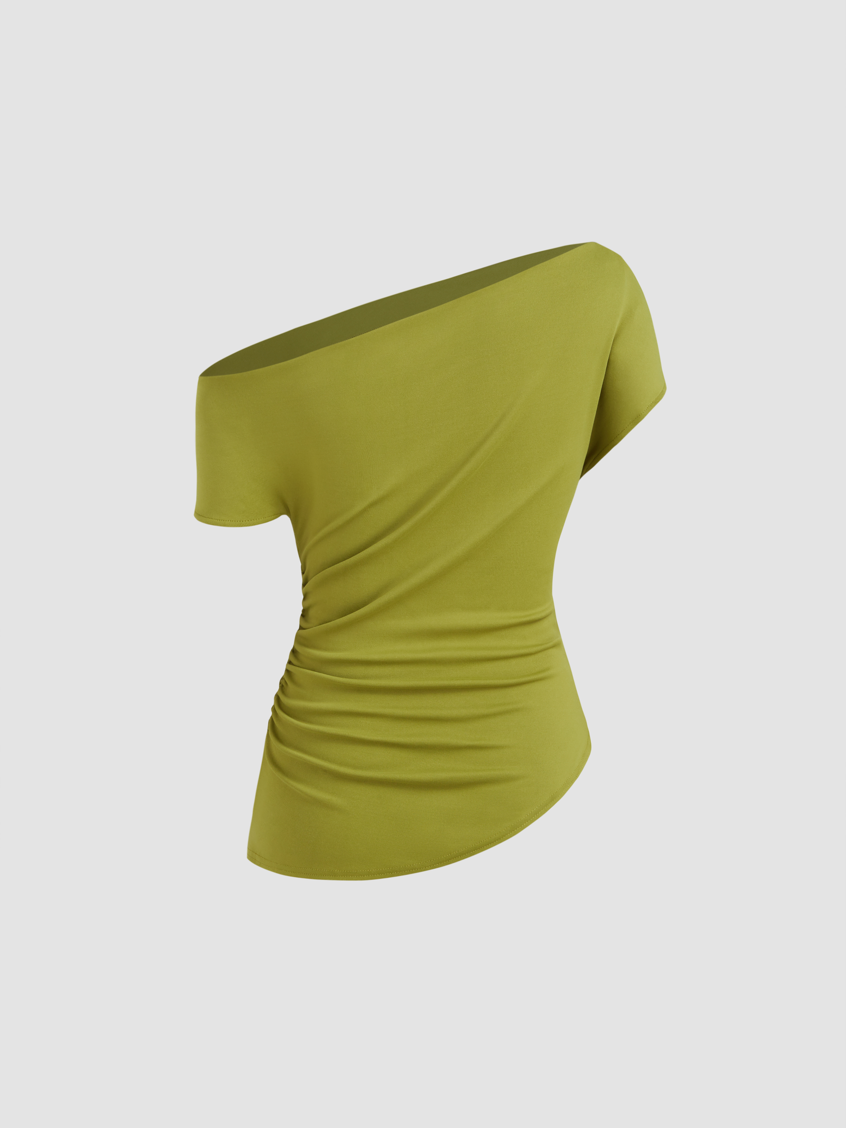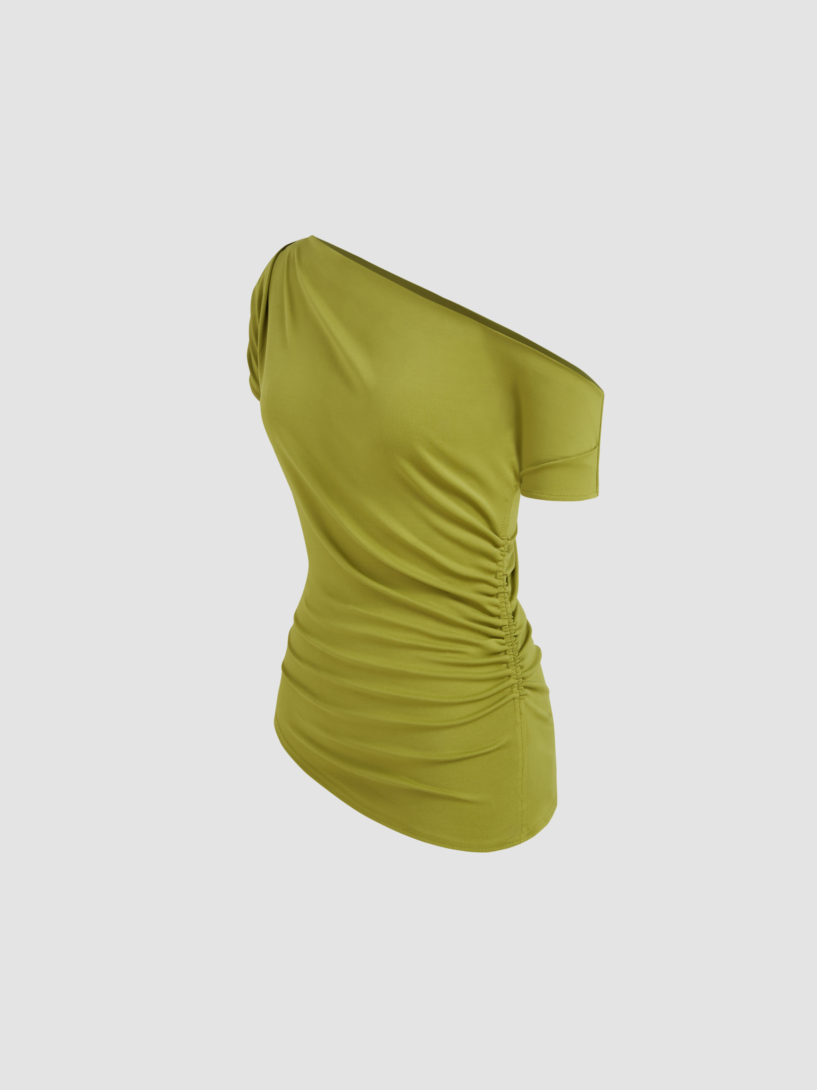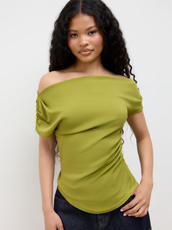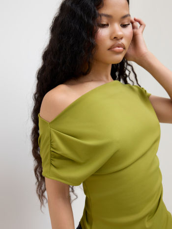 Top a maniche corte increspato con collo asimmetrico