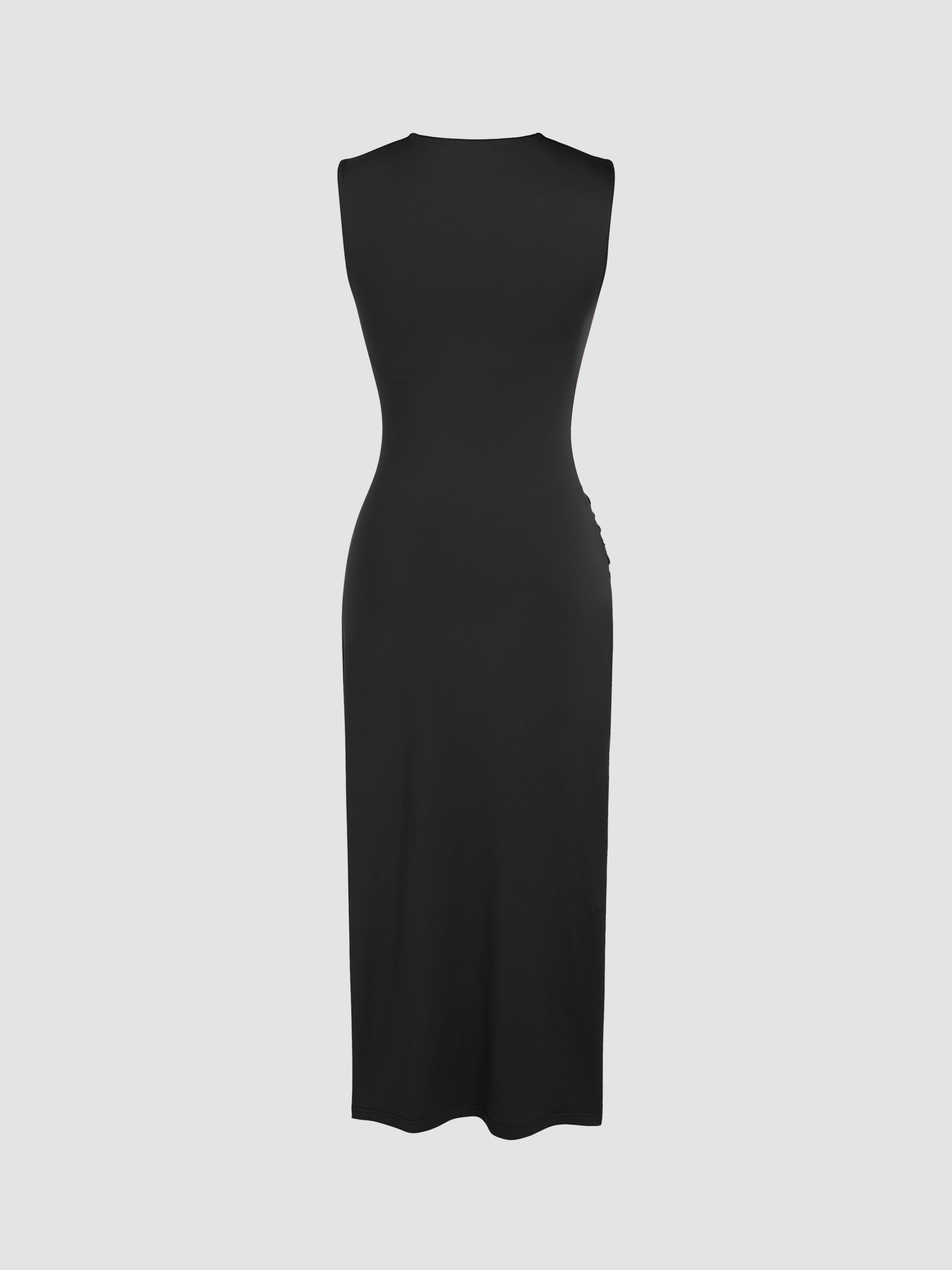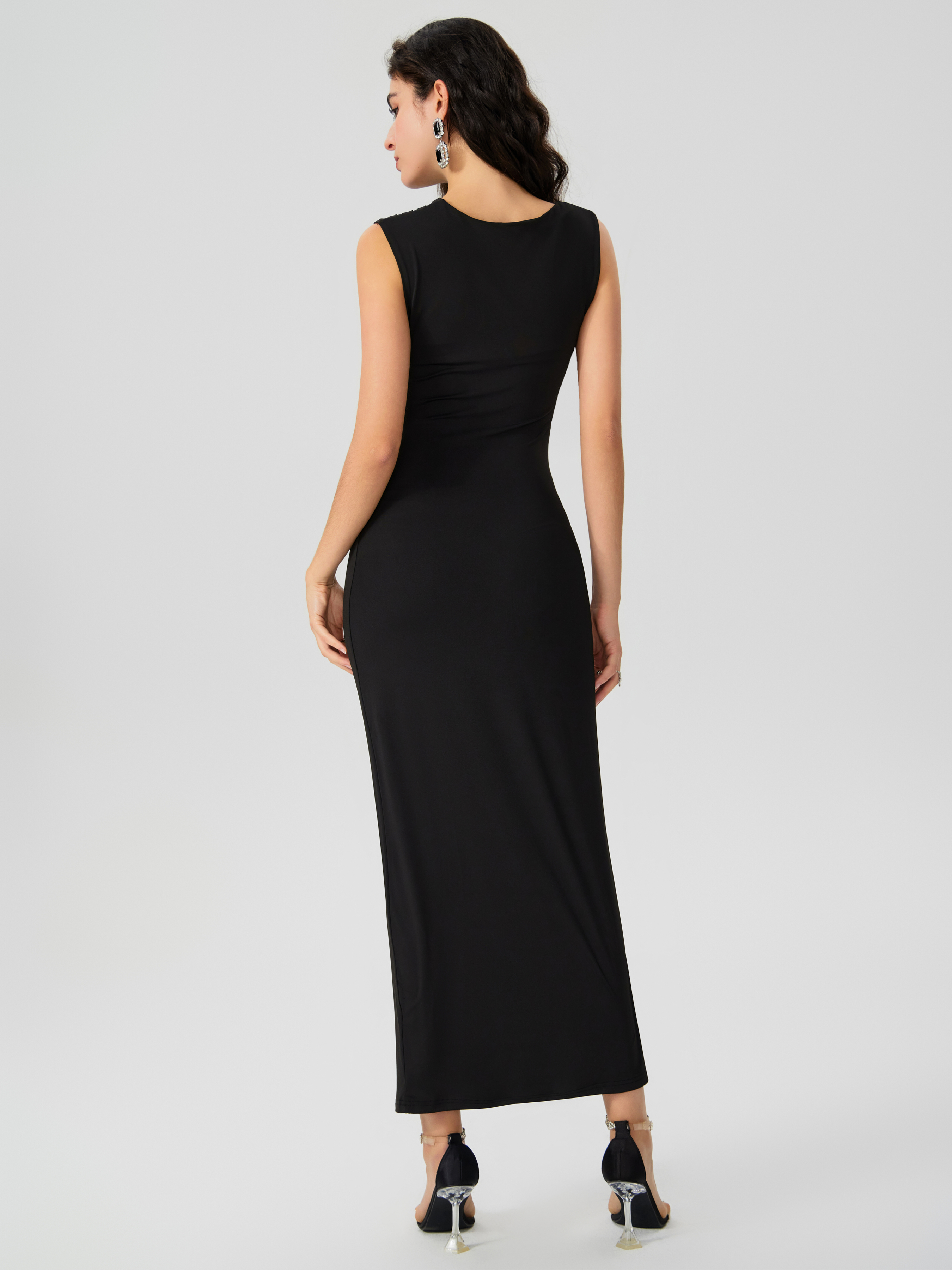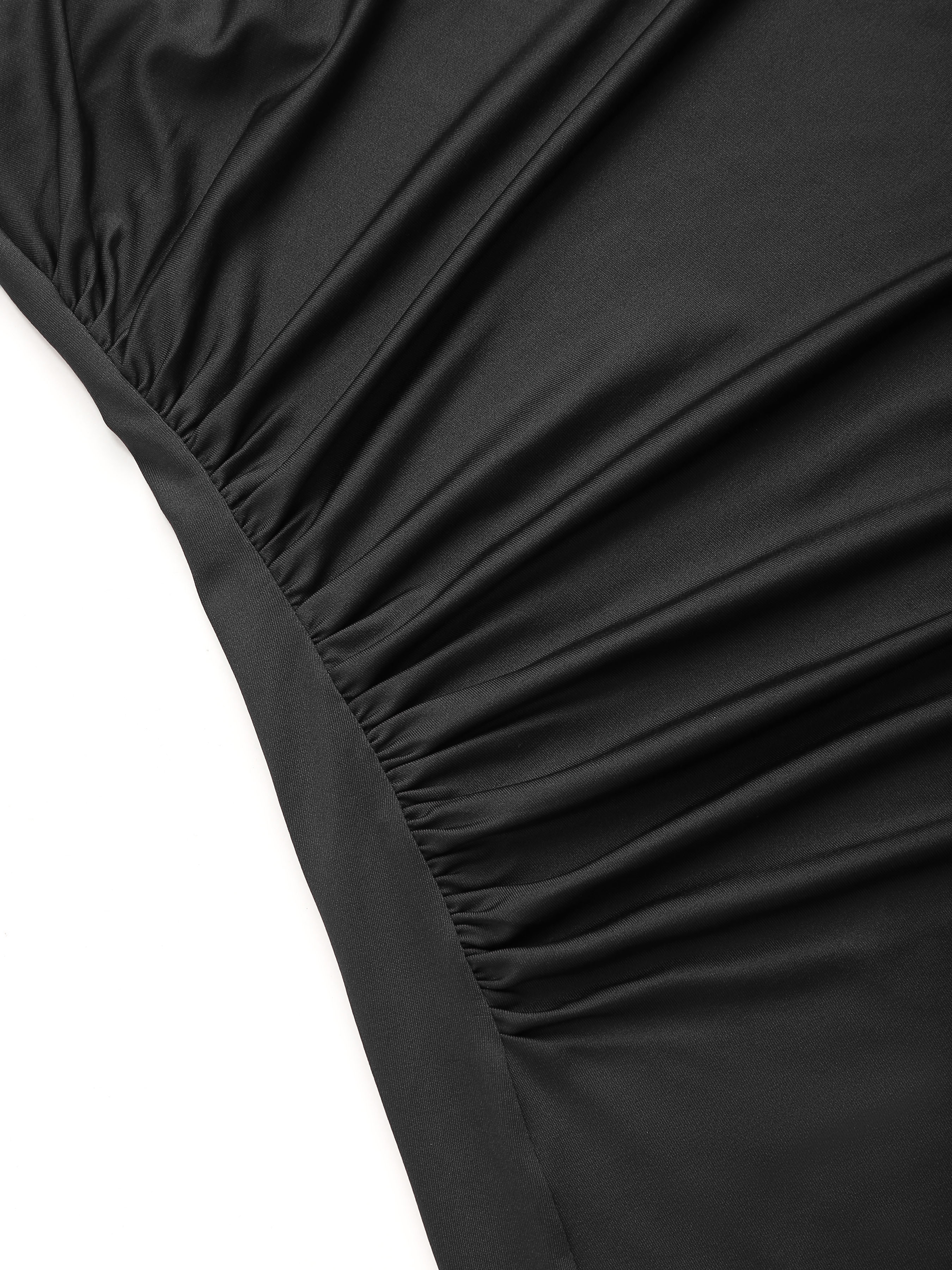 Abito maxi increspato con collo asimmetrico