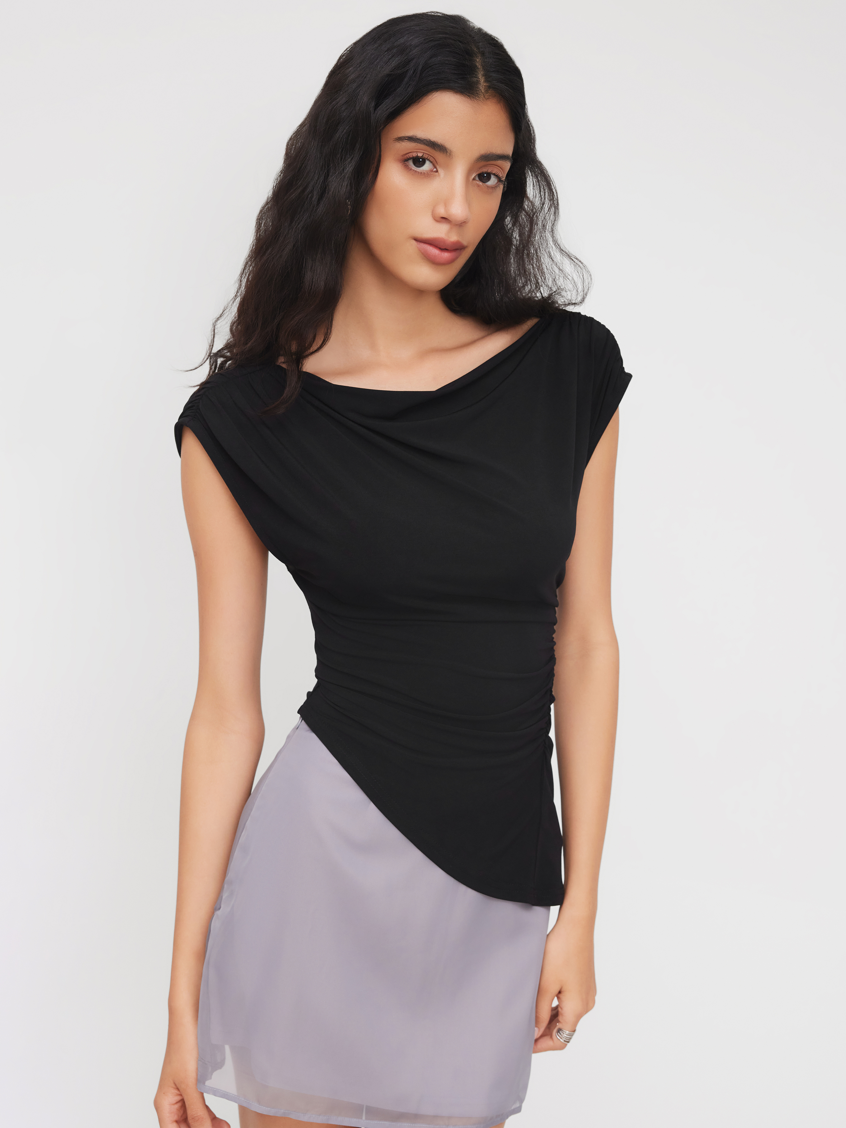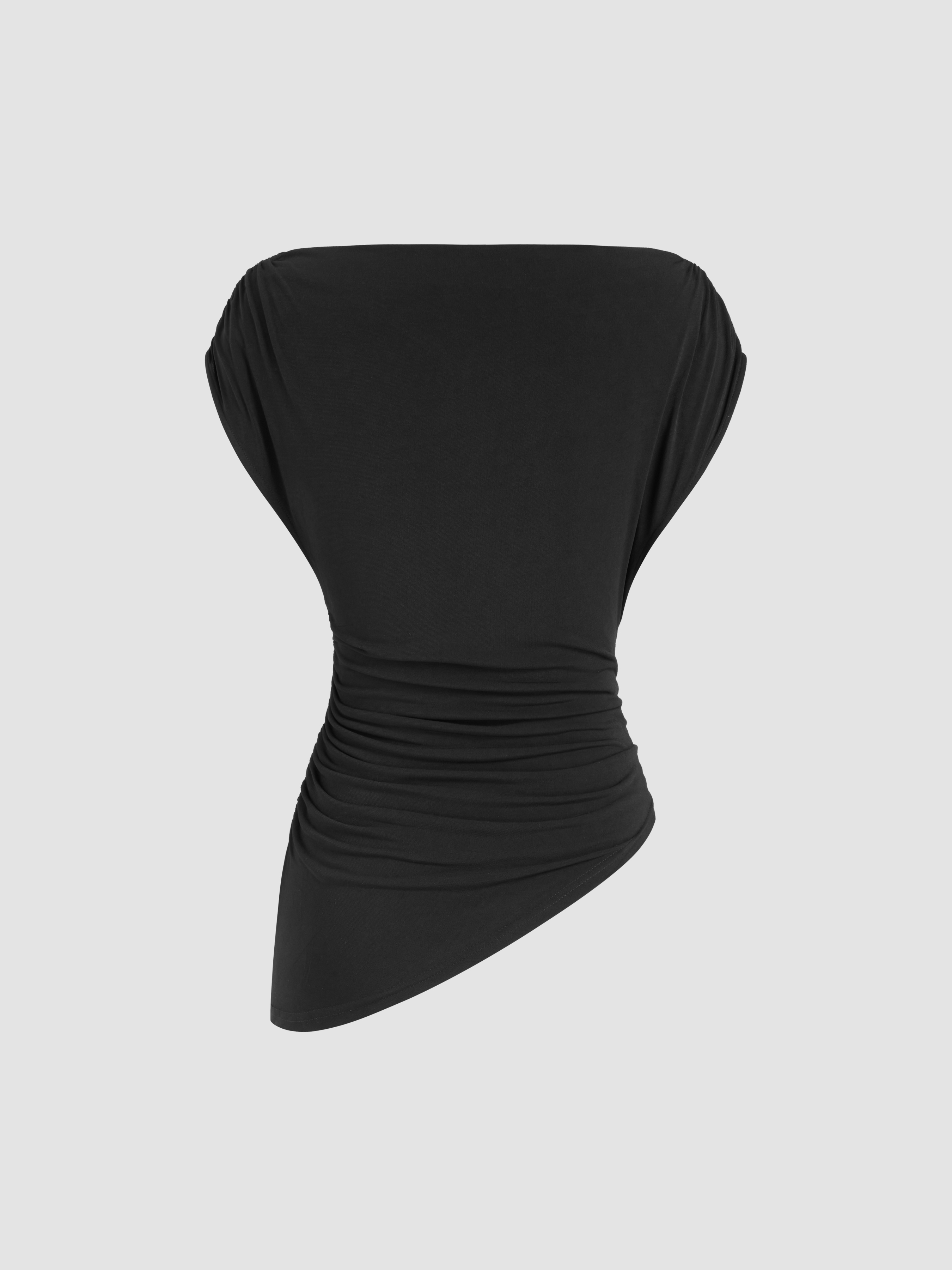 Top con Scollo a Barca e Orlo Asimmetrico con Arricciature