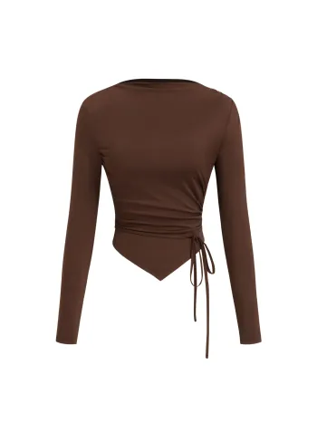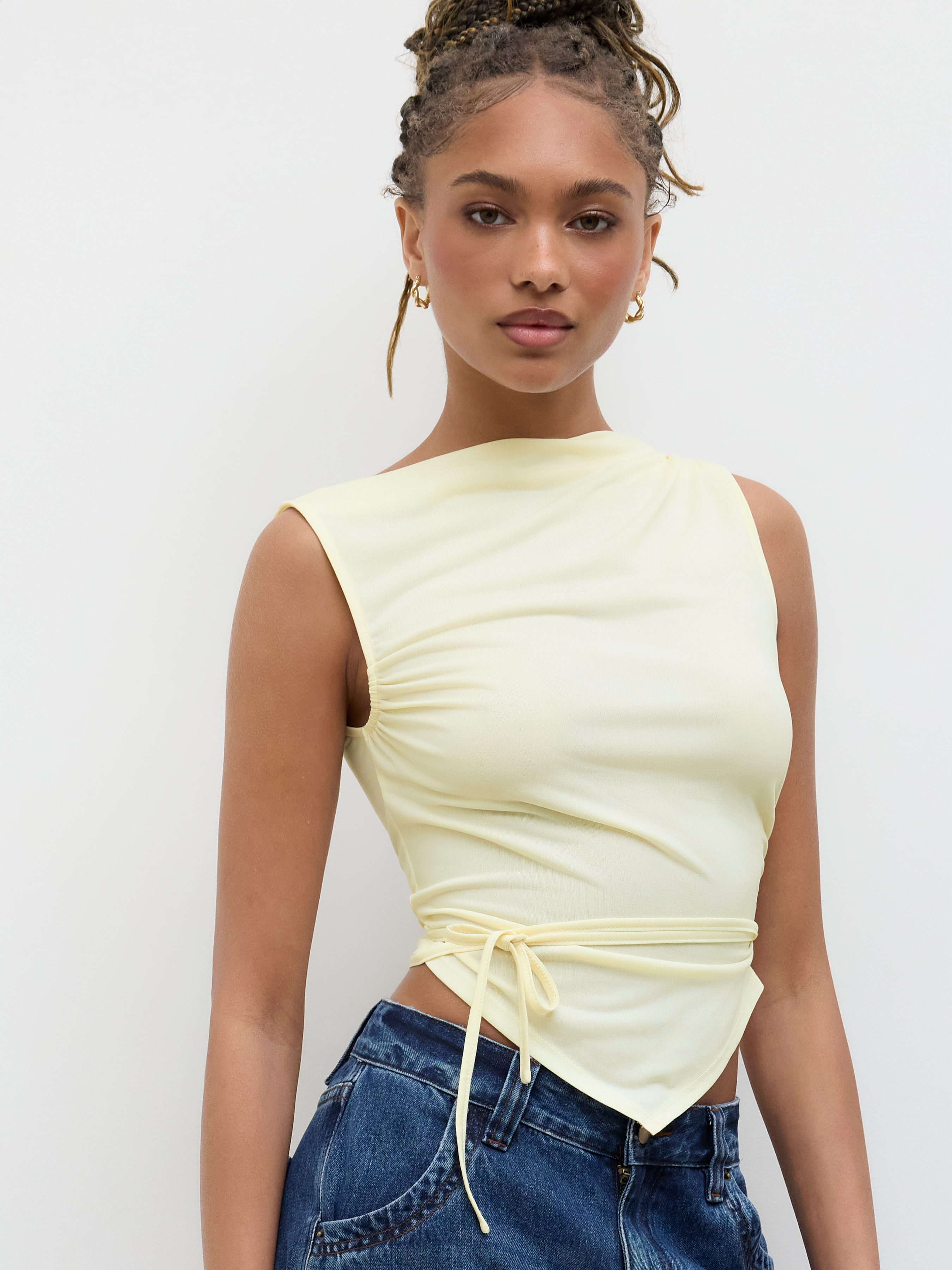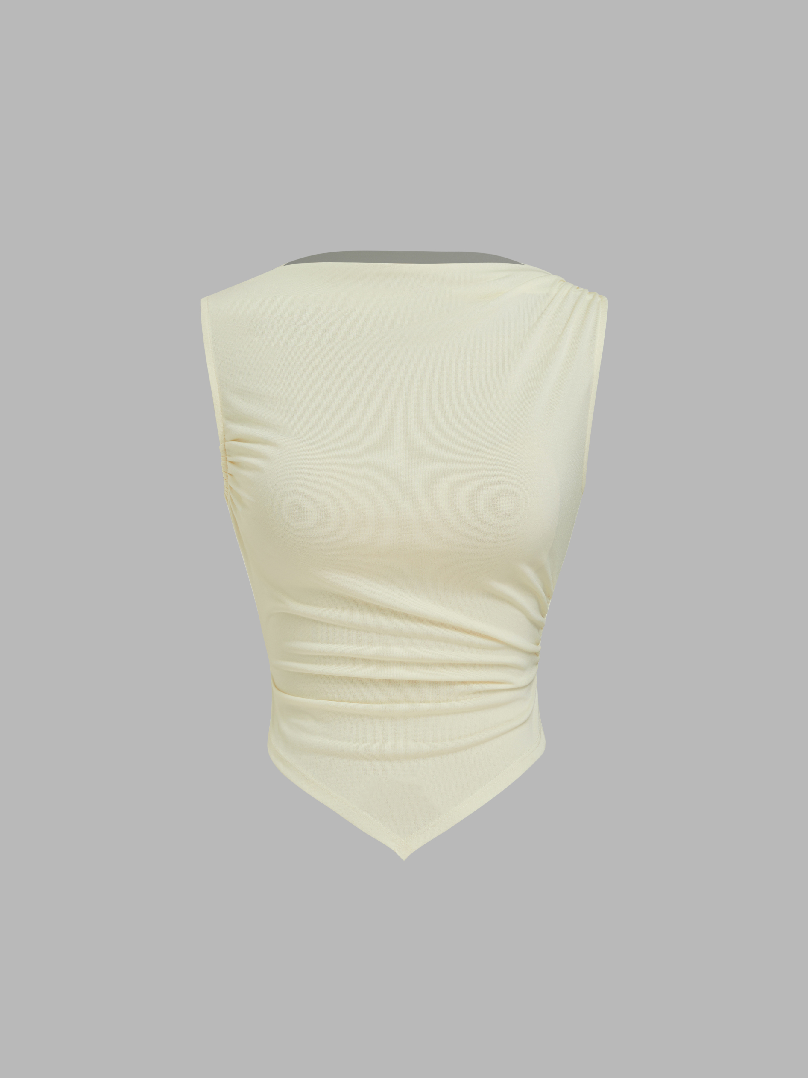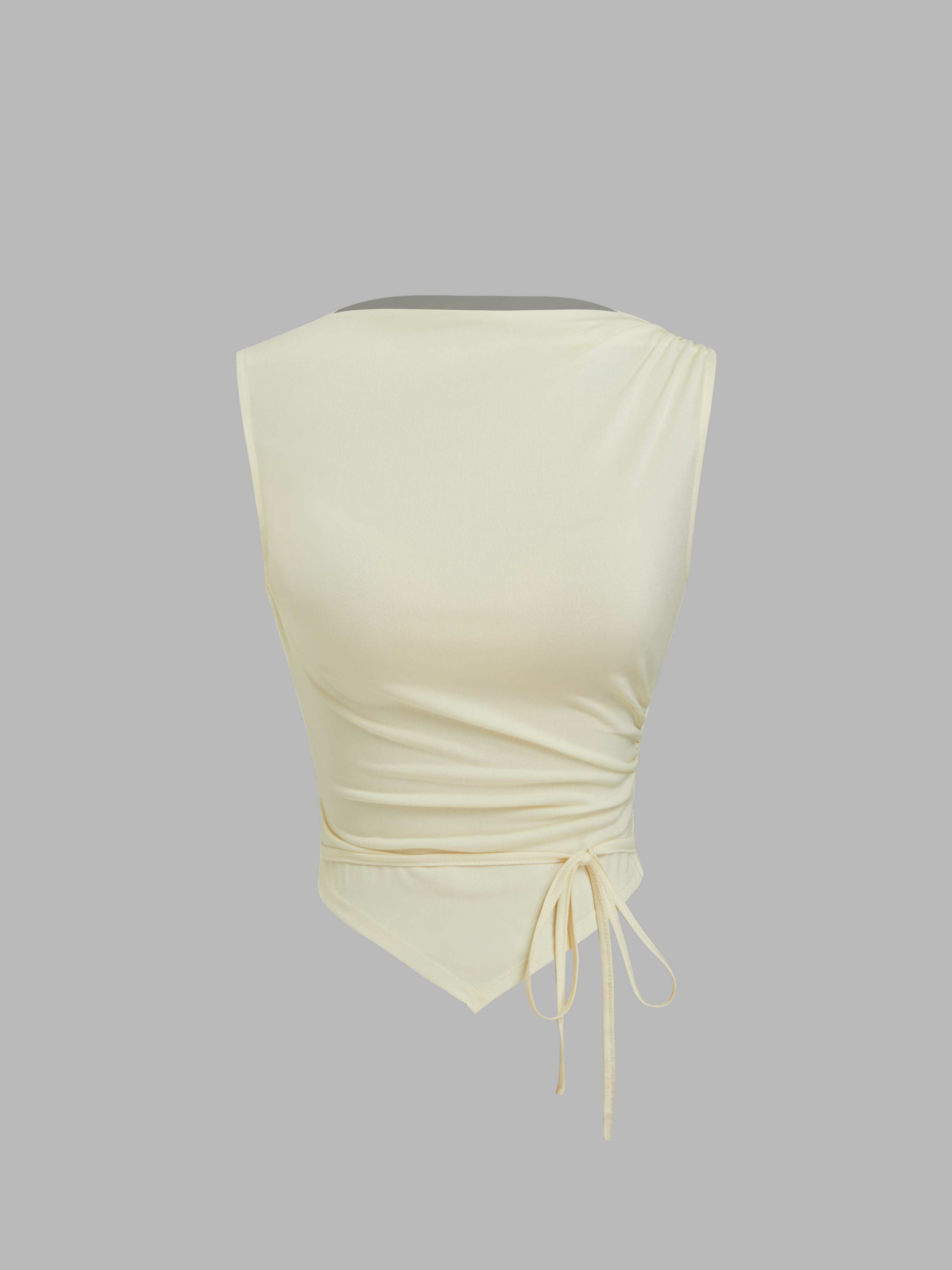 Canotta con Scollo a Barca, Nodo e Orlo Asimmetrico Arricciato