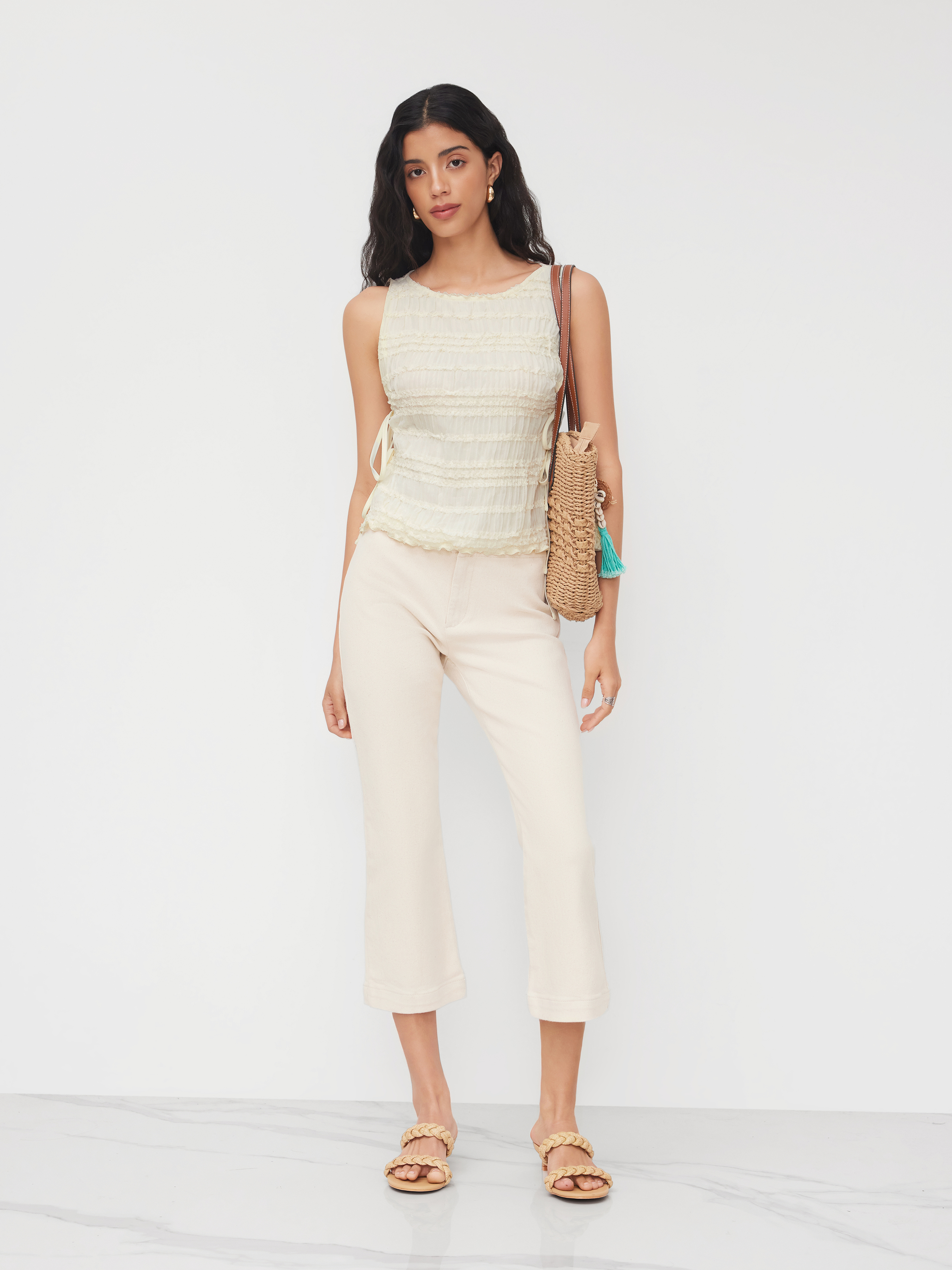 Canotta con Scollo a Barca in Chiffon e Dettaglio Arricciato con Laccetti Laterali
