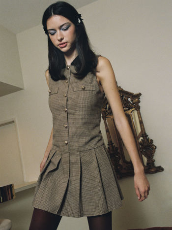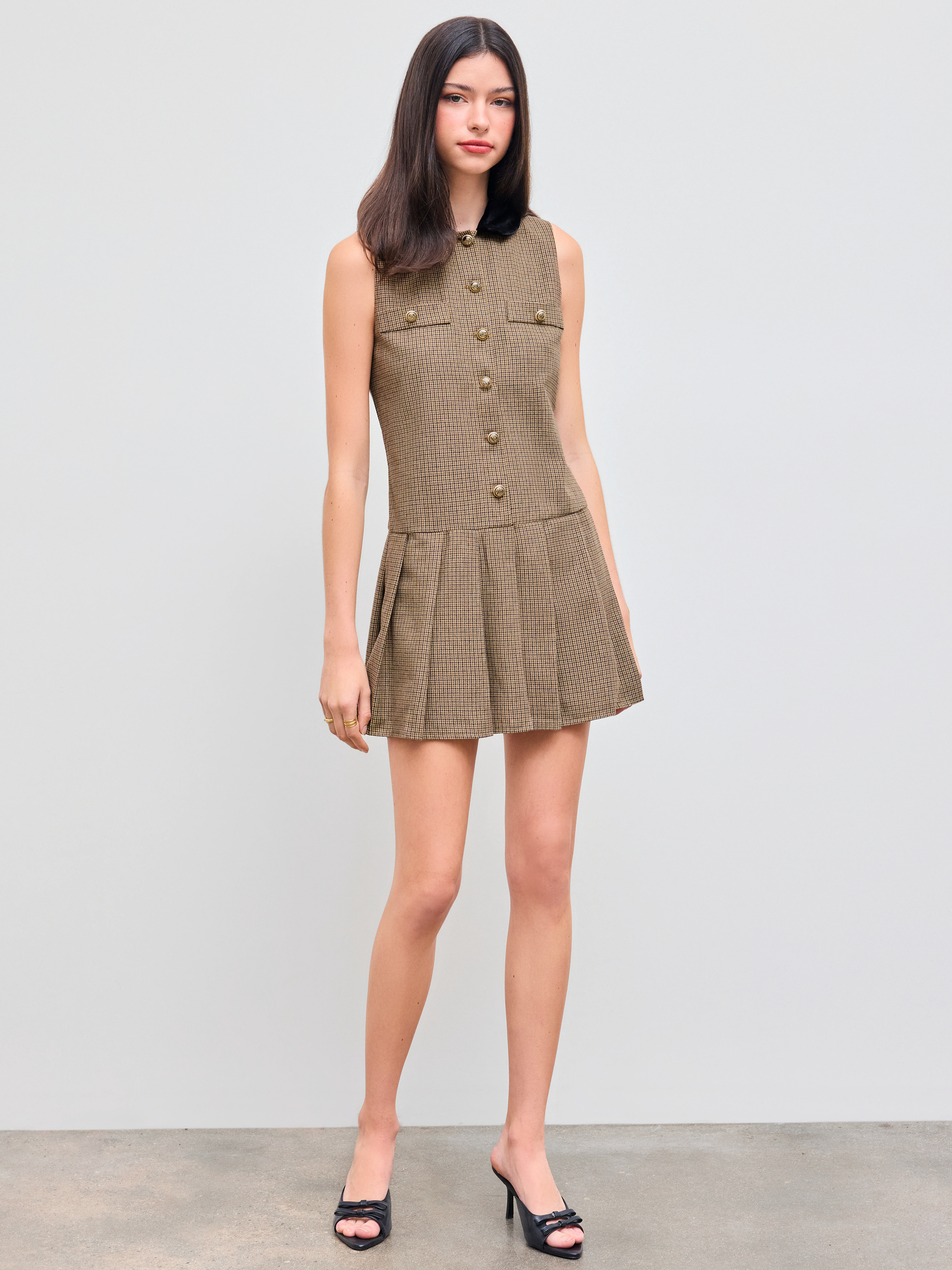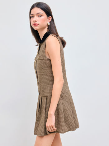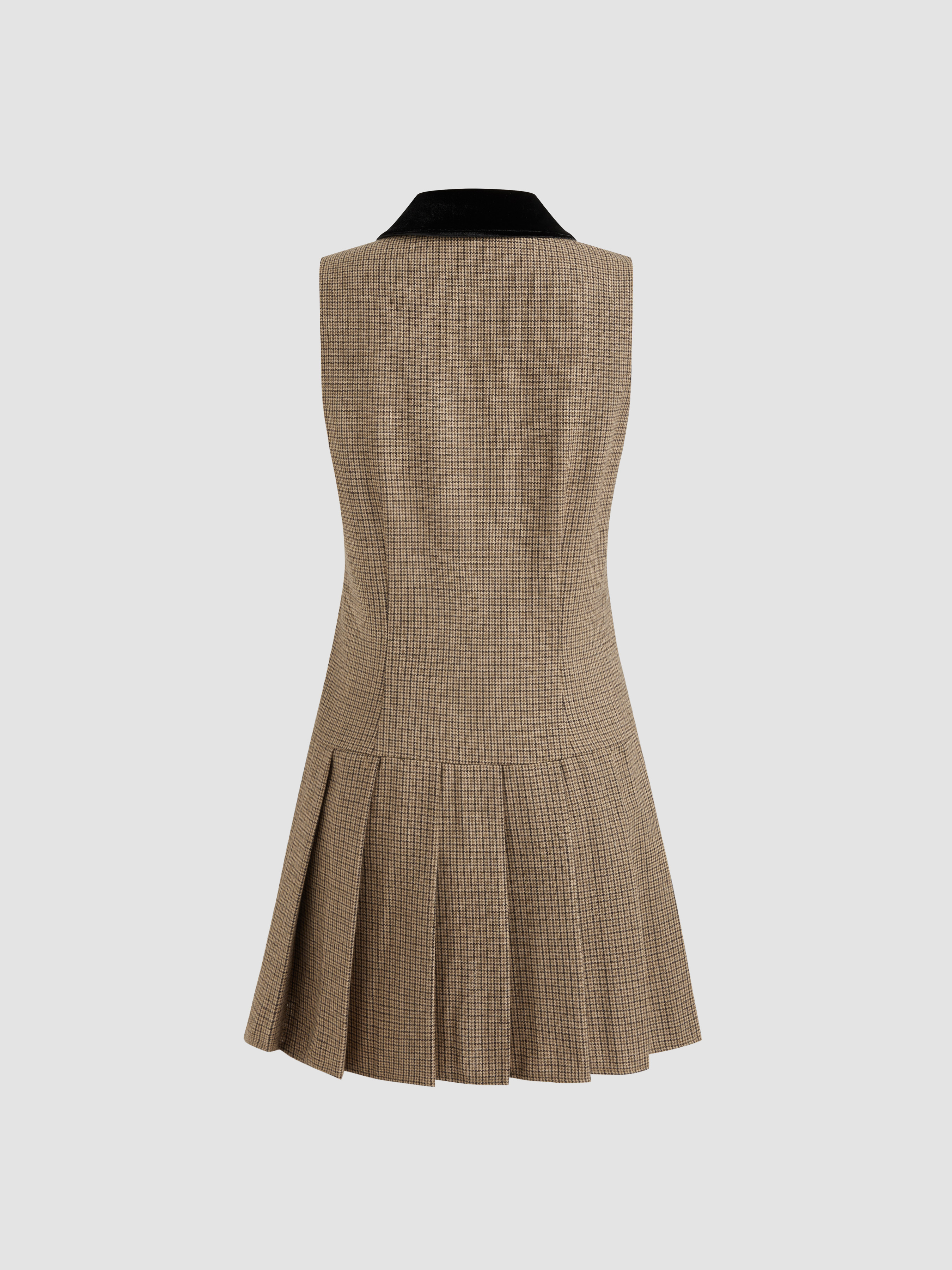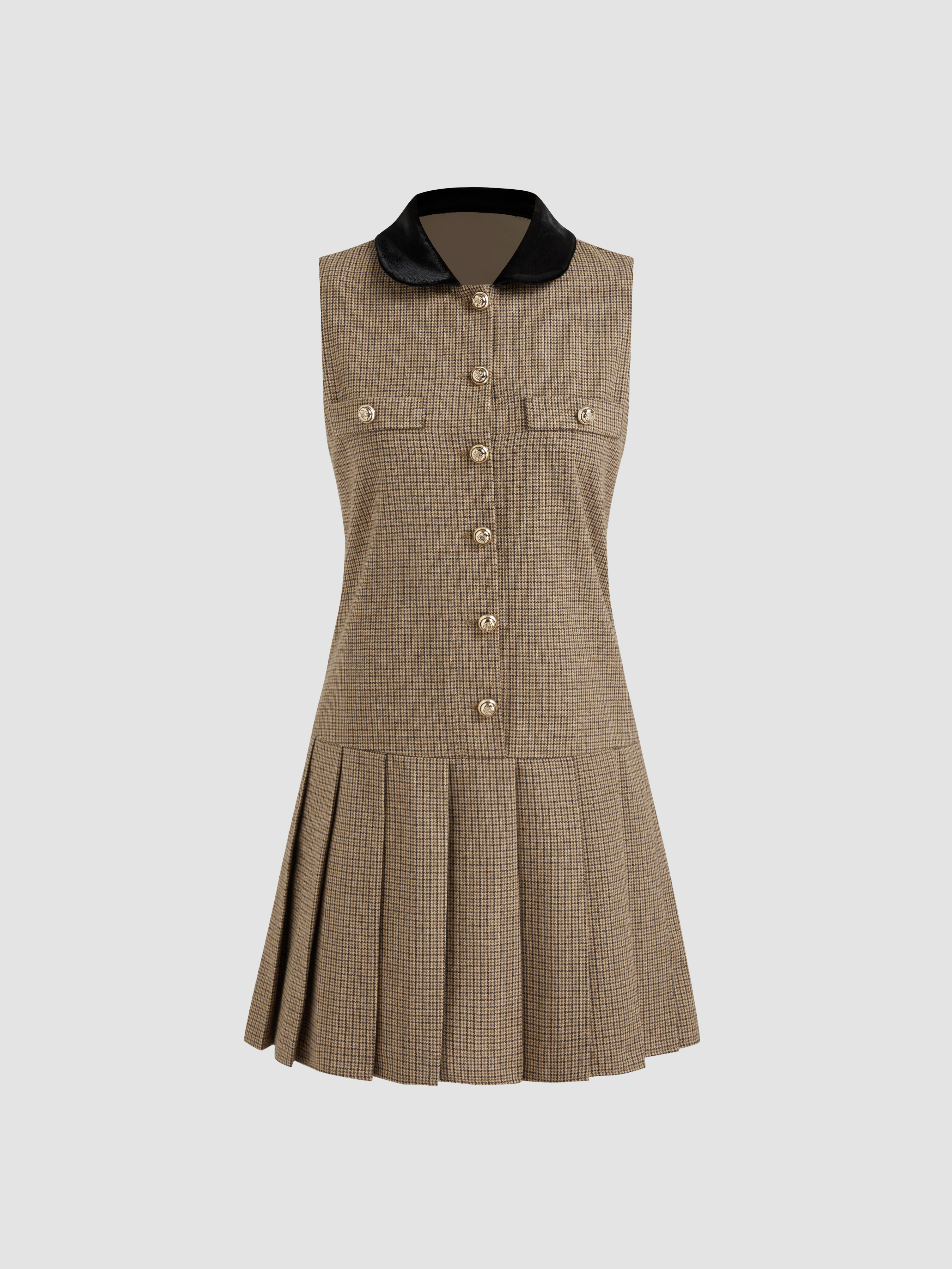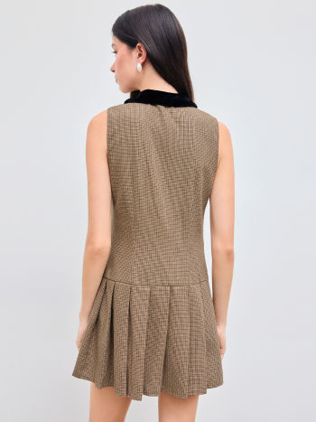 Mini abito con colletto pied-de-poule e bottoni a pieghe