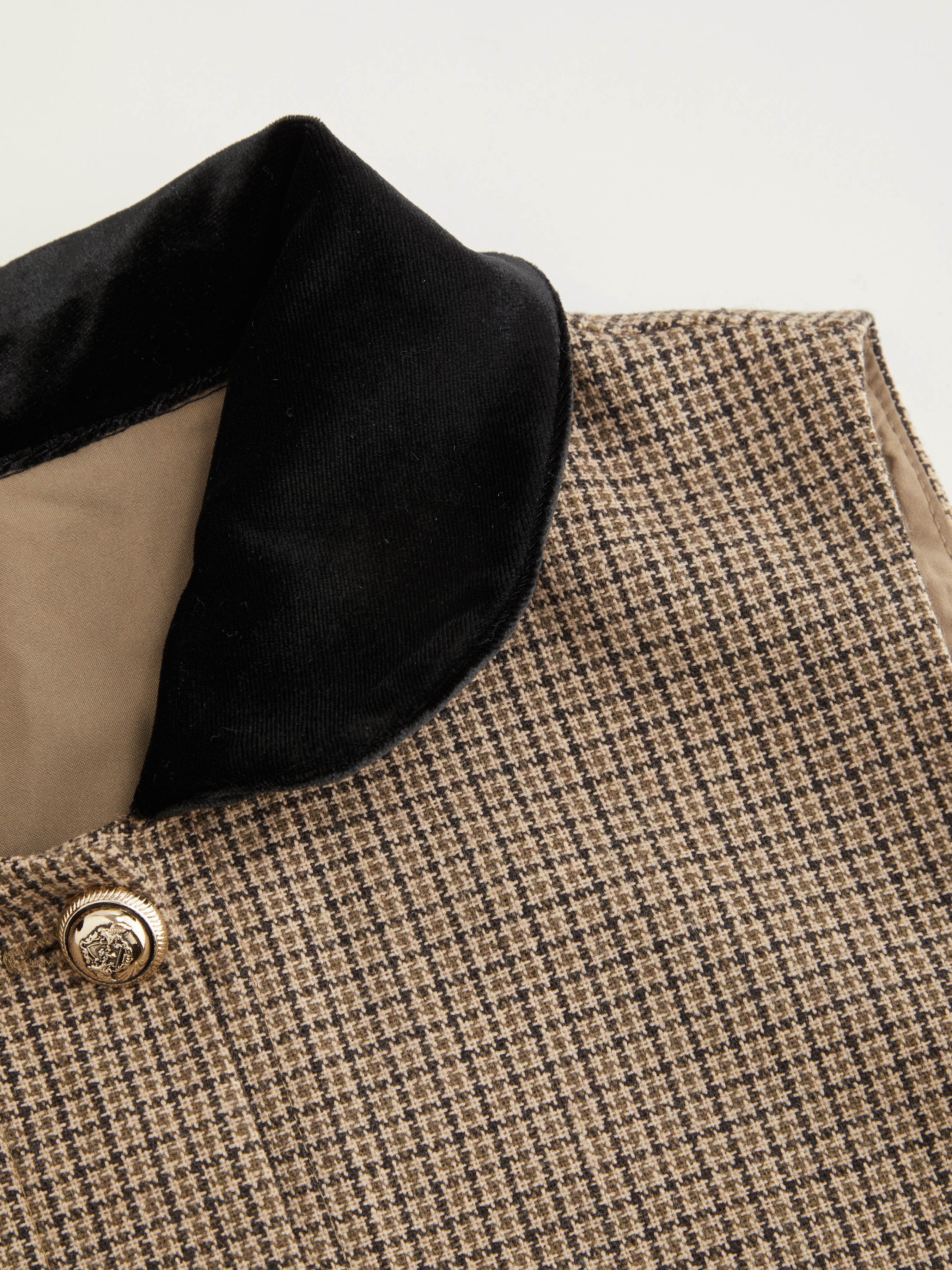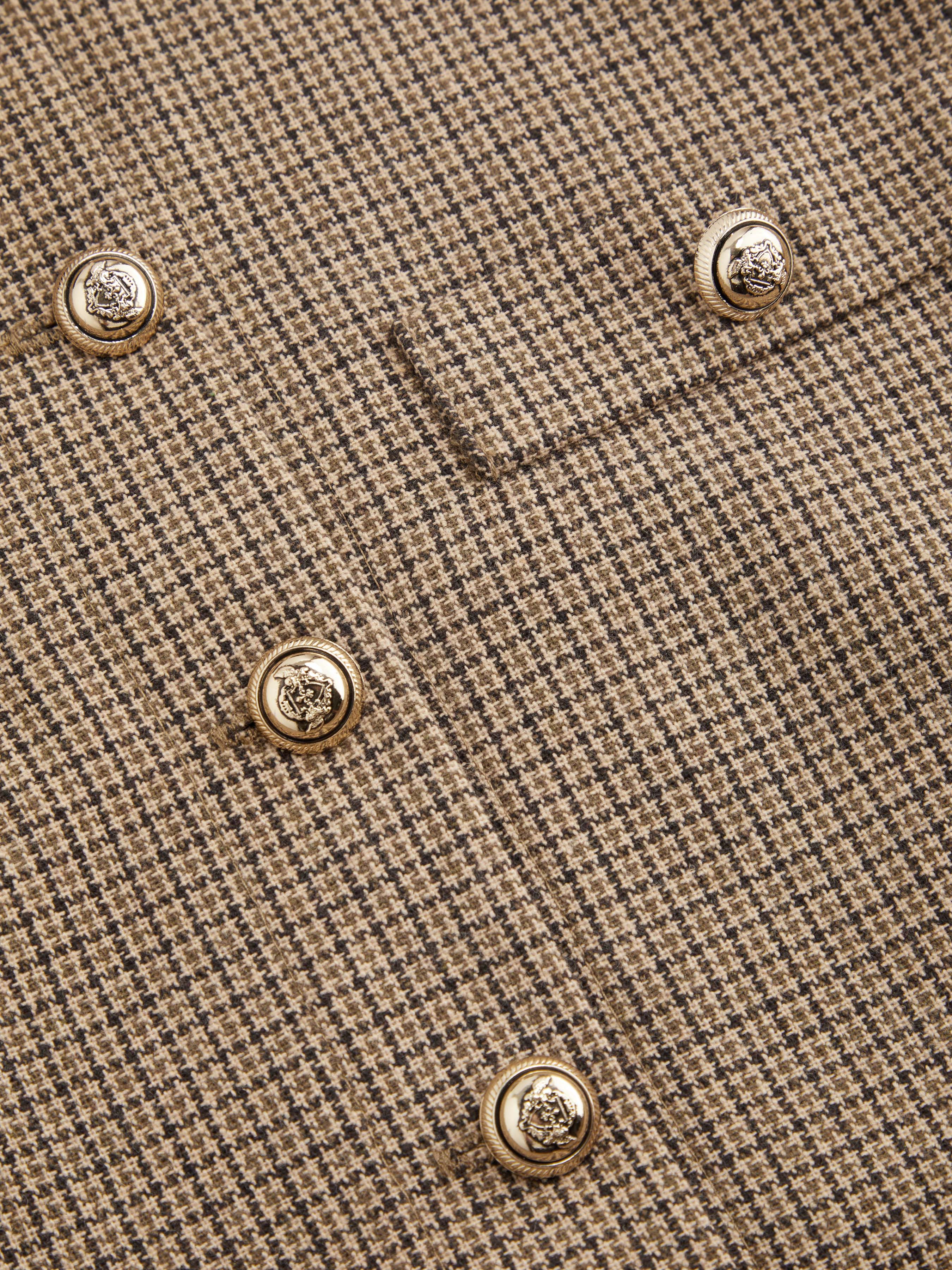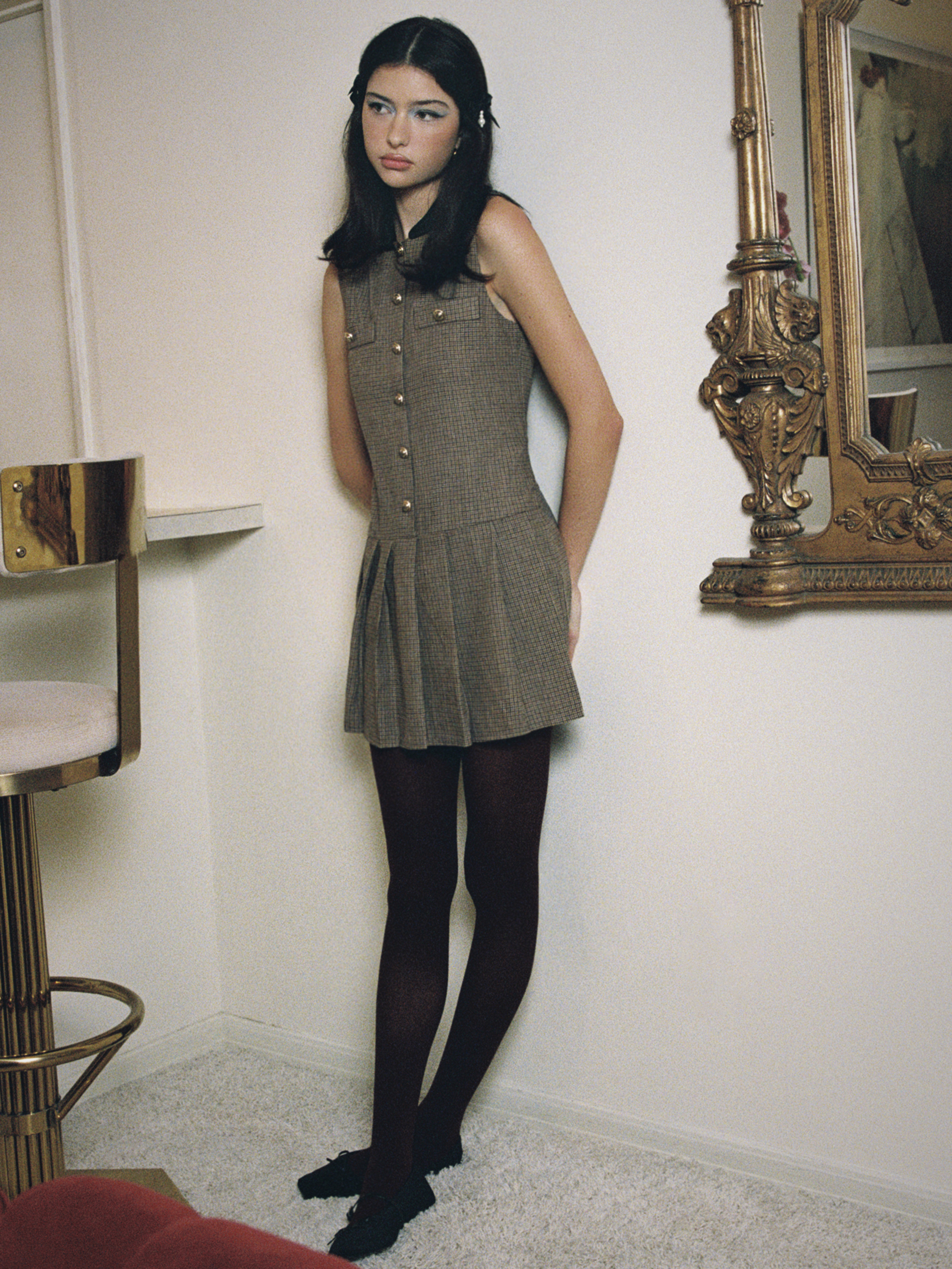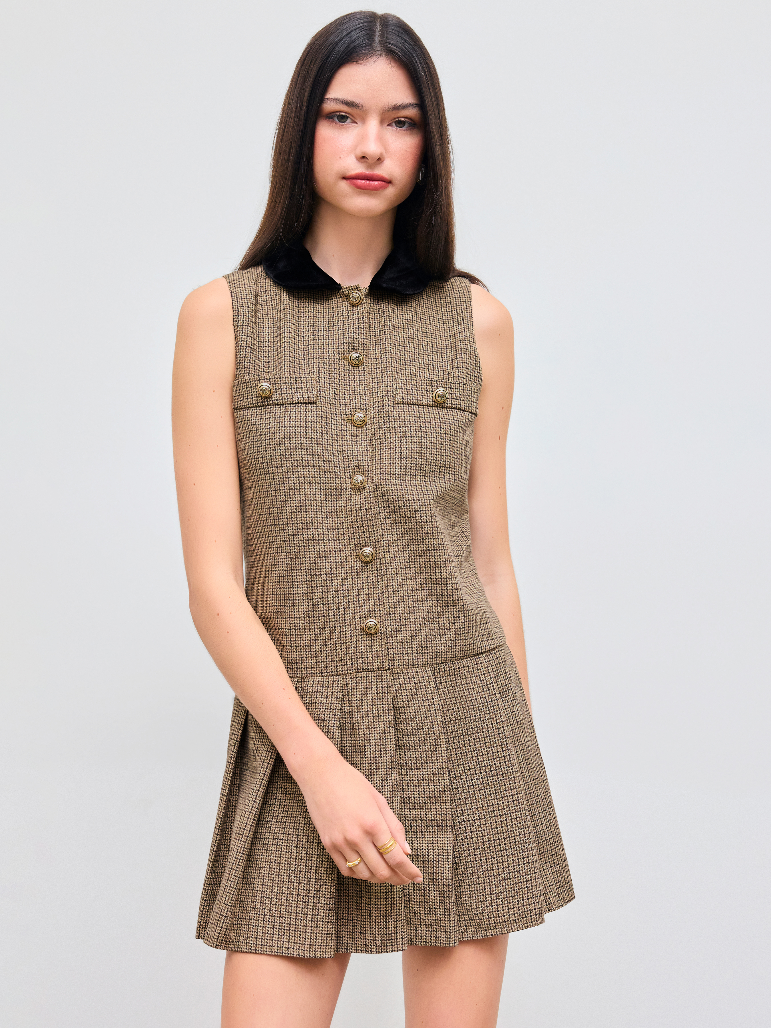 Mini abito con colletto pied-de-poule e bottoni a pieghe