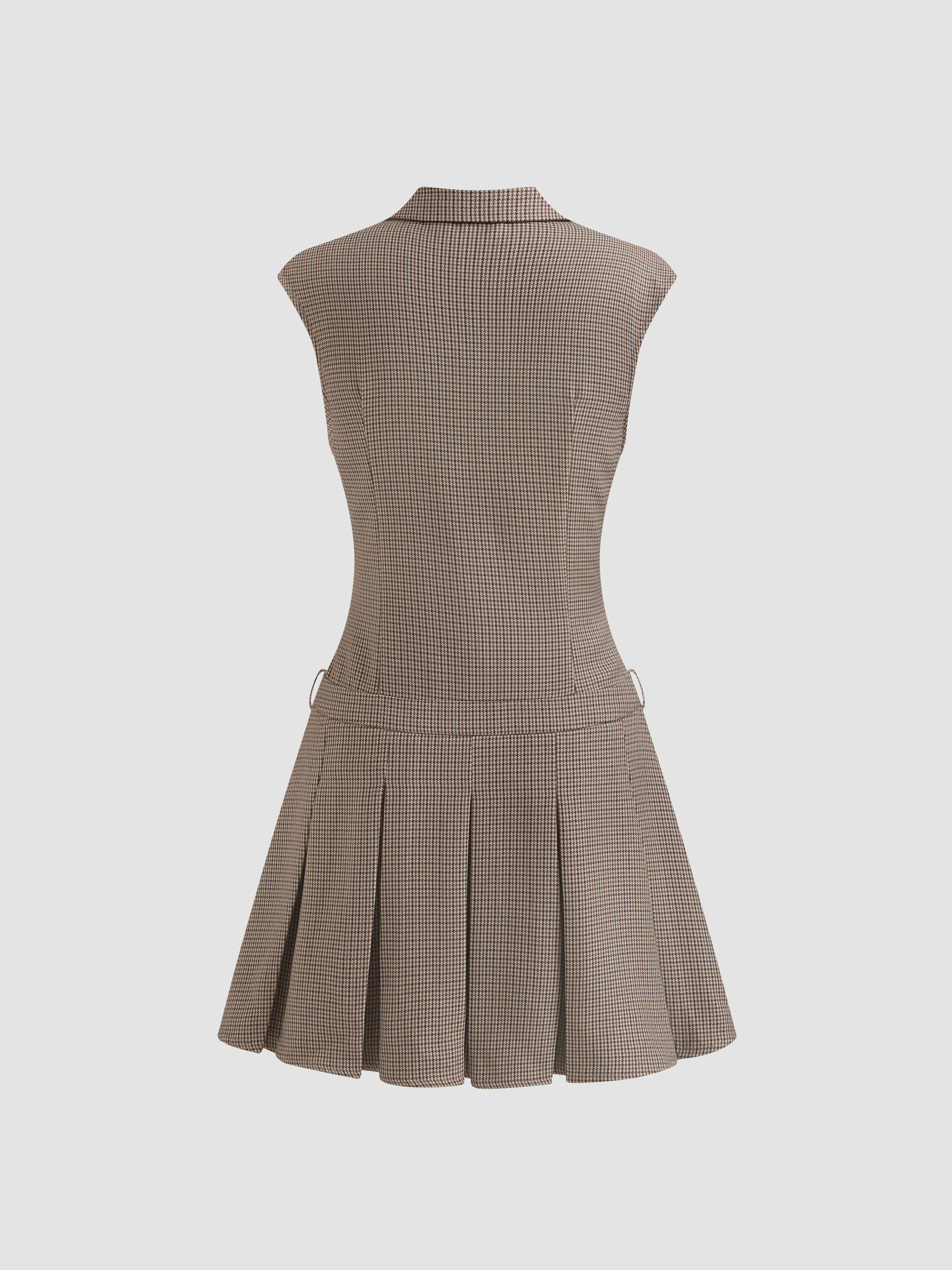 Mini abito con colletto pied-de-poule e bottoni a pieghe