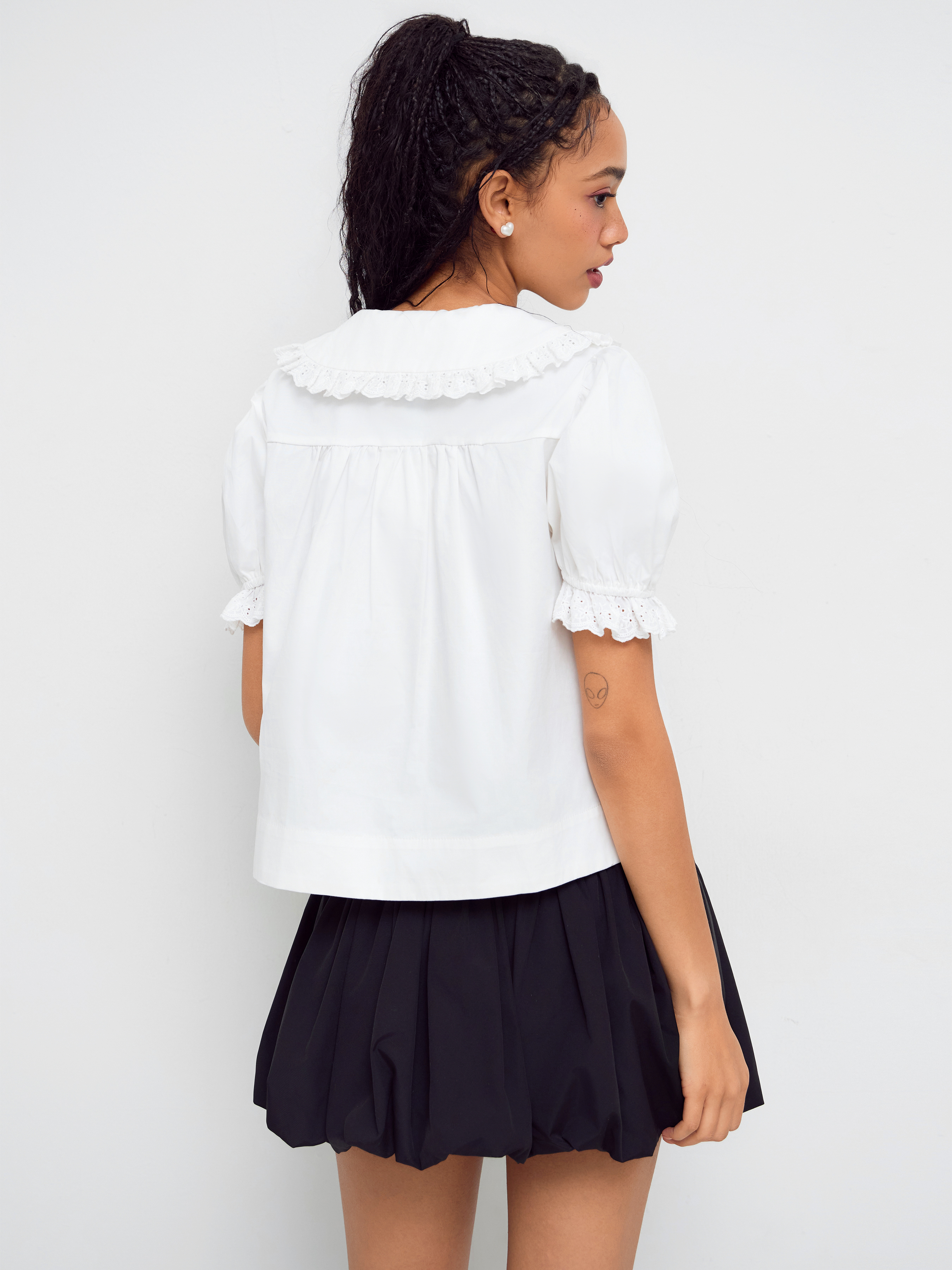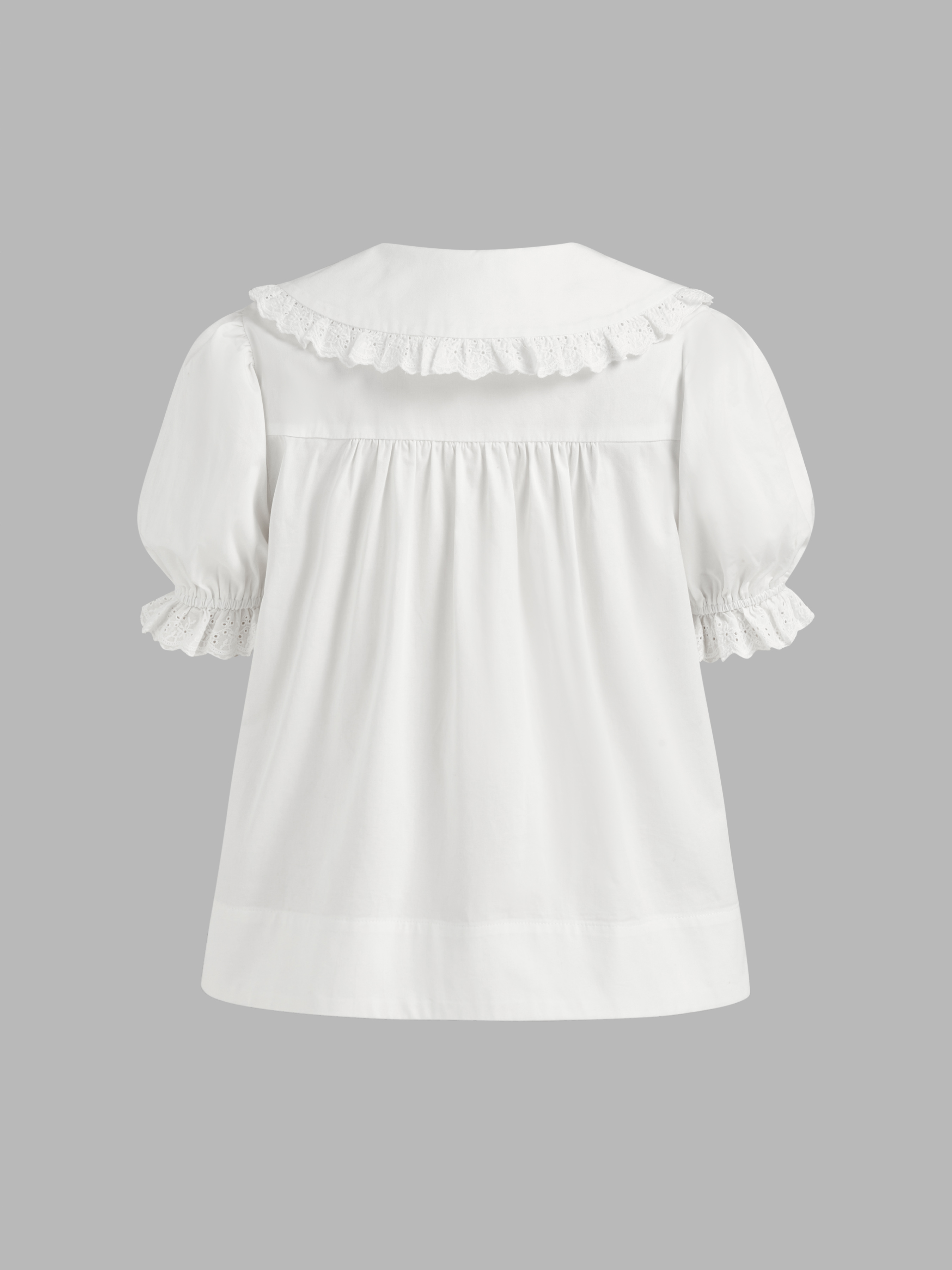Camicetta con colletto in 100% cotone e rifiniture in lattuga