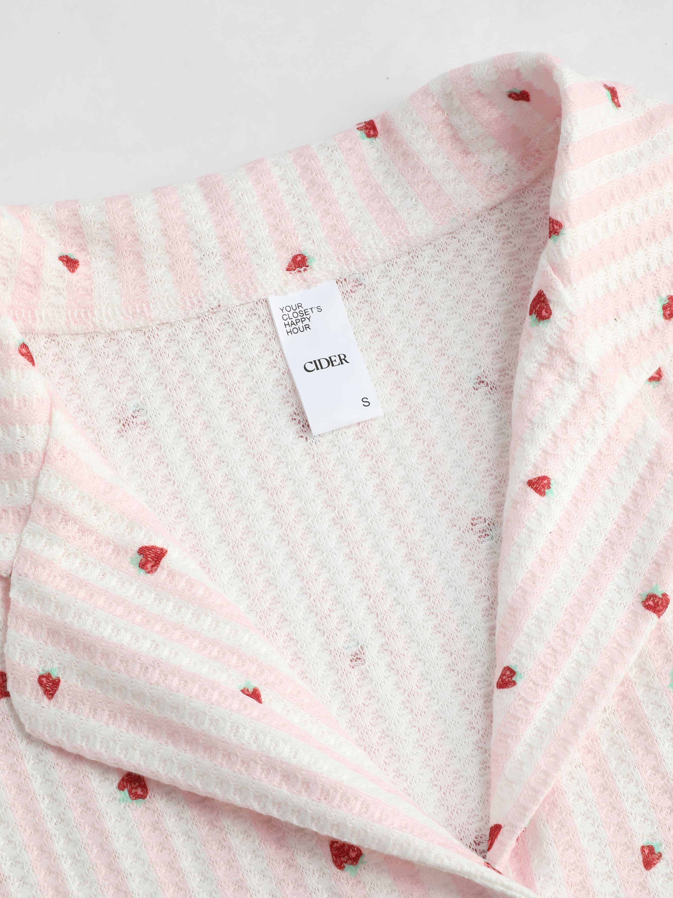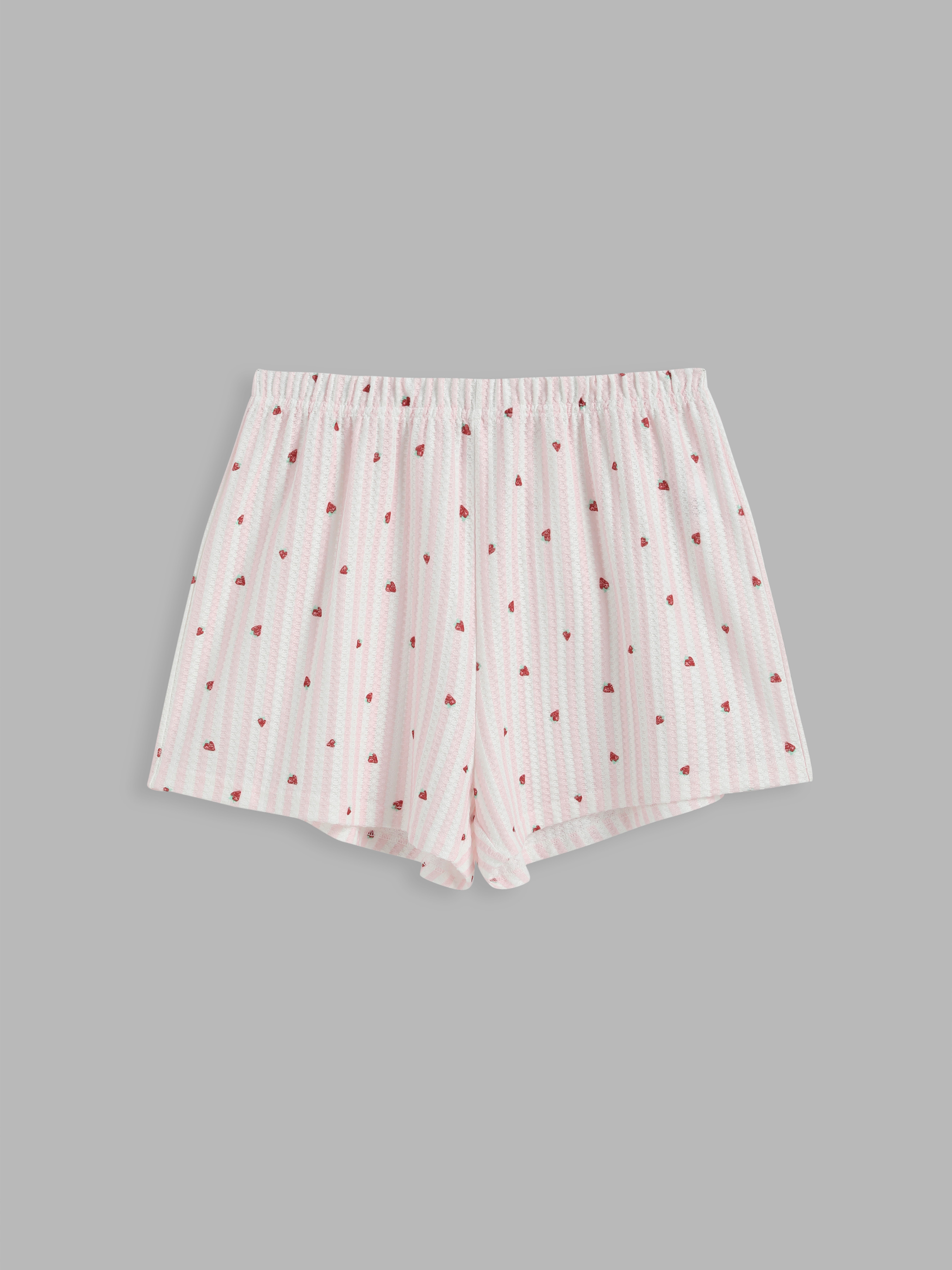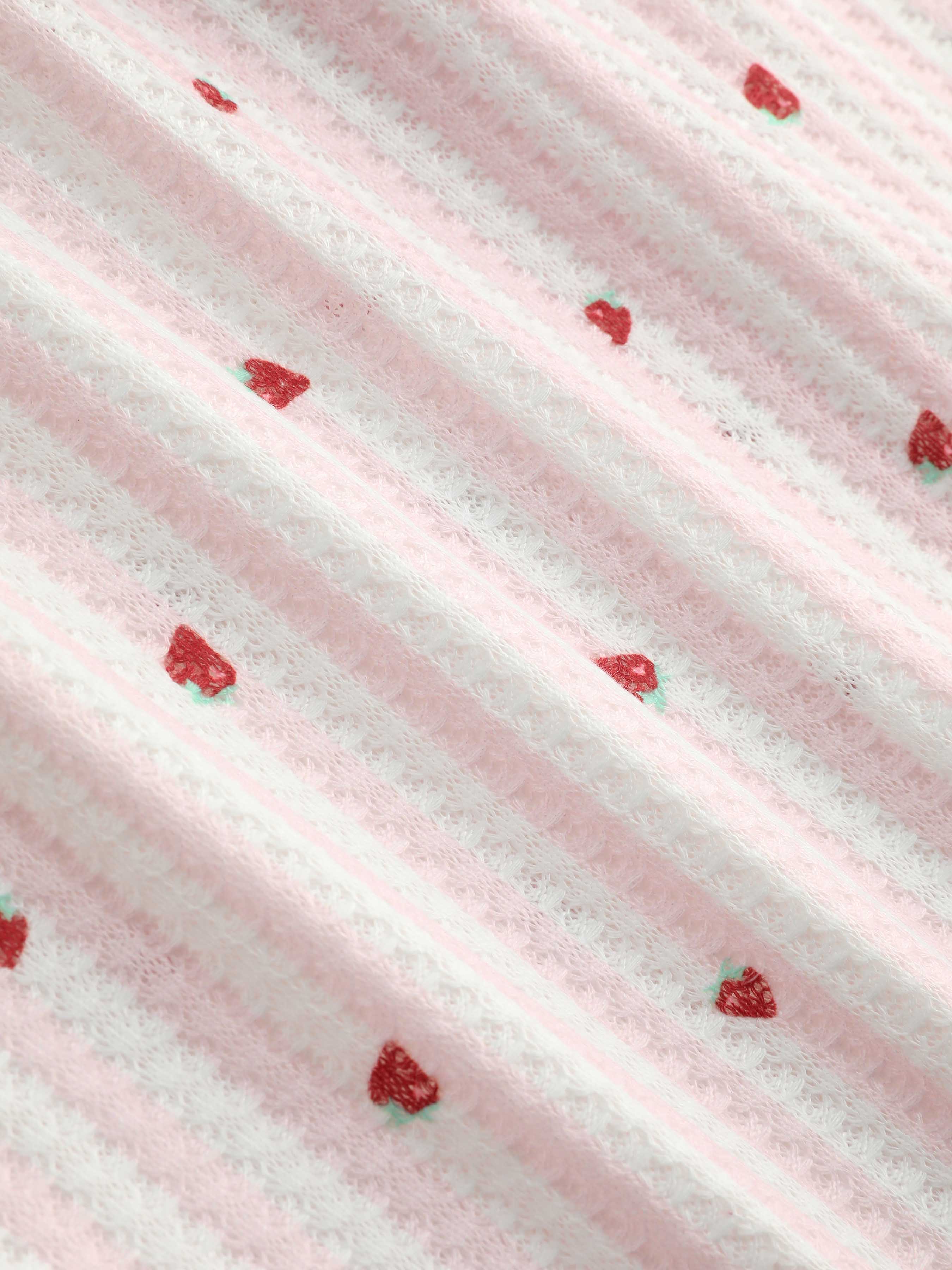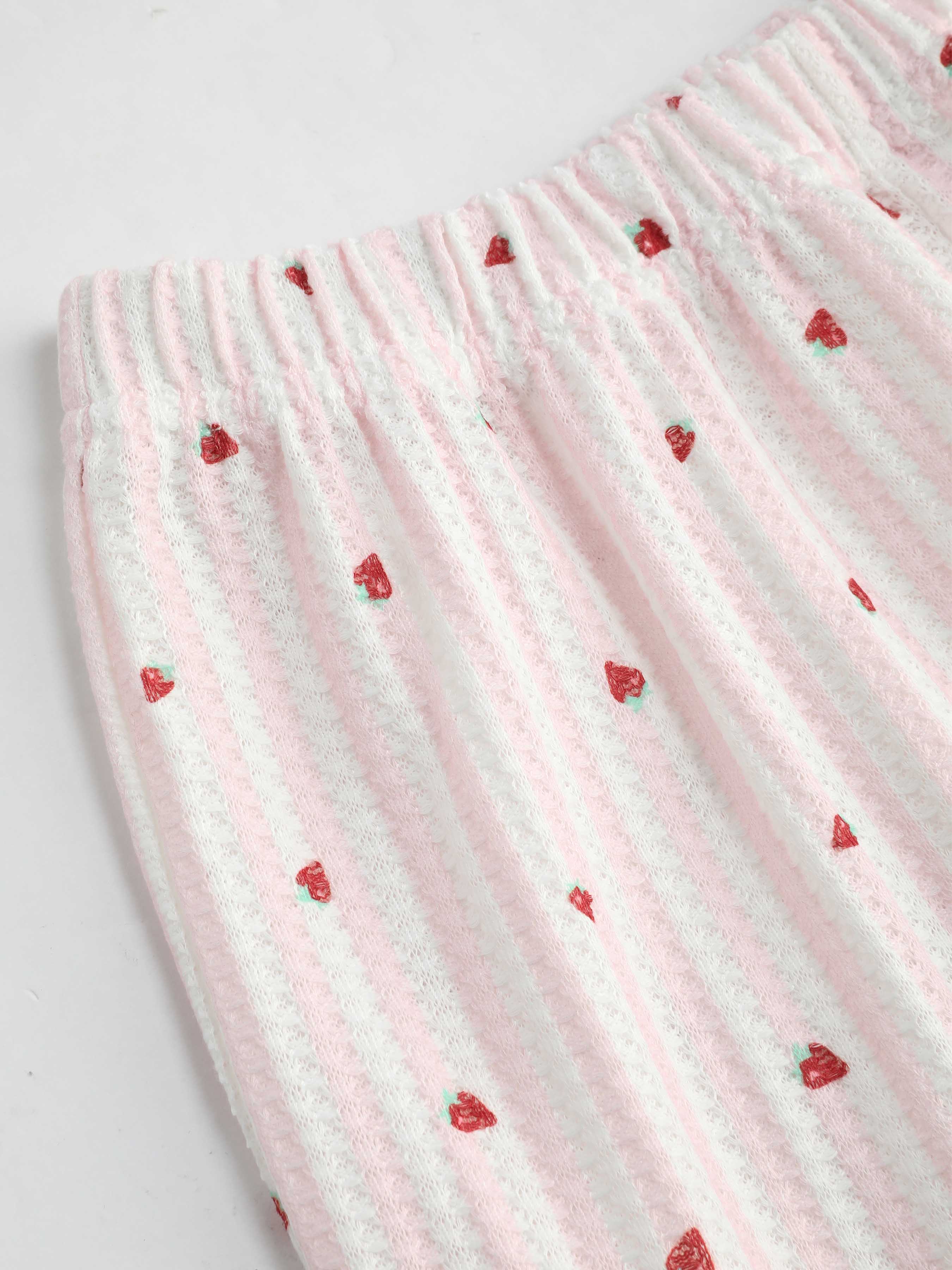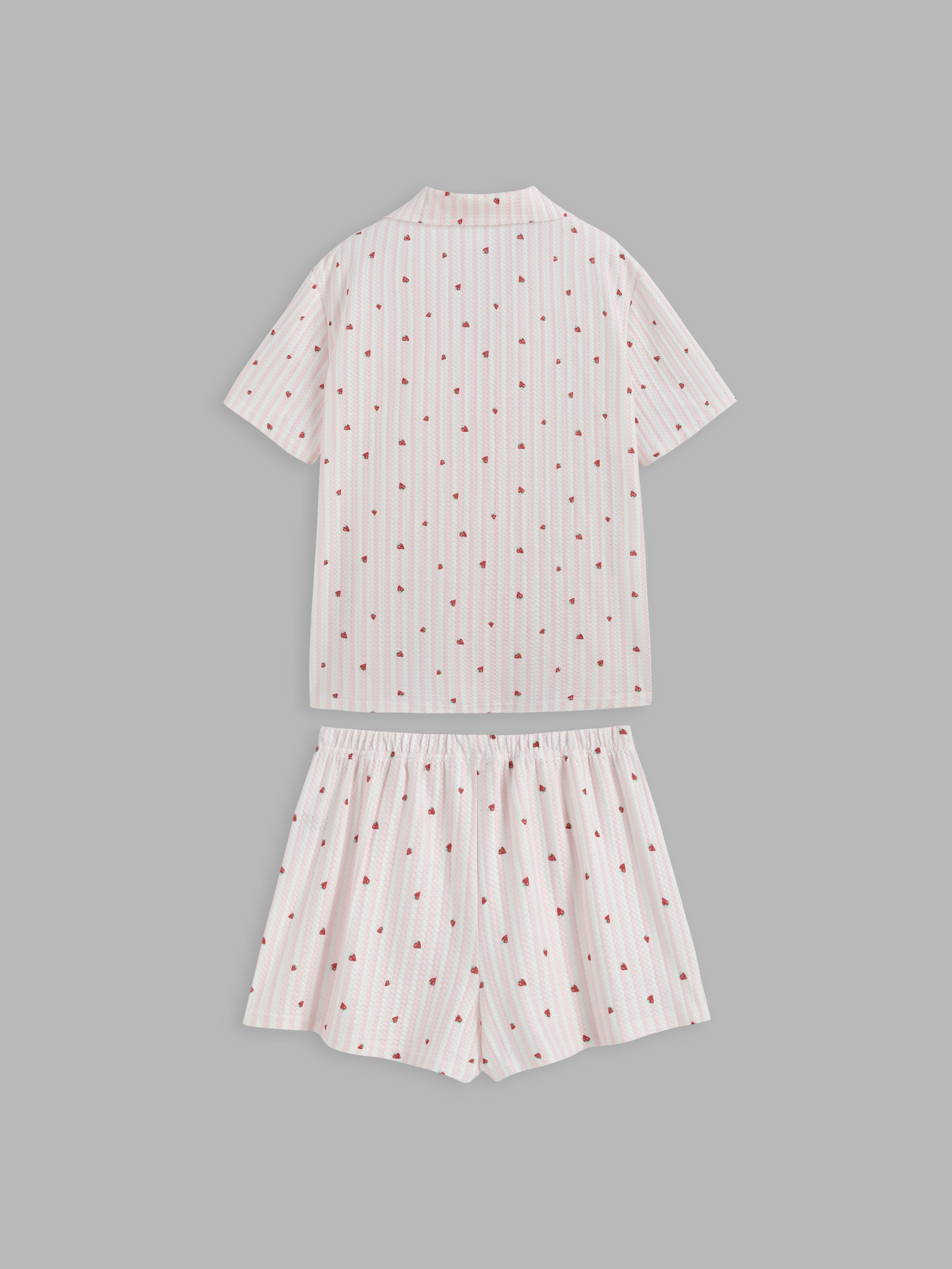 Completo da salotto con colletto a righe e top a maniche corte con fragole e pantaloncini a vita media