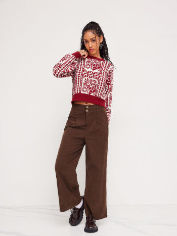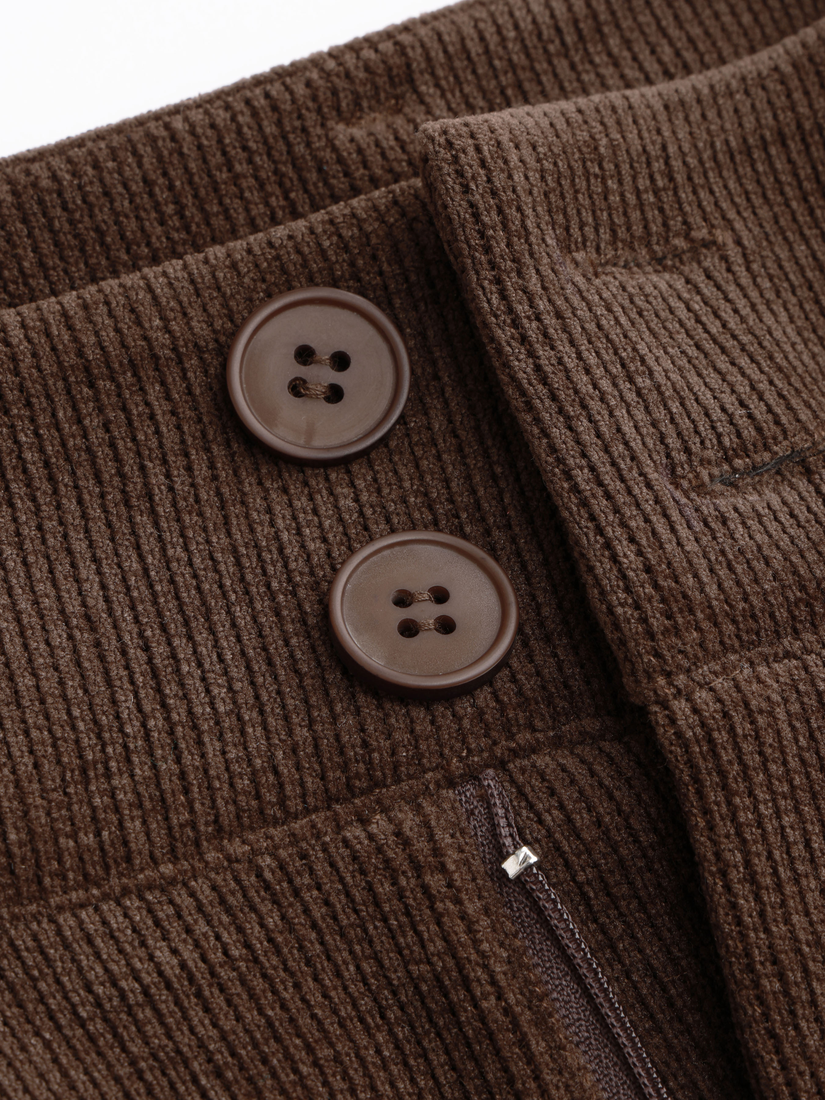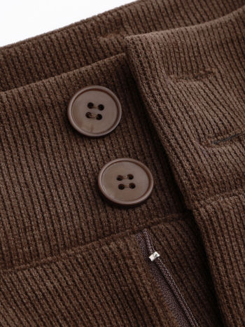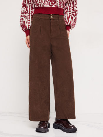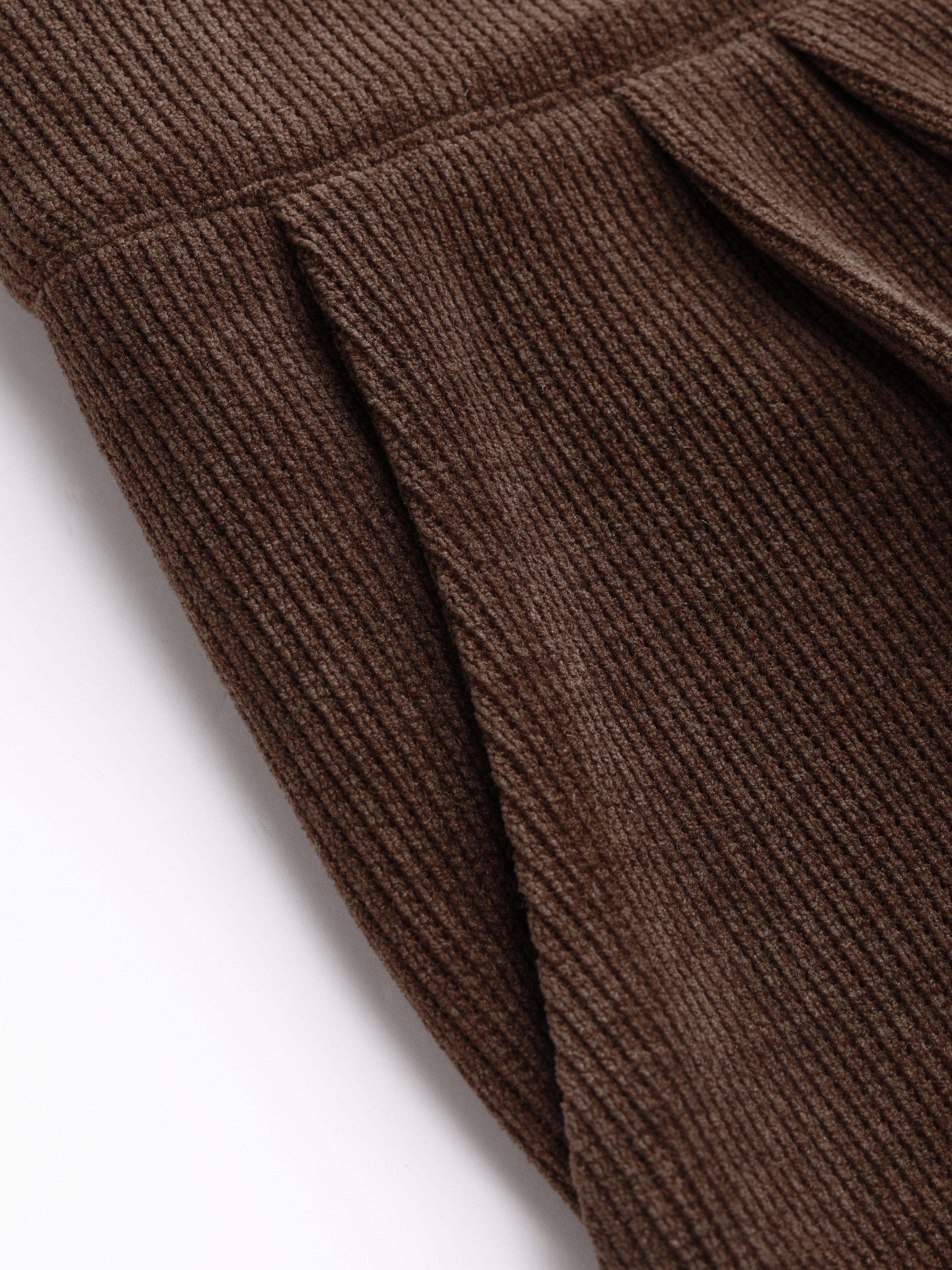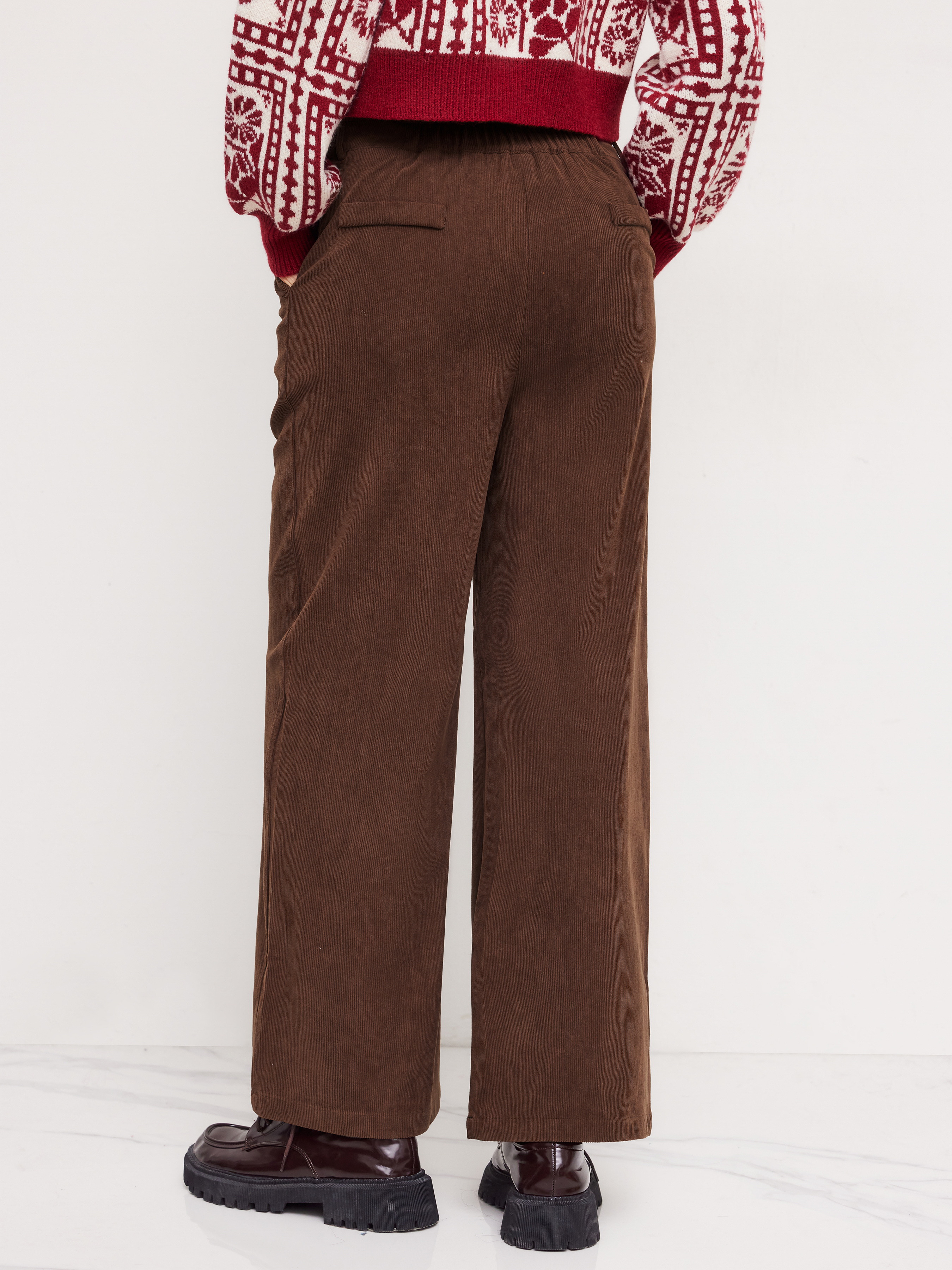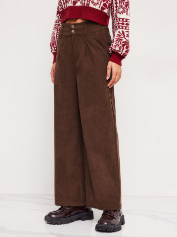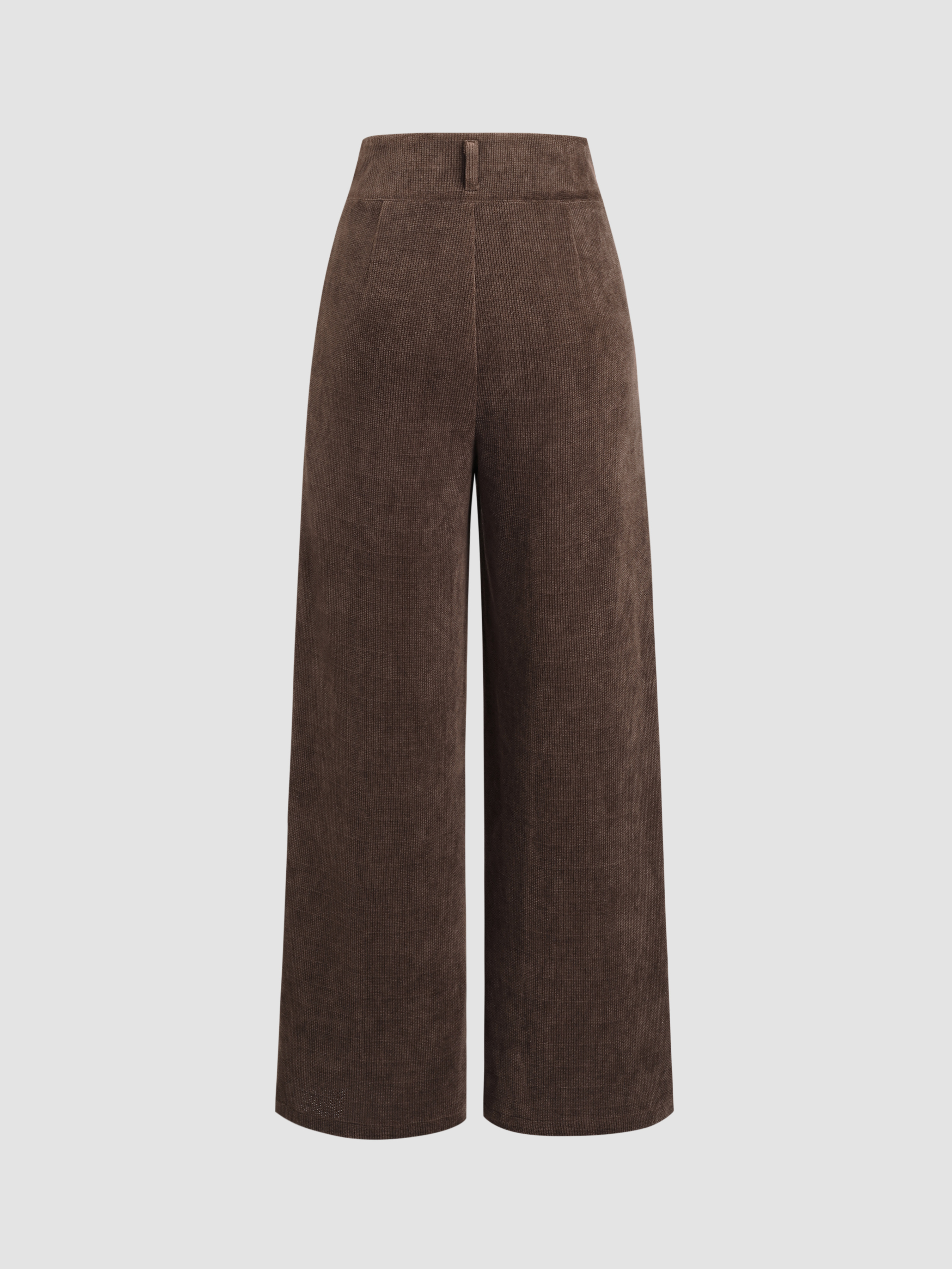 Pantaloni a vita alta in velluto a coste solidi a pieghe a gamba larga