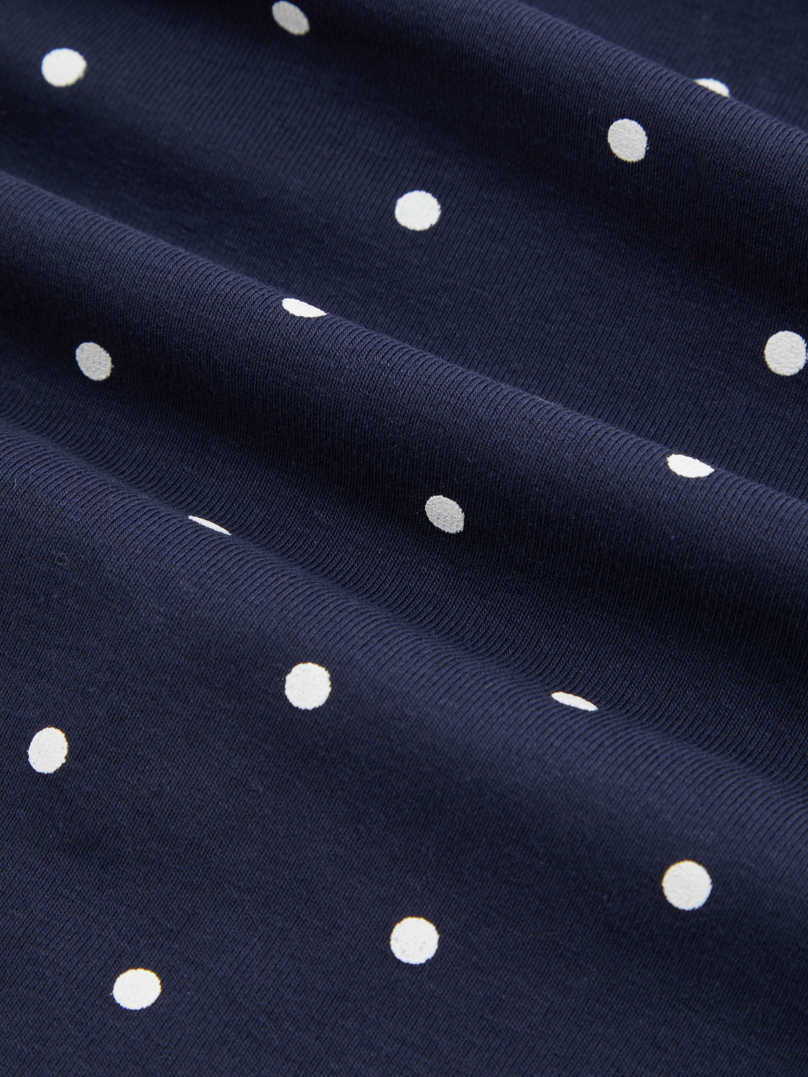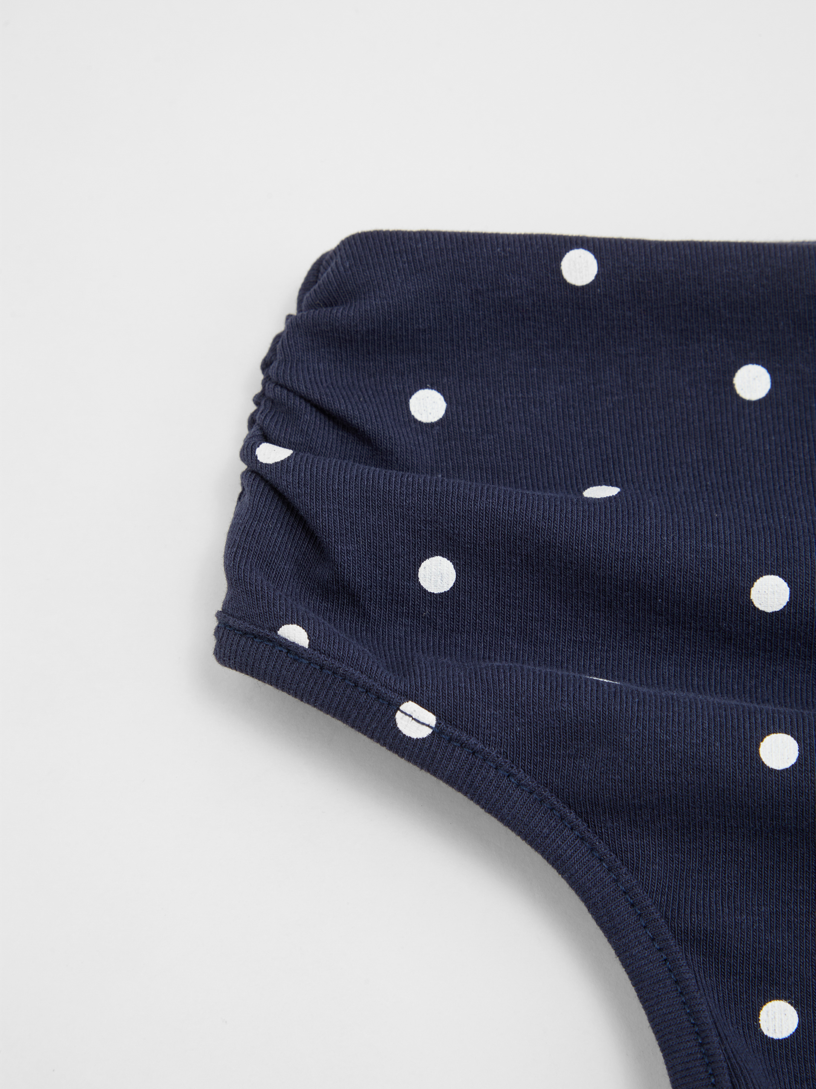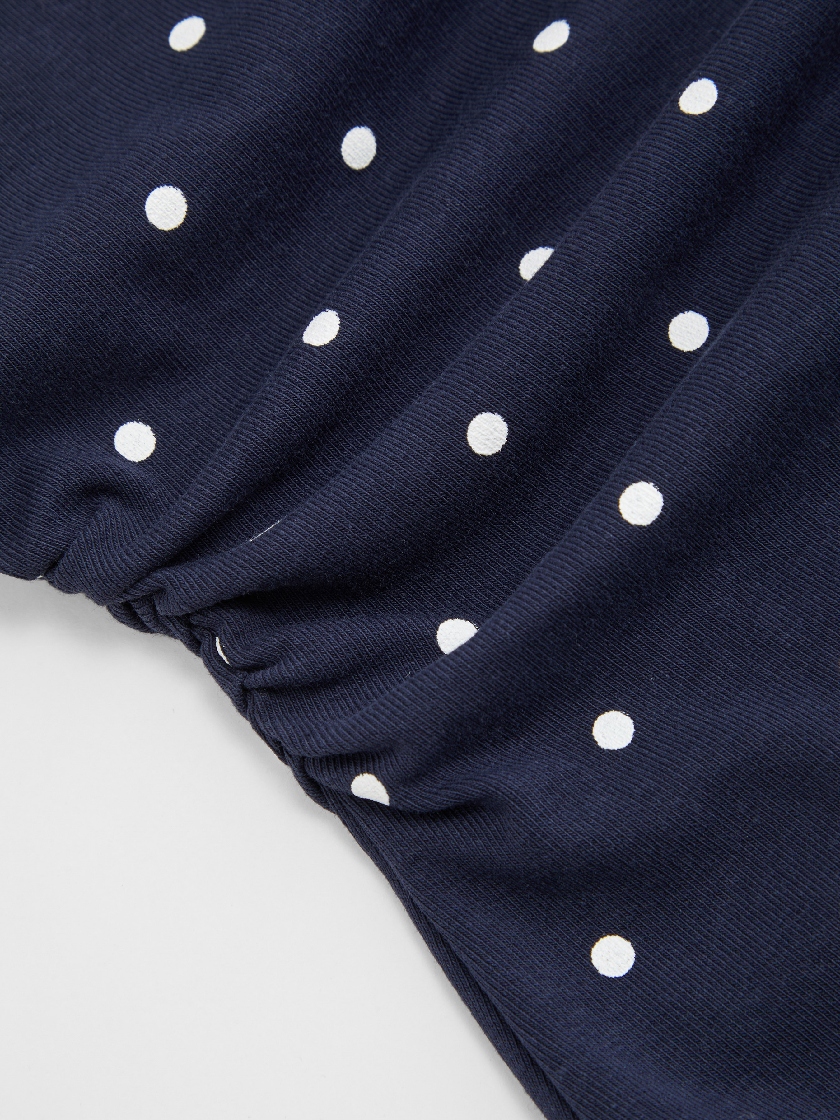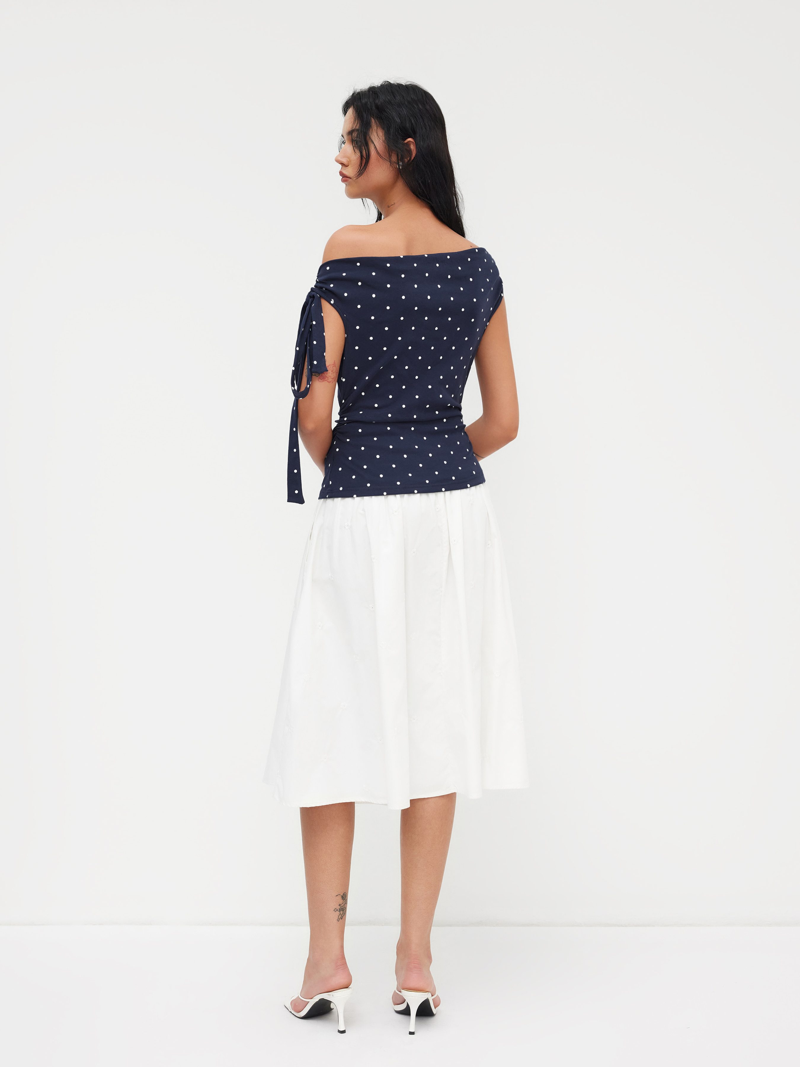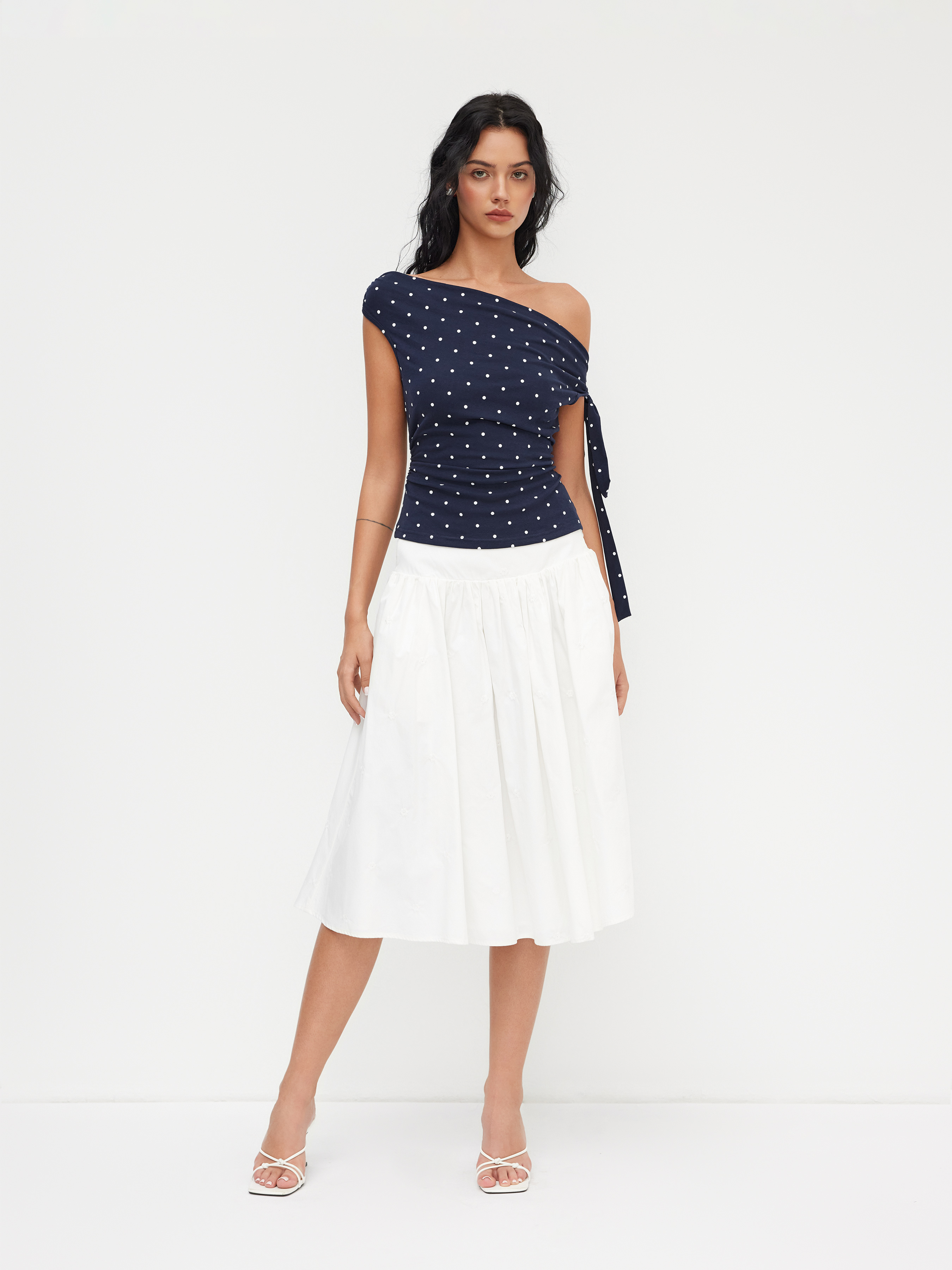 Top asimmetrico in misto cotone con pois arricciato e nodo sul collo