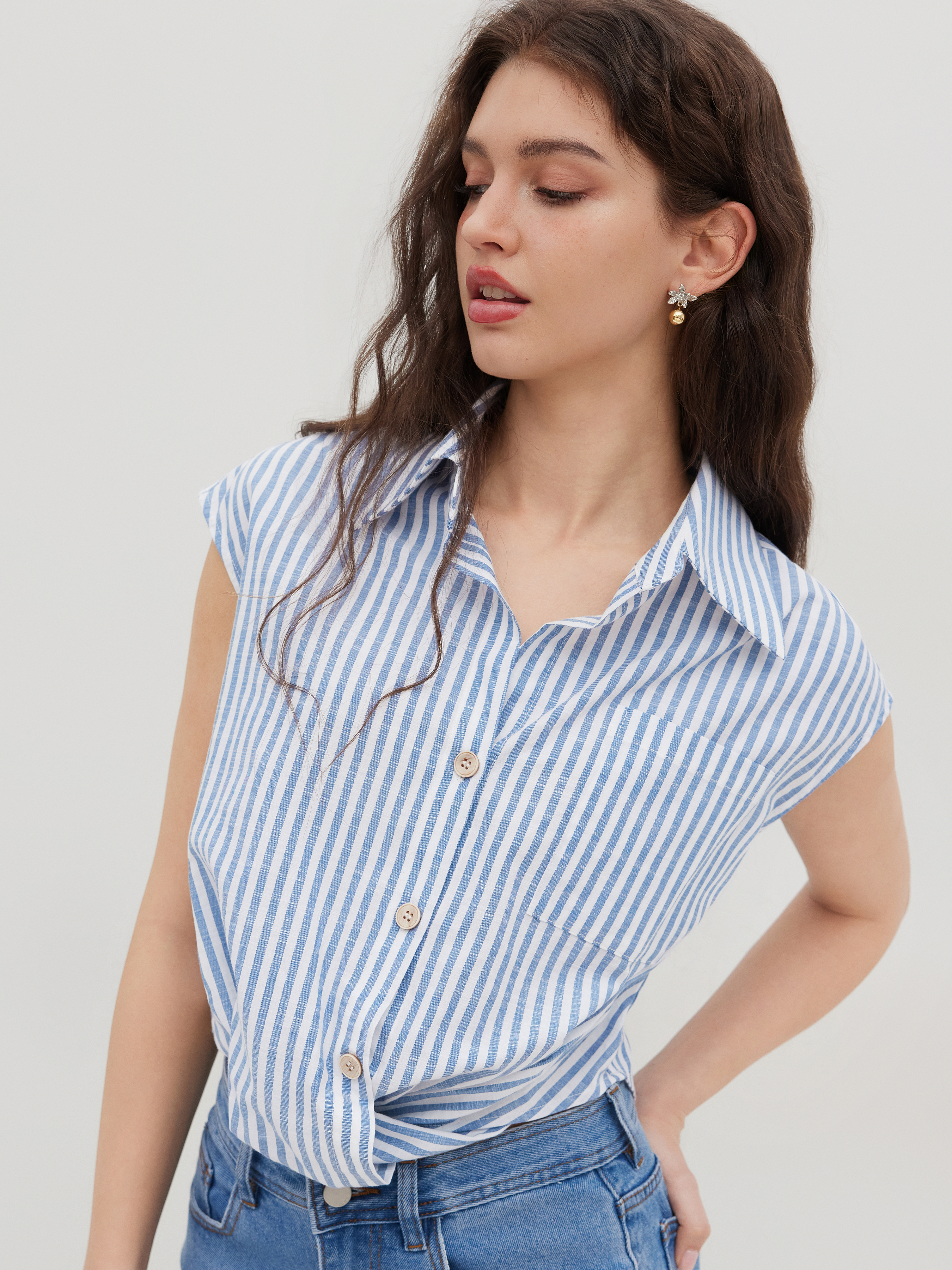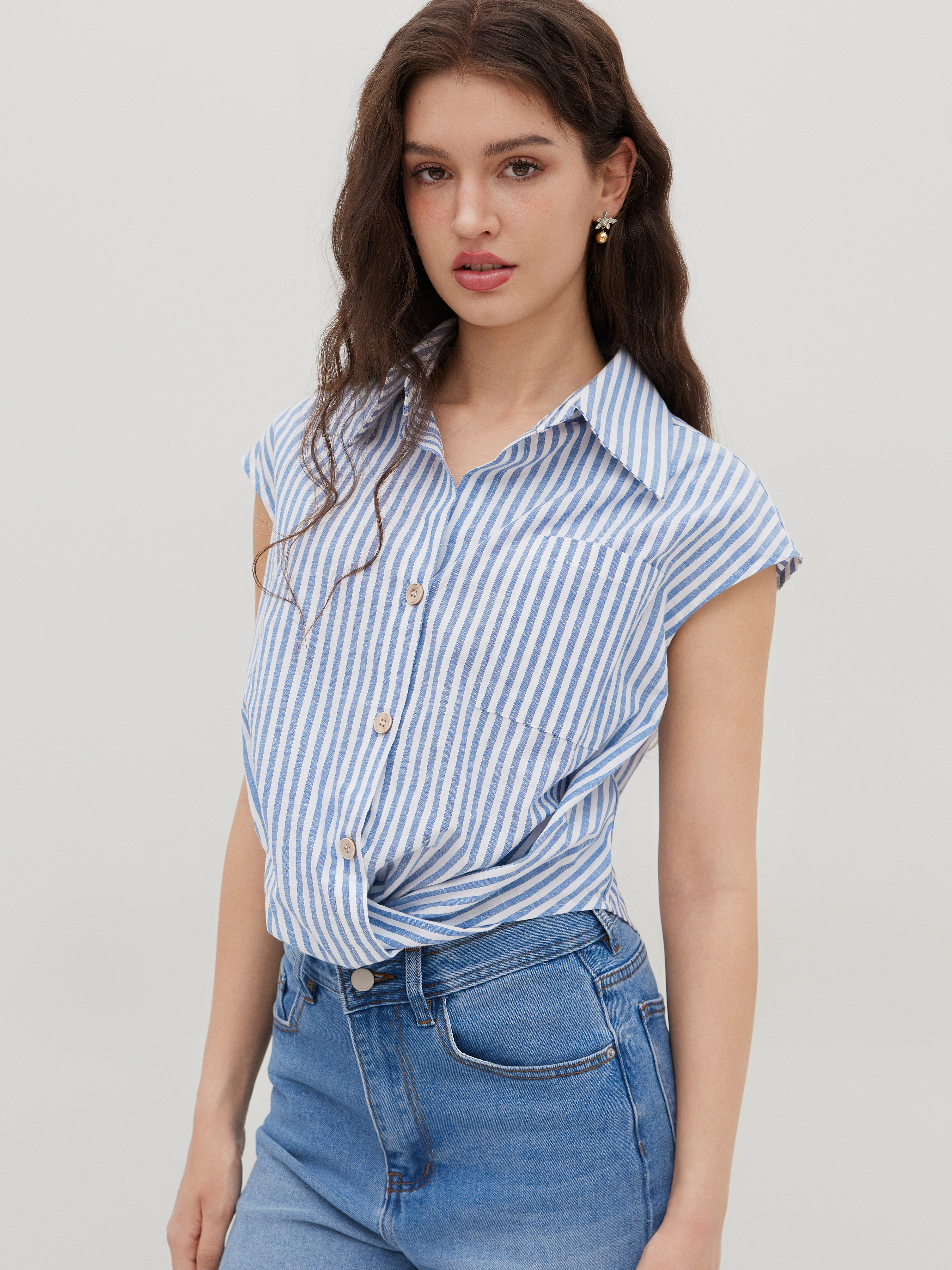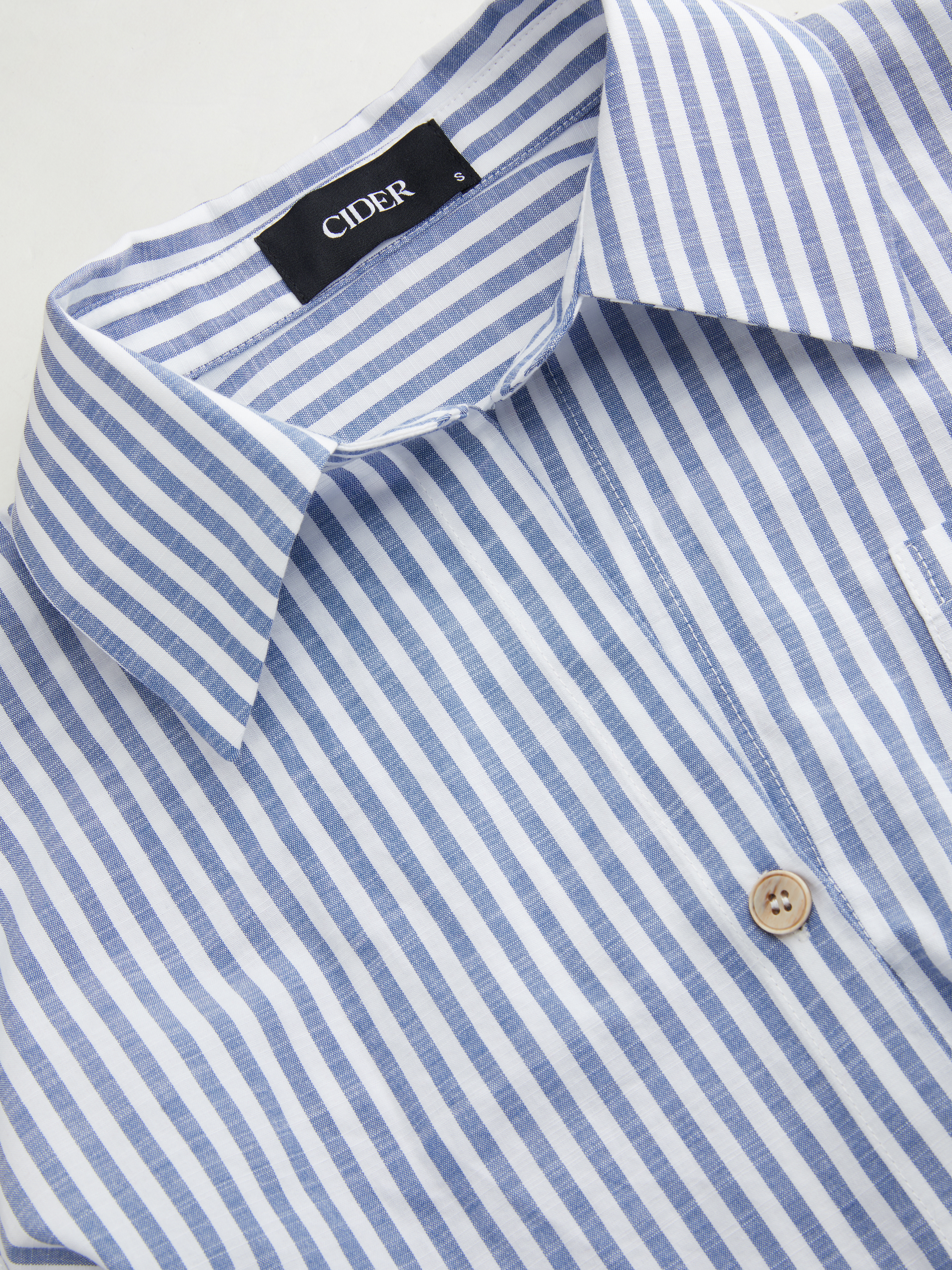 Camicia attorcigliata a righe sul colletto in misto cotone