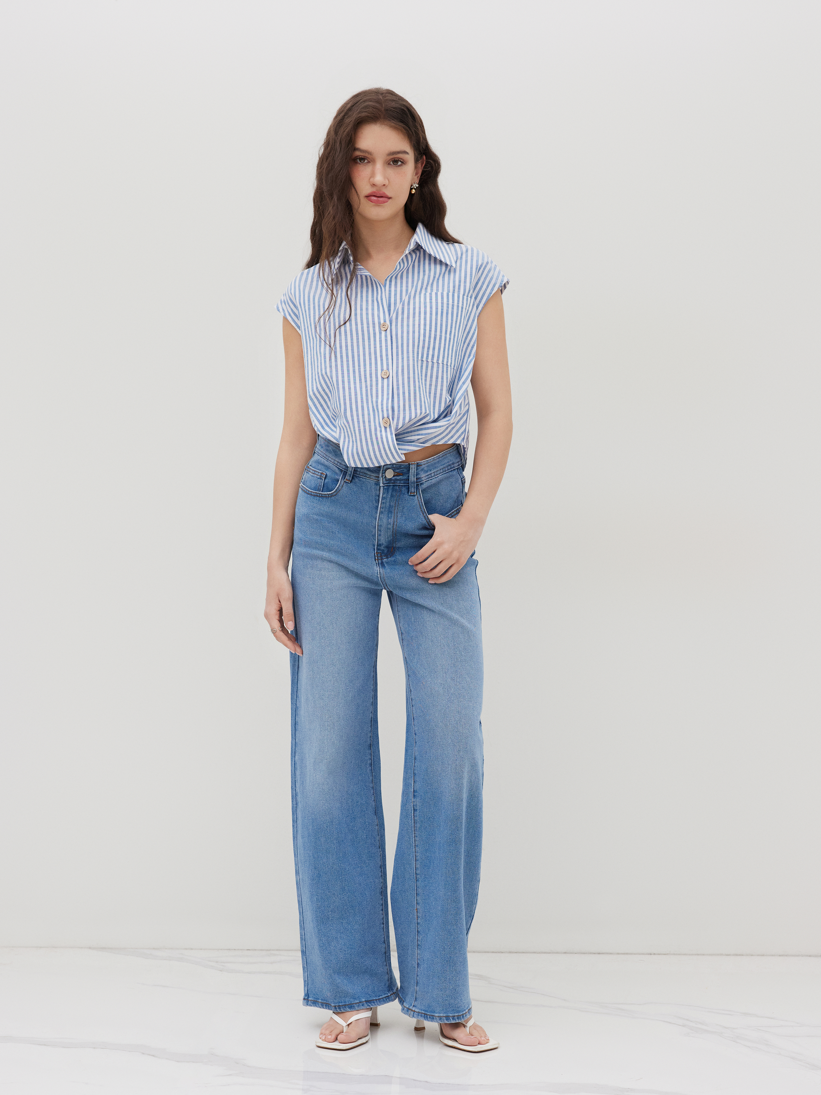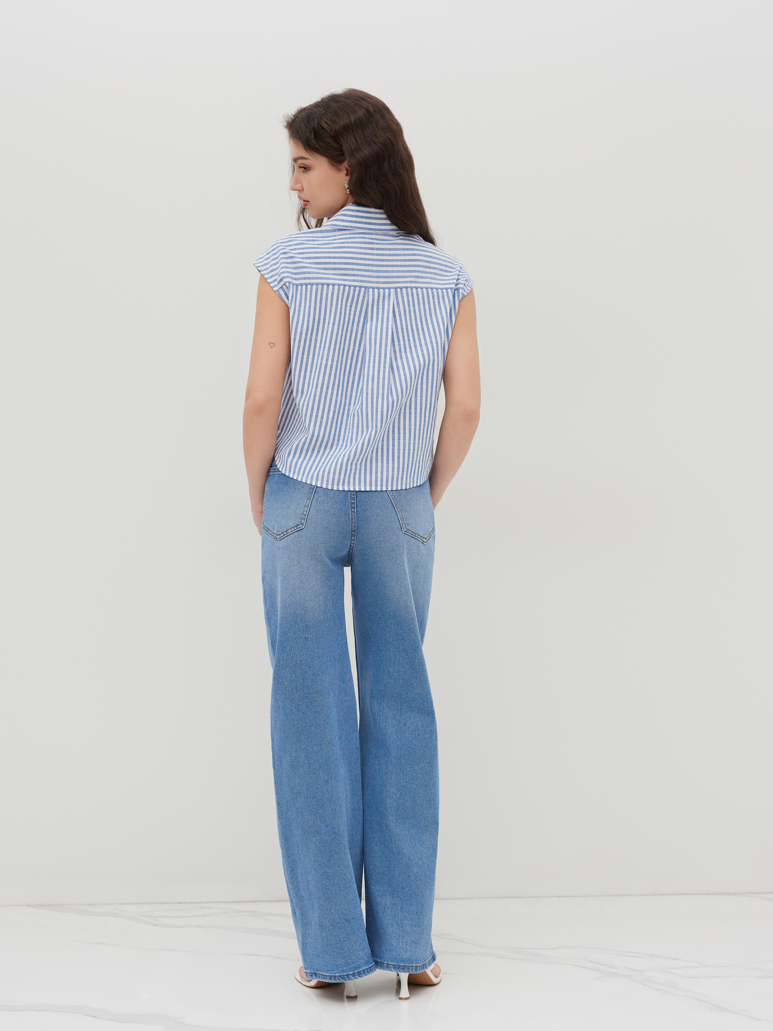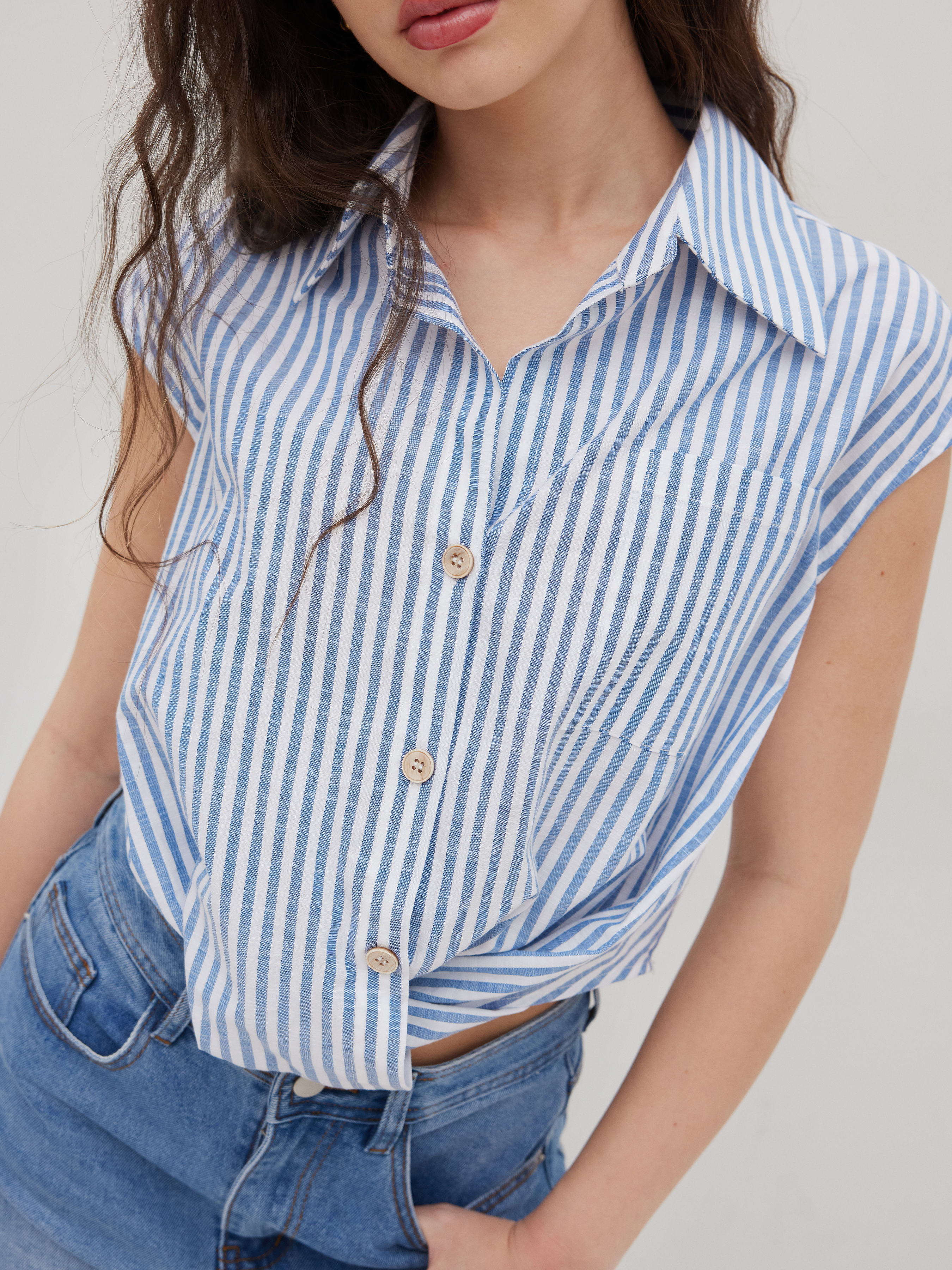 Camicia attorcigliata a righe sul colletto in misto cotone