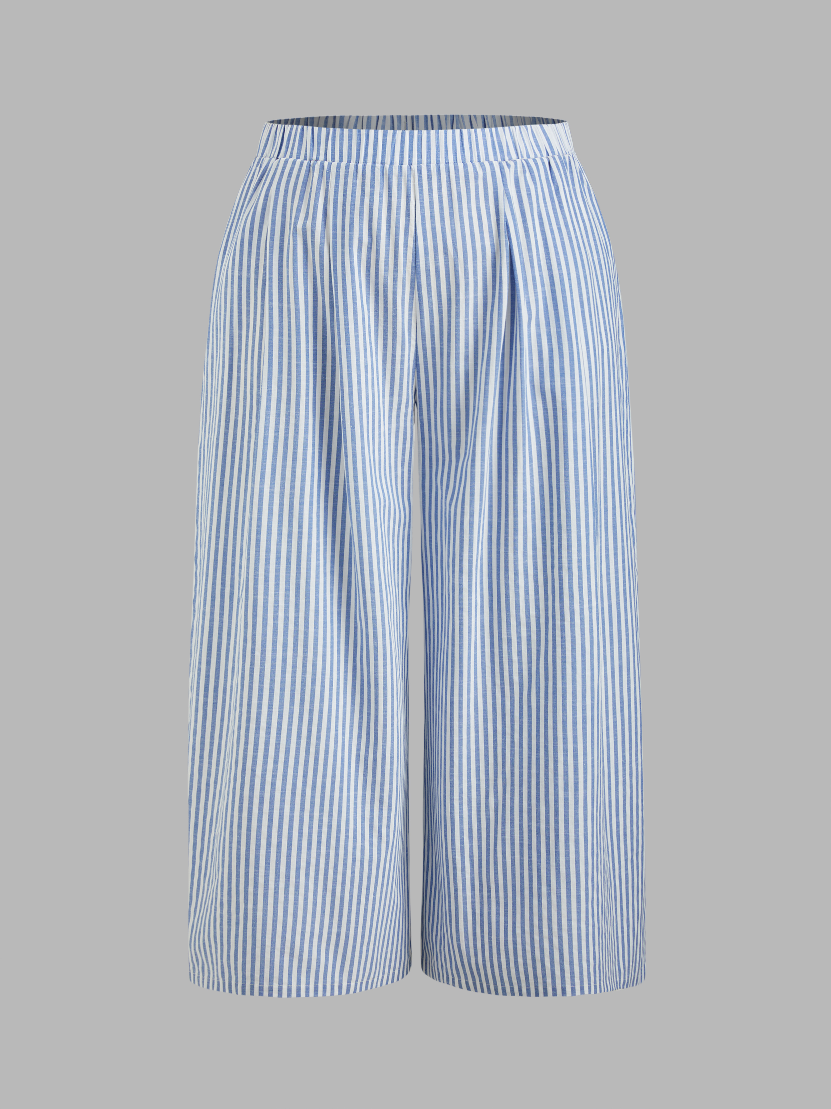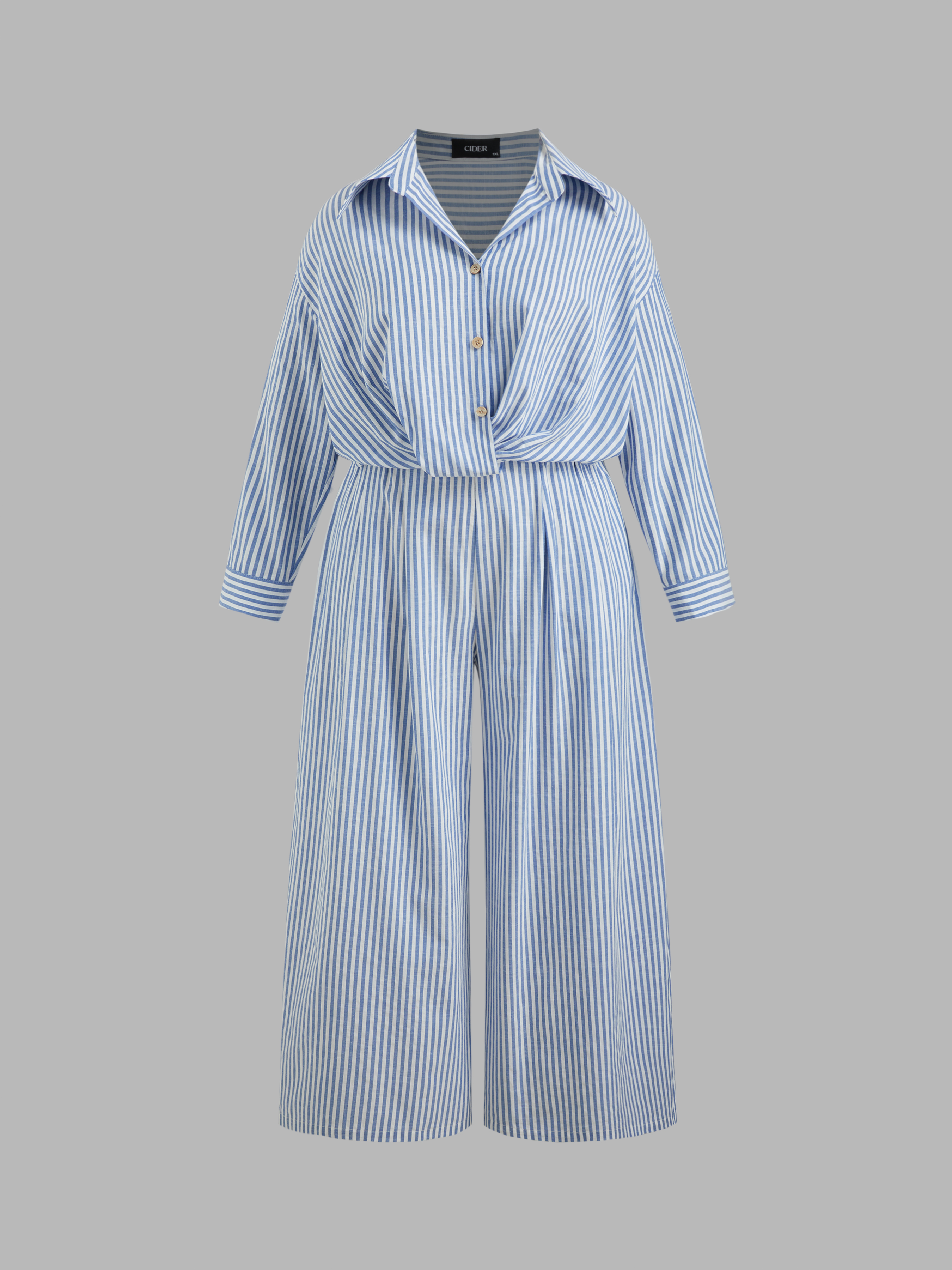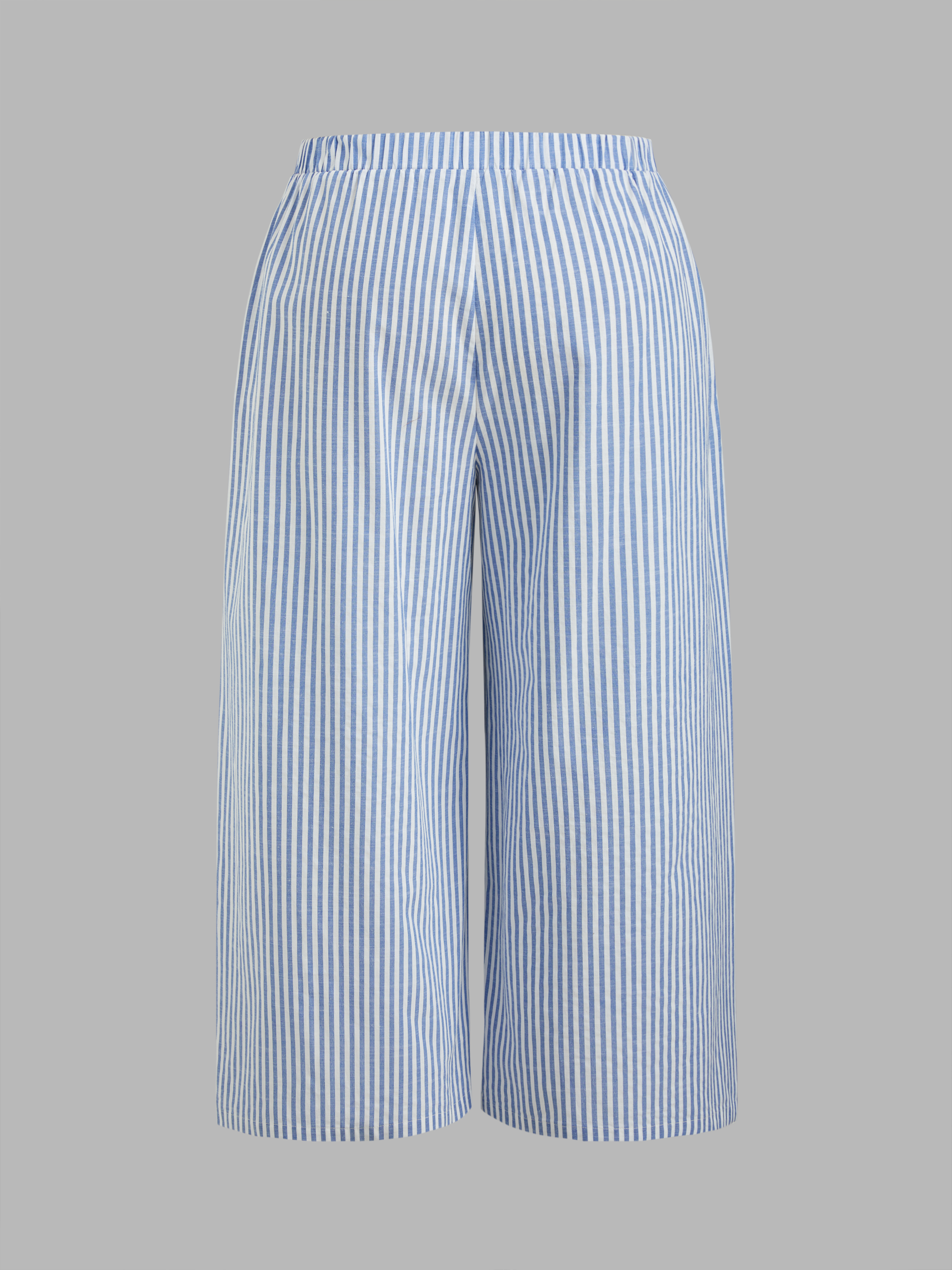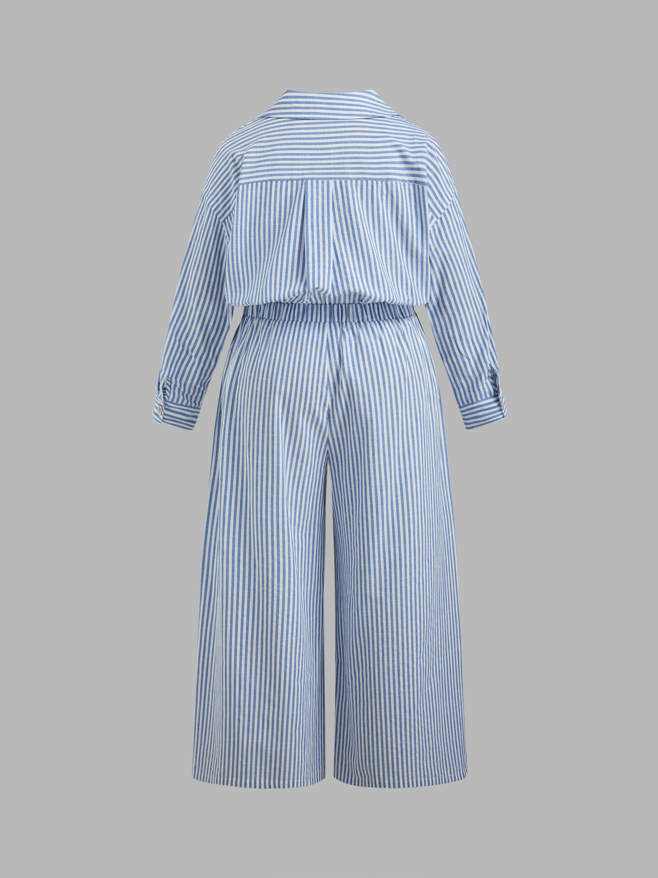 Camicia a maniche lunghe con colletto a righe e bottoni in misto cotone e pantaloni a gamba larga a righe a vita media Set Curve & Plus