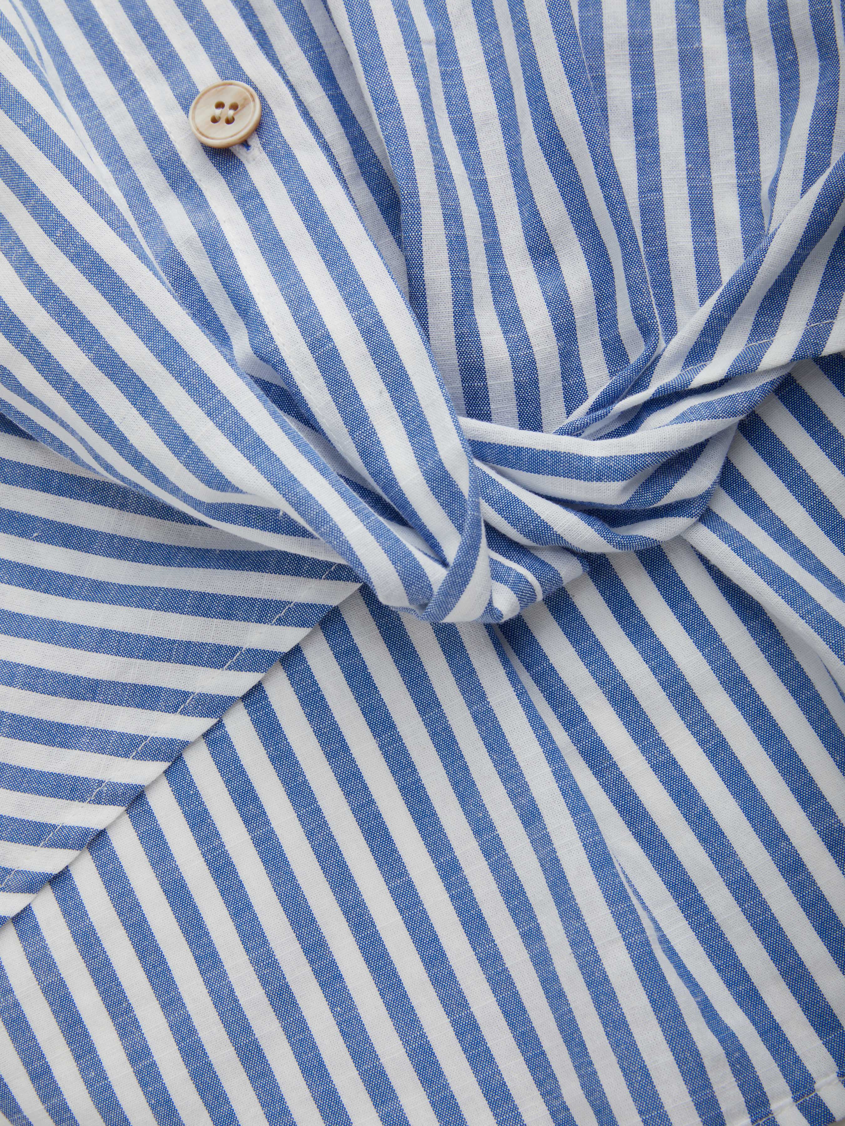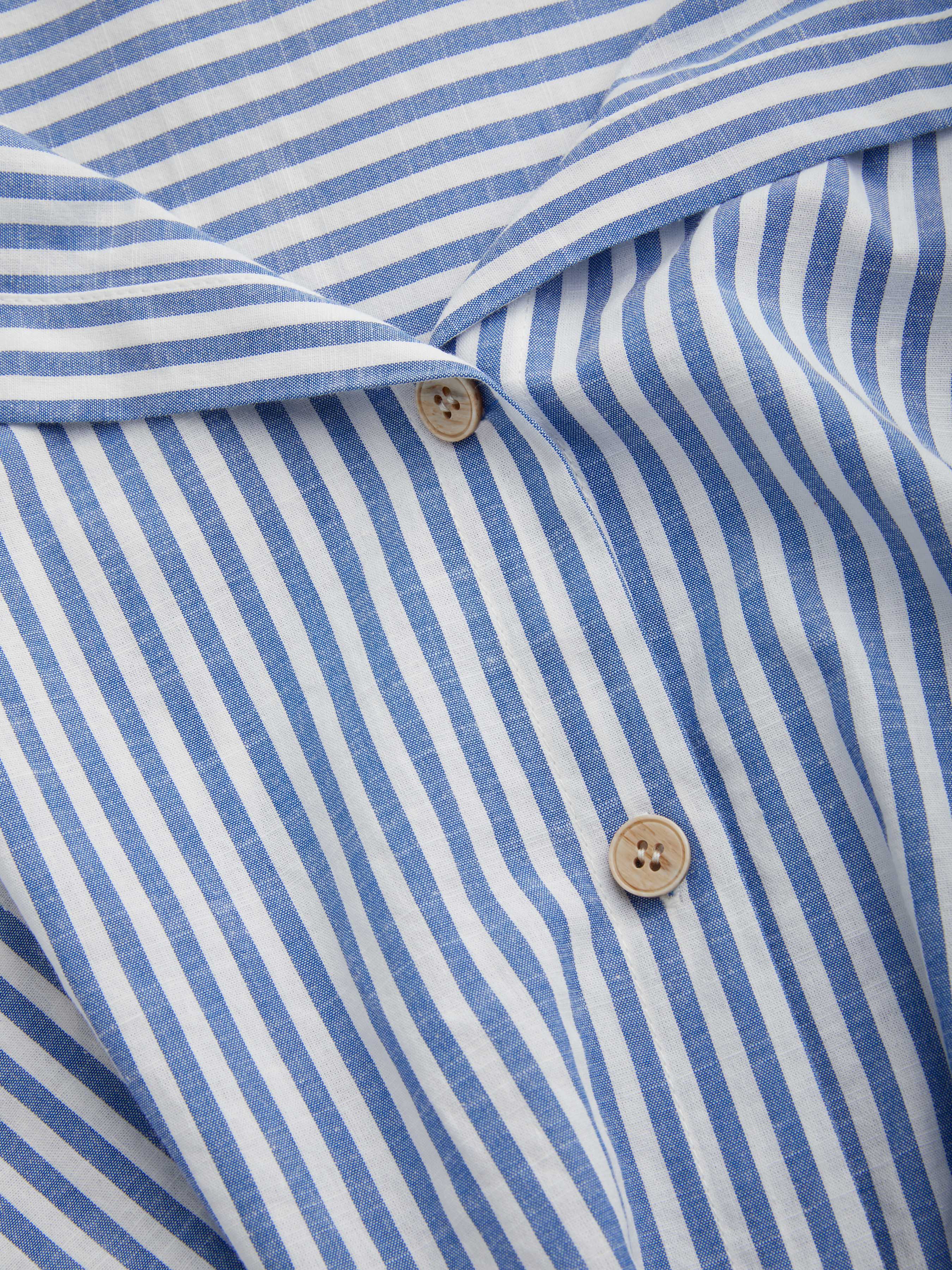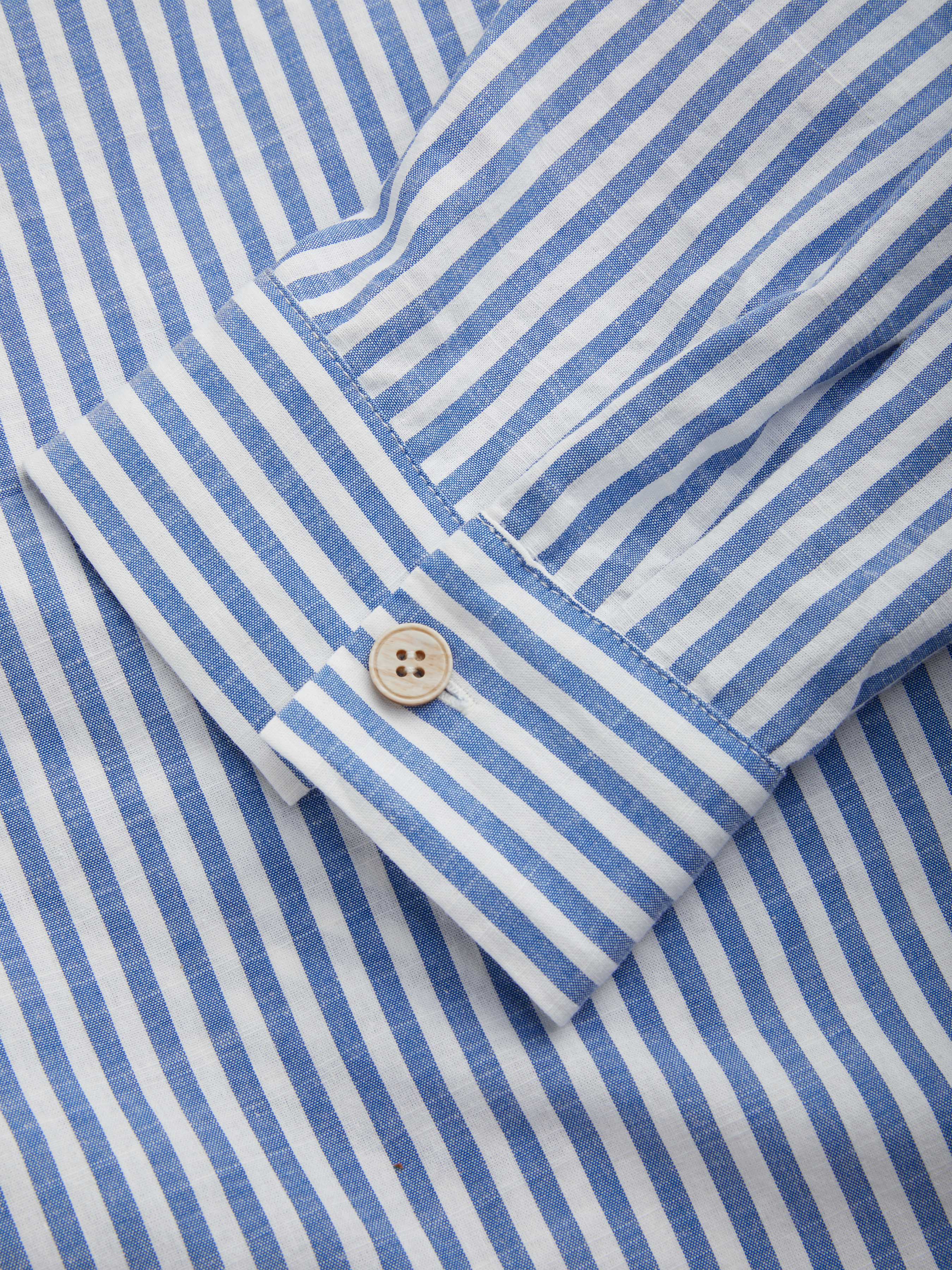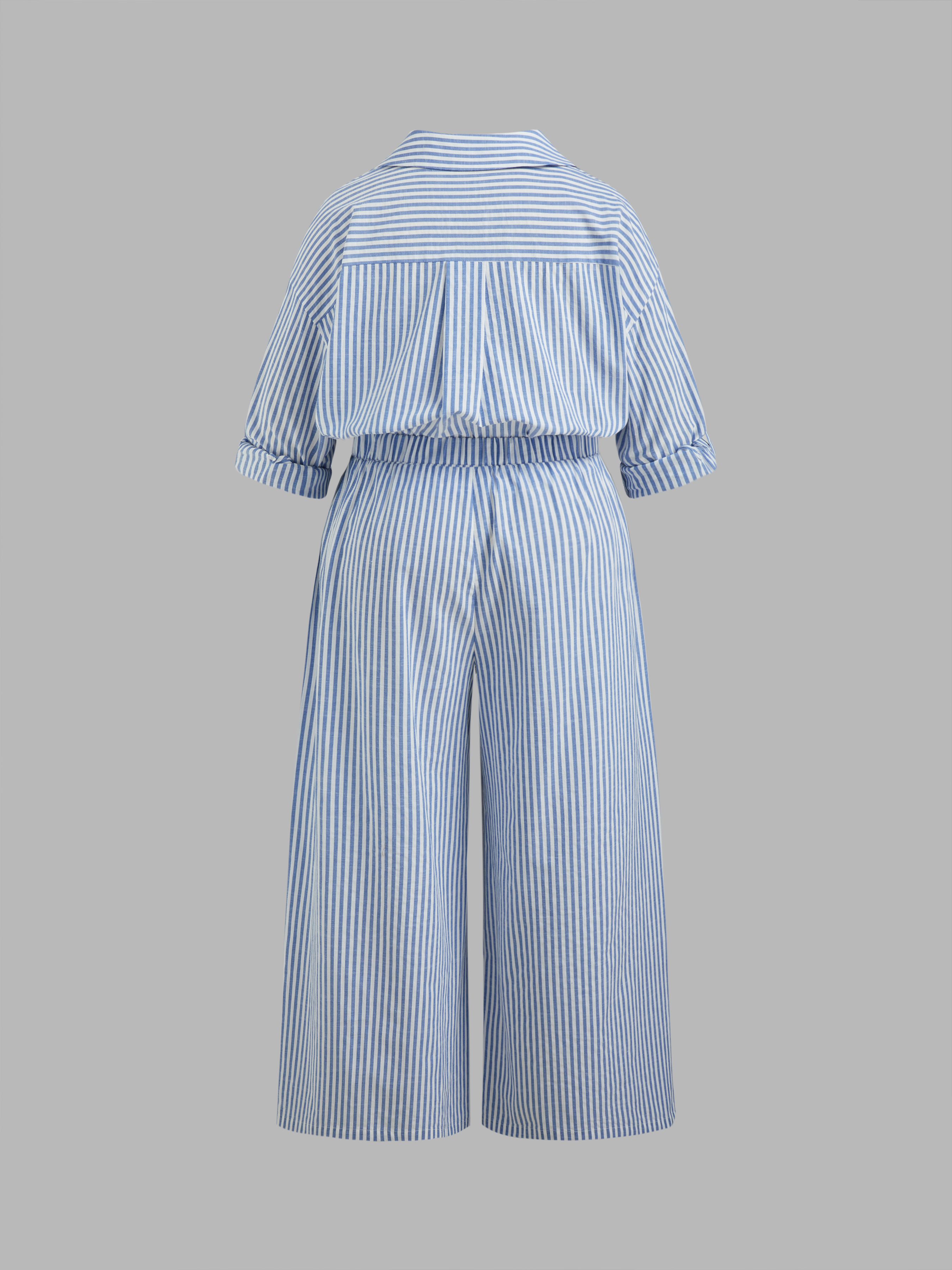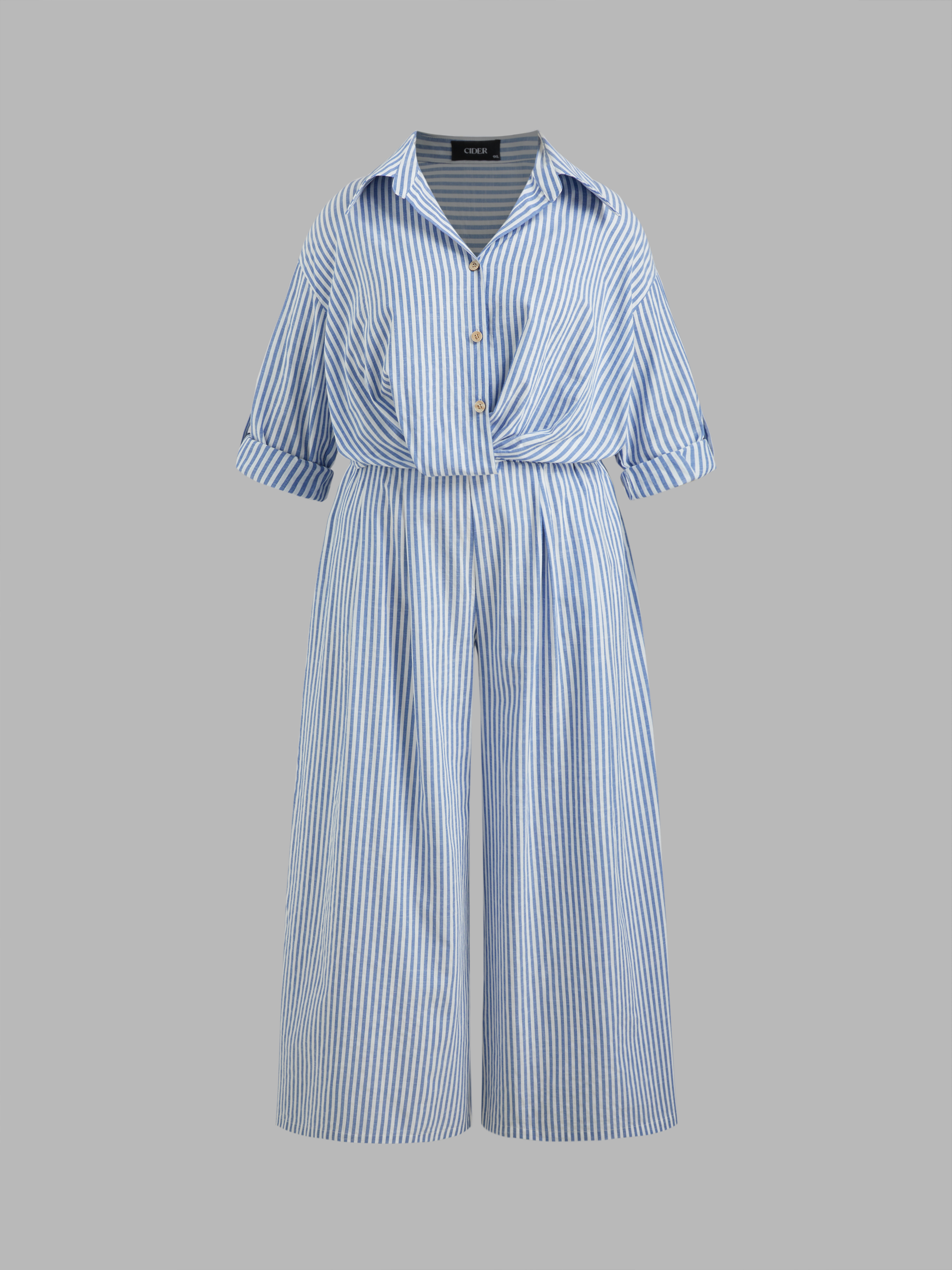 Camicia a maniche lunghe con colletto a righe e bottoni in misto cotone e pantaloni a gamba larga a righe a vita media Set Curve & Plus