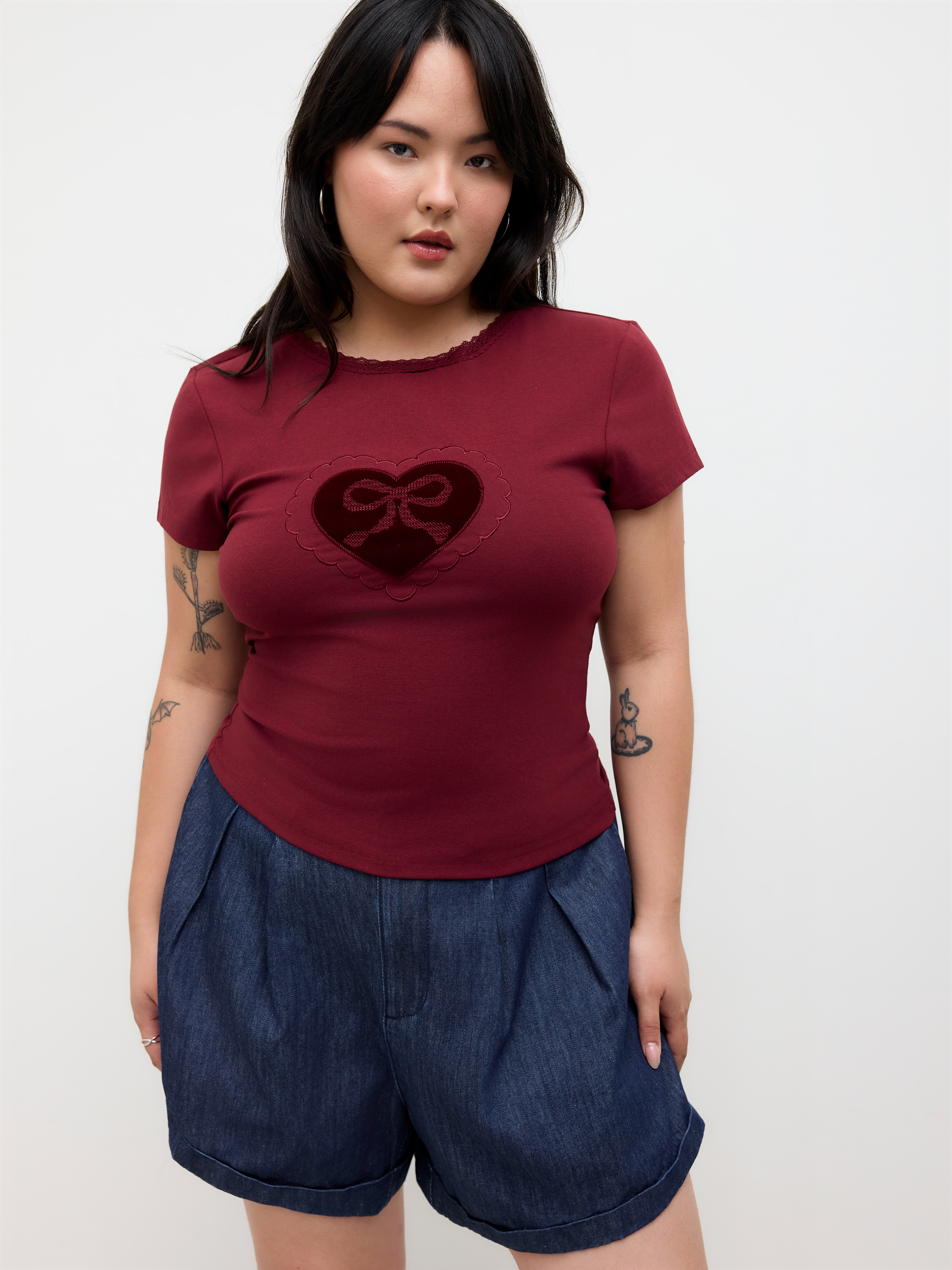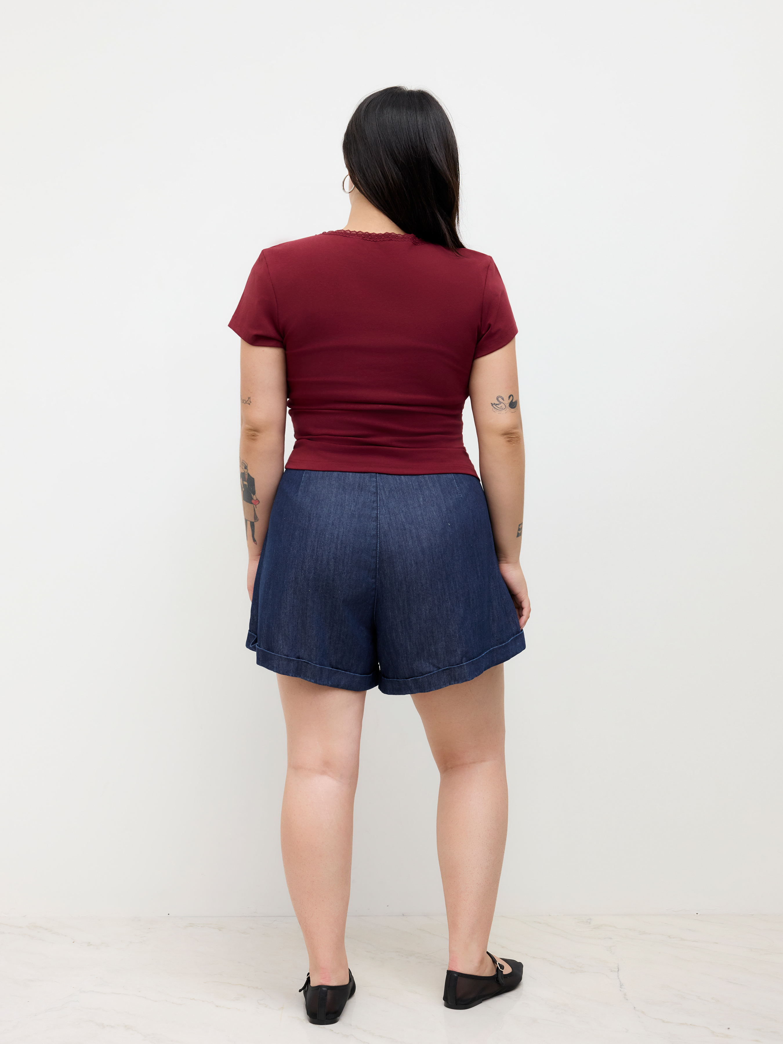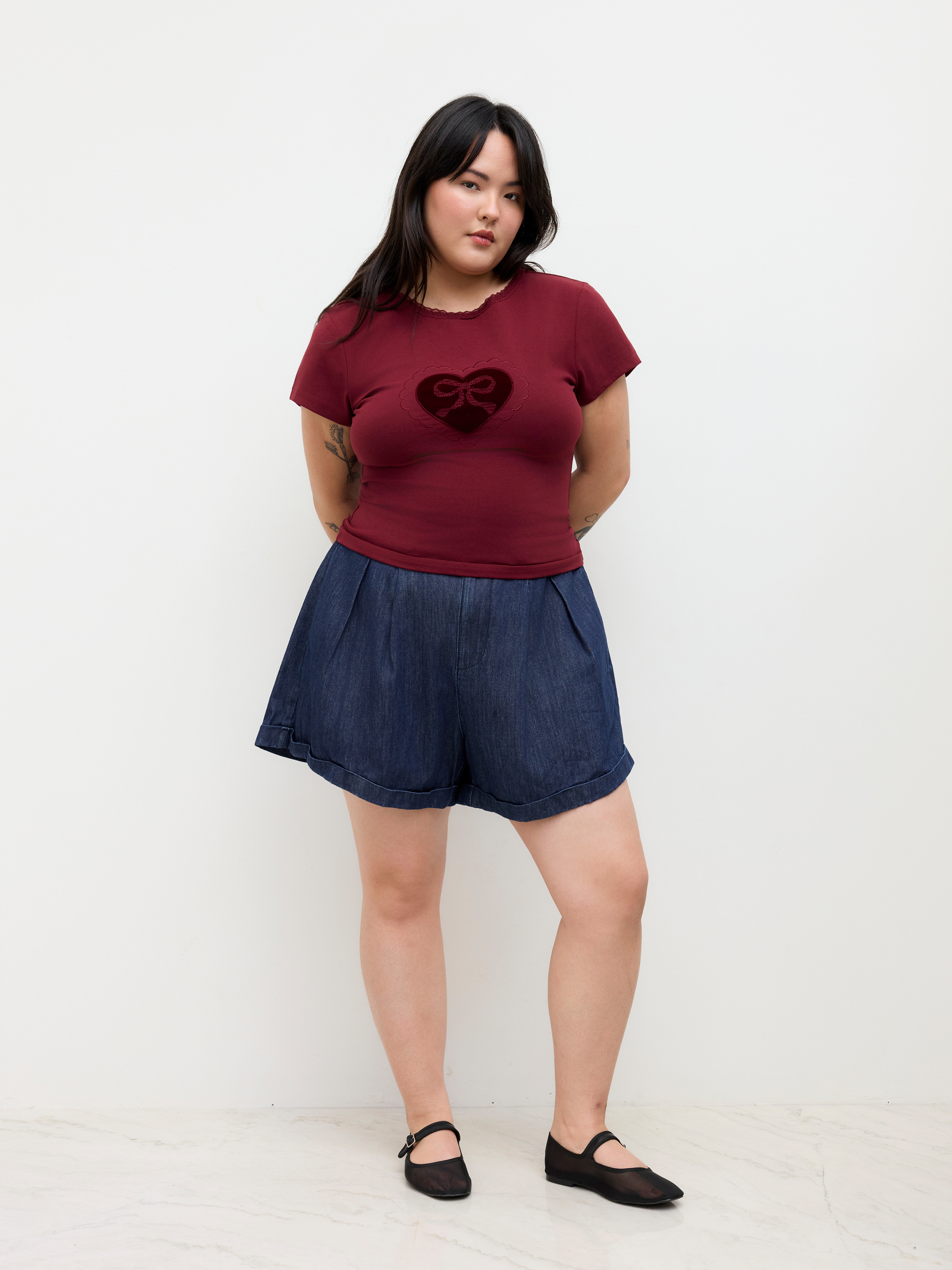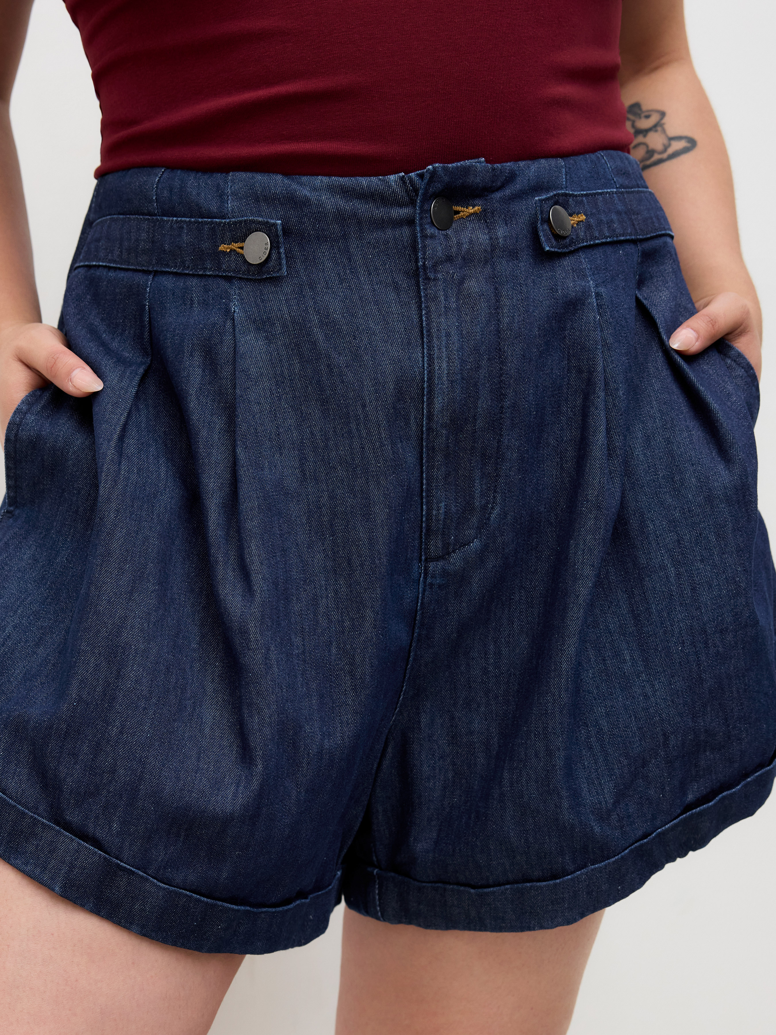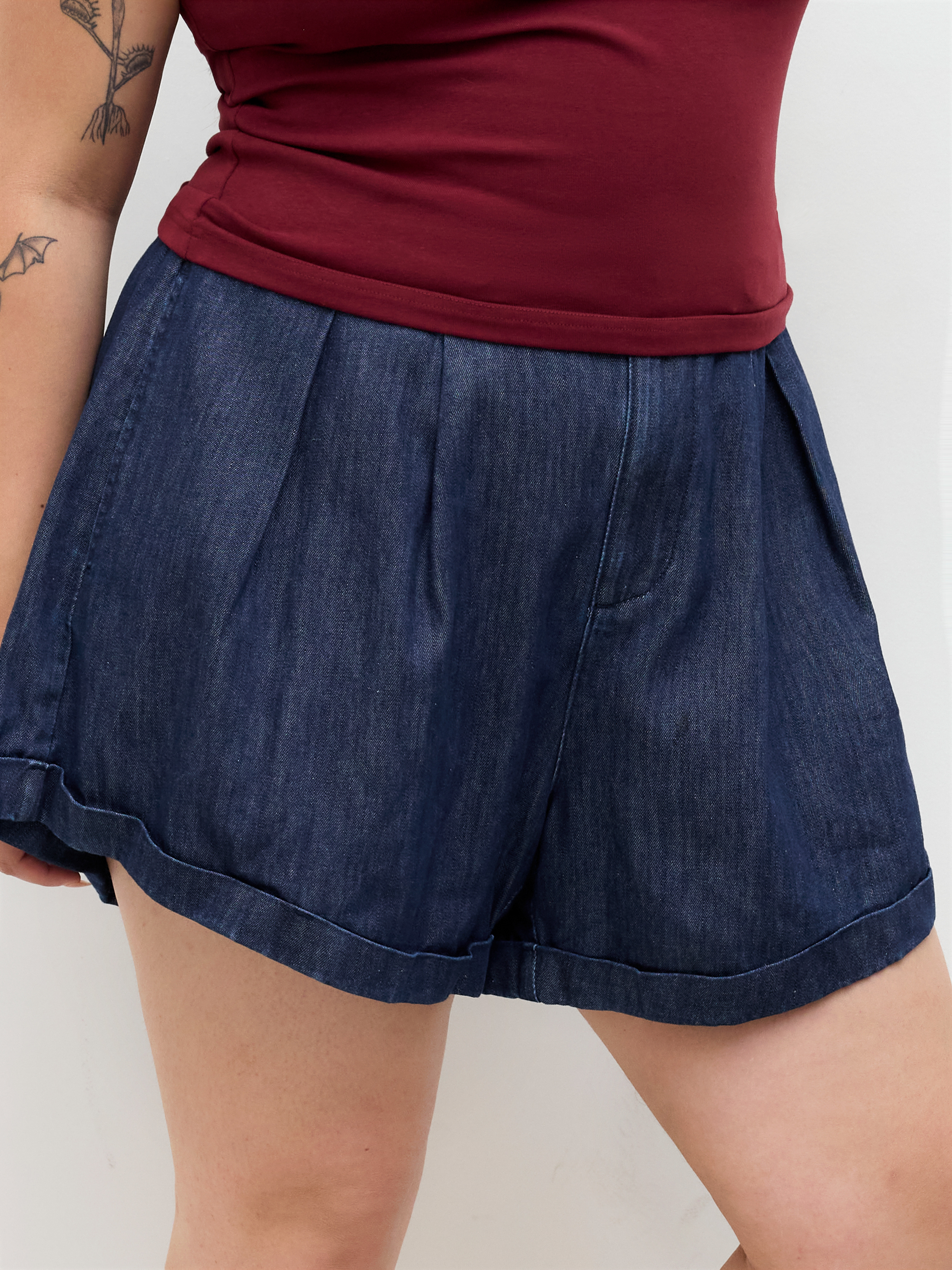 Pantaloncini di jeans a pieghe a vita media Curve & Plus