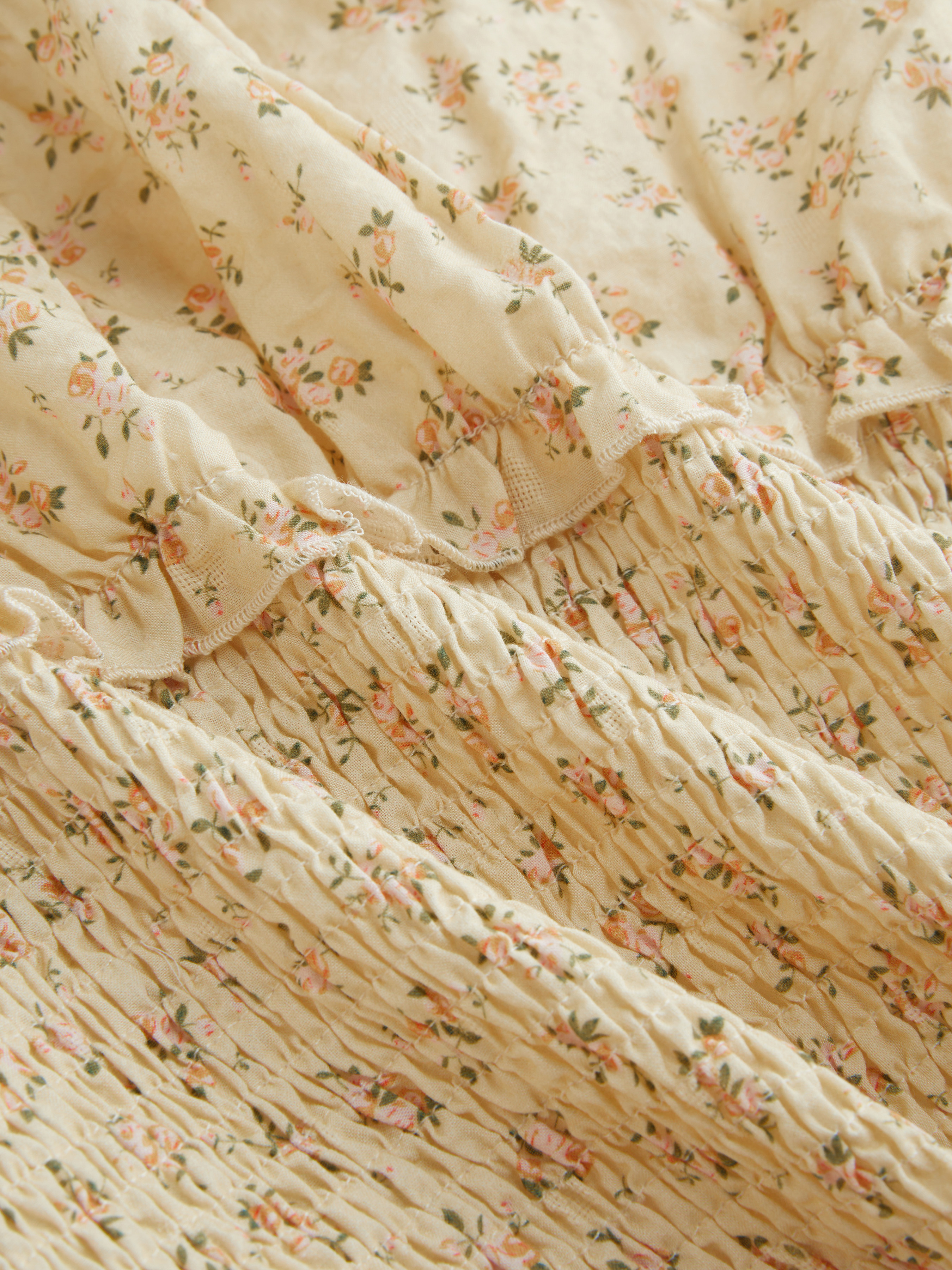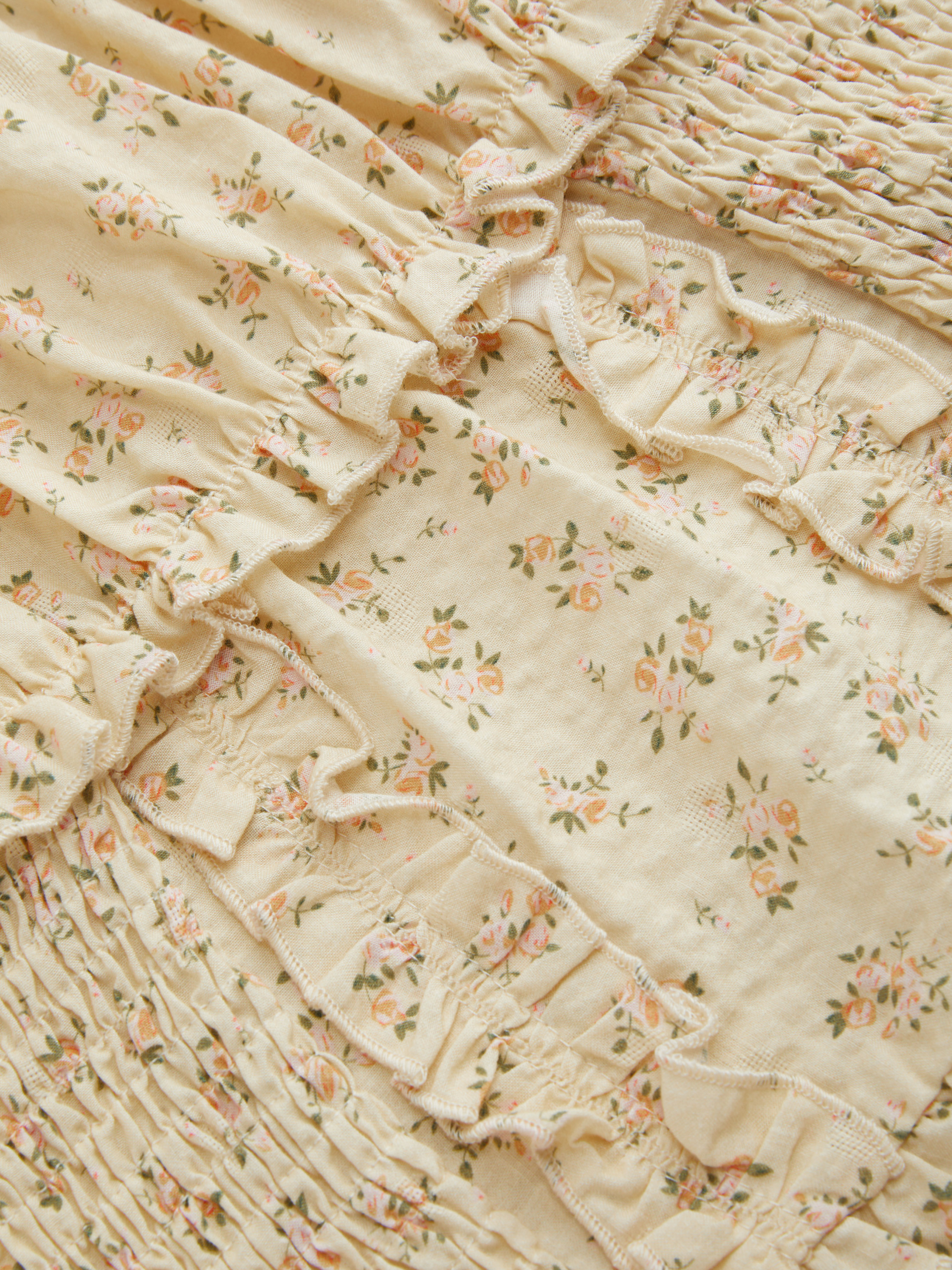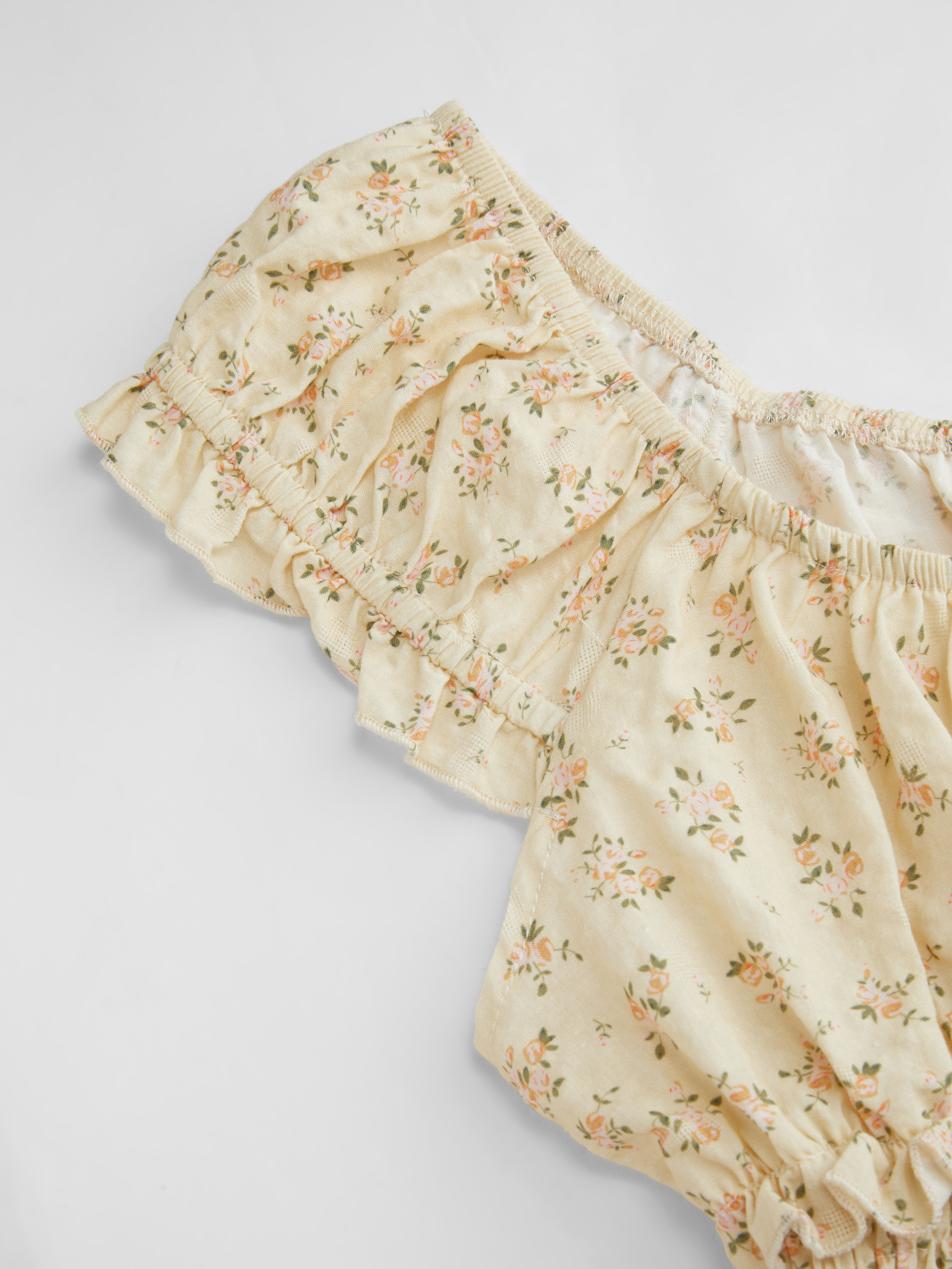 Blusa arricciata e arricciata in misto cotone a fiori Ditsy con bordo a lattuga