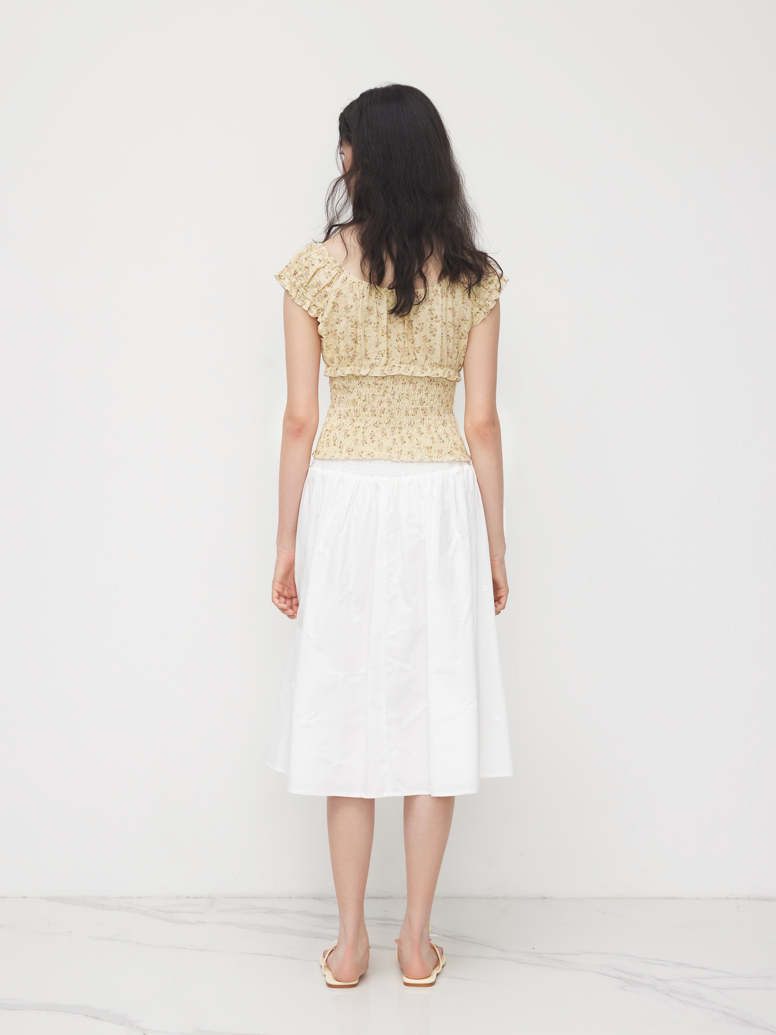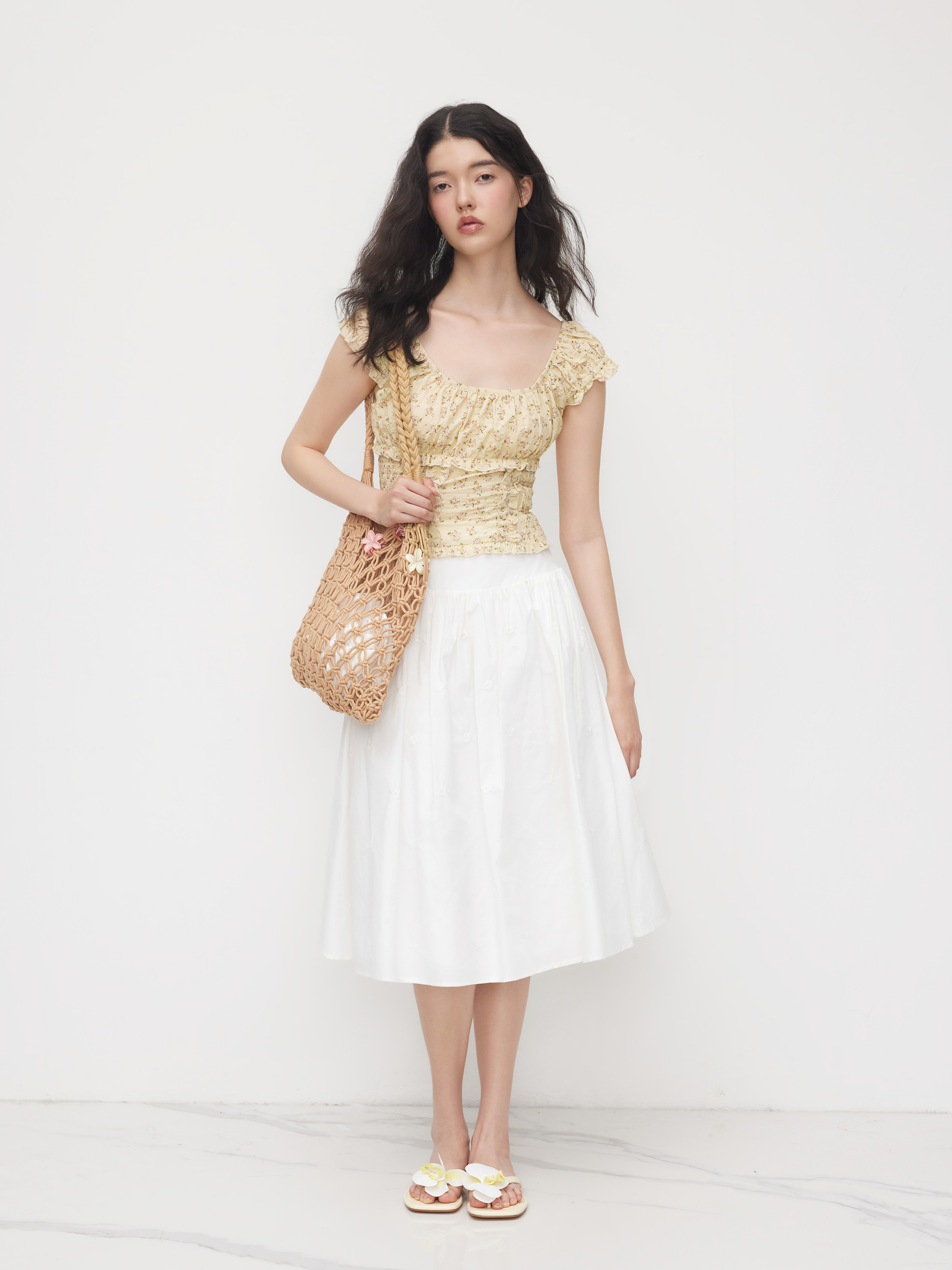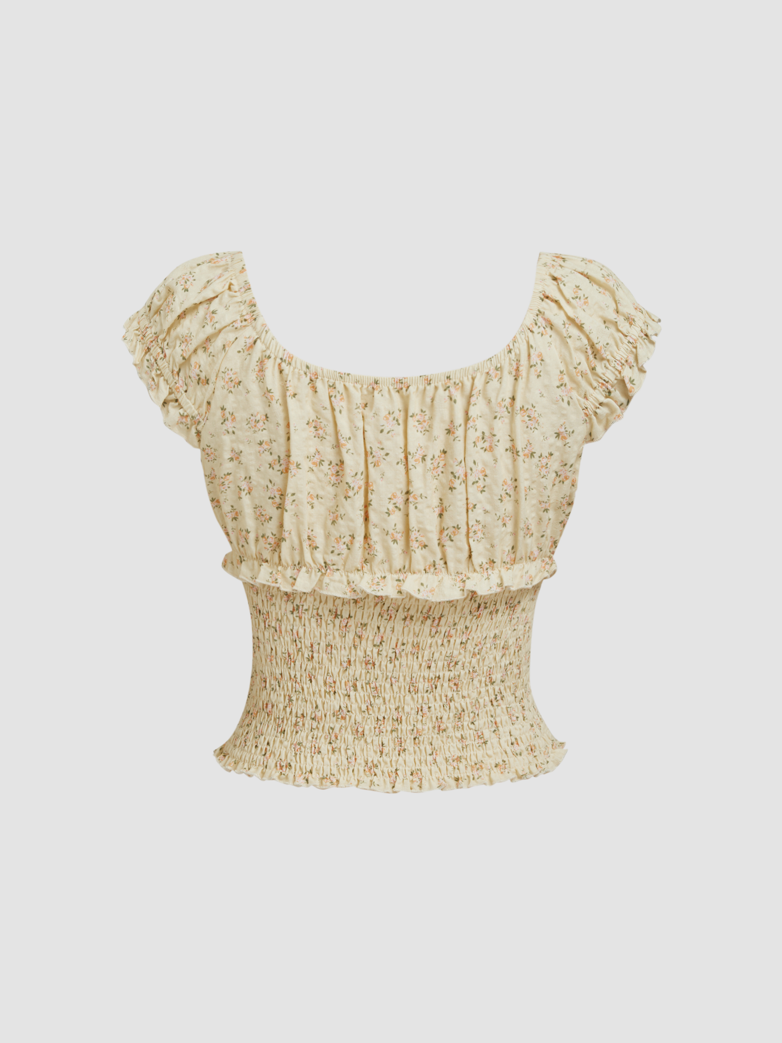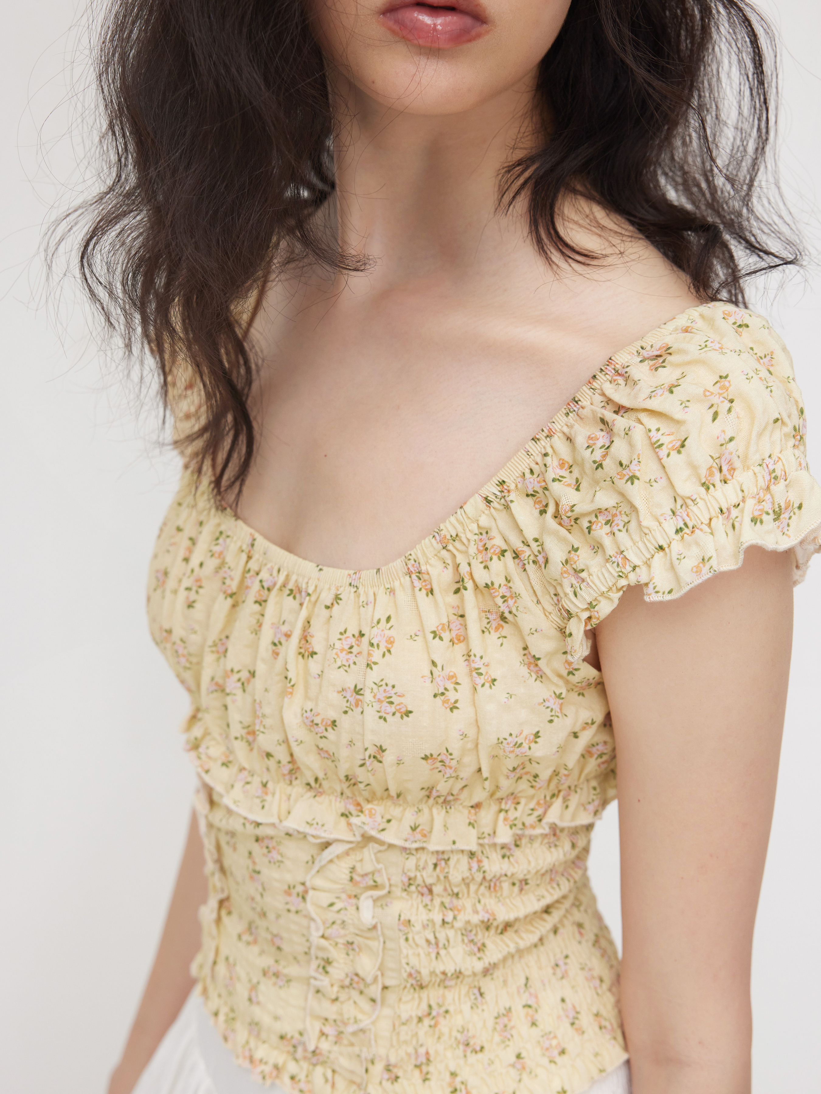 Blusa arricciata e arricciata in misto cotone a fiori Ditsy con bordo a lattuga
