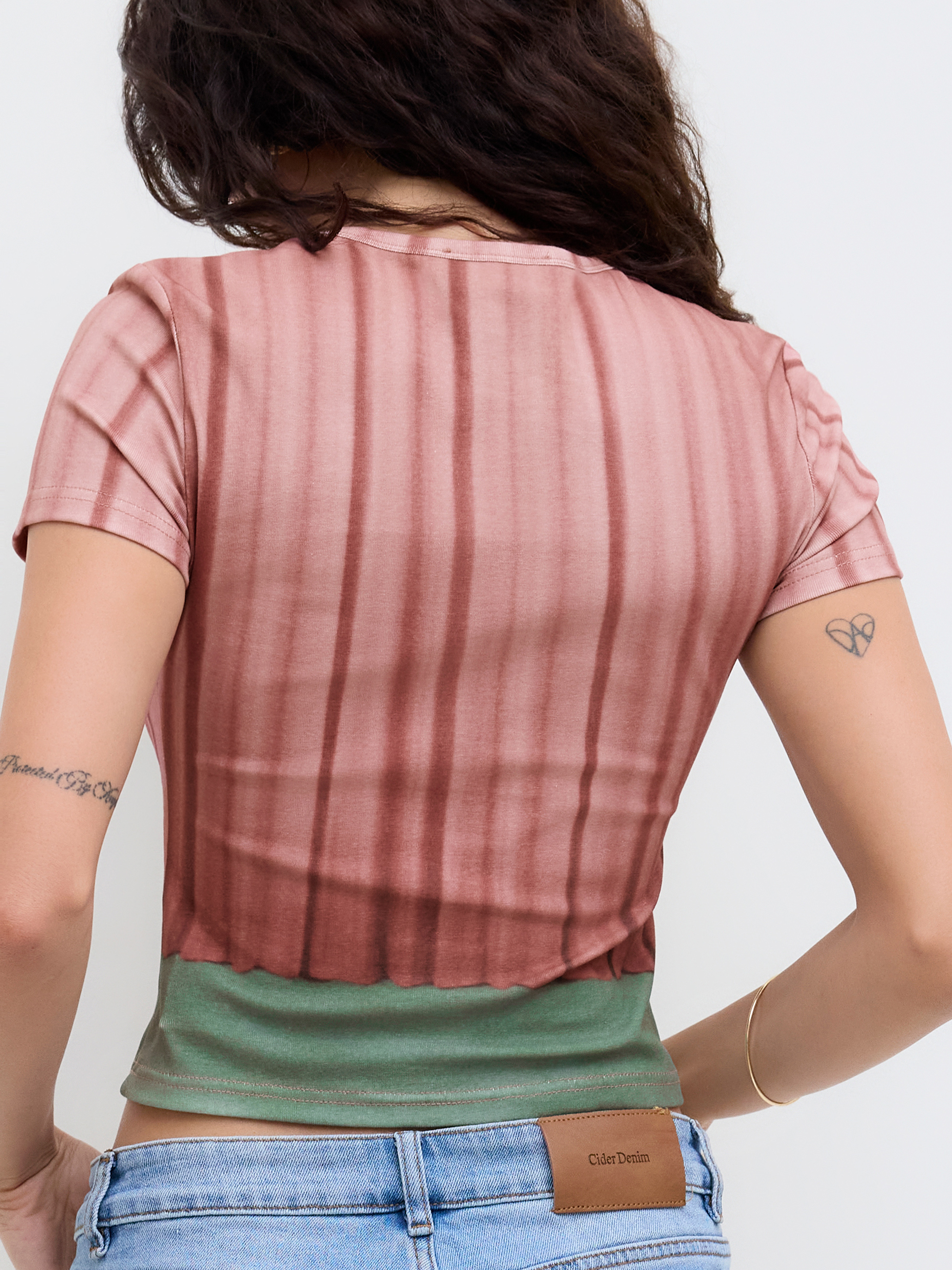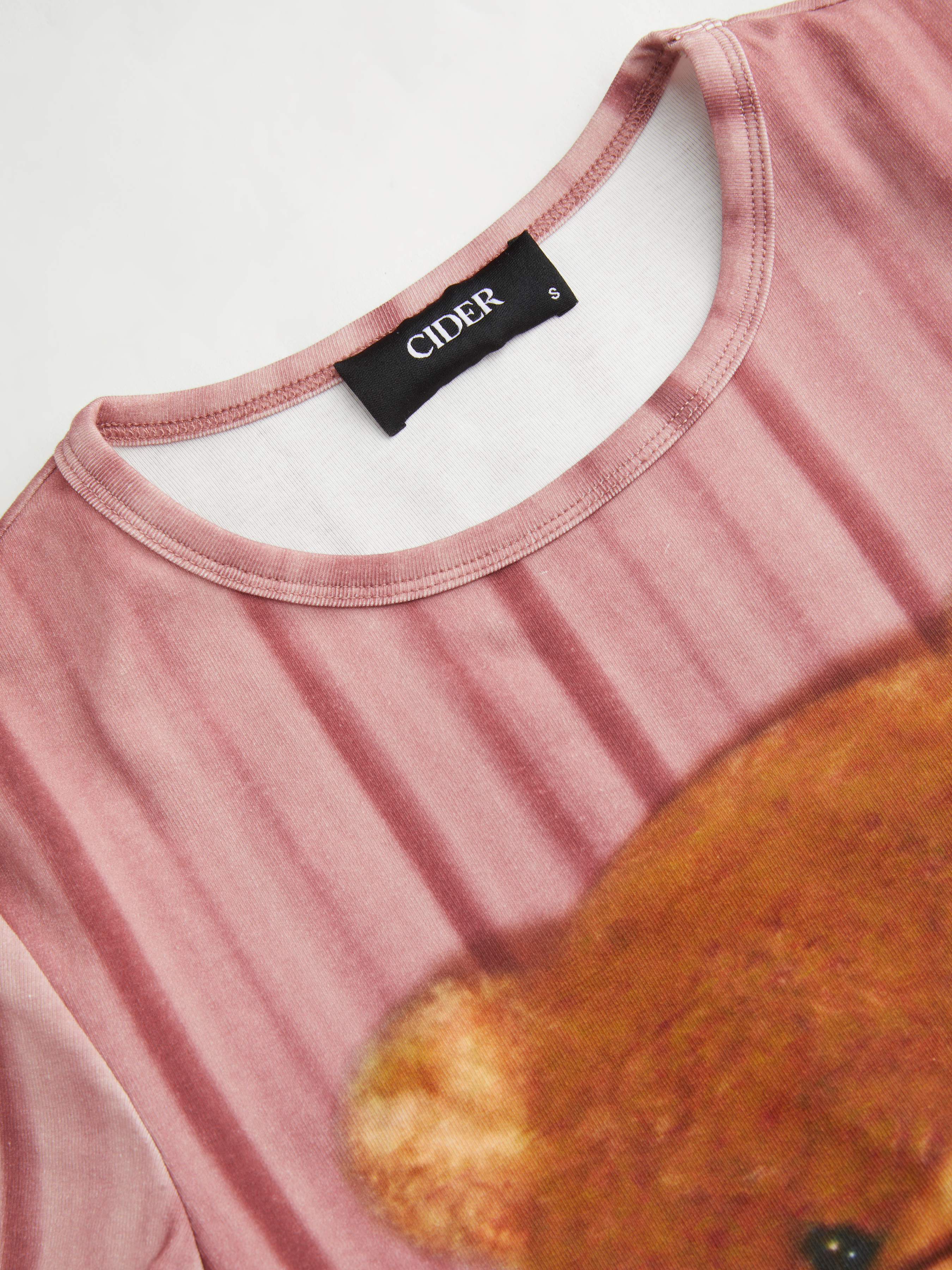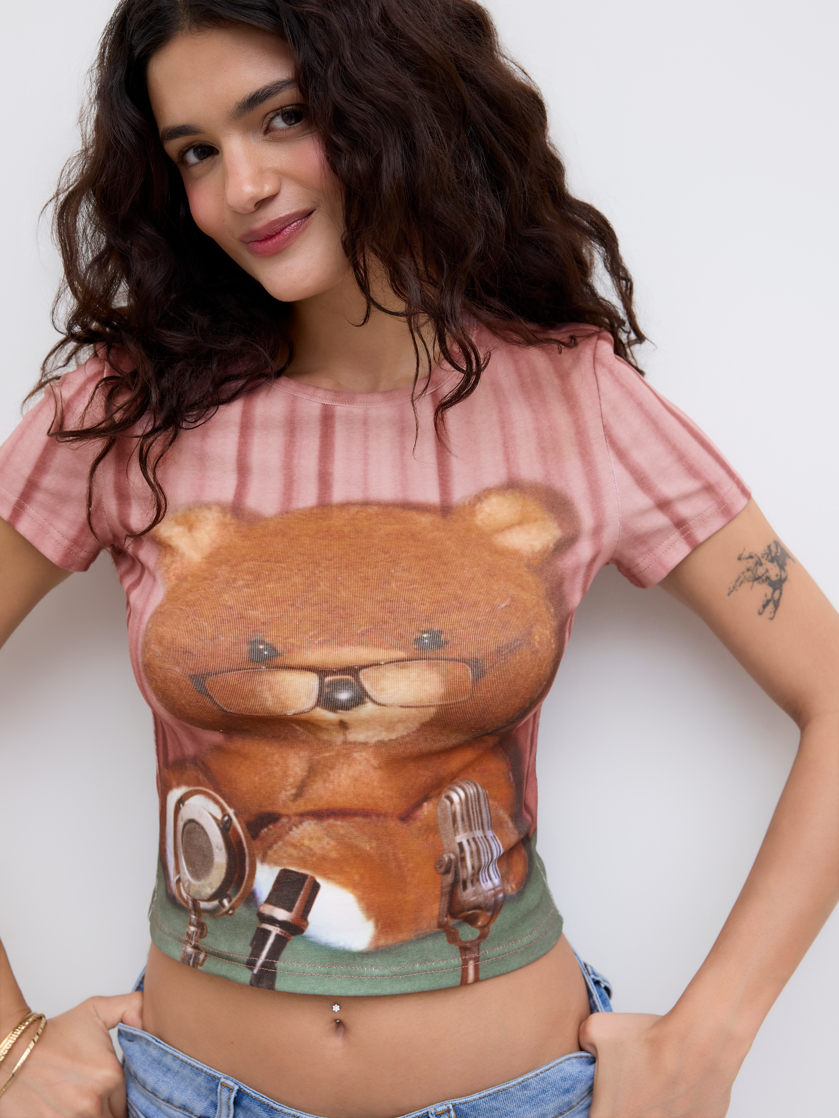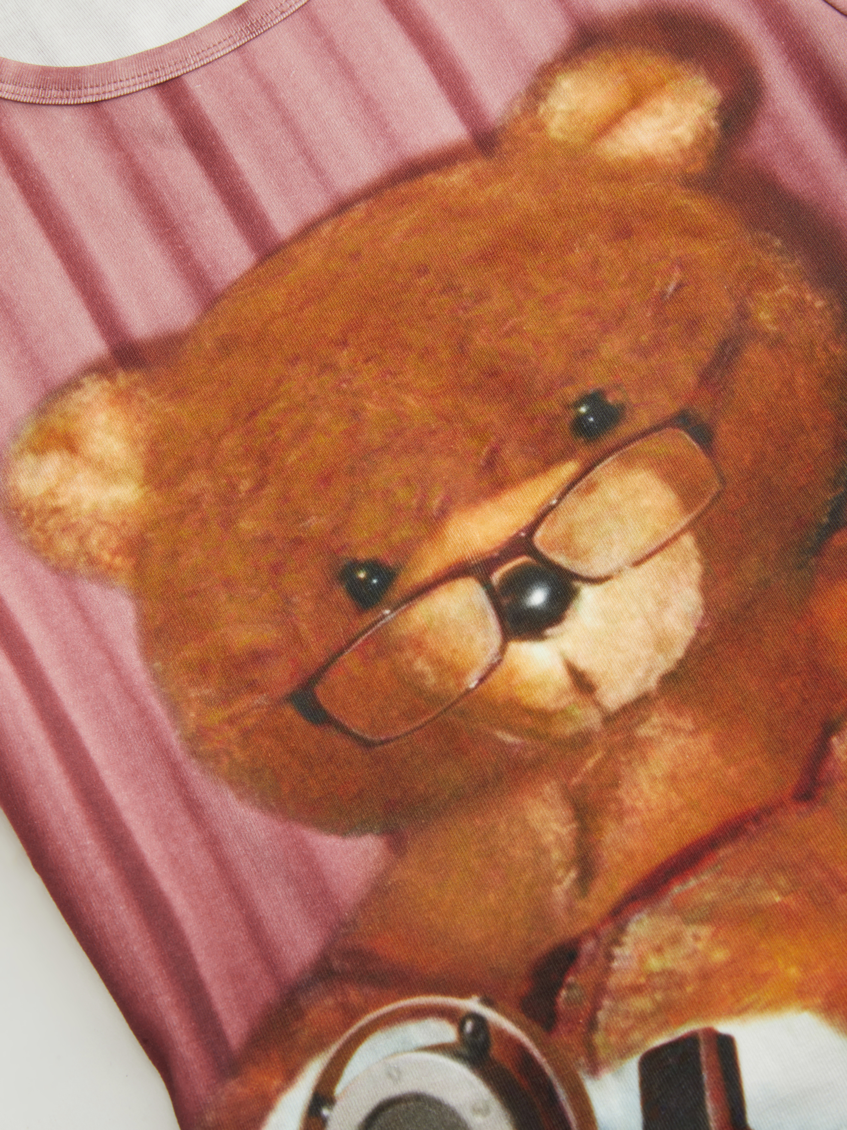 Maglietta a maniche corte a righe con orsetto grafico in misto cotone