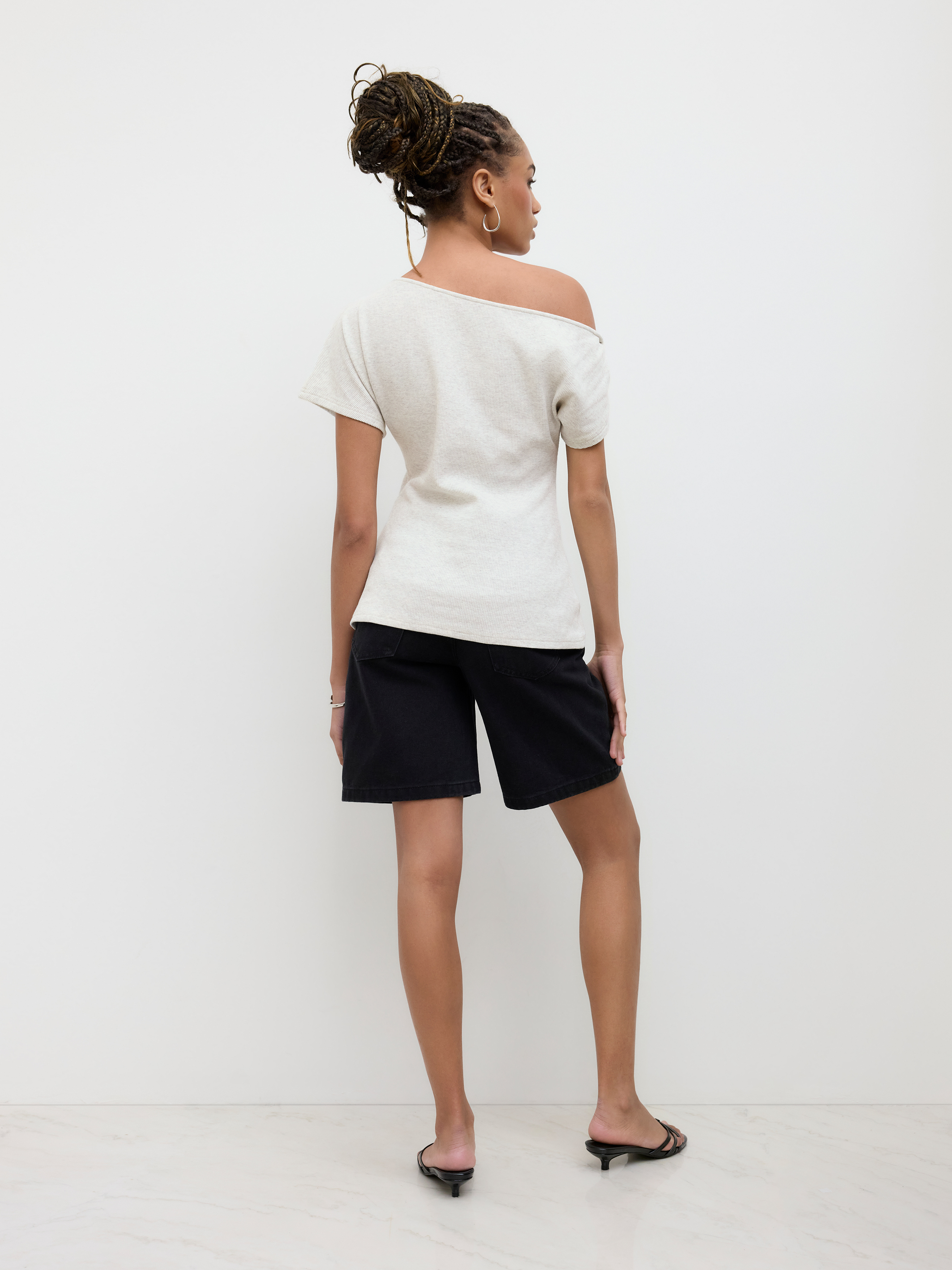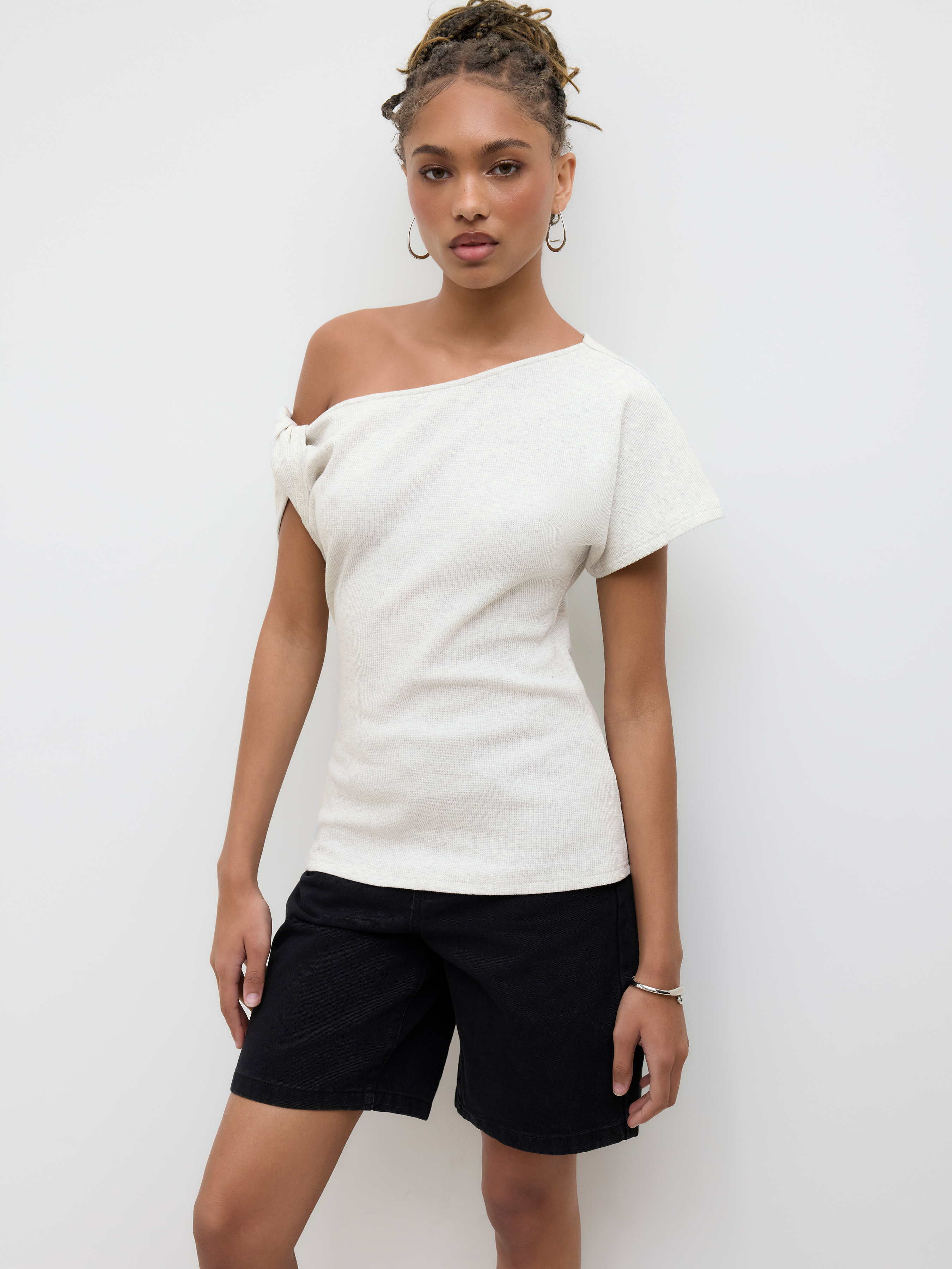 Top a maniche corte asimmetrico in misto cotone con nodo