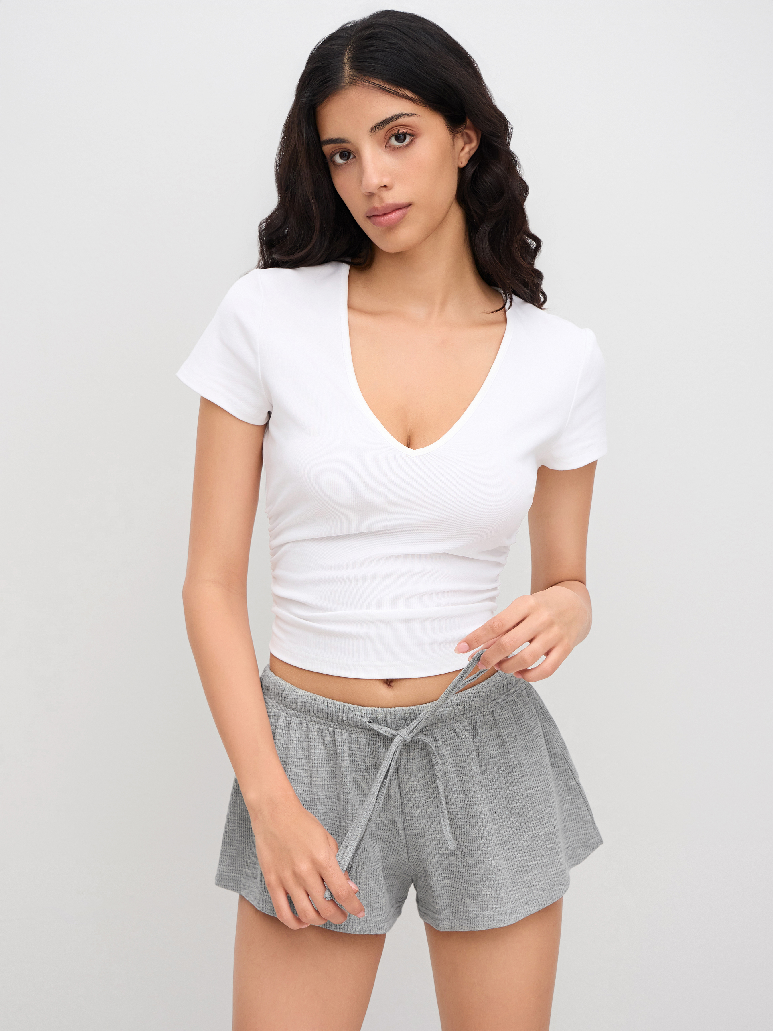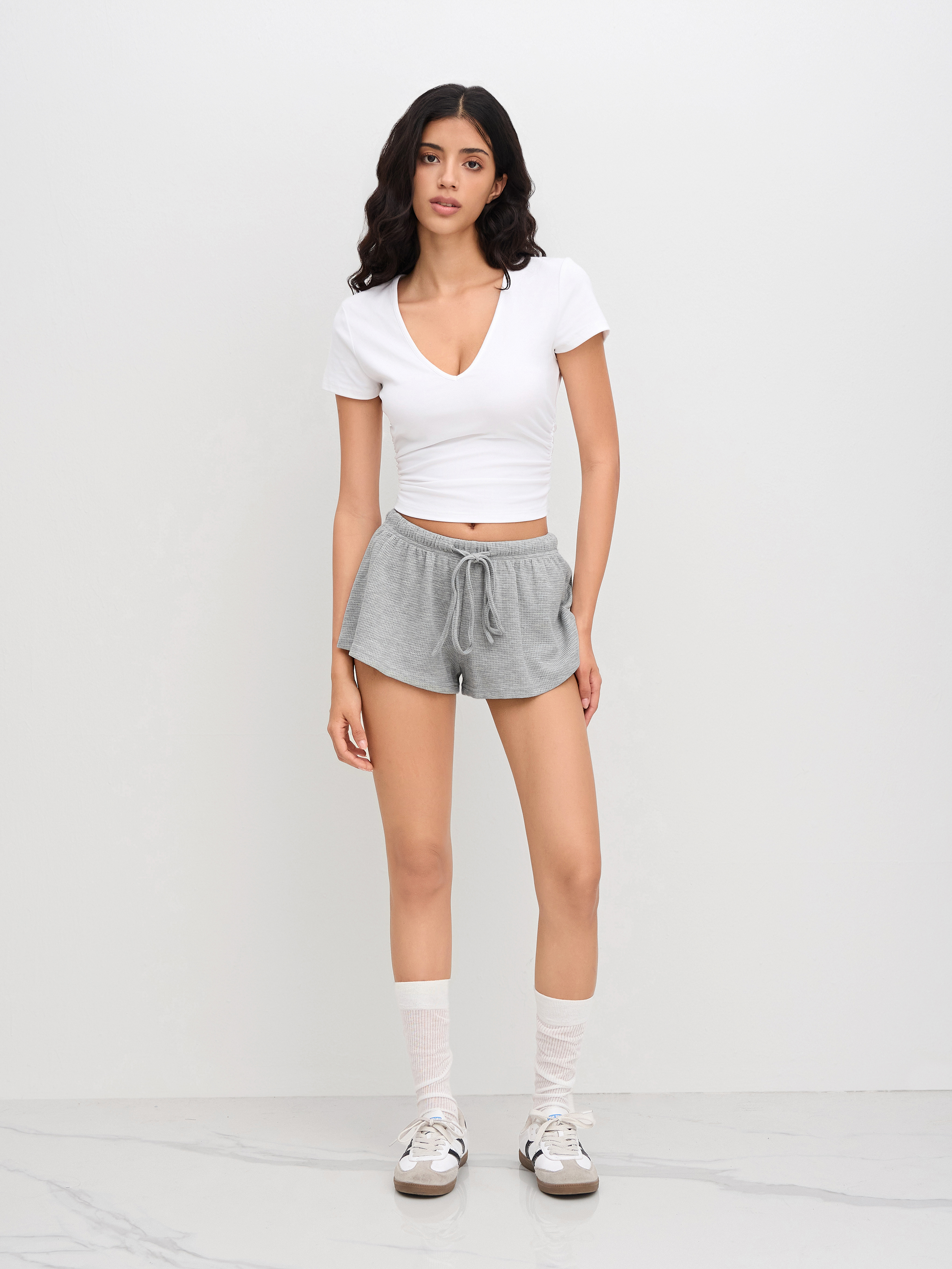Pantaloncini a vita bassa elasticizzati in misto cotone