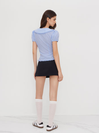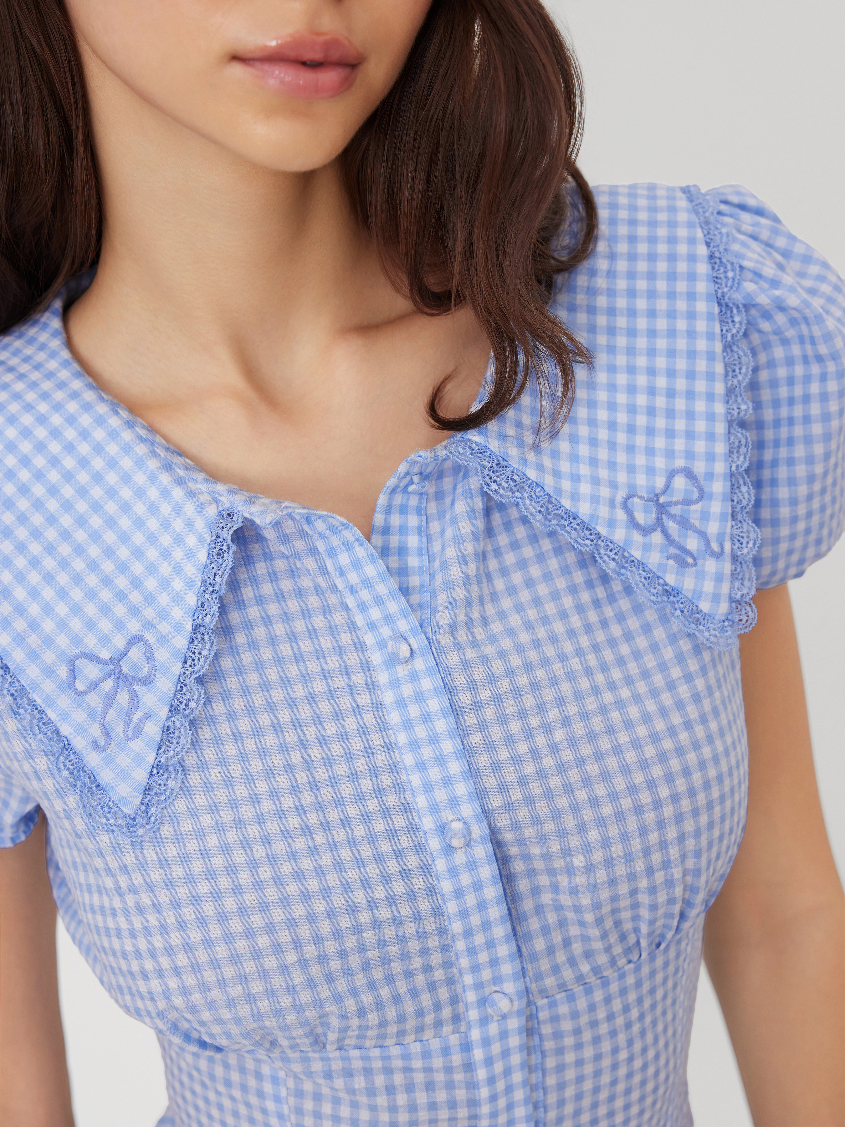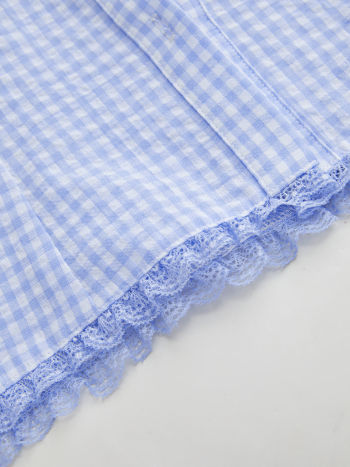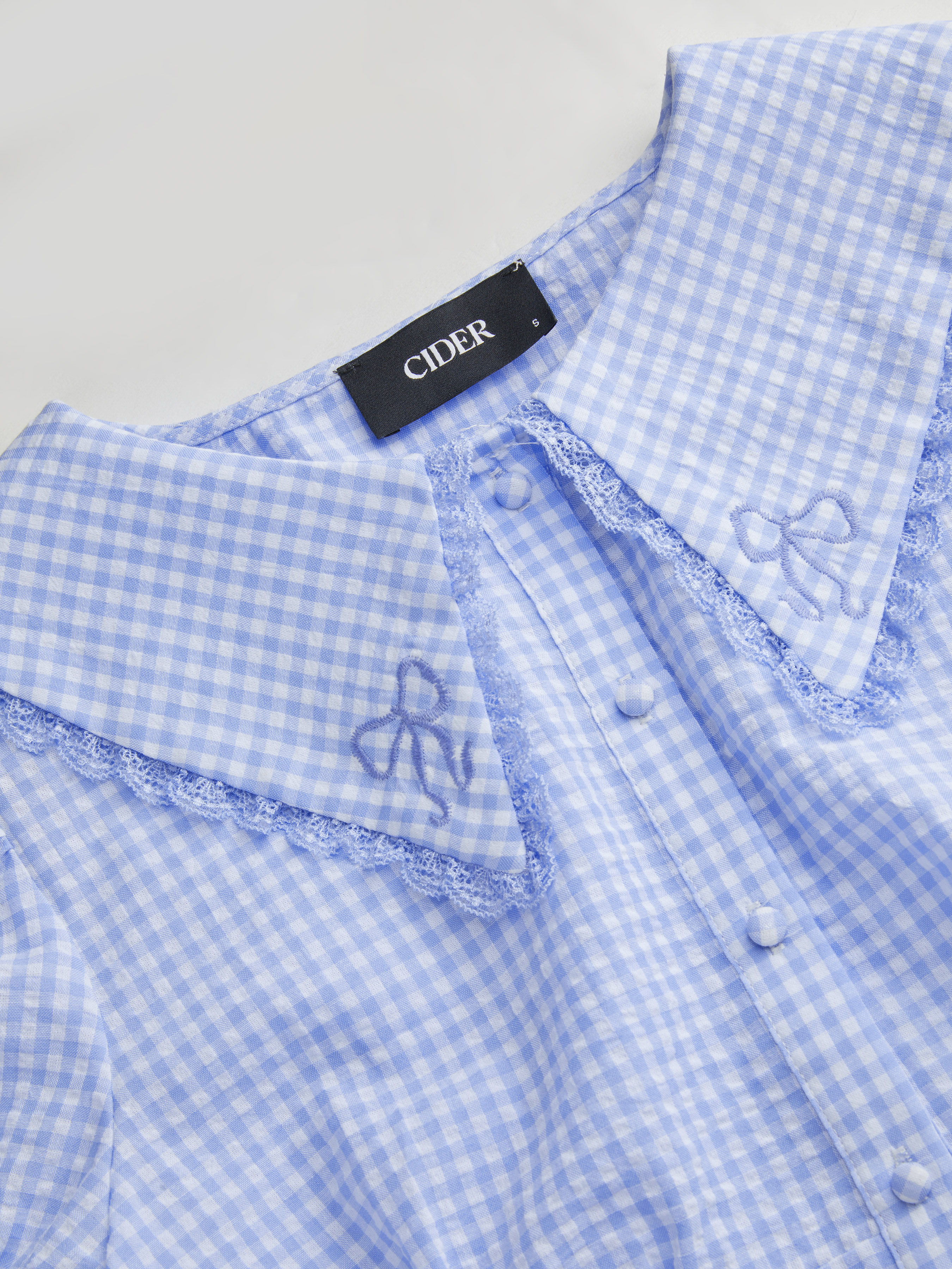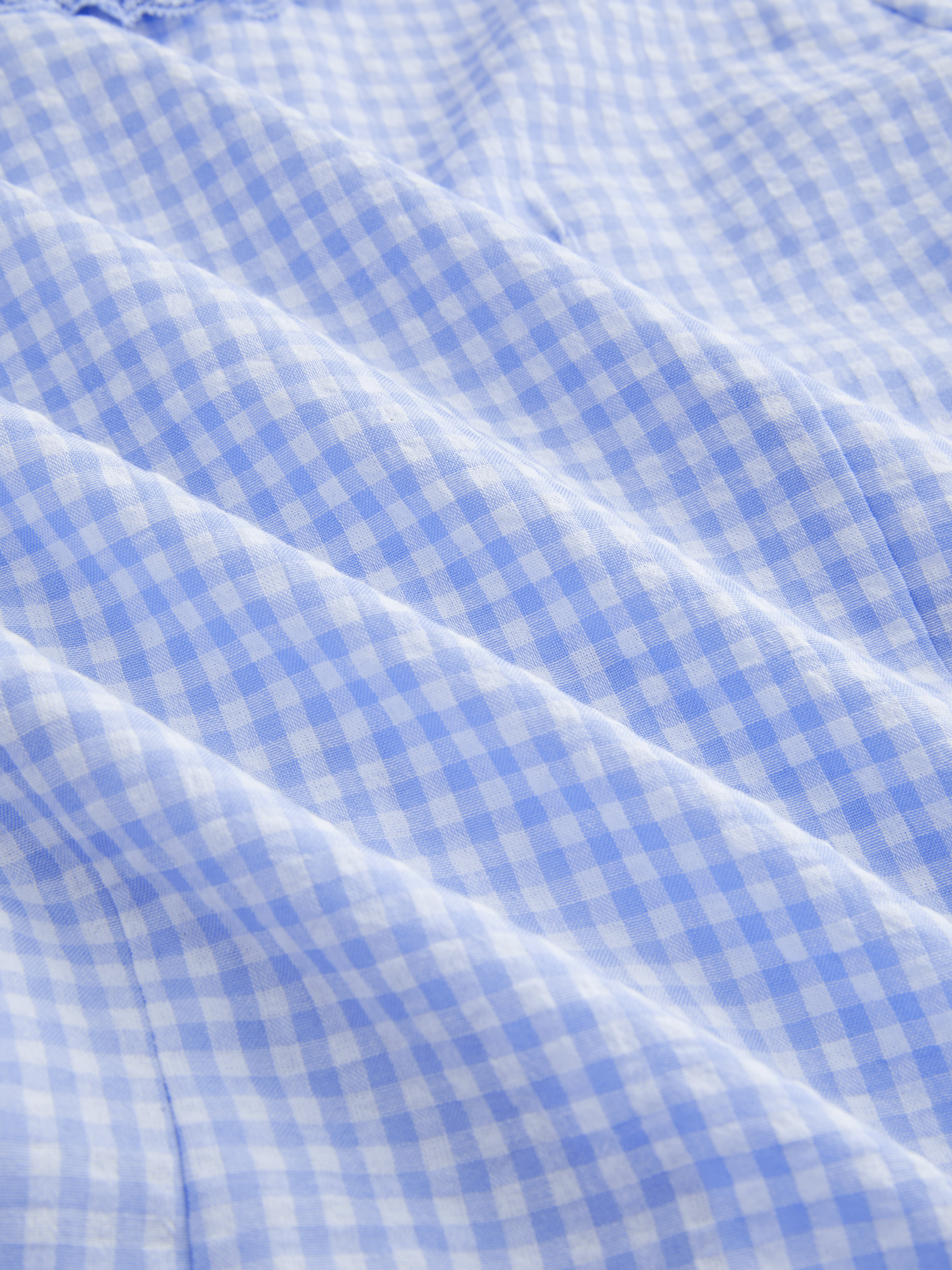 Camicette a maniche a sbuffo con colletto Peter Pan in misto cotone, motivo gingham e finiture in pizzo