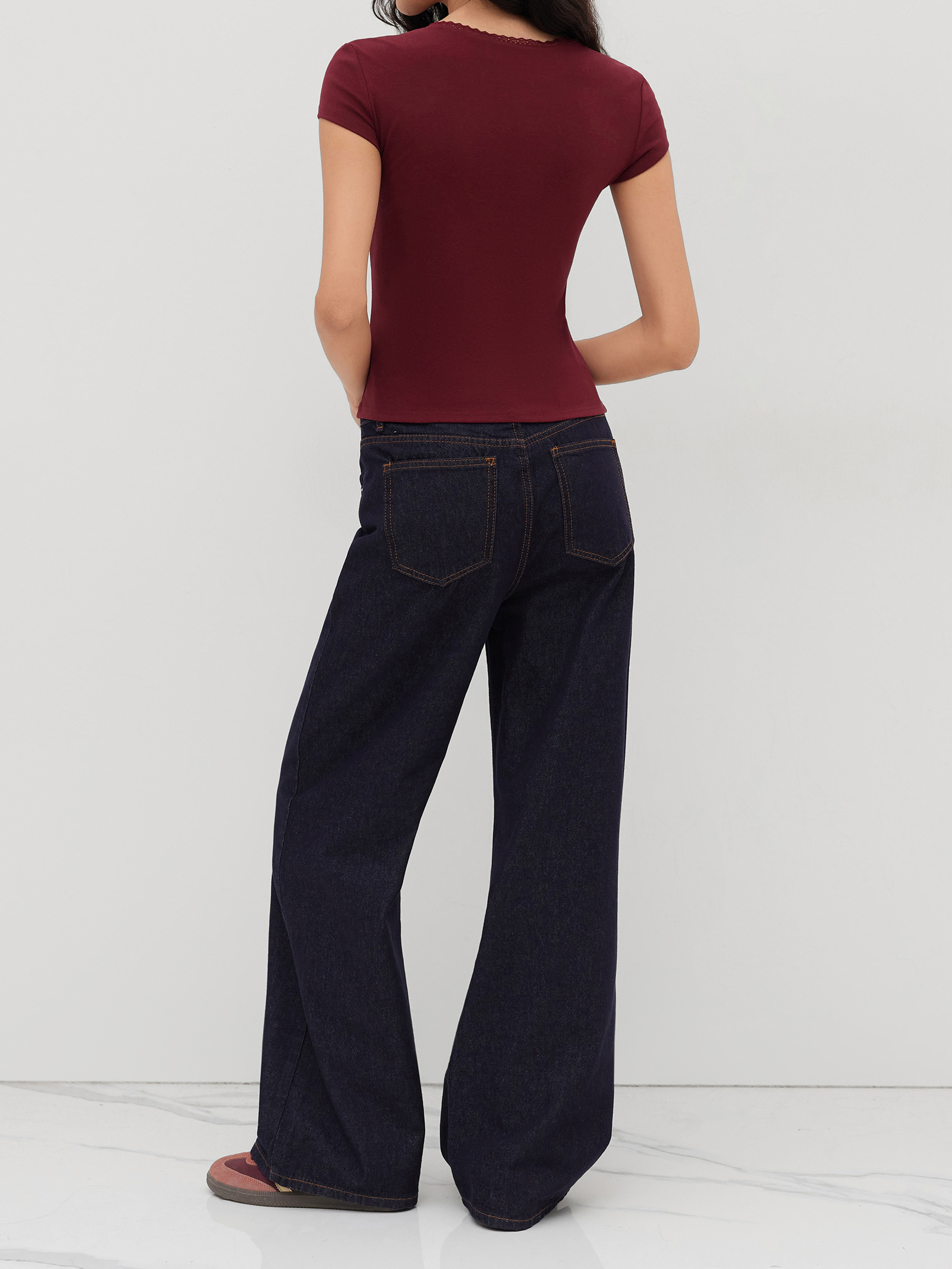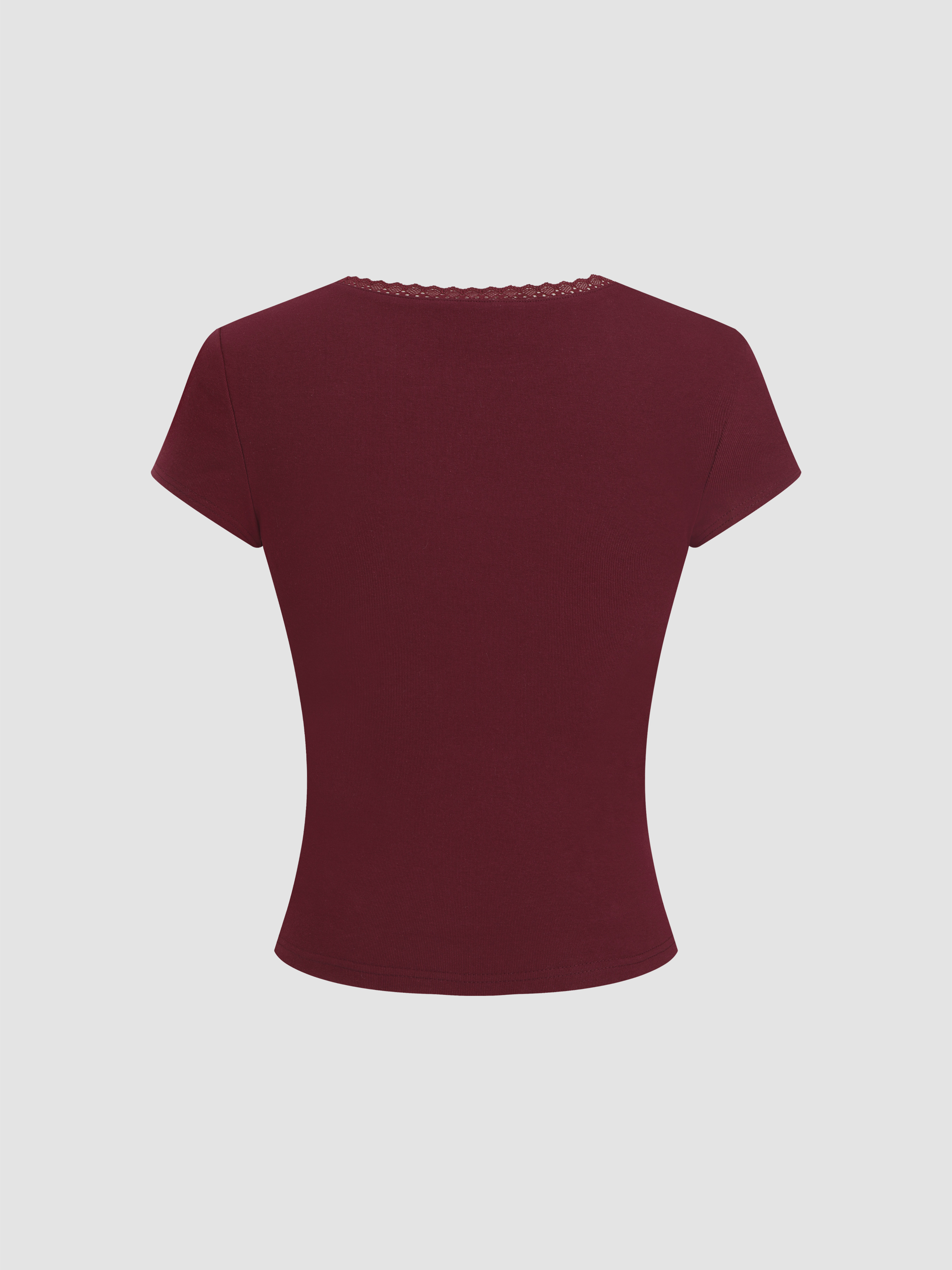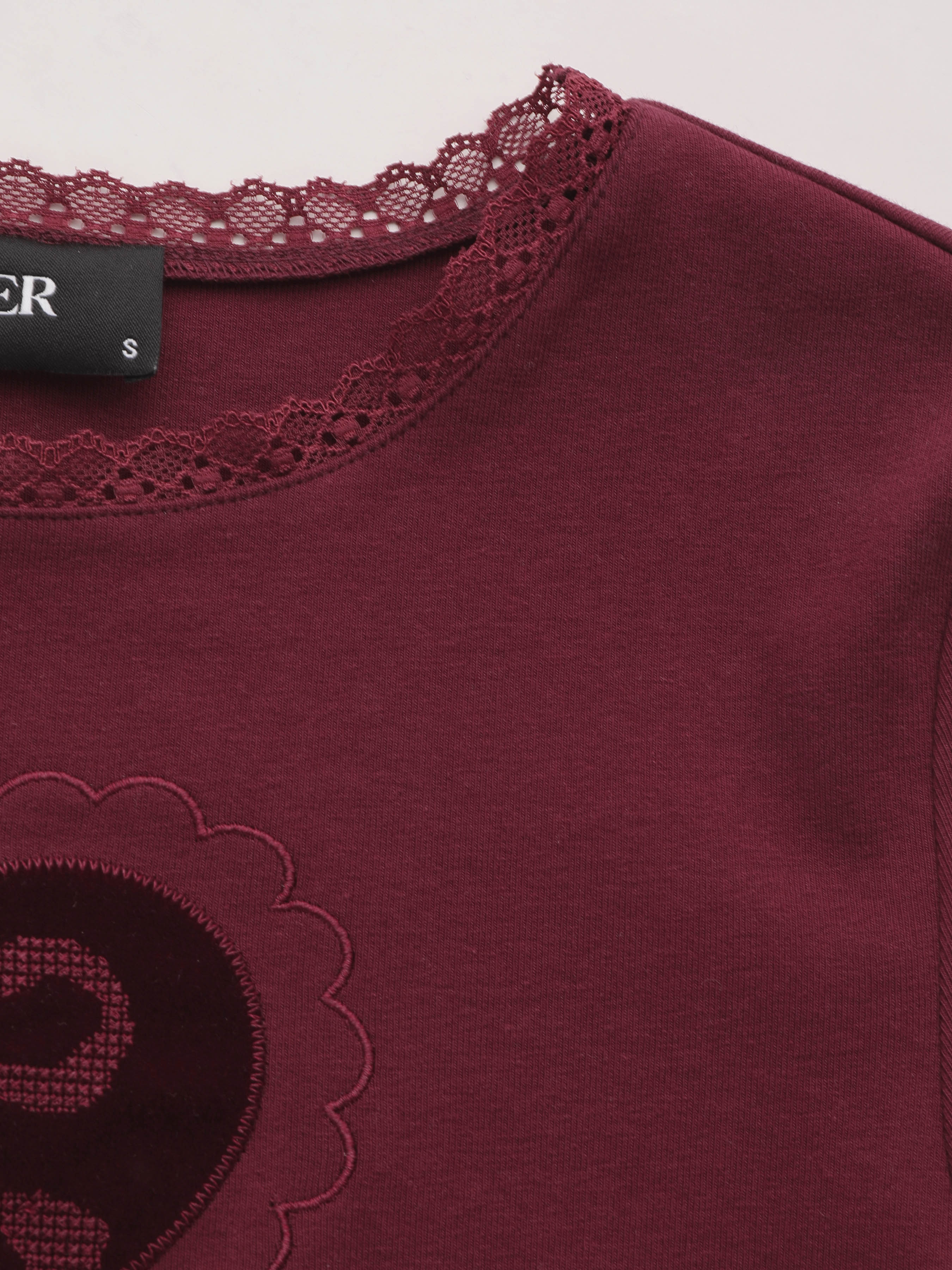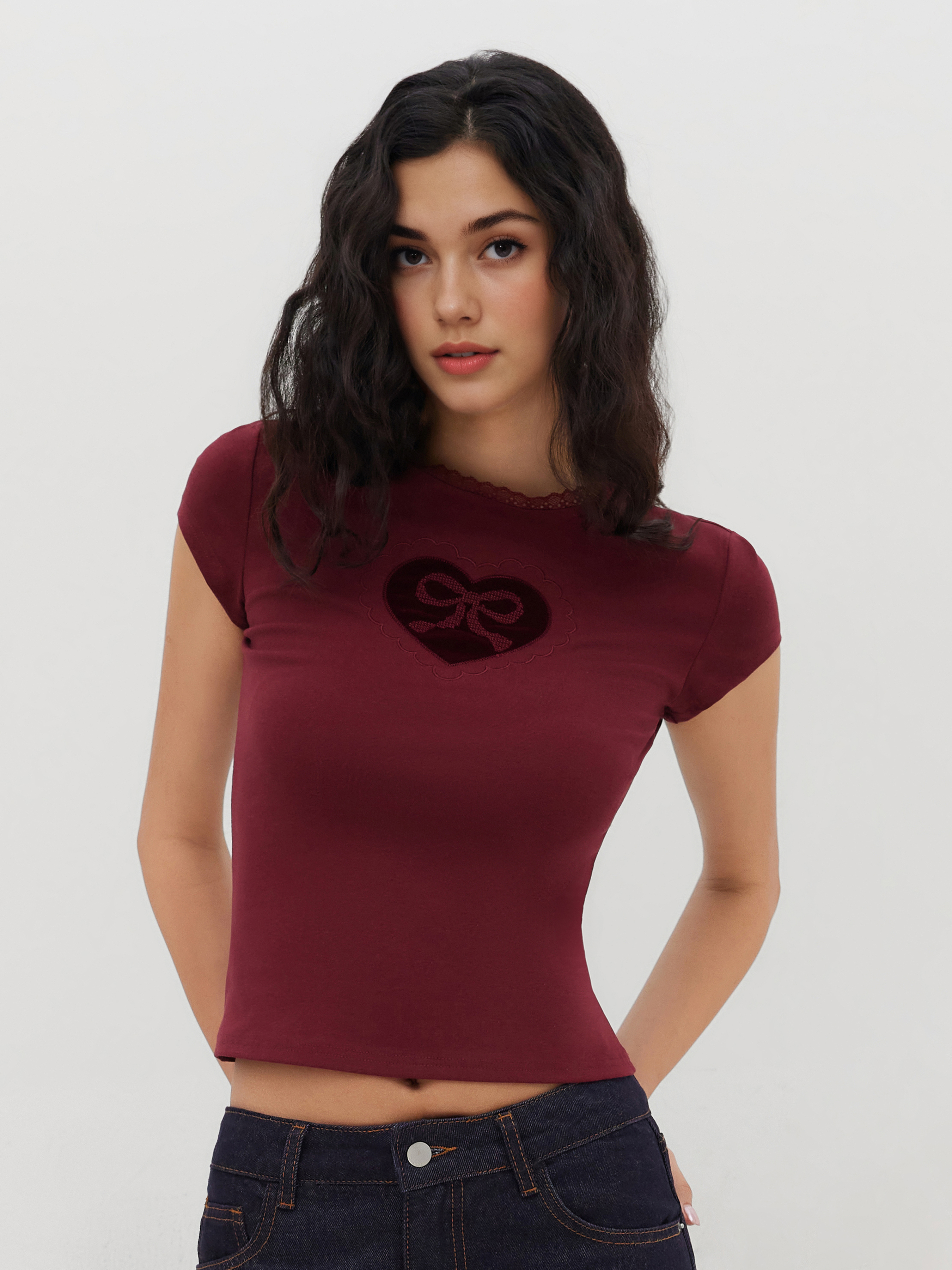 Tee in misto cotone con fiocco e cuore in pizzo con increspatura