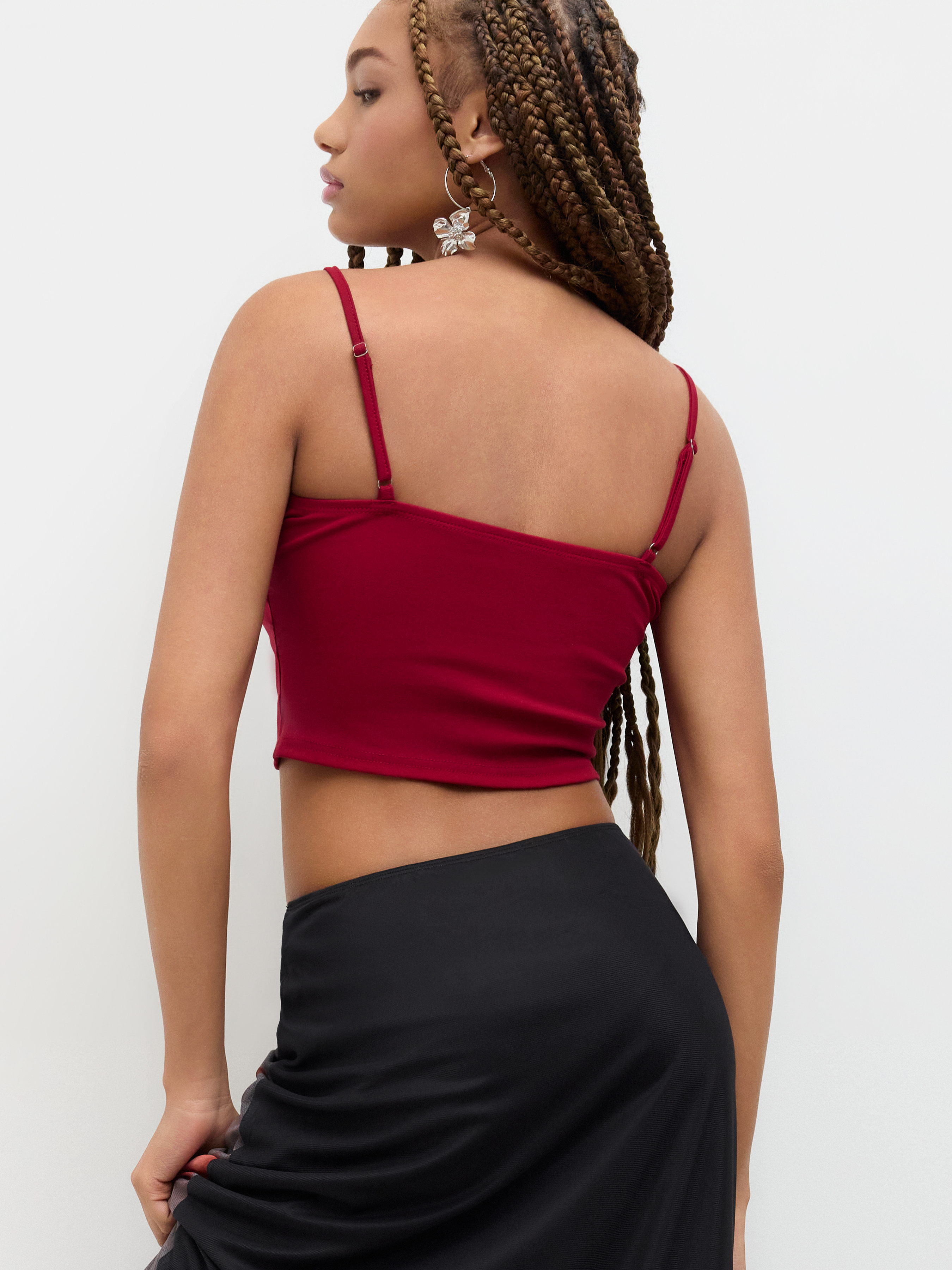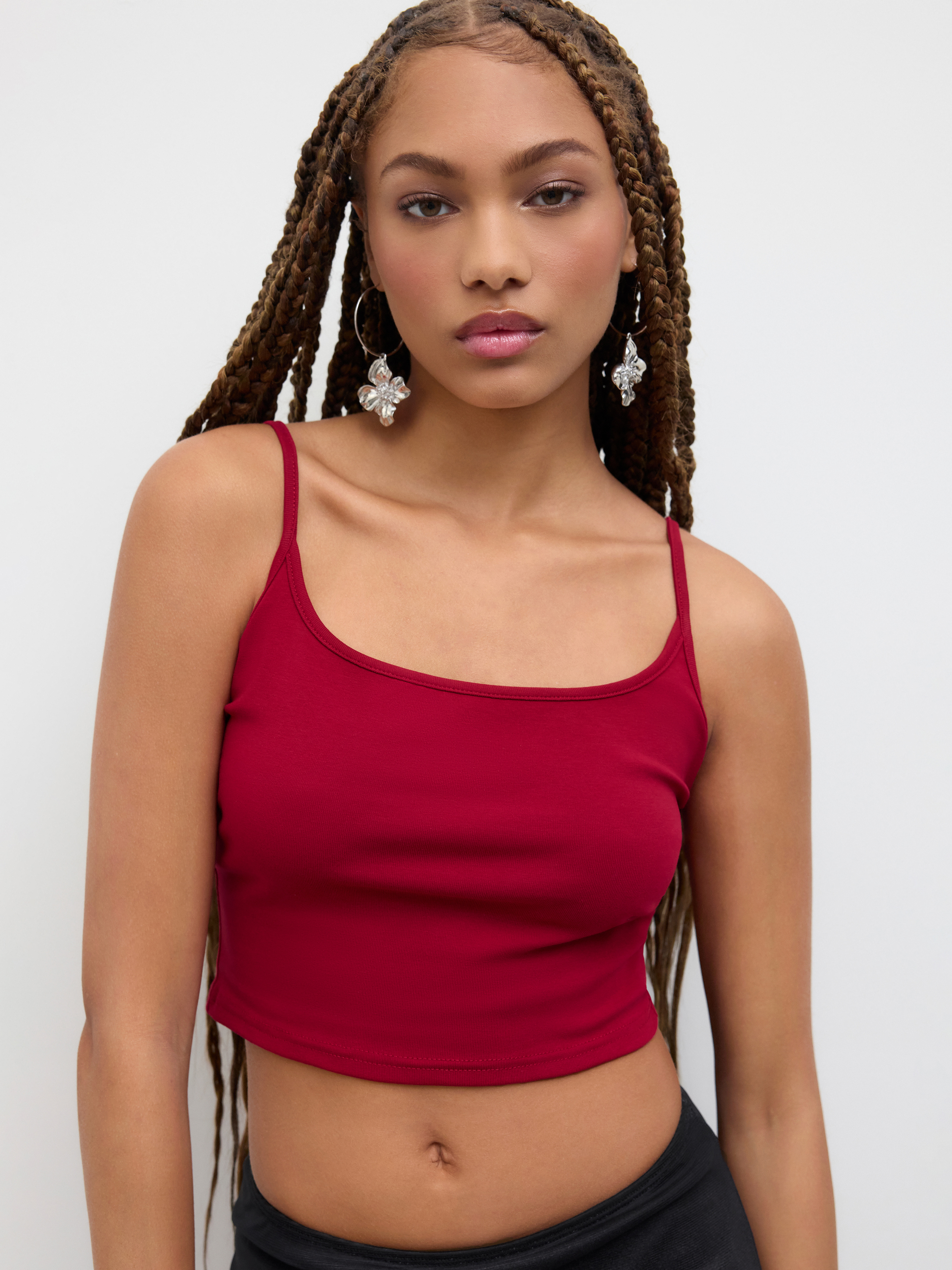 Top cami in misto cotone con scollo a goccia, tinta unita e cinturino regolabile