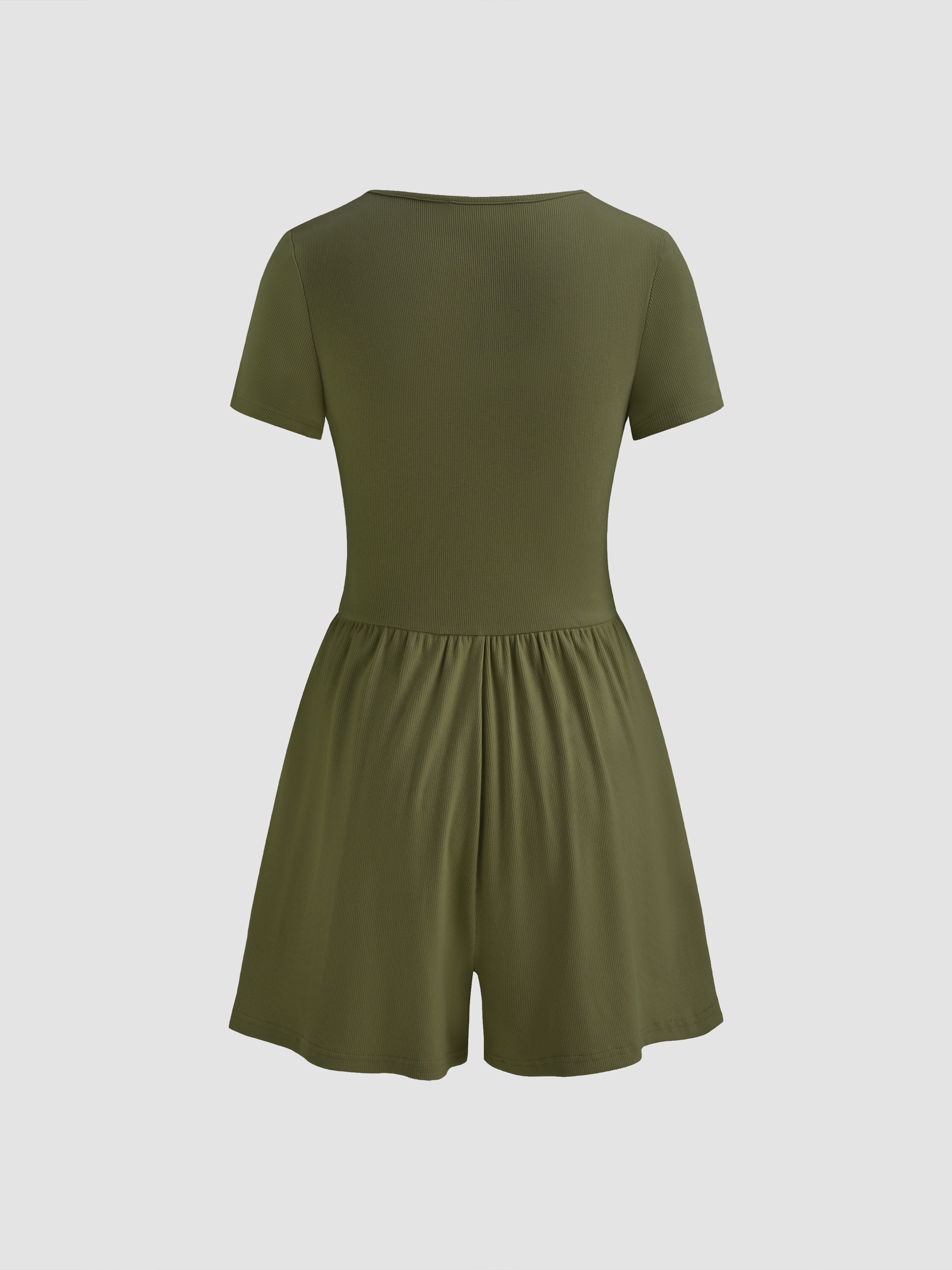 Romper in misto cotone con scollo quadrato, tinta unita, increspato e plissettato