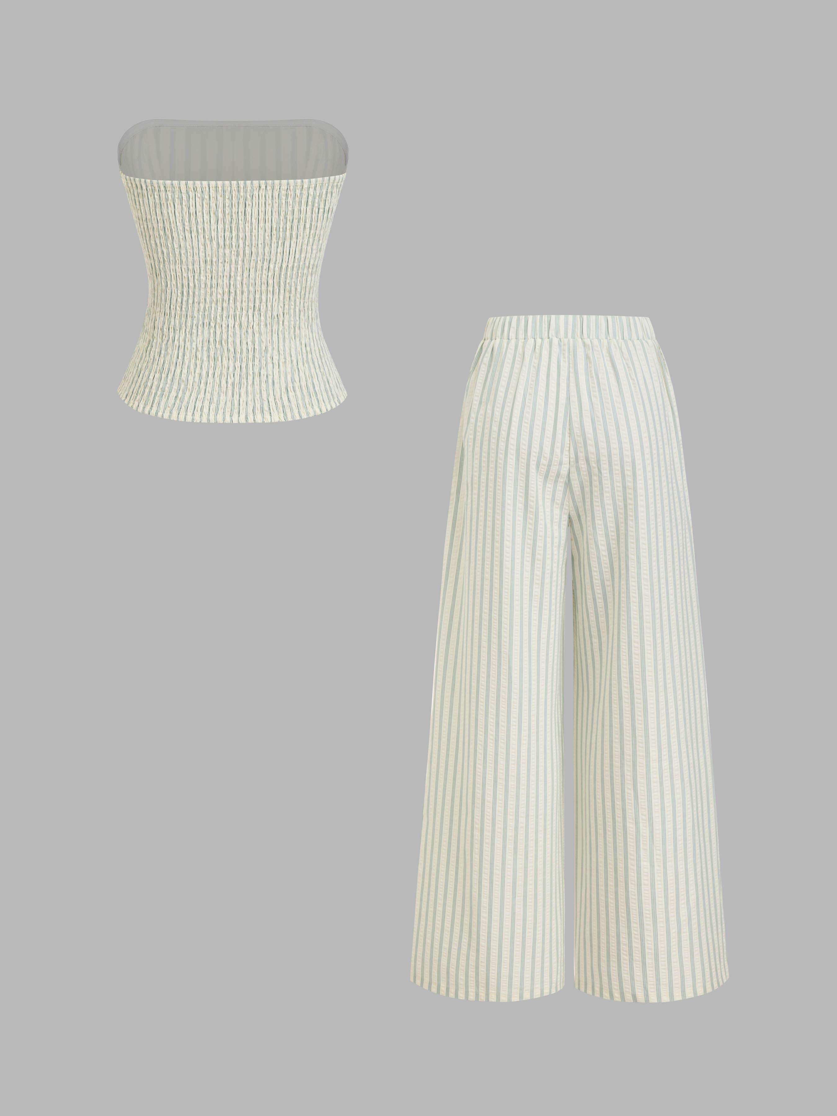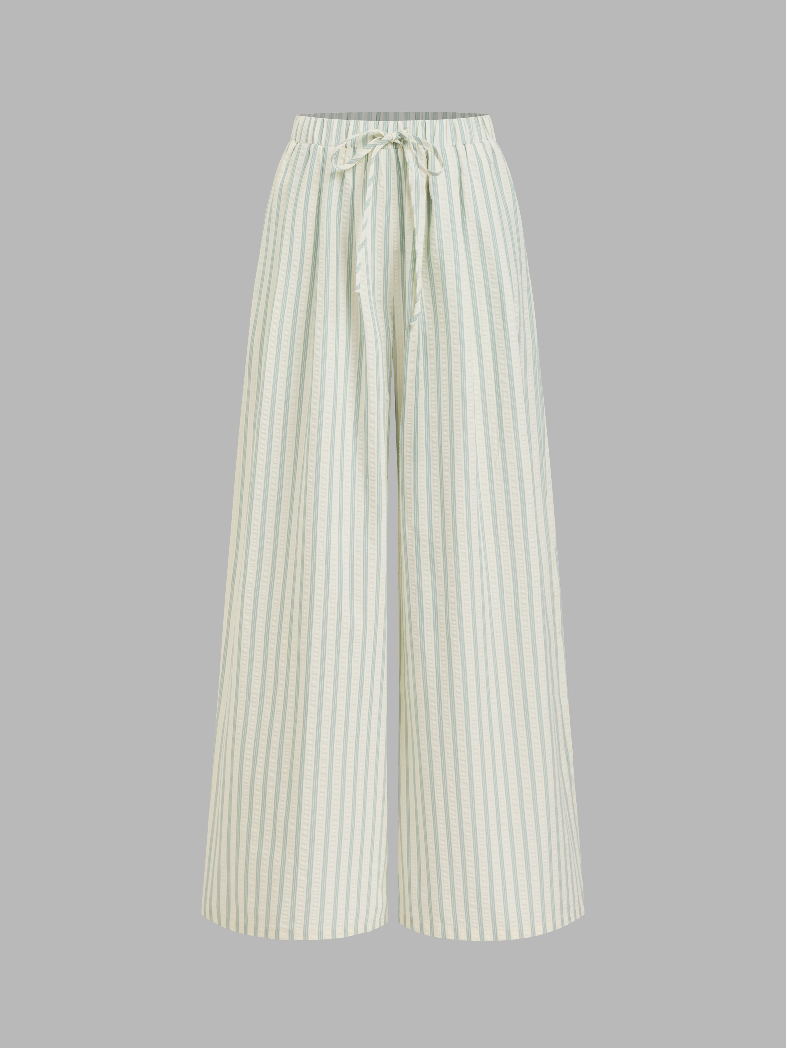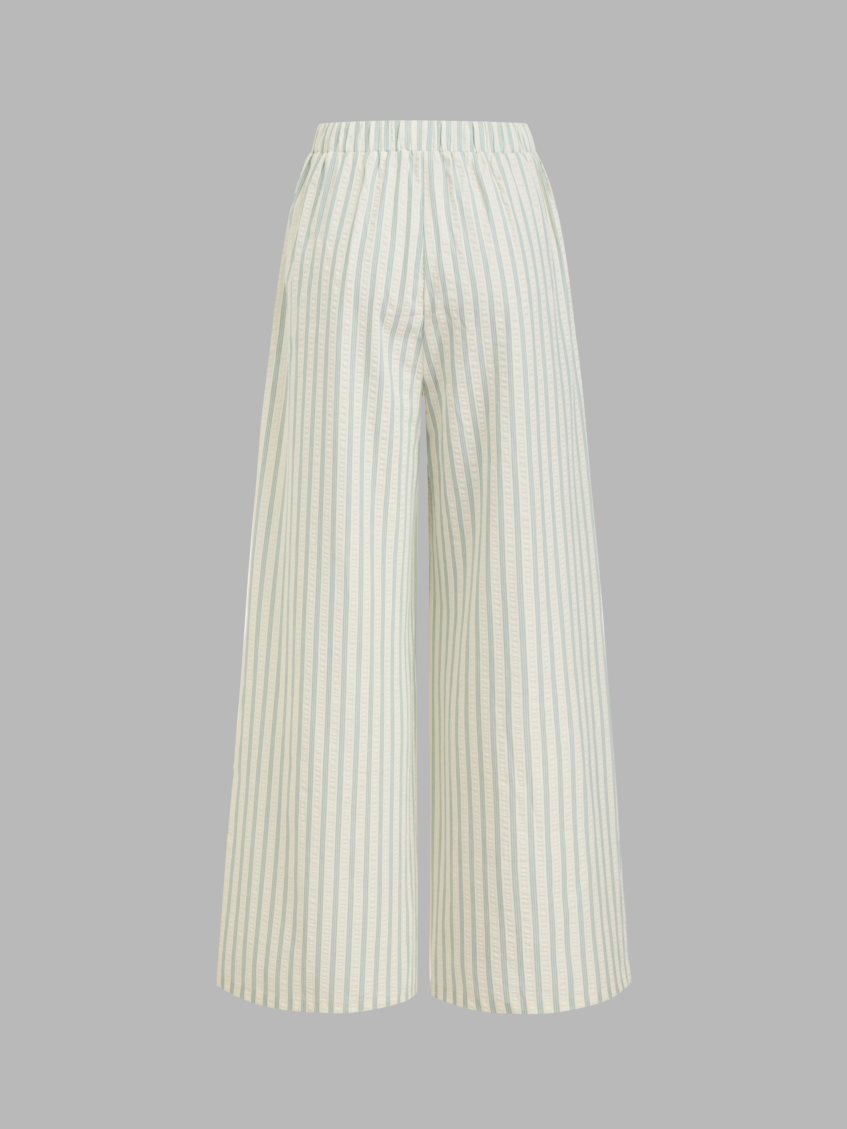 Set fascia a righe in misto cotone e pantaloni a gamba larga annodati