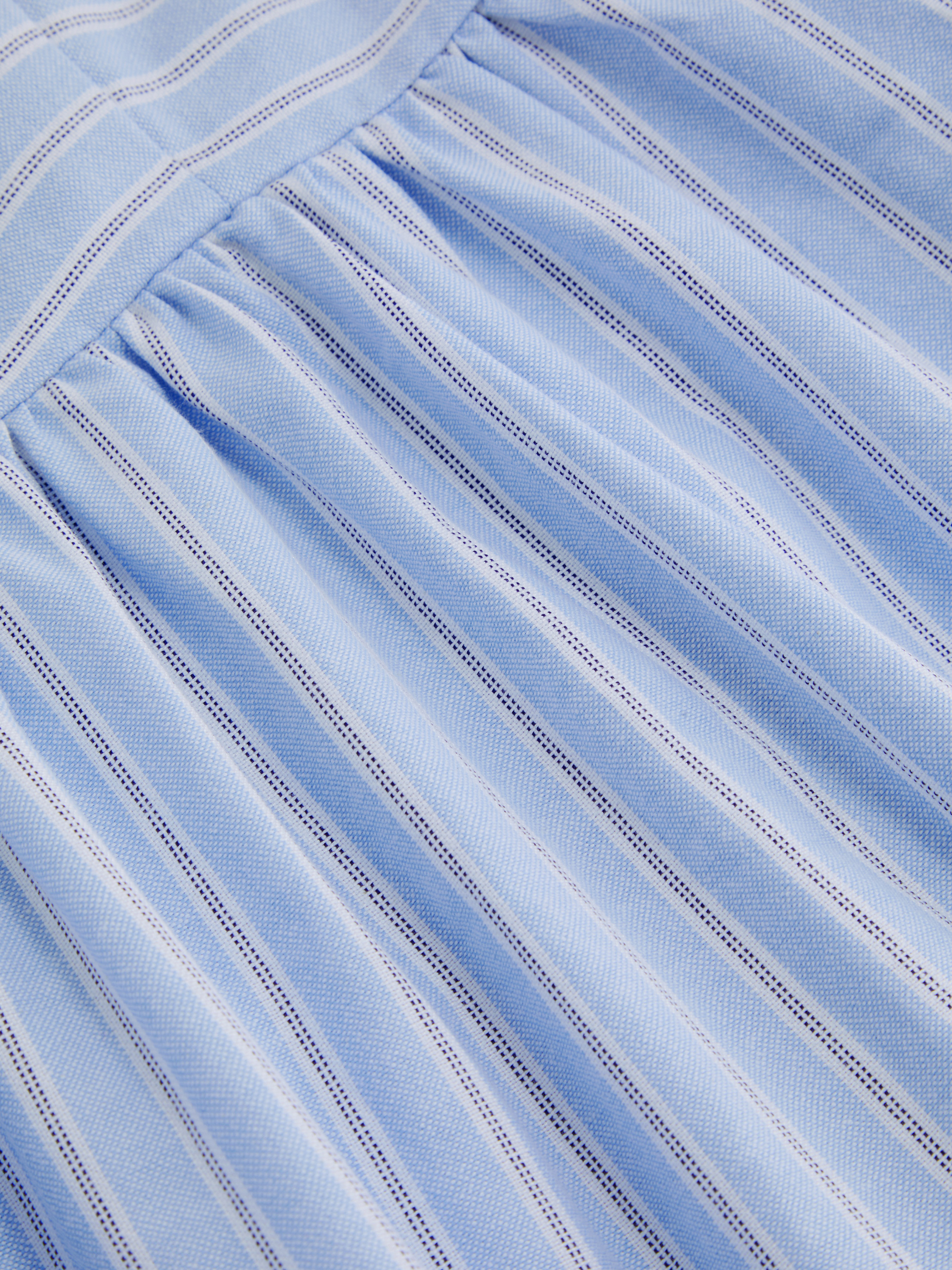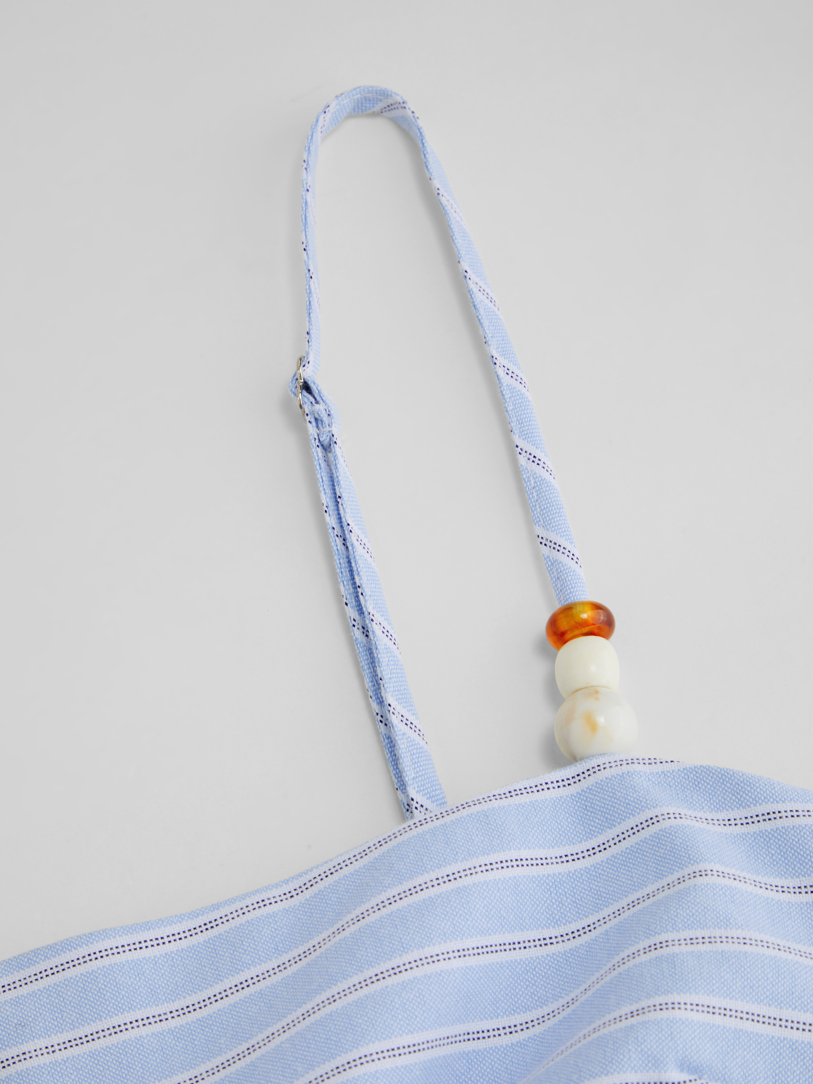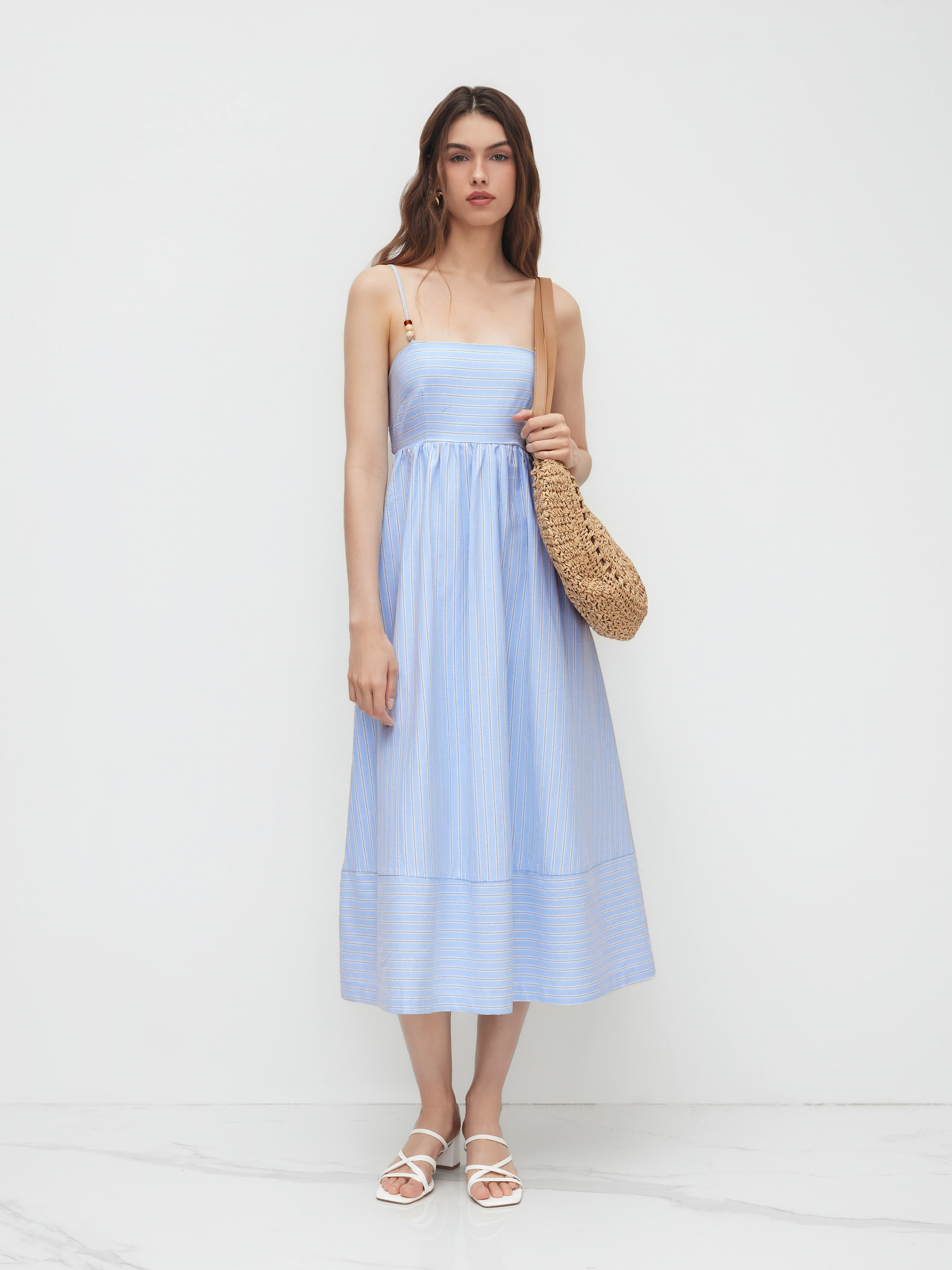 Abito Maxi a Righe con Arricciature, Perline e Cut-Out in Misto Cotone