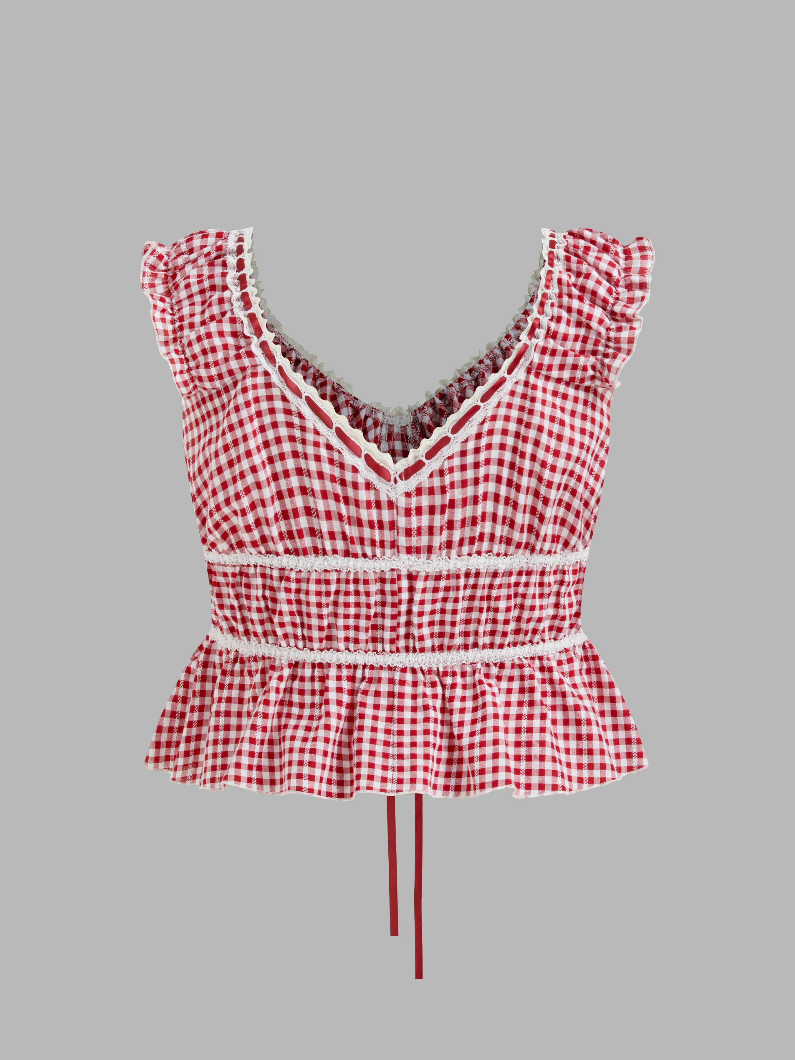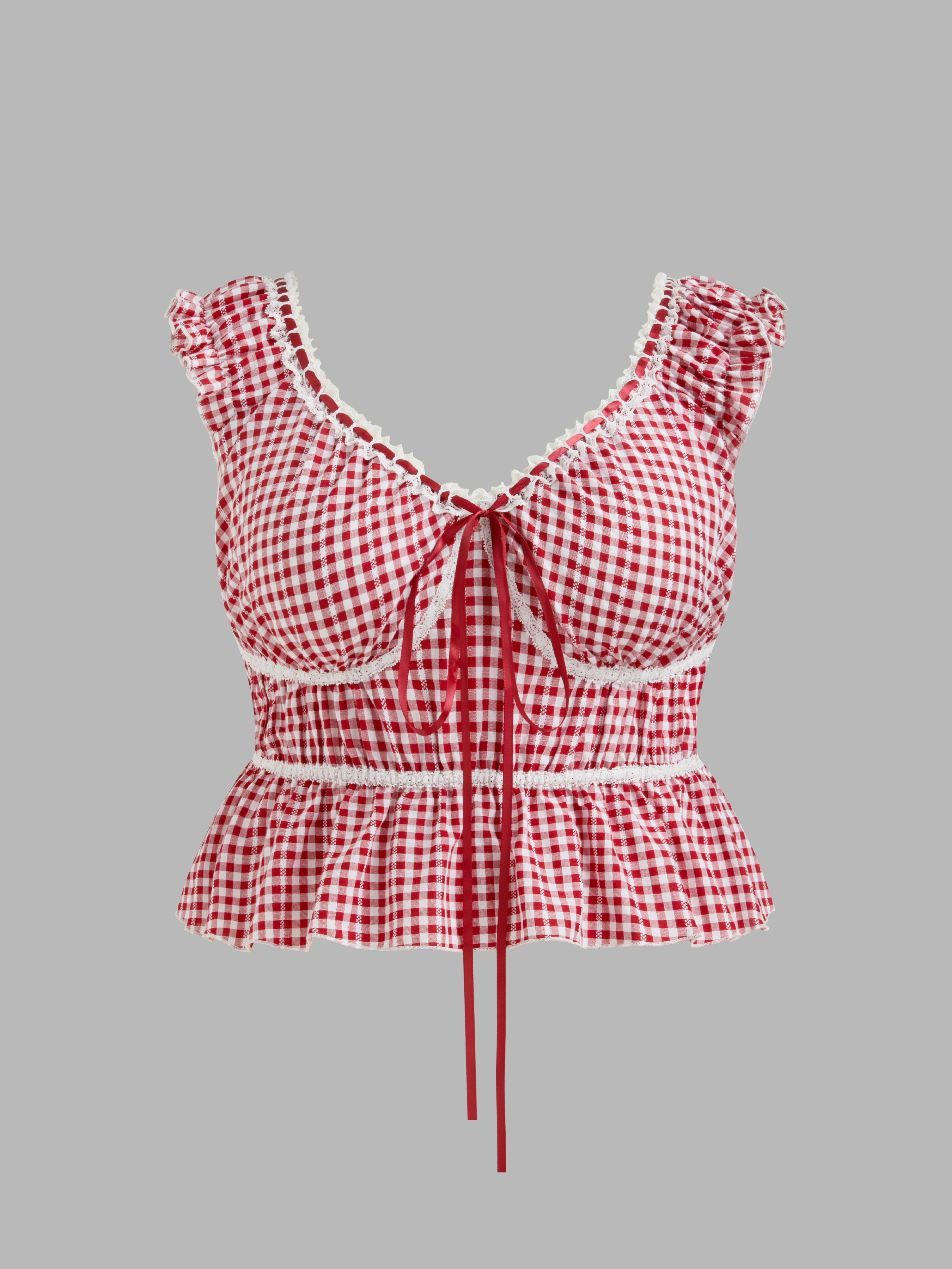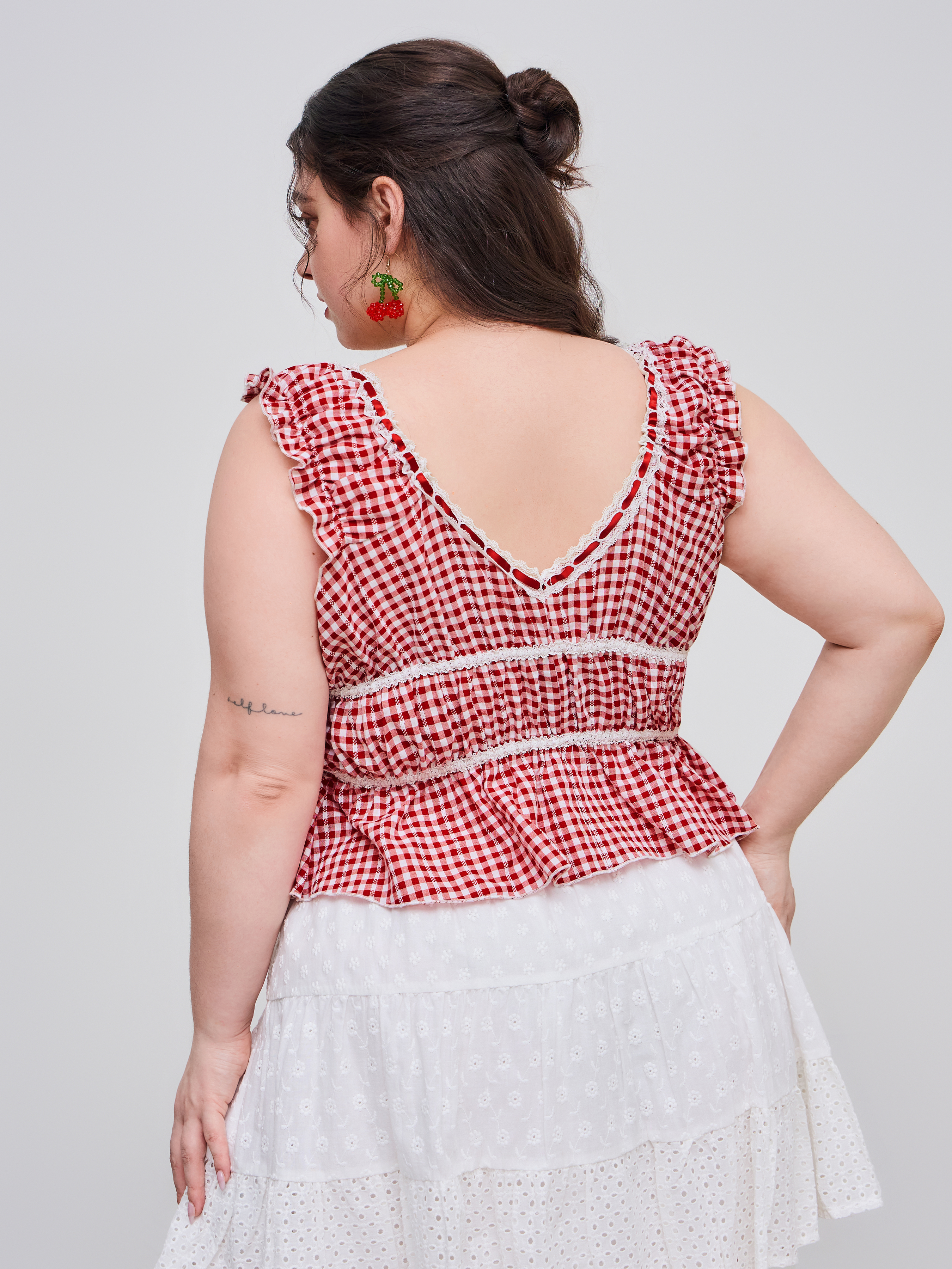 Blusa a maniche corte in misto cotone con scollo a V e nodo in percalle Curve & Plus