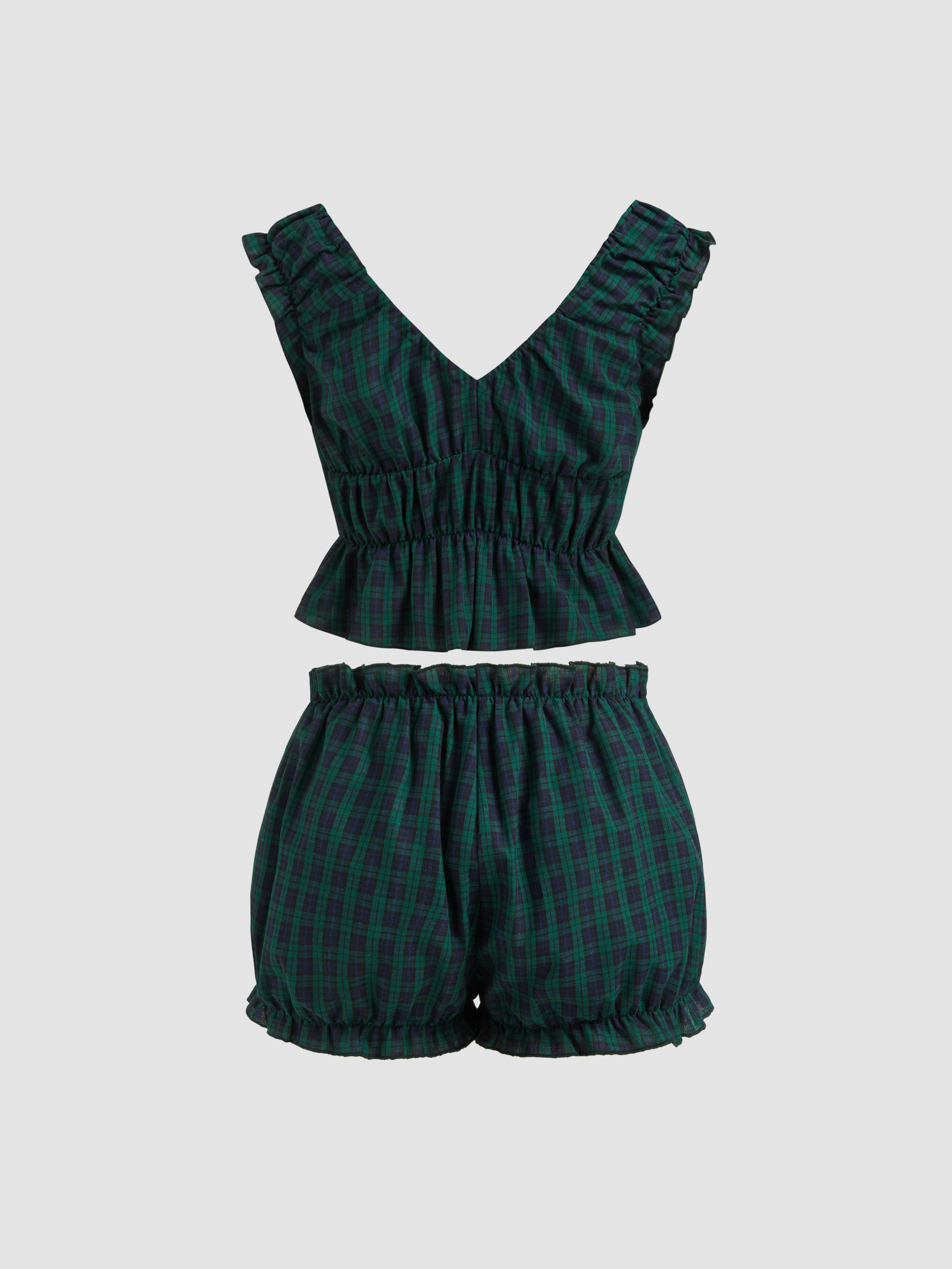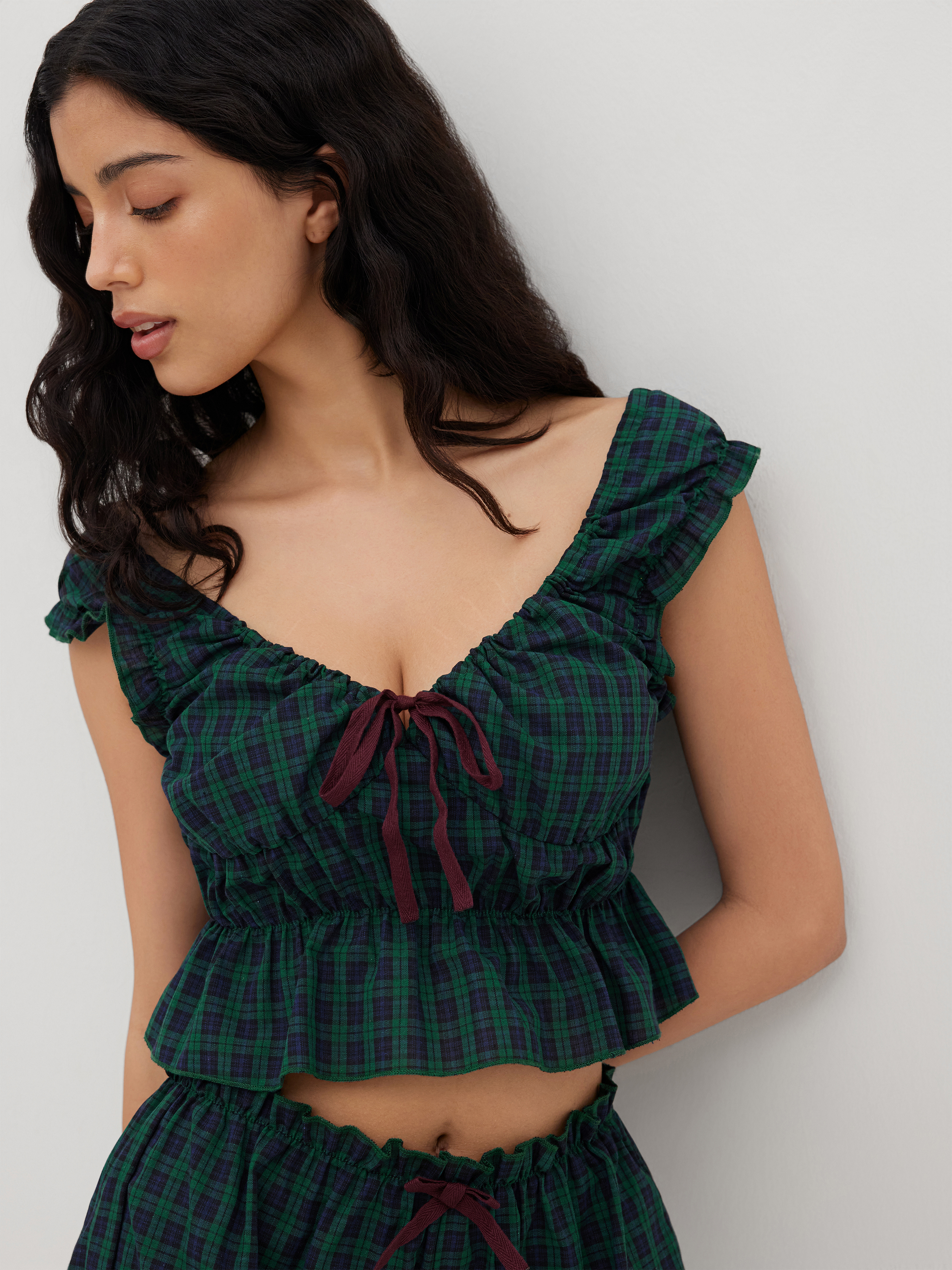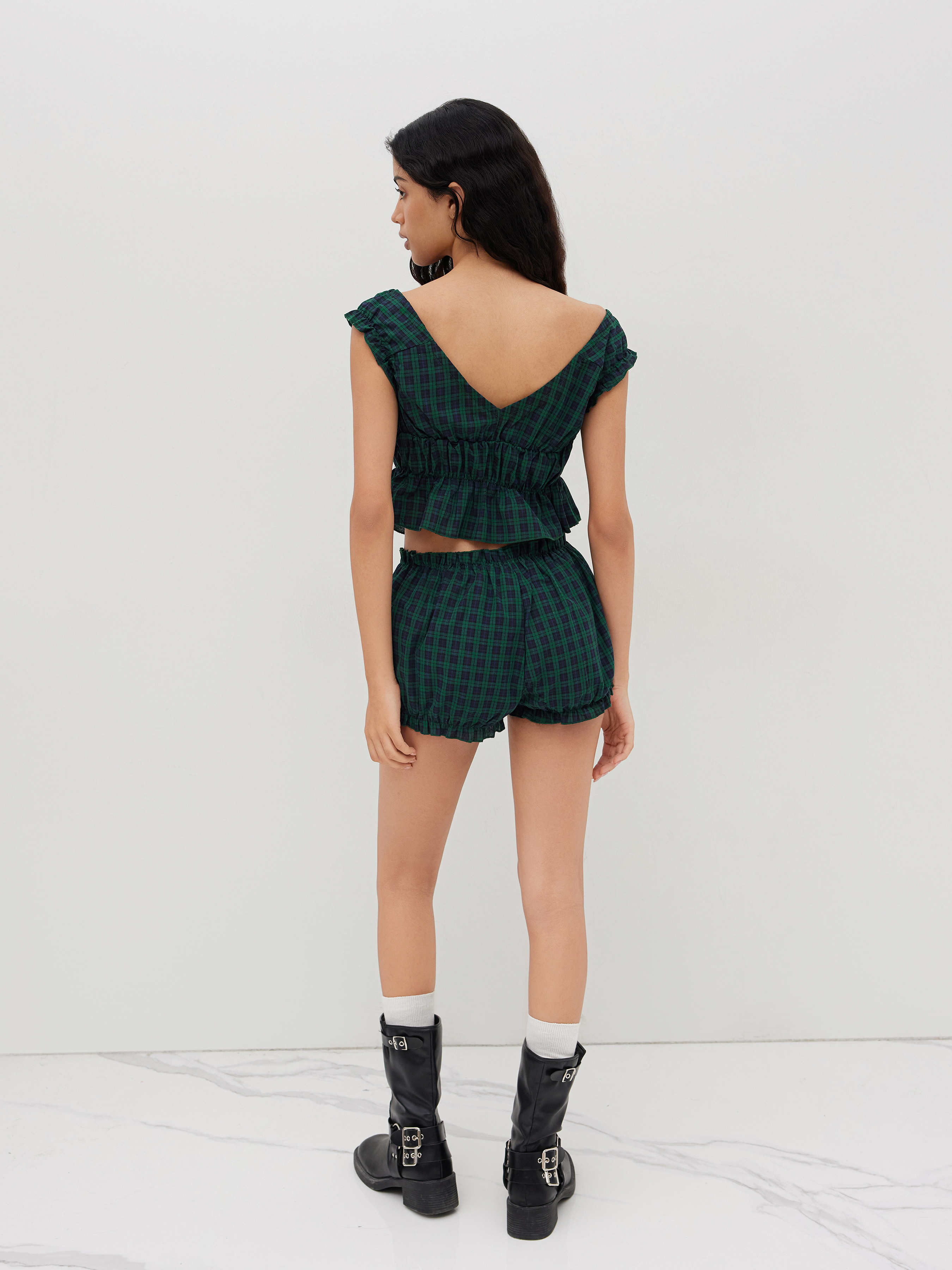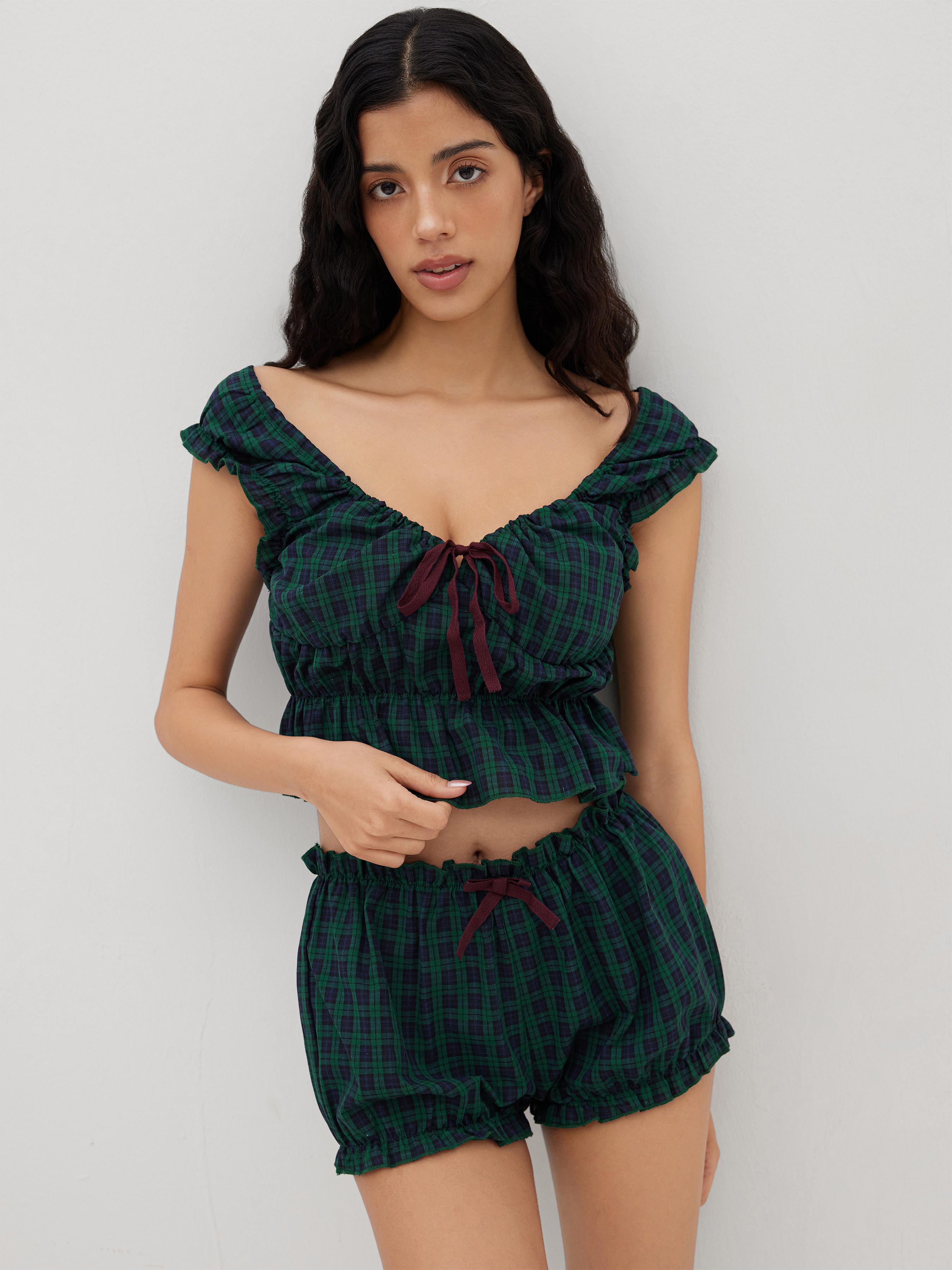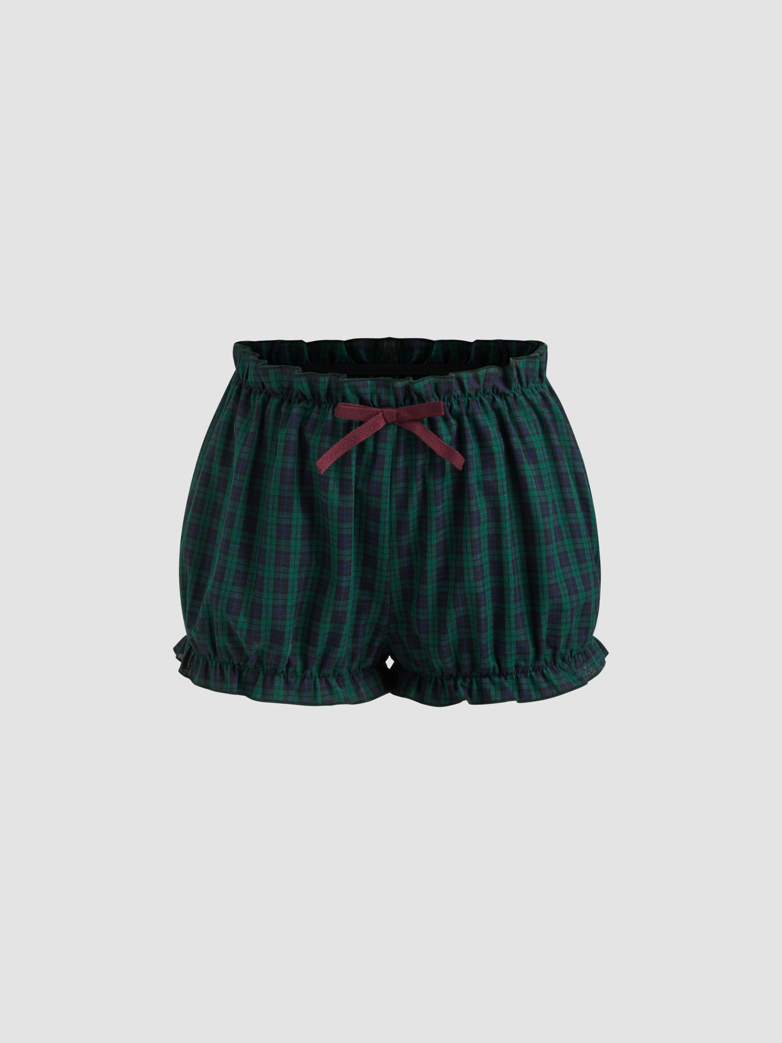 Canotta Tartan in misto cotone e Shorts Bloomer Tartan a vita bassa con fiocco