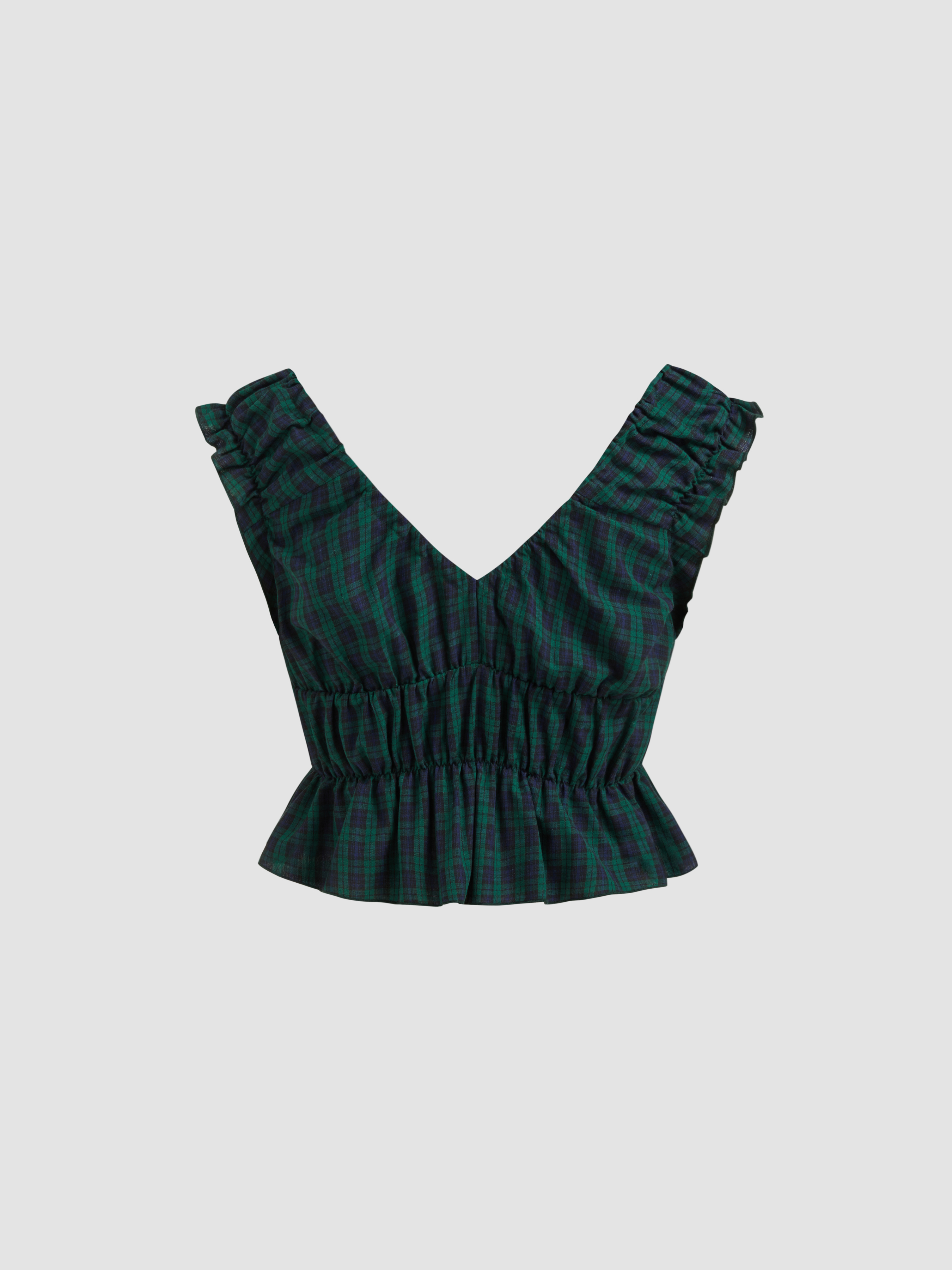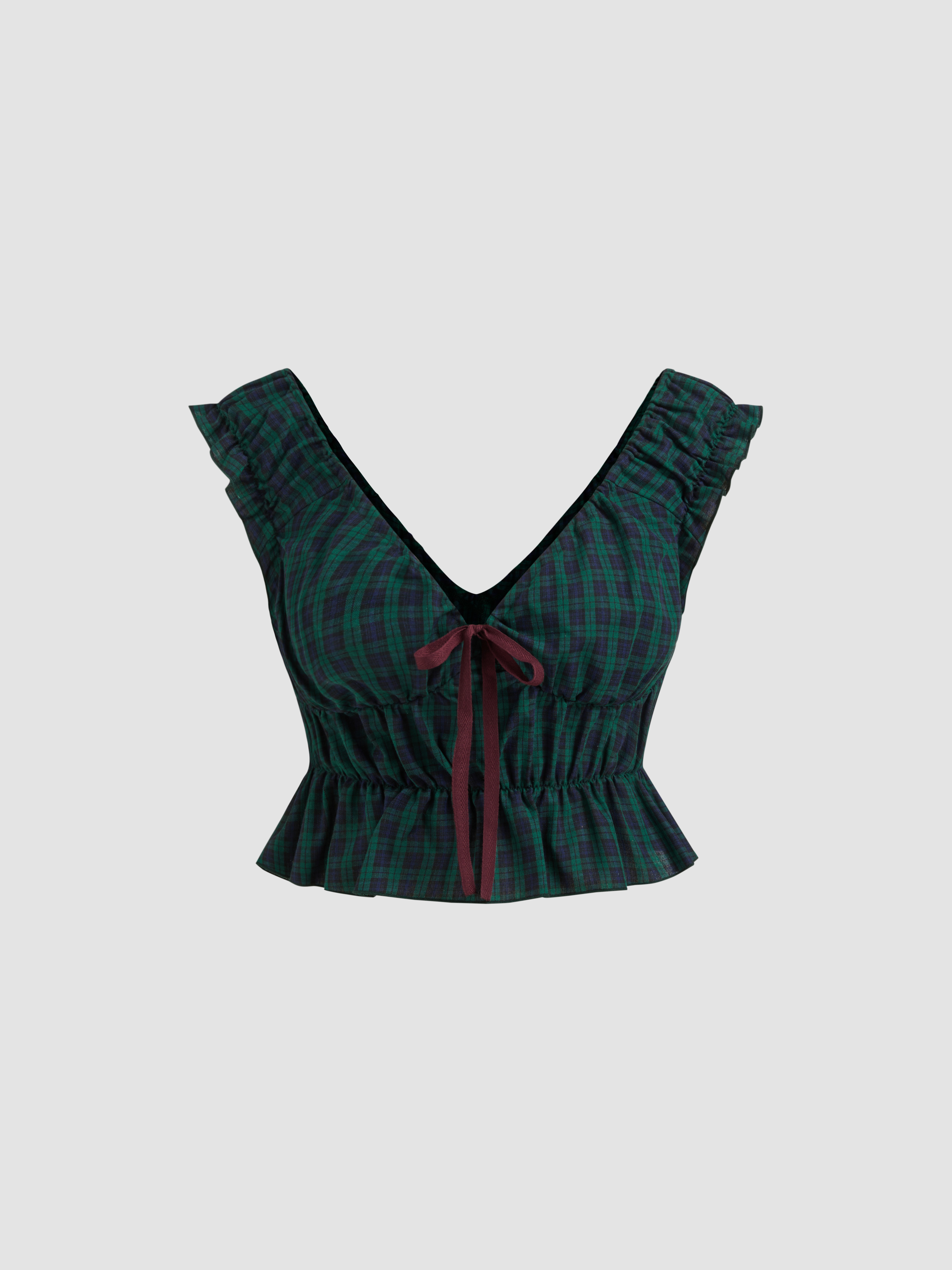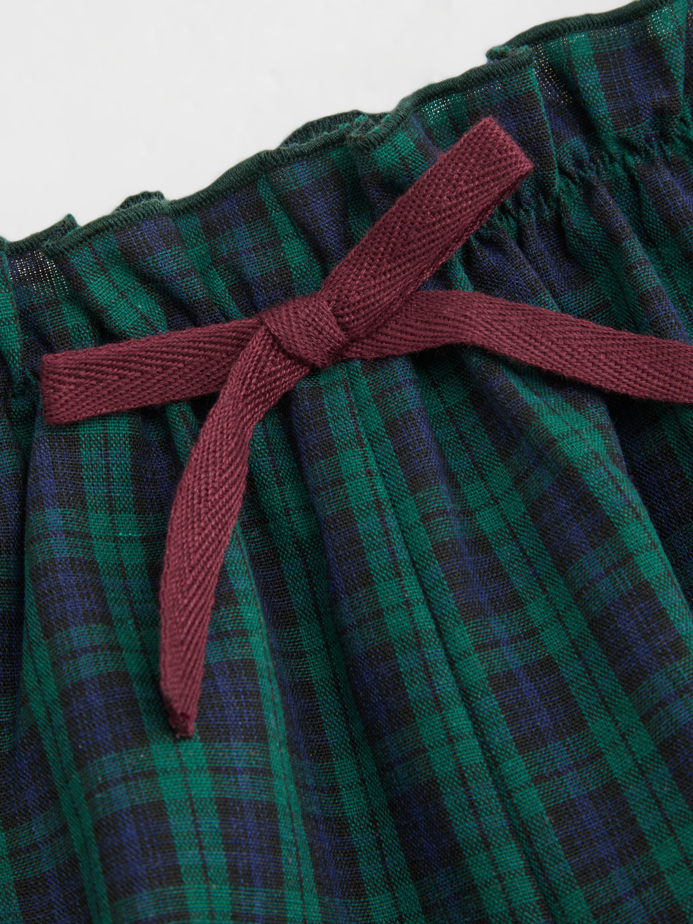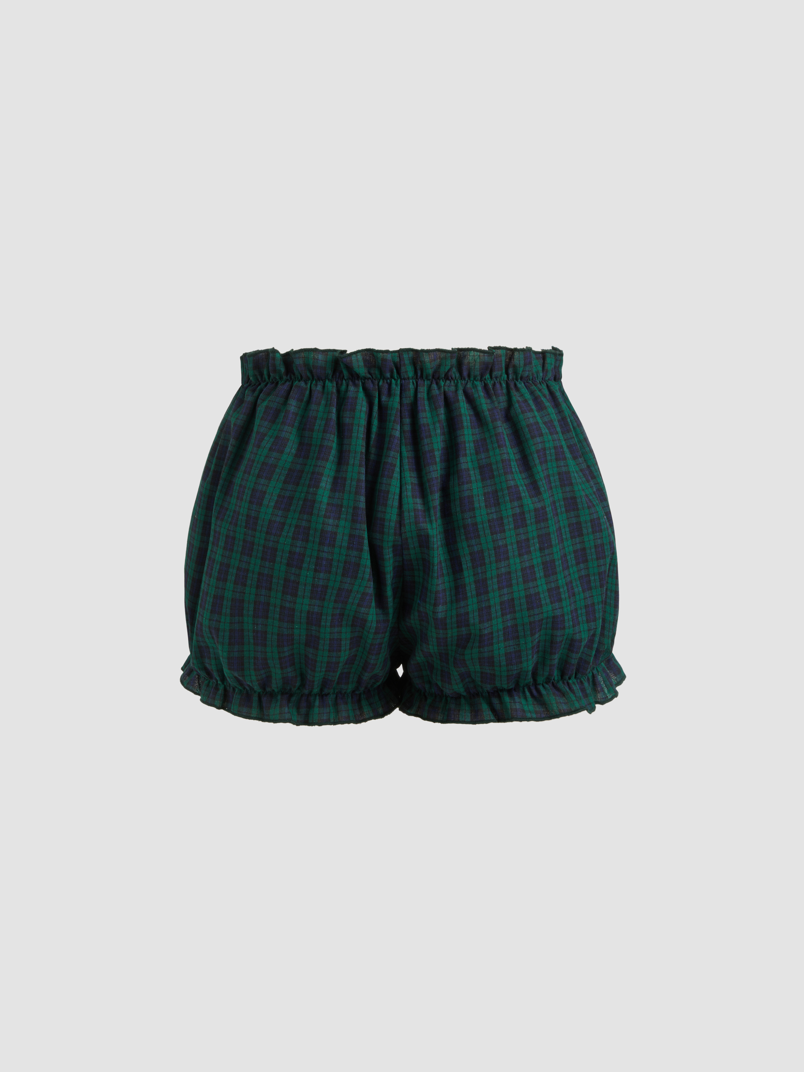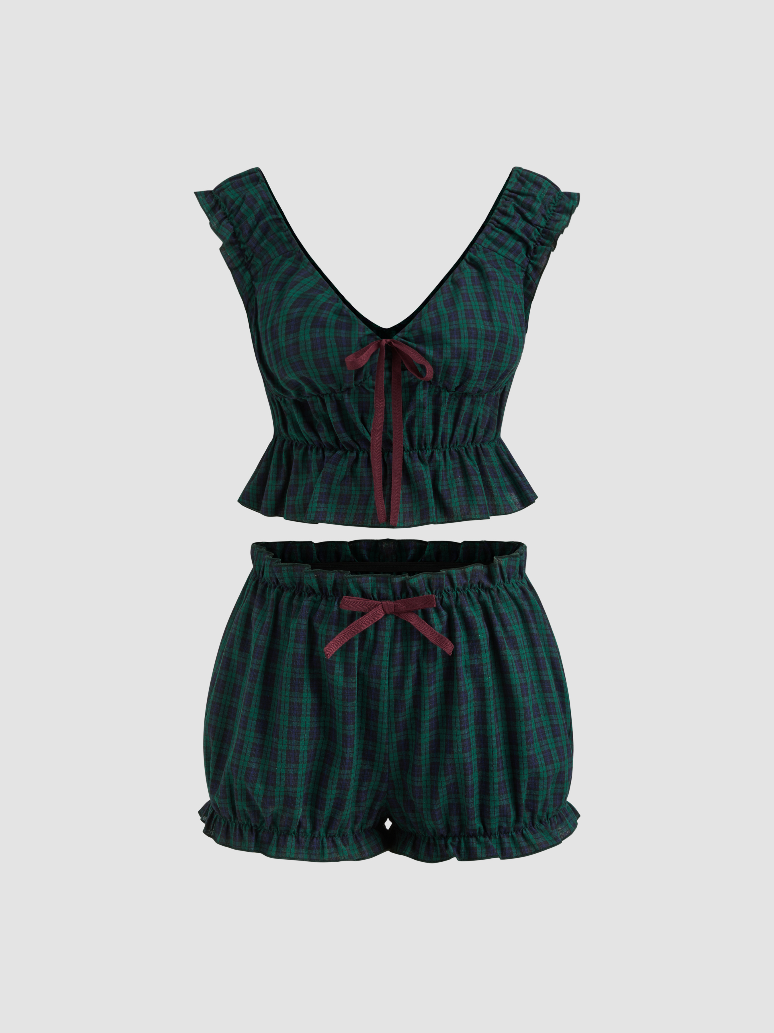 Canotta Tartan in misto cotone e Shorts Bloomer Tartan a vita bassa con fiocco