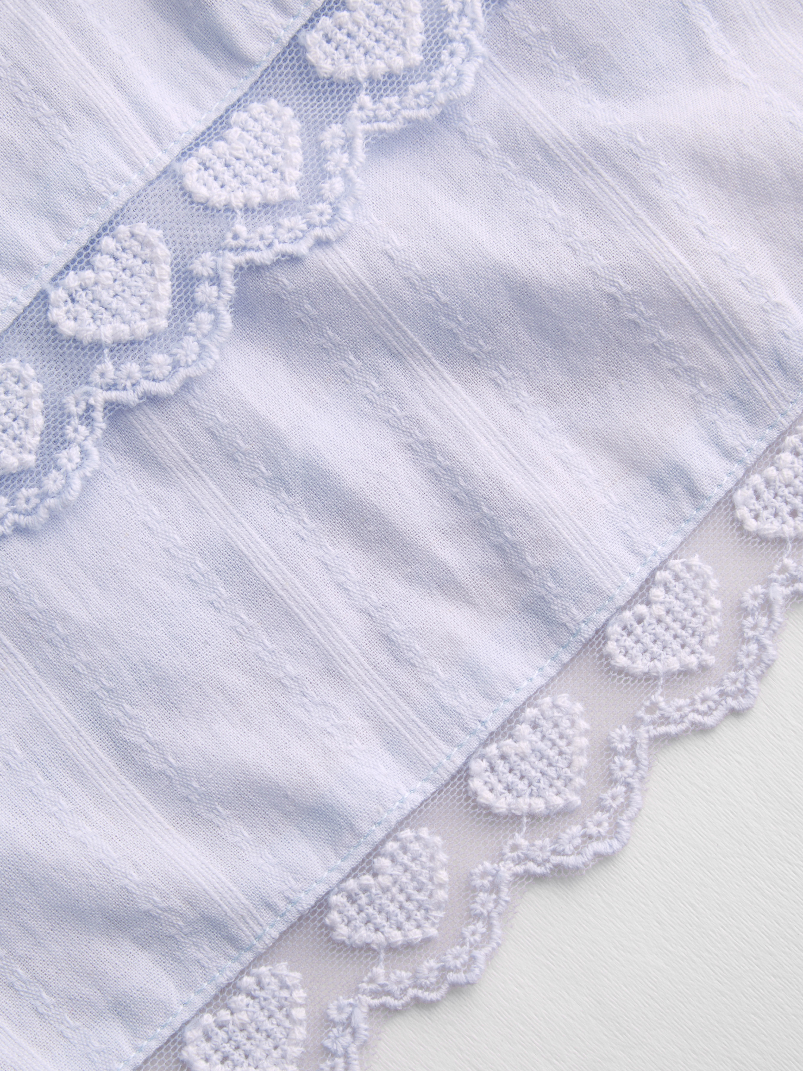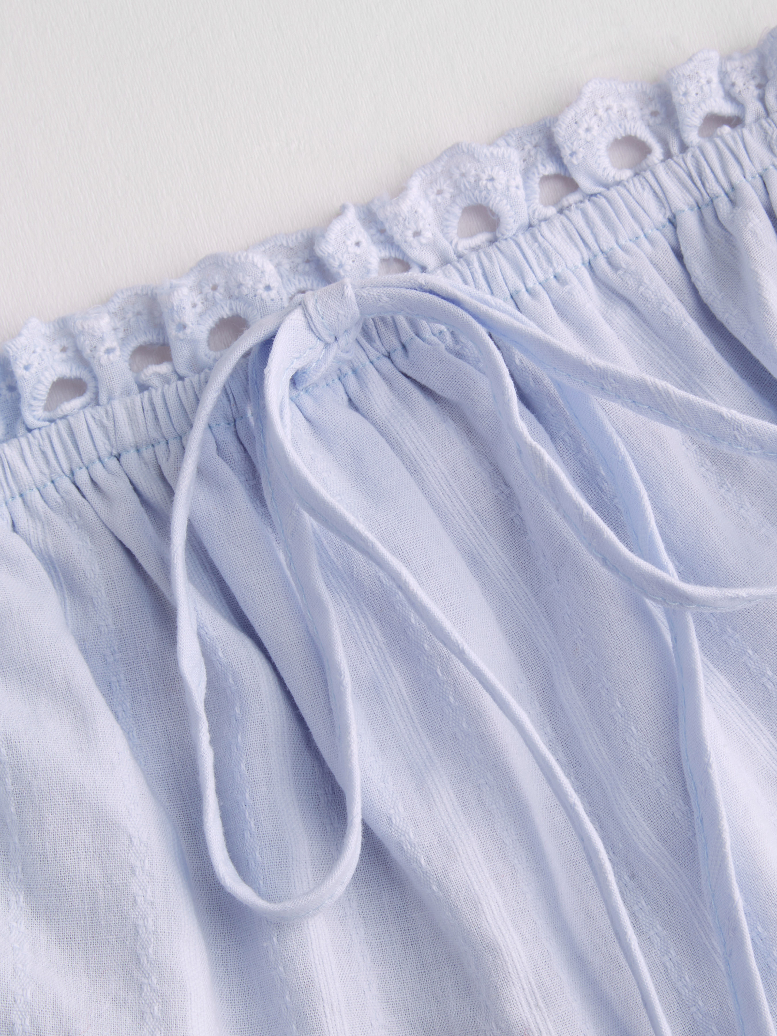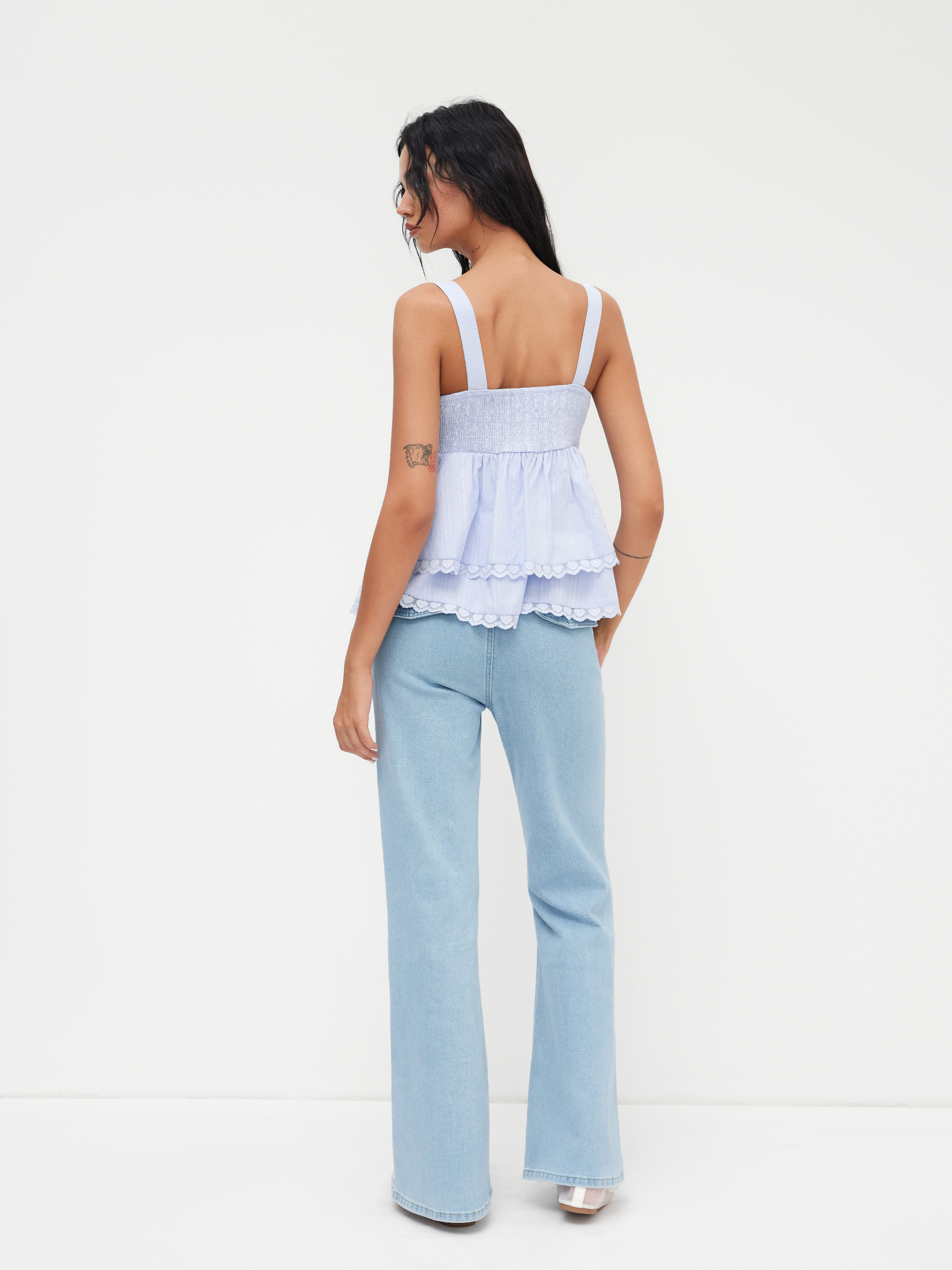Top Cami in Cotone Annodato con Smock, Ricami, Bordi in Pizzo e Orlo Arricciato con Volant
