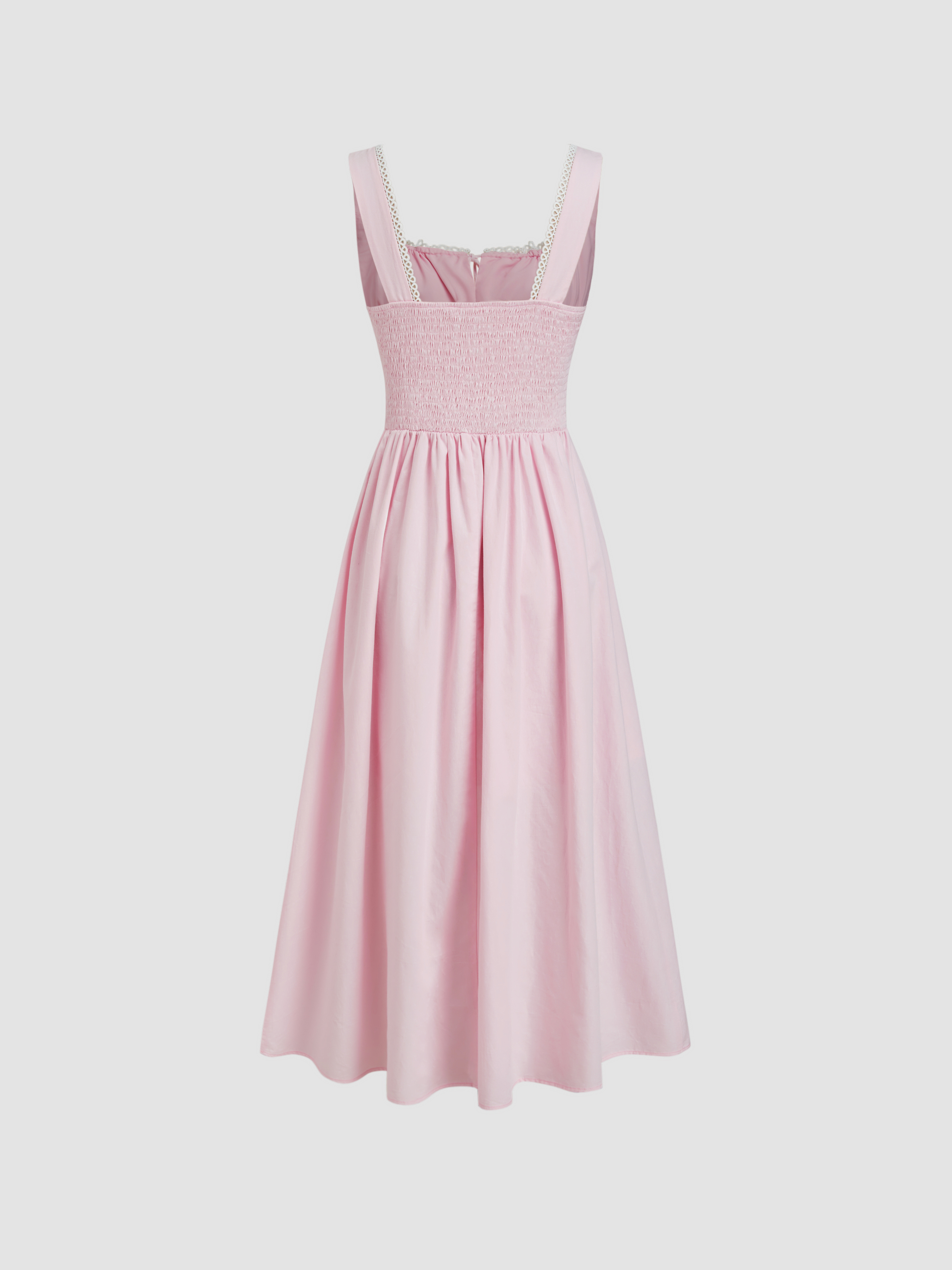 Abito Lungo Maxi con Scollo Quadrato in Cotone con Volant e Arricciatura Annodato