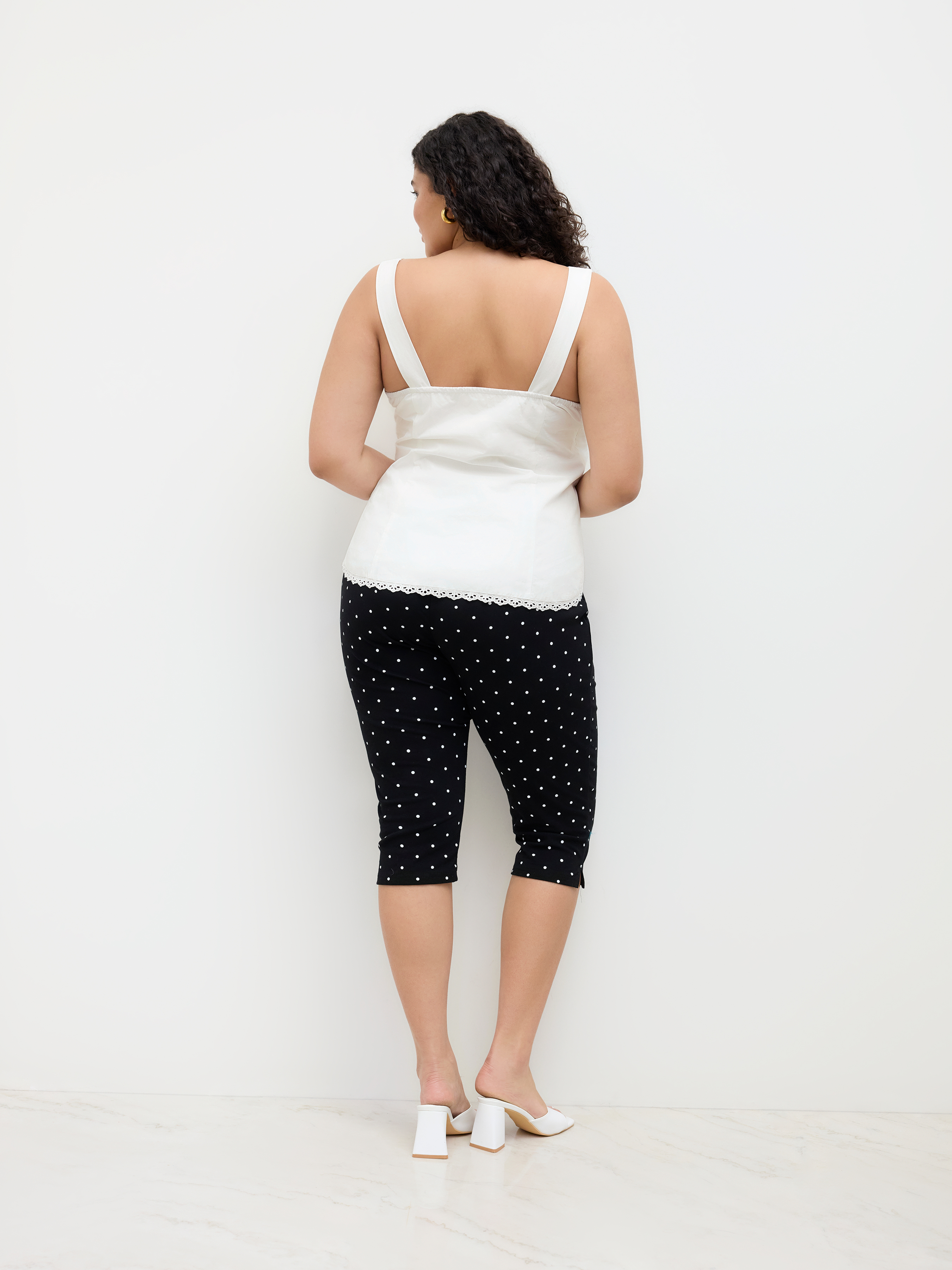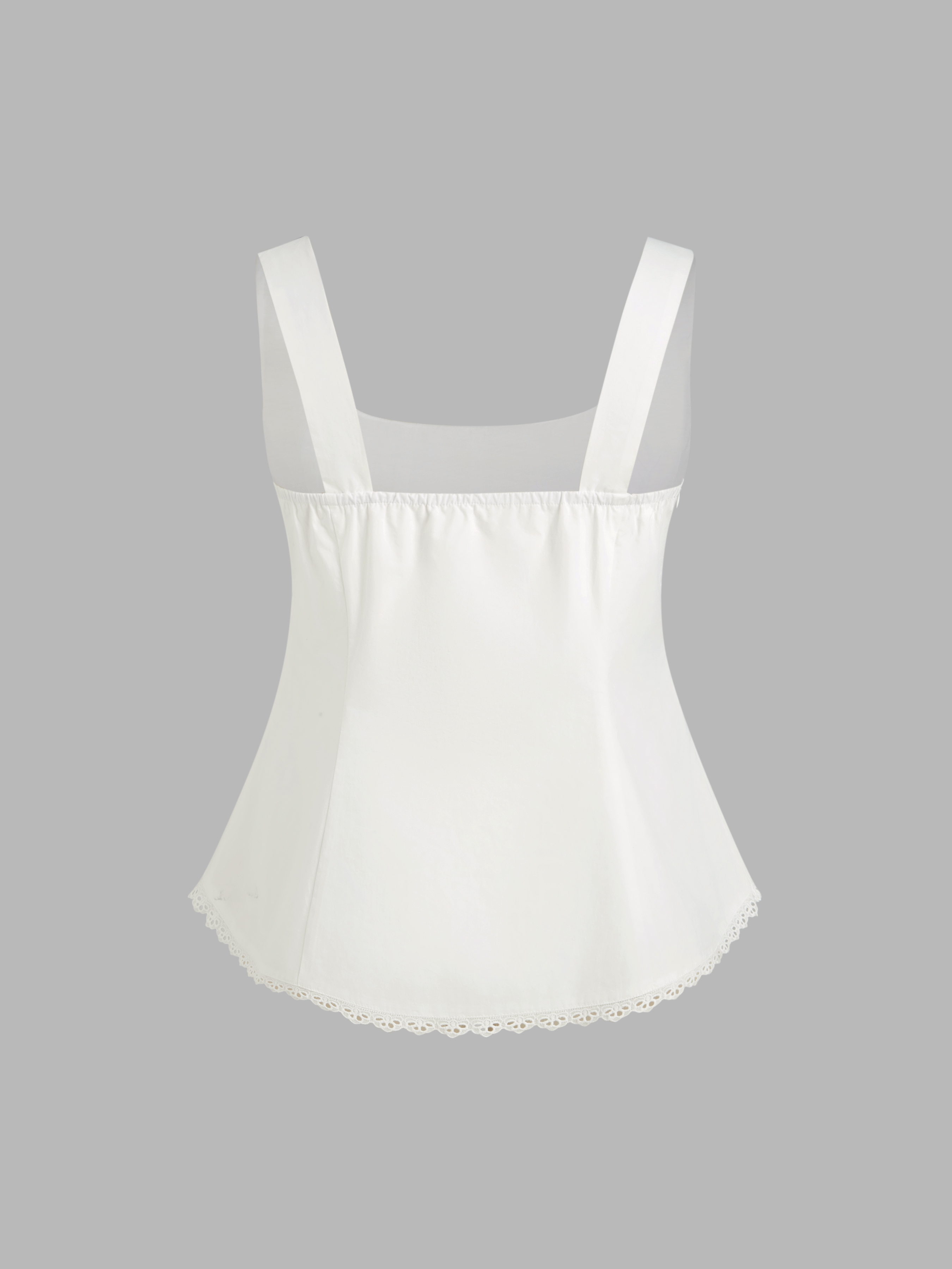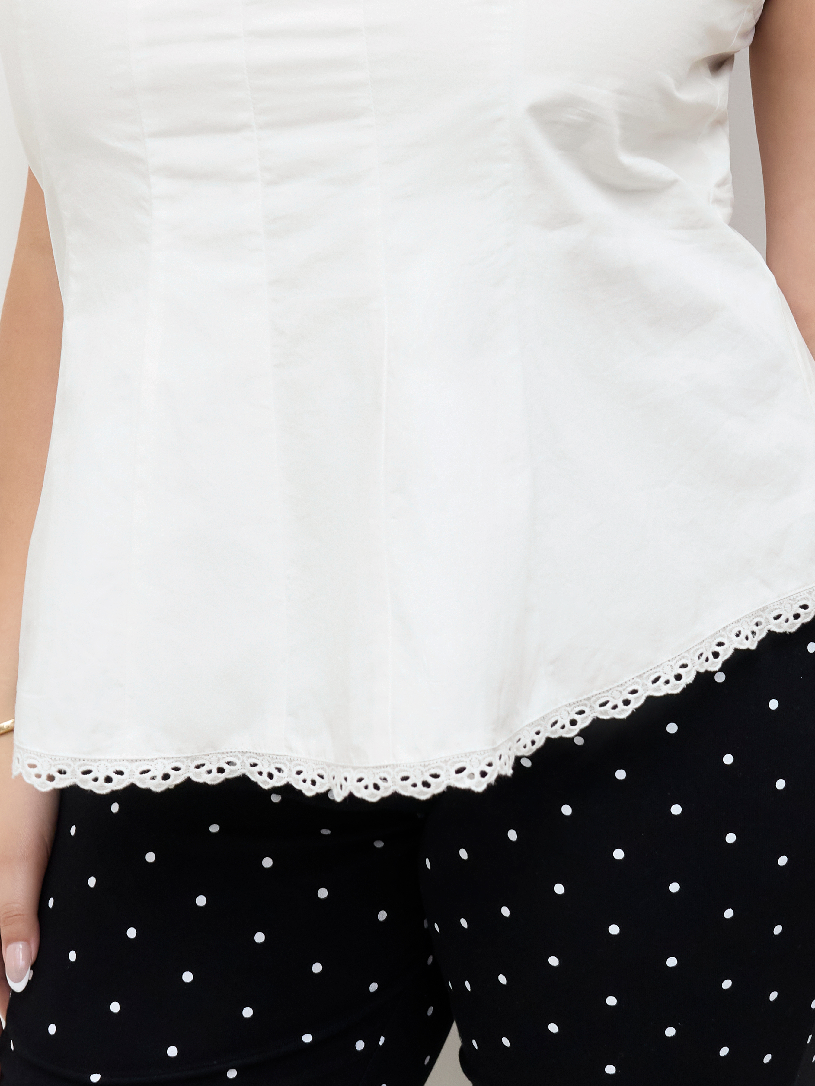 Canotta Curvy & Plus con Scollo a U in Cotone, Orlo con Ricamo Broderie Anglaise e Dettaglio Cut-Out