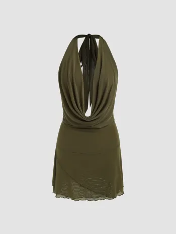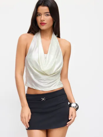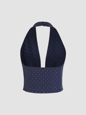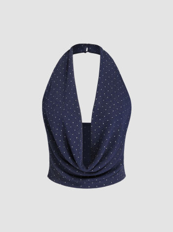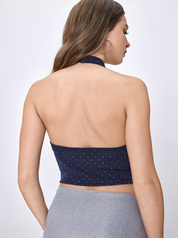 Crop Top con scollo a cappuccio e increspature a pois