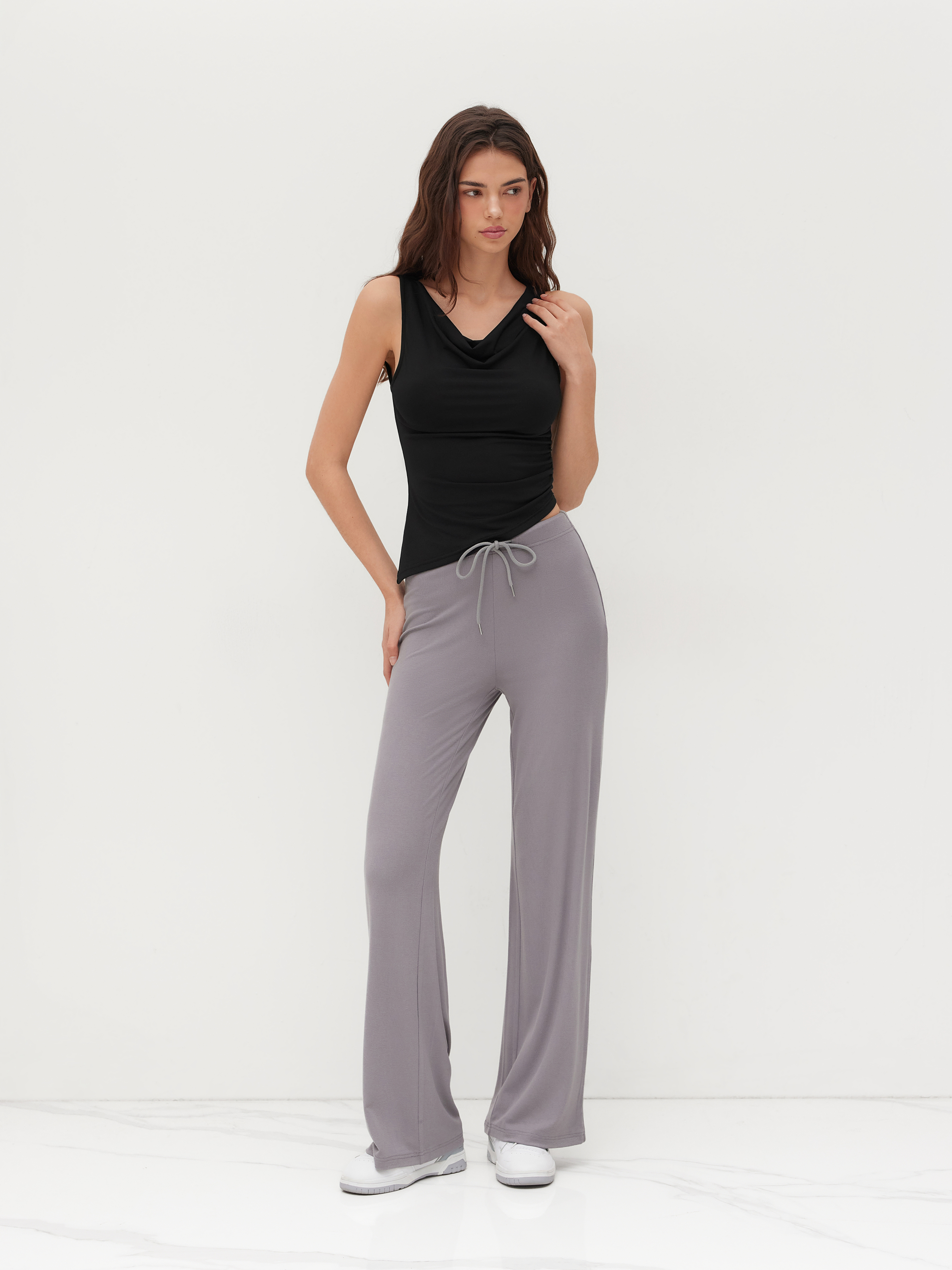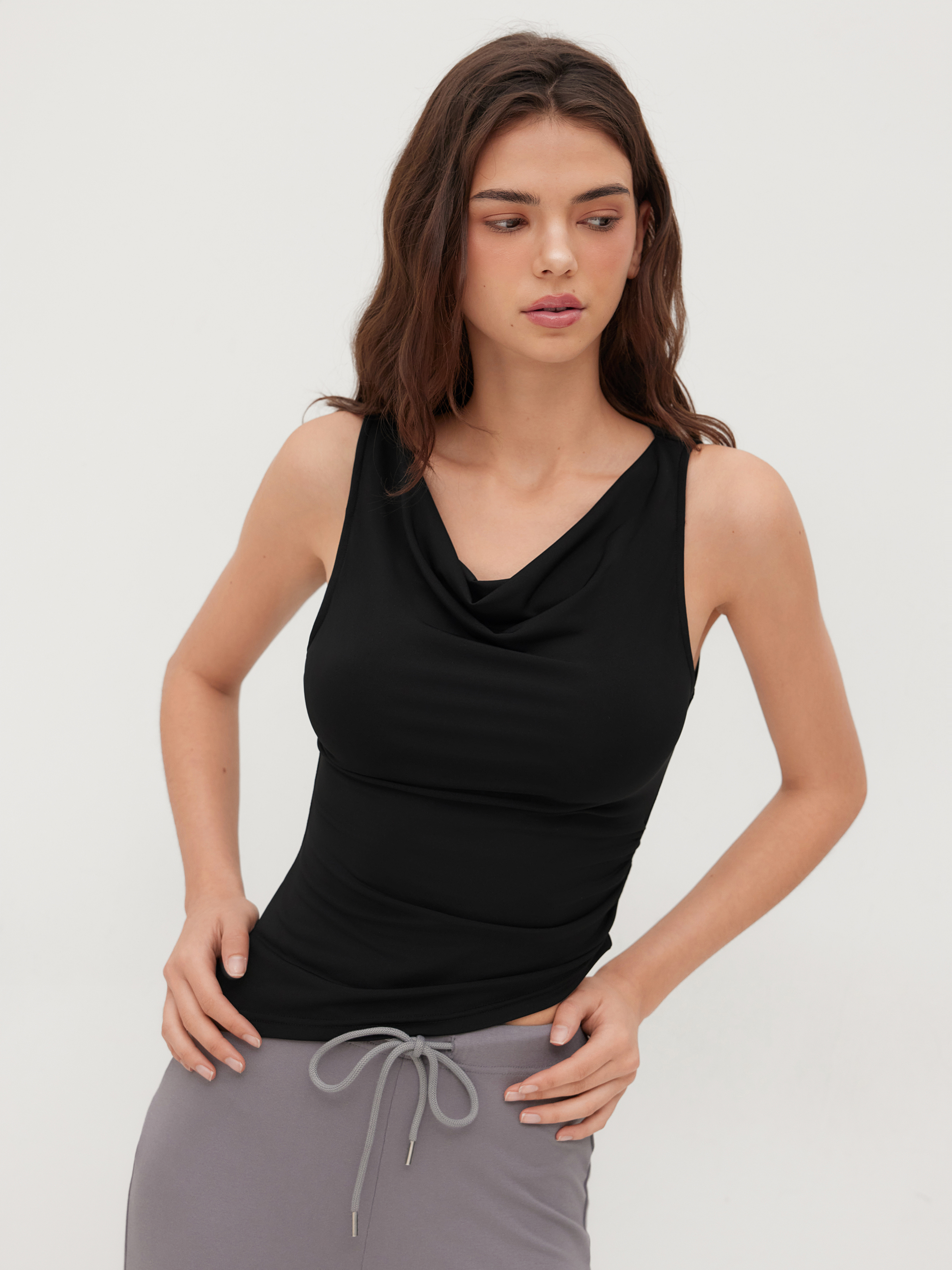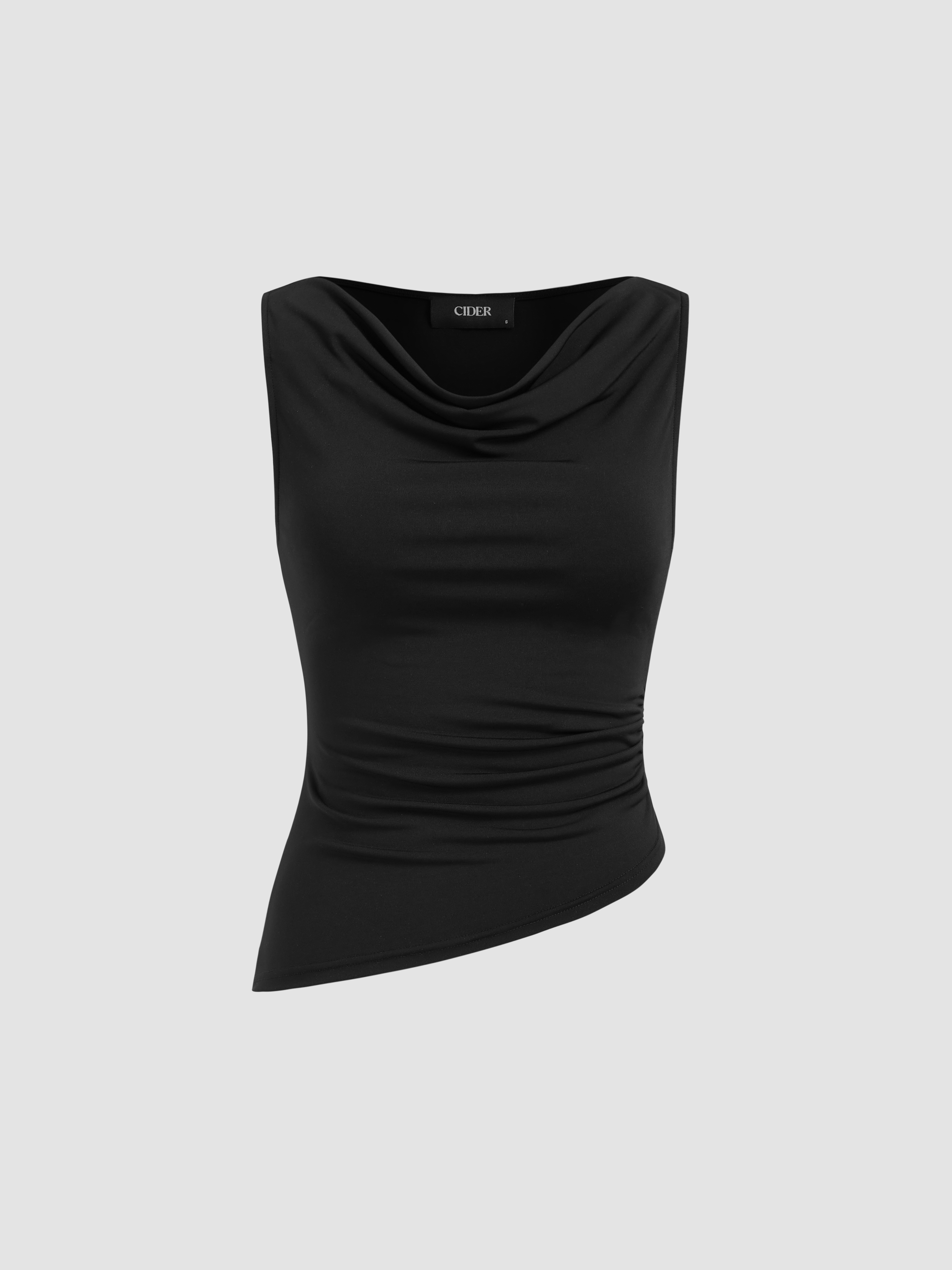 Canotta con Scollo a Cascata, Arricciature e Orlo Asimmetrico