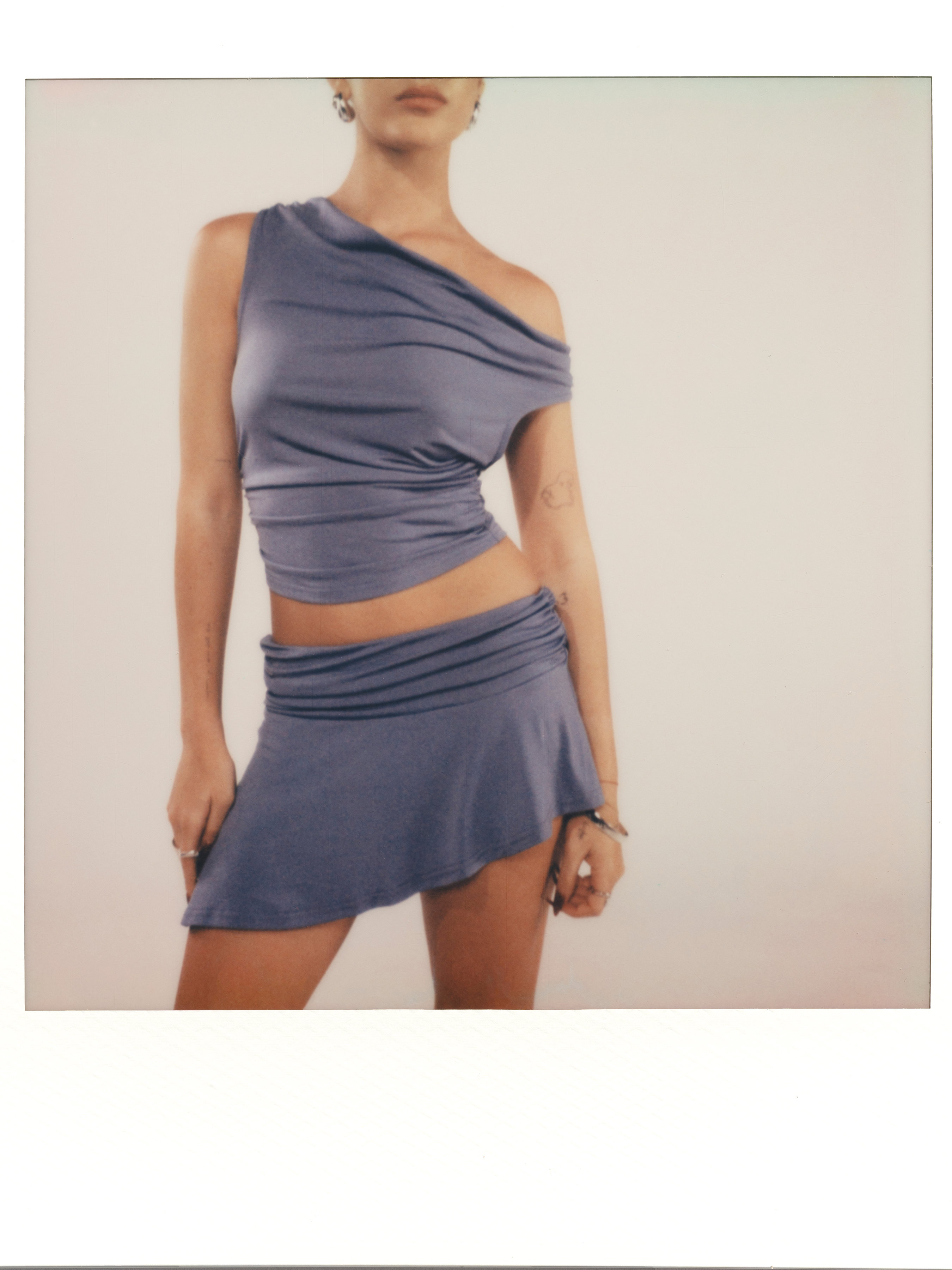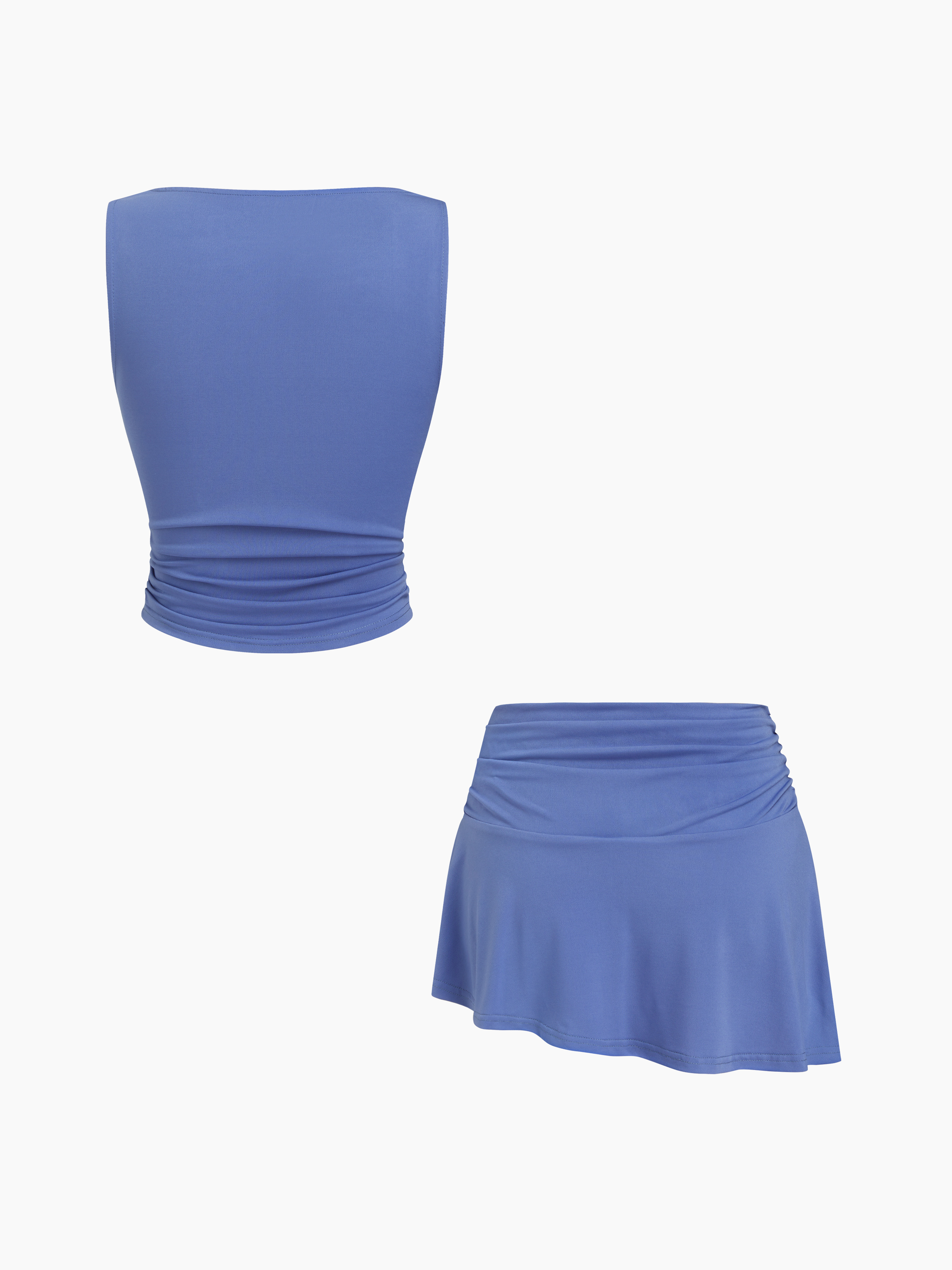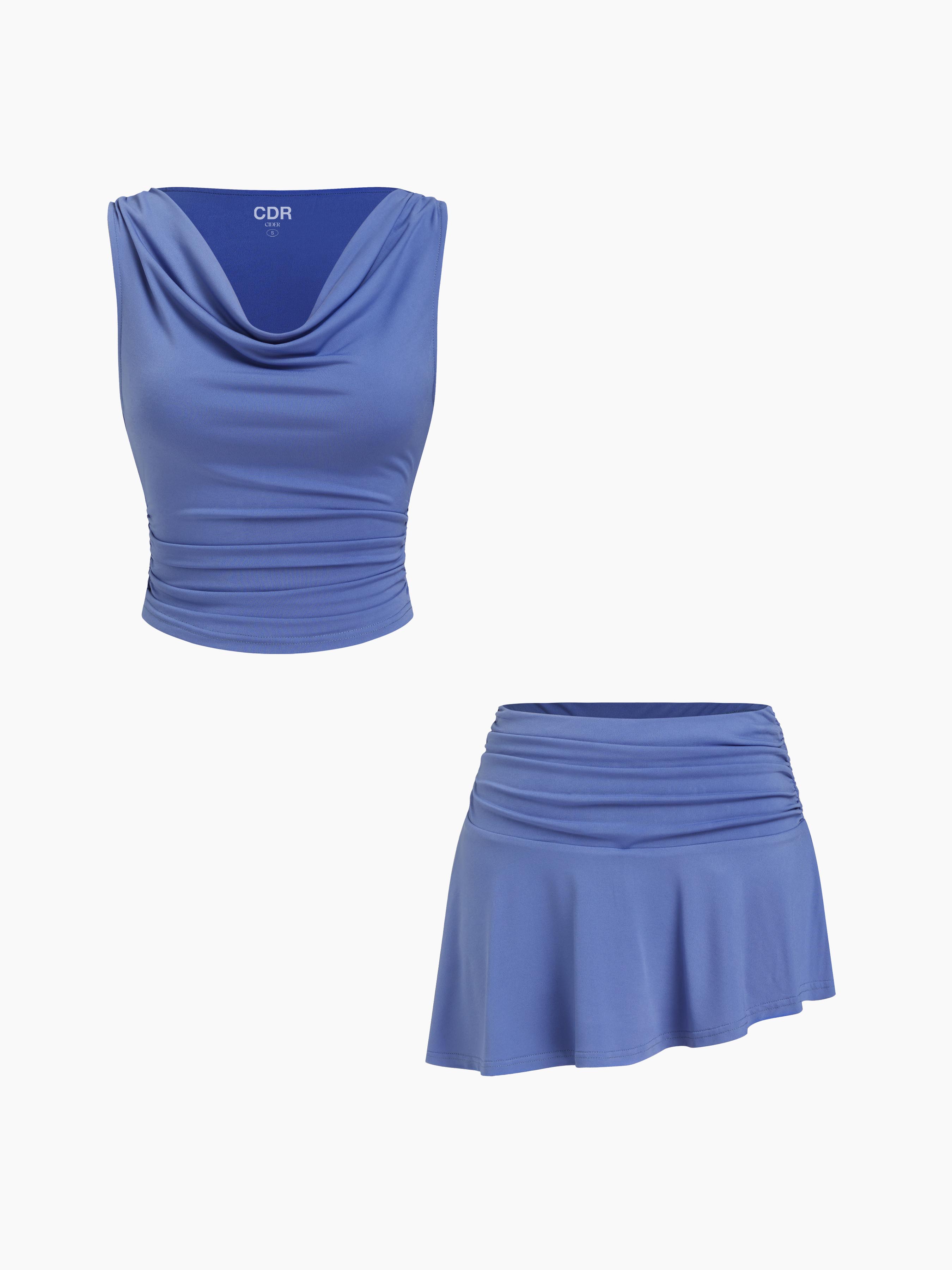 Completo Canotta con Scollo a Cascata e Minigonna Asimmetrica con Arricciatura CDR